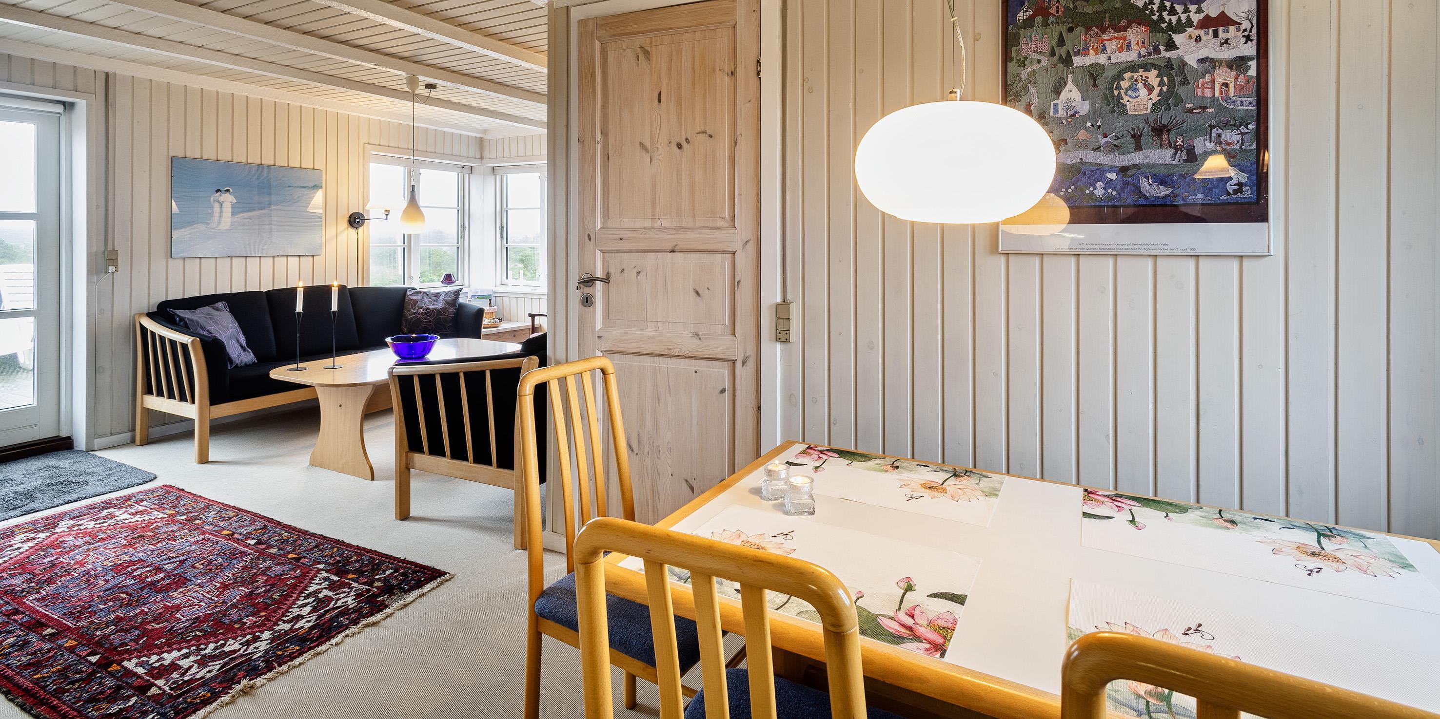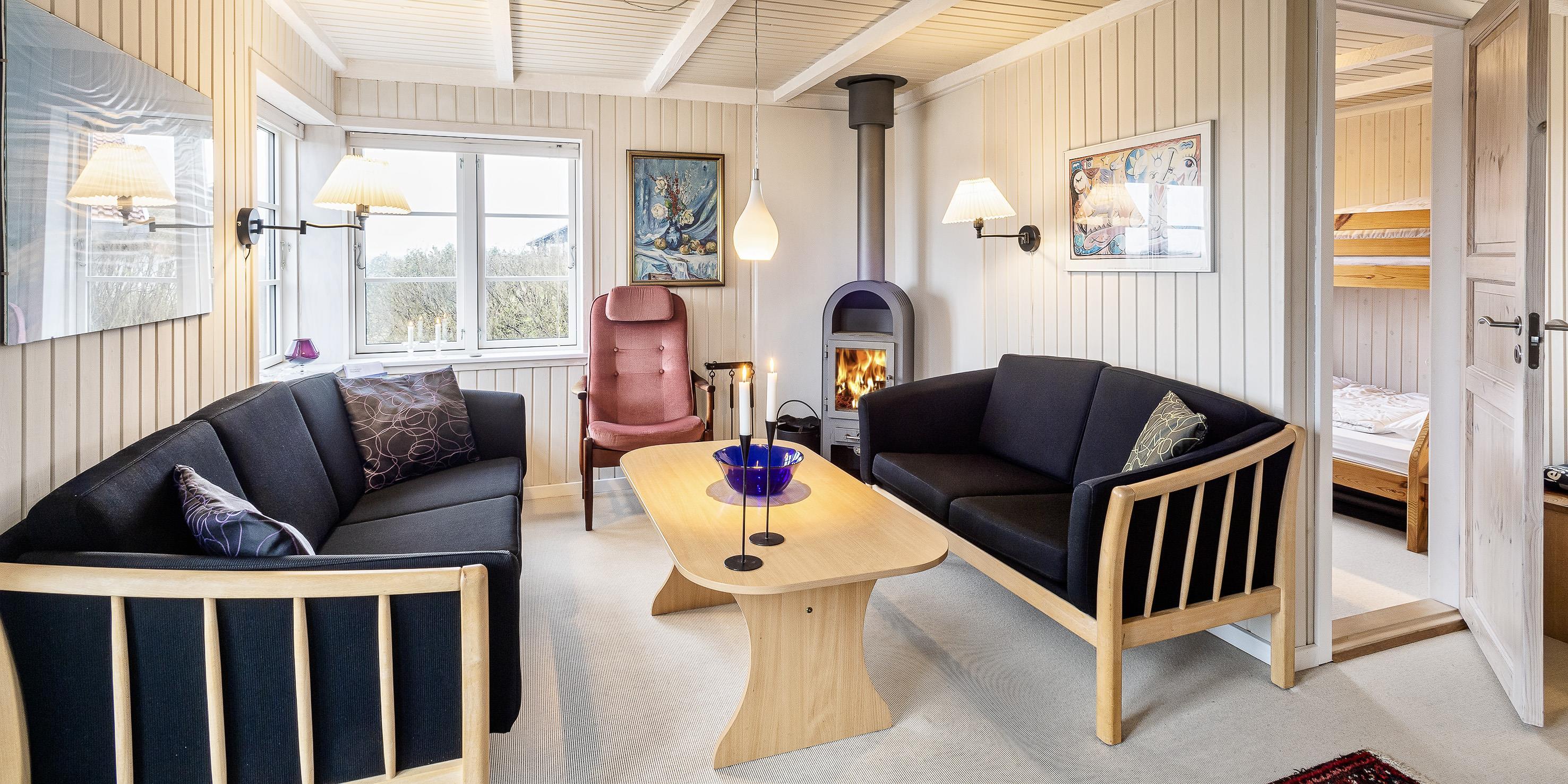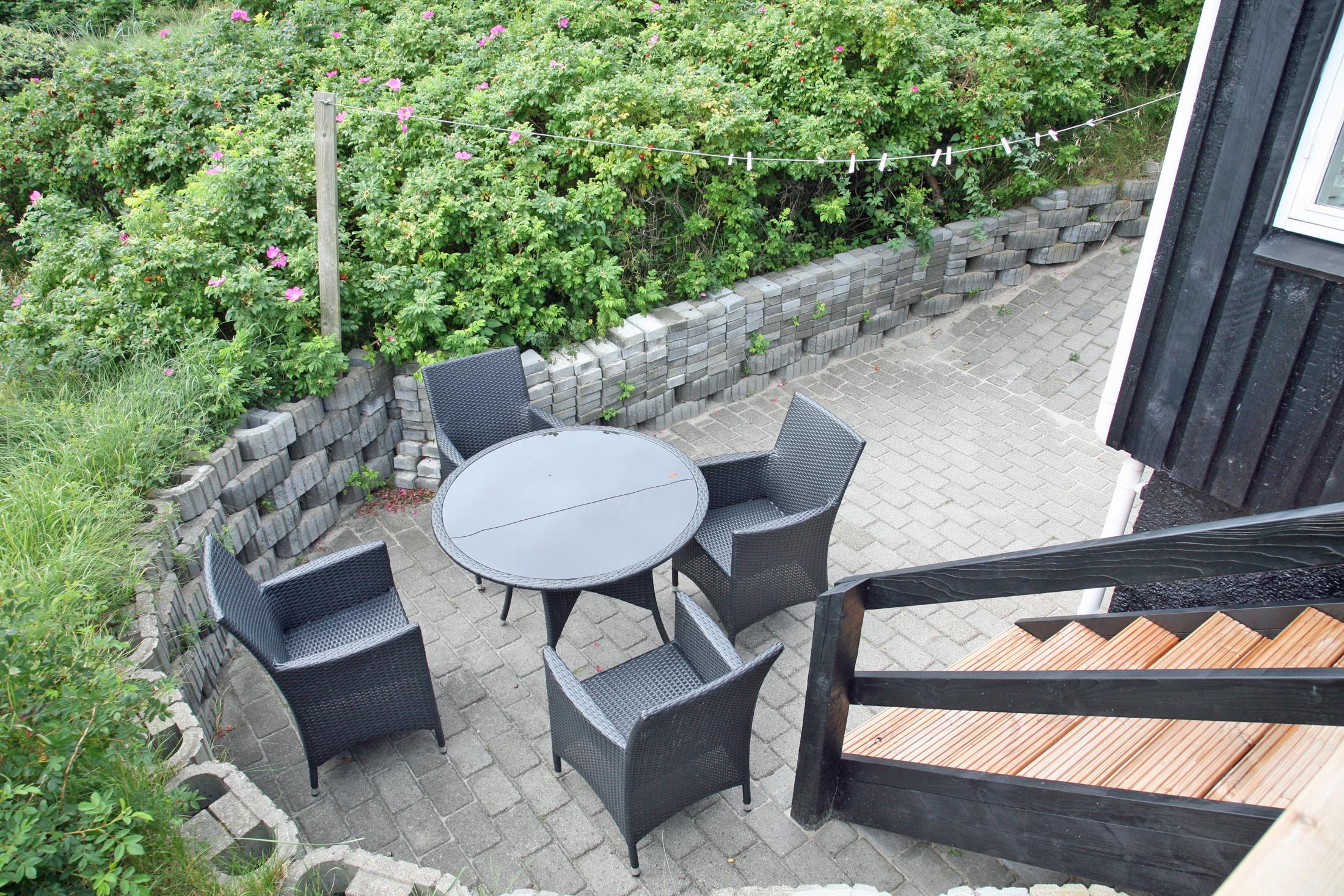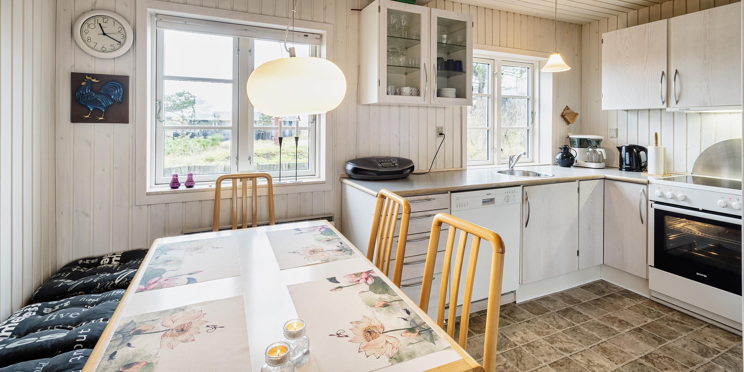 Kleines geschmackvoll eingerichtetes Ferienhaus auf einer Düne gelegen und mit einem tollem Rund-um-Panoramablick von der Terrasse aus. Das Ferienhaus ist für 4 Personen und der Strand ist ca. 400 Meter vom Ferienhaus entfernt. Der Wohnbereich ist mit typischen dänischen Möbeln ausgestattet. Ein Kamin ist auch in diesem Bereich untergebracht. Das deutsche Fernsehprogramm empfangen Sie über eine Parabolantenne. Chromecast ist vorhanden. Die offene Küche ist als Wohnküche ausgestattet und somit mit dem Essbereich verbunden. Eine kleine Sitzbank steht am Esstisch bereit. Die Küche verfügt über ein Herd mit Cerankochfeld, einem Backofen, einer Geschirrspülmaschine, einer Mikrowelle und einer Kühl- und Gefrierkombination. Das Badezimmer hat ein WC, ein Handwaschbecken und eine Dusche. Insgesamt stehen Ihnen zwei Schlafzimmer zur Verfügung: DB + DB. Sie haben insgesamt drei verschiedene Terrassenbereiche, eine mit Holzdielen, direkt am Ferienhaus und zwei Bereiche sind mit Steinfliesen verlegt. Die Hagebuttenbüsche schützen einen Bereich neben dem Treppenaufgang an der Seite und daher ist dieser Sitzplatz recht gut geschützt. Das Ferienhaus verfügt über einen Internetanschluss (W-Lan). Es sind keine Haustiere erlaubt, mit Ausnahme ein kleiner Hund mit max. Rückenhöhe von 30 cm. Der Grill und die Fahrräder am Ferienhaus sind zur freien Benutzung. Wir geben allerdings keine Garantie auf die Benutzbarkeit. Gratis Eintritt für das Badeland in Oksbøl in 2026. Das Rauchen ist nicht gestattet. Das Ferienhaus ist 1952 erbaut worden.