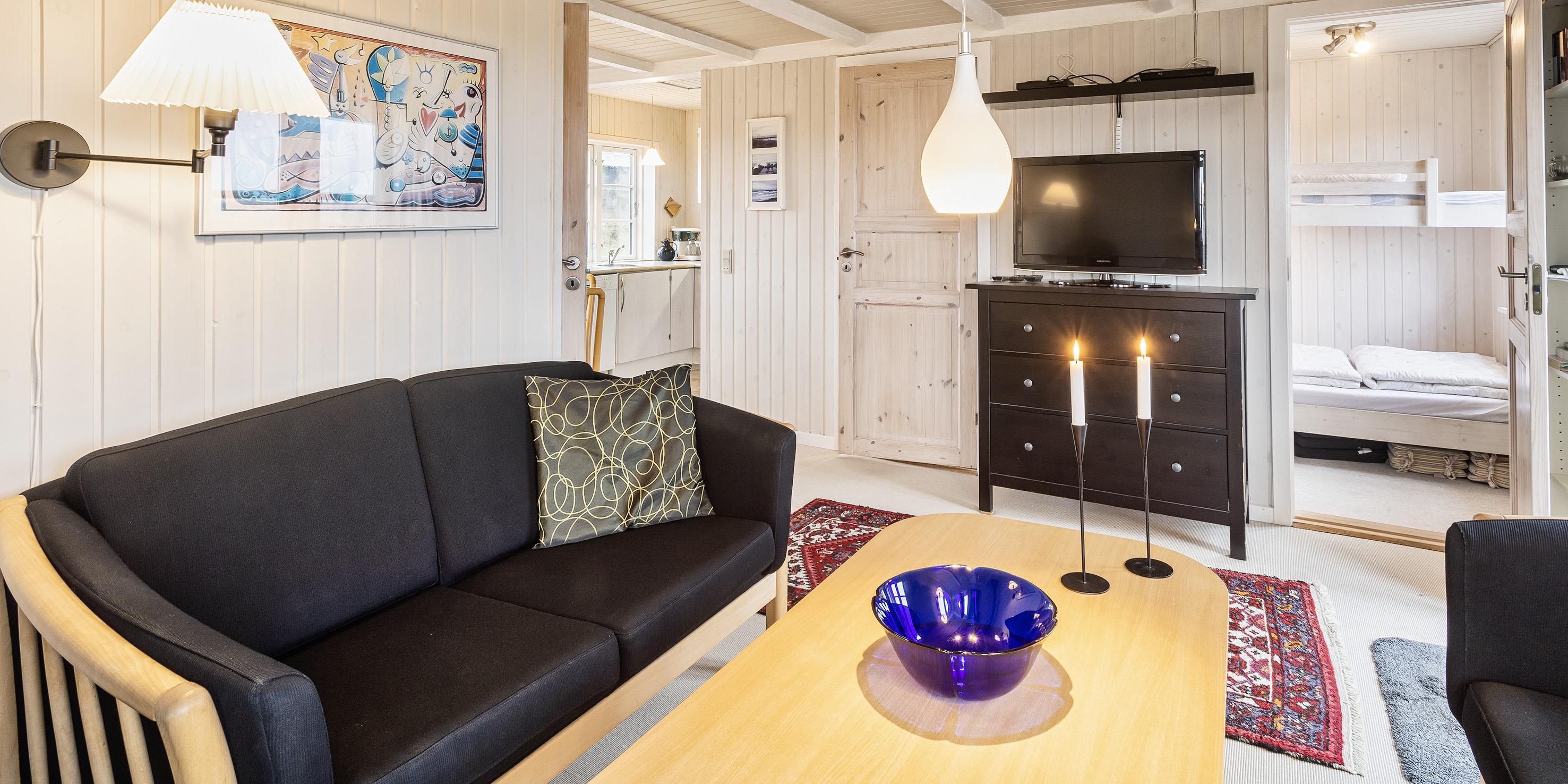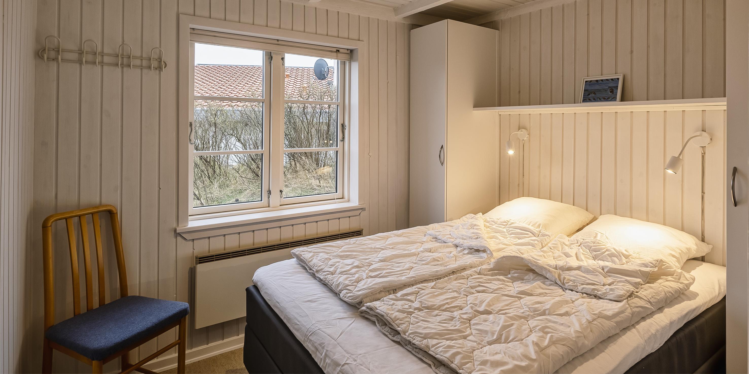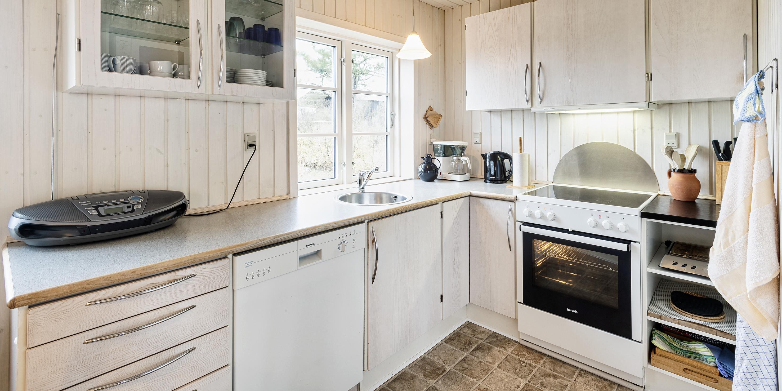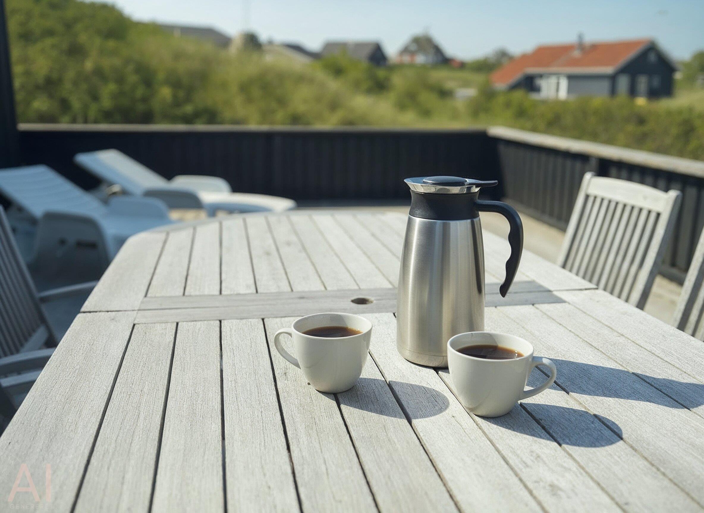 Kleines geschmackvoll eingerichtetes Ferienhaus auf einer Düne gelegen und mit einem tollem Rund-um-Panoramablick von der Terrasse aus. Das Ferienhaus ist für 4 Personen und der Strand ist ca. 400 Meter vom Ferienhaus entfernt. Der Wohnbereich ist mit typischen dänischen Möbeln ausgestattet. Ein Kamin ist auch in diesem Bereich untergebracht. Das deutsche Fernsehprogramm empfangen Sie über eine Parabolantenne. Chromecast ist vorhanden. Die offene Küche ist als Wohnküche ausgestattet und somit mit dem Essbereich verbunden. Eine kleine Sitzbank steht am Esstisch bereit. Die Küche verfügt über ein Herd mit Cerankochfeld, einem Backofen, einer Geschirrspülmaschine, einer Mikrowelle und einer Kühl- und Gefrierkombination. Das Badezimmer hat ein WC, ein Handwaschbecken und eine Dusche. Insgesamt stehen Ihnen zwei Schlafzimmer zur Verfügung: DB + DB. Sie haben insgesamt drei verschiedene Terrassenbereiche, eine mit Holzdielen, direkt am Ferienhaus und zwei Bereiche sind mit Steinfliesen verlegt. Die Hagebuttenbüsche schützen einen Bereich neben dem Treppenaufgang an der Seite und daher ist dieser Sitzplatz recht gut geschützt. Das Ferienhaus verfügt über einen Internetanschluss (W-Lan). Es sind keine Haustiere erlaubt, mit Ausnahme ein kleiner Hund mit max. Rückenhöhe von 30 cm. Der Grill und die Fahrräder am Ferienhaus sind zur freien Benutzung. Wir geben allerdings keine Garantie auf die Benutzbarkeit. Gratis Eintritt für das Badeland in Oksbøl in 2026. Das Rauchen ist nicht gestattet. Das Ferienhaus ist 1952 erbaut worden.