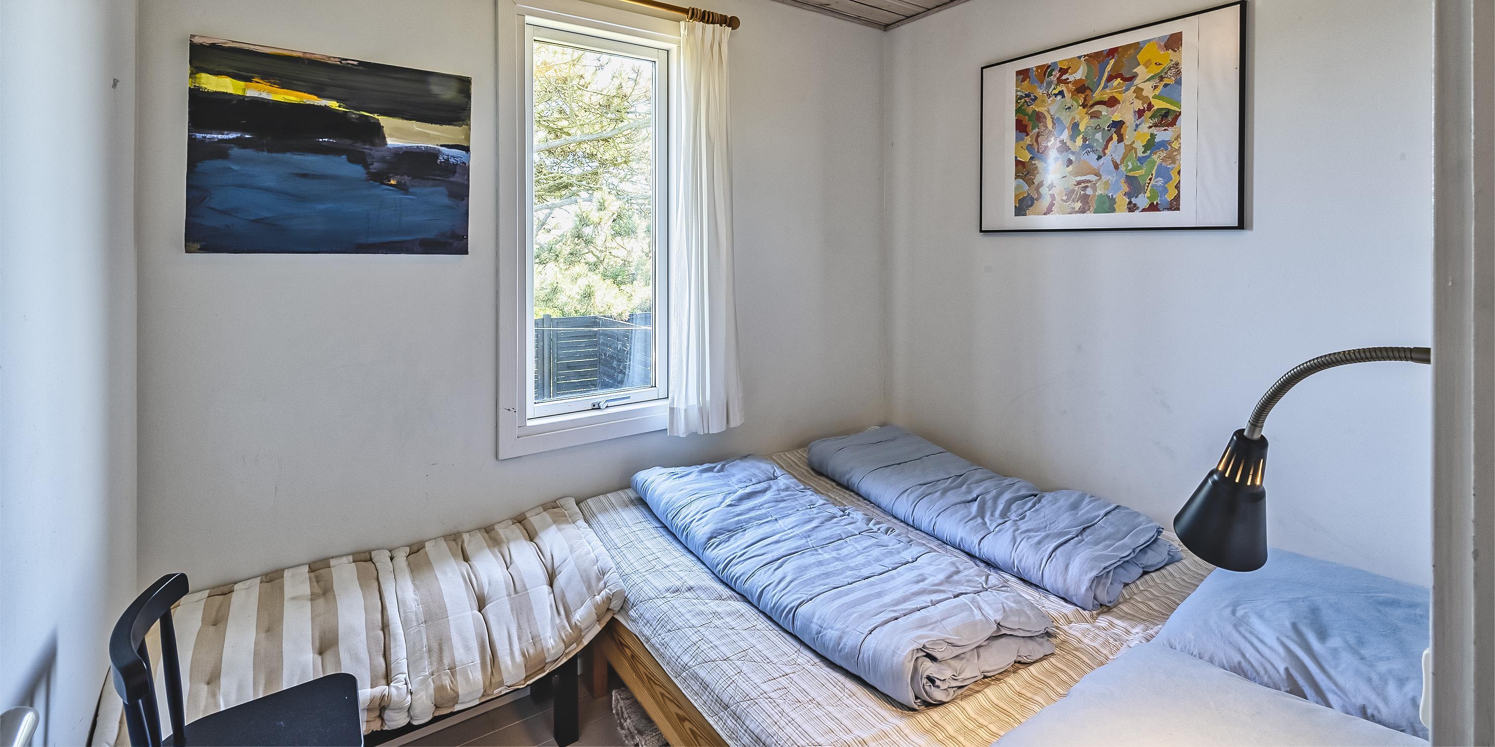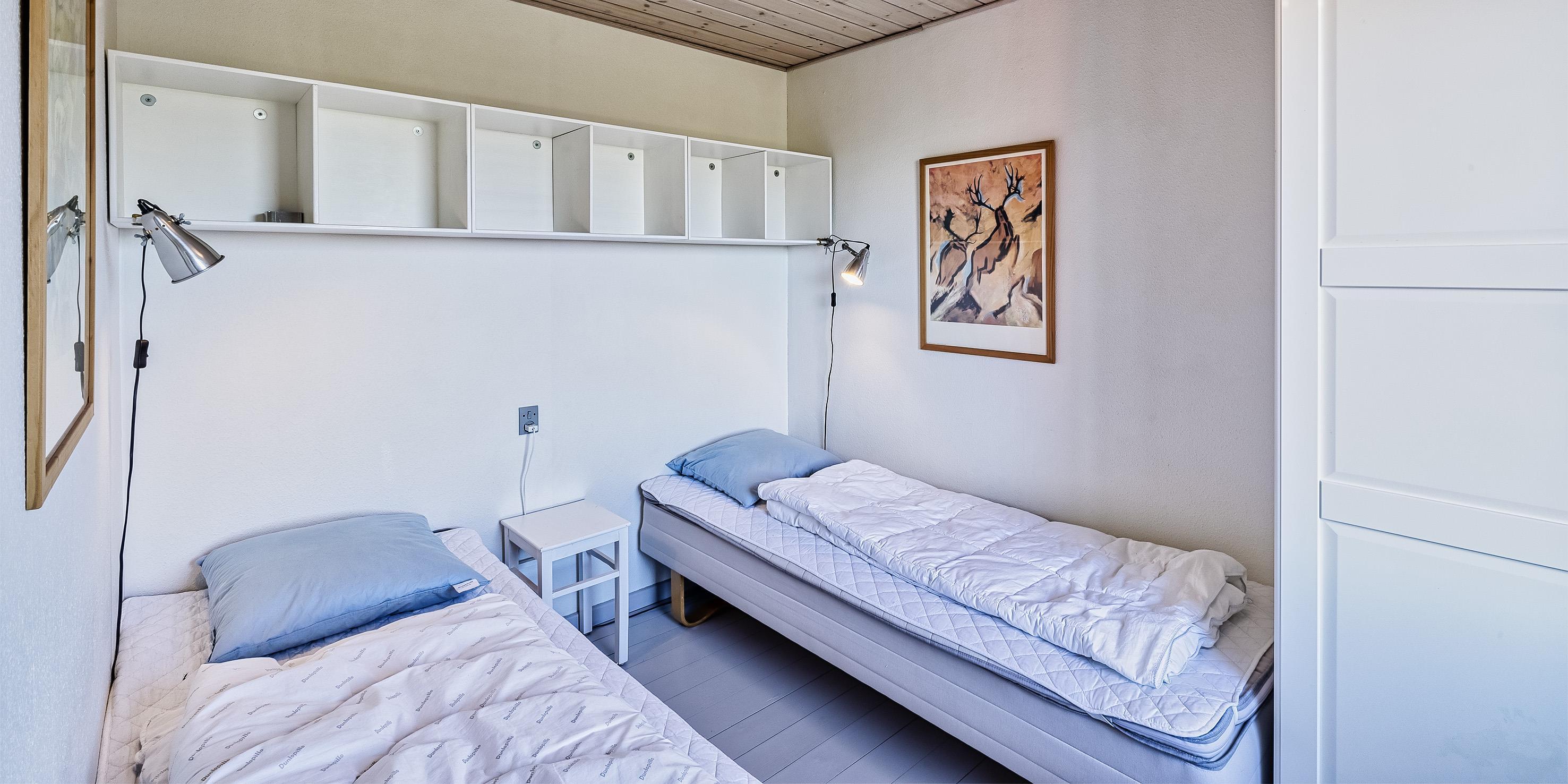 3 Schlafzimmer. 1 mit Doppelbett 180x200 cm. 1 mit 2 Einzelbetten (je 90x200 cm). 1 mit breites Einzelbett.