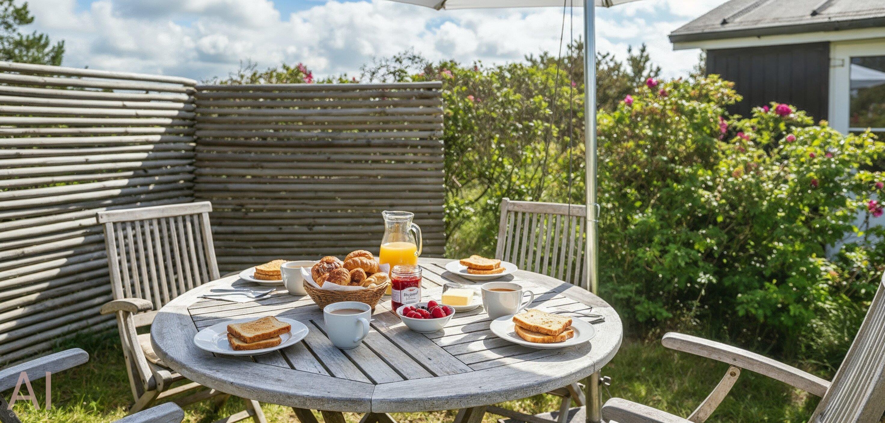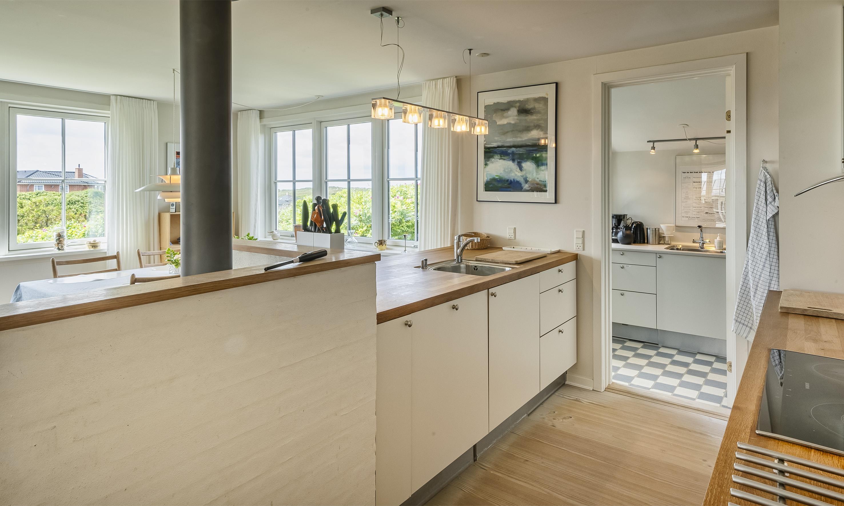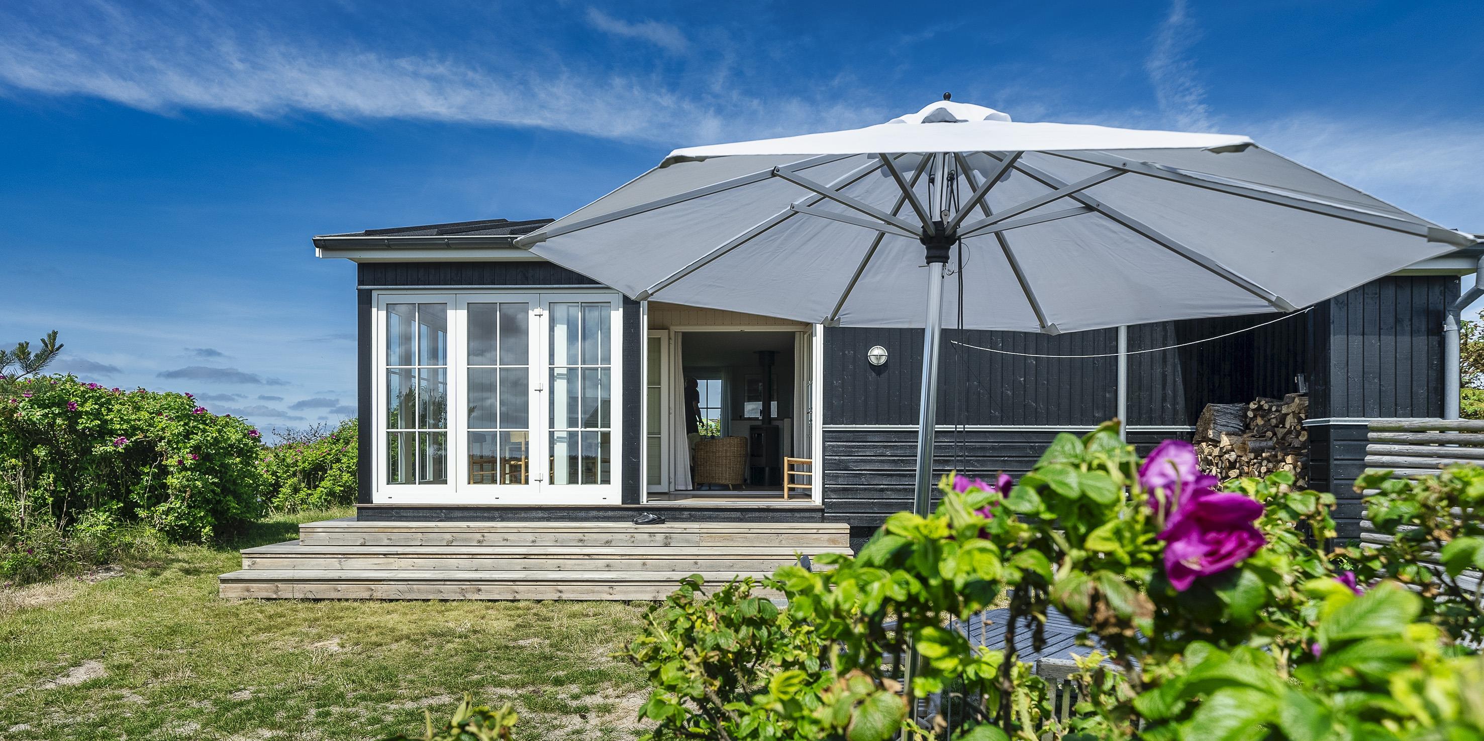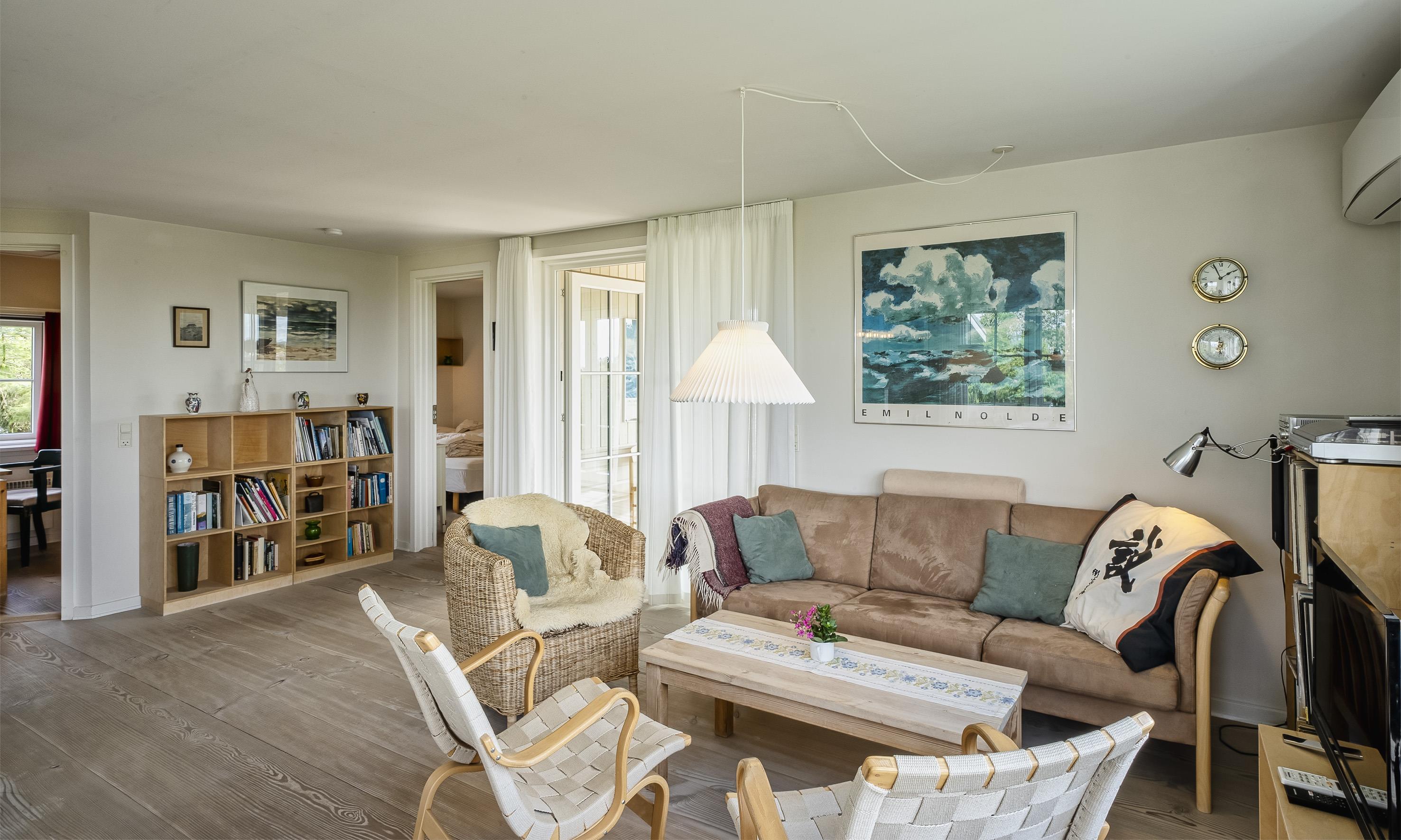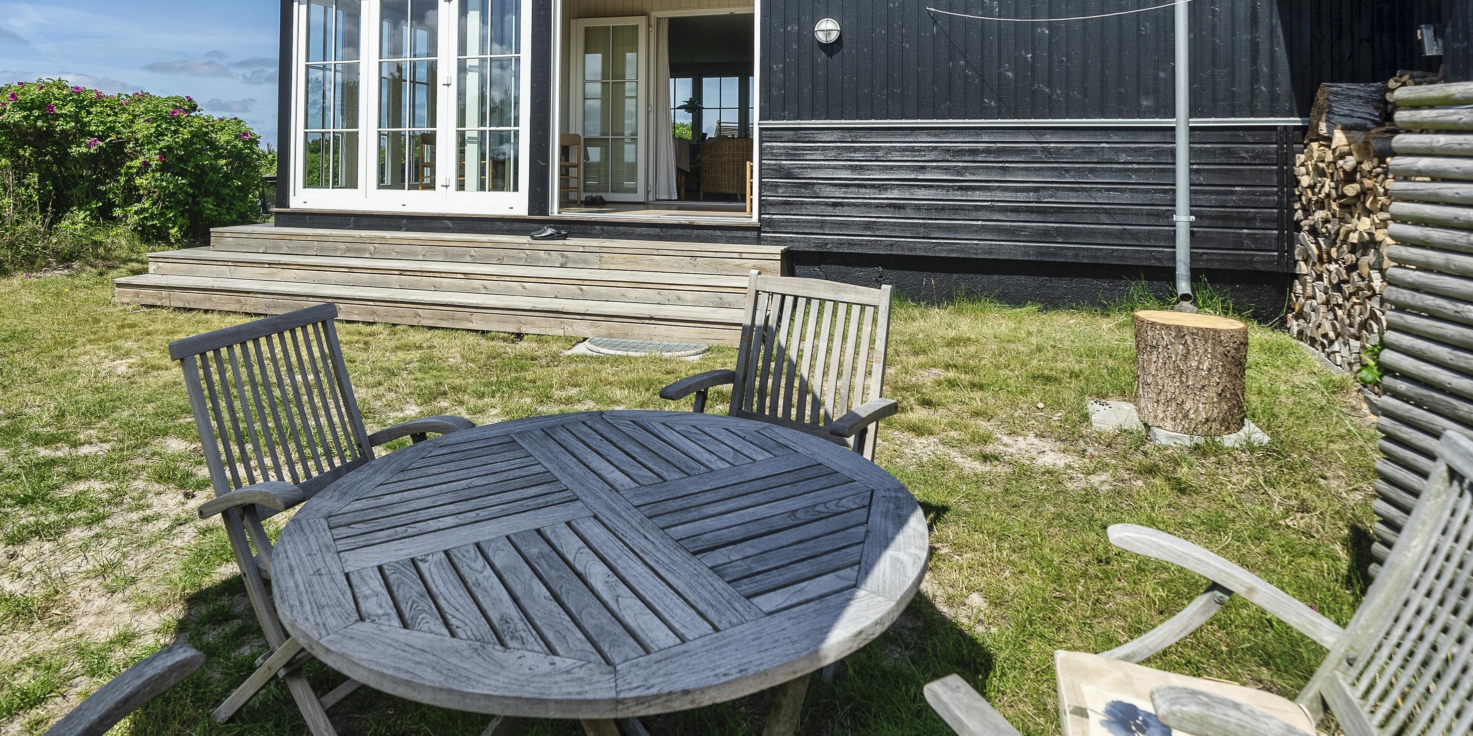 Auf einer Düne liegt dieses kleine dänisch eingerichtete Ferienhaus für 6 Personen und nur 150 Meter vom Strand entfernt. Das Ferienhaus liegt völlig ungestört und hier haben Sie vom Wohnzimmer aus einen wundervollen Meeresblick. Der Wintergarten, der noch mit schönen Holzdielen belegt ist, hat grosse Schiebetüren, wobei eine schöne warme Brise in lauer Sommernacht durch das Haus fluten kann. Die Wohnkücke ist mit dem grosszügige Wohn- und Esszimmer integriert. Vom Wohnbereich aus, kann man das Feuer im Kamin lodern sehen. Dies bringt eine wohlige Wärme ins Ferienhaus. Es befindet sich eine Warmepumpe im Ferienhaus. Mit dieser Warmepumpe haben sie die Möglichkeit die Stromkosten zu senken, denn die Warmepumpe ist energiesparend. Deutsche Fernsehprogramme werden über eine Parabol-Antenne empfangen sowie auch Chrome cash. Da ist ein Grammofon. Das Fernsehgerät hat einen HDMI-Empfang für einen Computer und Drucker. Die offene Wohnküche verfügt über einen Herd mit Cerankochfeld, einem Backofen, einen Geschirrspüler und einem Kühlschrank. Ein kleiner zusätzlicher Gefrierschrank befindet sich im Schuppen. 3 Schlafzimmer: DB + DB + 2B. Hinter dem Essbereich gelangen Sie durch eine Tür zum Hauswirtschaftsraum und dem Ausgang zur Terrasse. Die Waschmaschine befindet sich hier im Hauswirtschaftsraum. Von hier gelangen Sie dann auch in das Badezimmer, mit Dusche, WC, und einem Handwaschbecken. Hinter dem Haus befindet sich dann die Terrasse und eine gemütliche Sitzgruppe zwischen den Hagebutten-Sträuchern. Über einen weiteren Auskuck können Sie das Meer erblicken und auch über einen Teil des Ferienhausgebietes. Desweiteren befindet sich ein Gästehaus auf dem Grundstück das mit einer Sauna mit ca. 17 qm, dem Trockner und als Abstellraum gedacht ist. Zusätzliche befindet sich dort eine aussen gelegene Dusche (nur mit kaltes Wasser). Rauchen ist nicht erlaubt. Internetanschluss (W-Lan) auch verfügbar. Es sind max. 2 Haustiere erlaubt.Es stehen den Gästen 2 Fahrräder am Ferienhaus zur Verfügung, wobei wir keine Haftung übernehmen bezüglich der Benutzung und Brauchbarkeit. Ferienhaus ist 2007 erbaut worden.