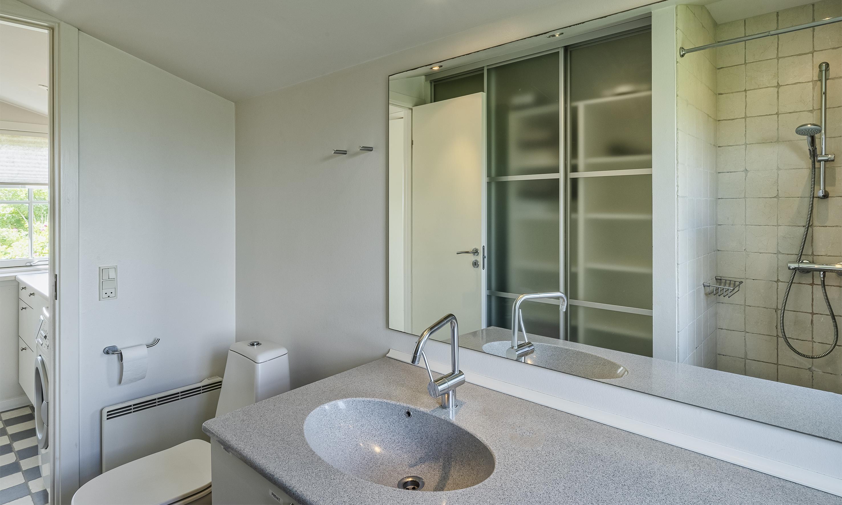 Badezimmer mit Toilette, Dusche und Waschbecken