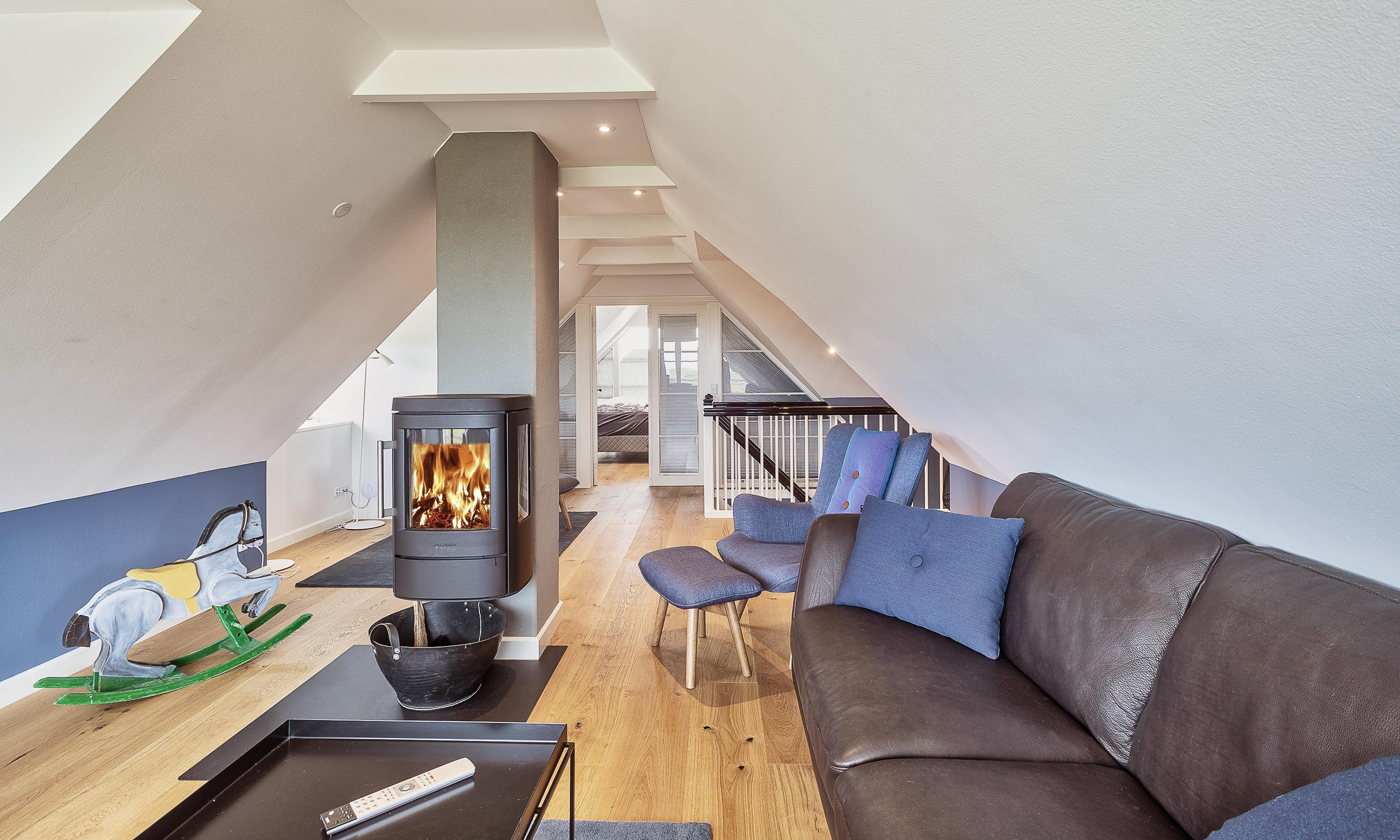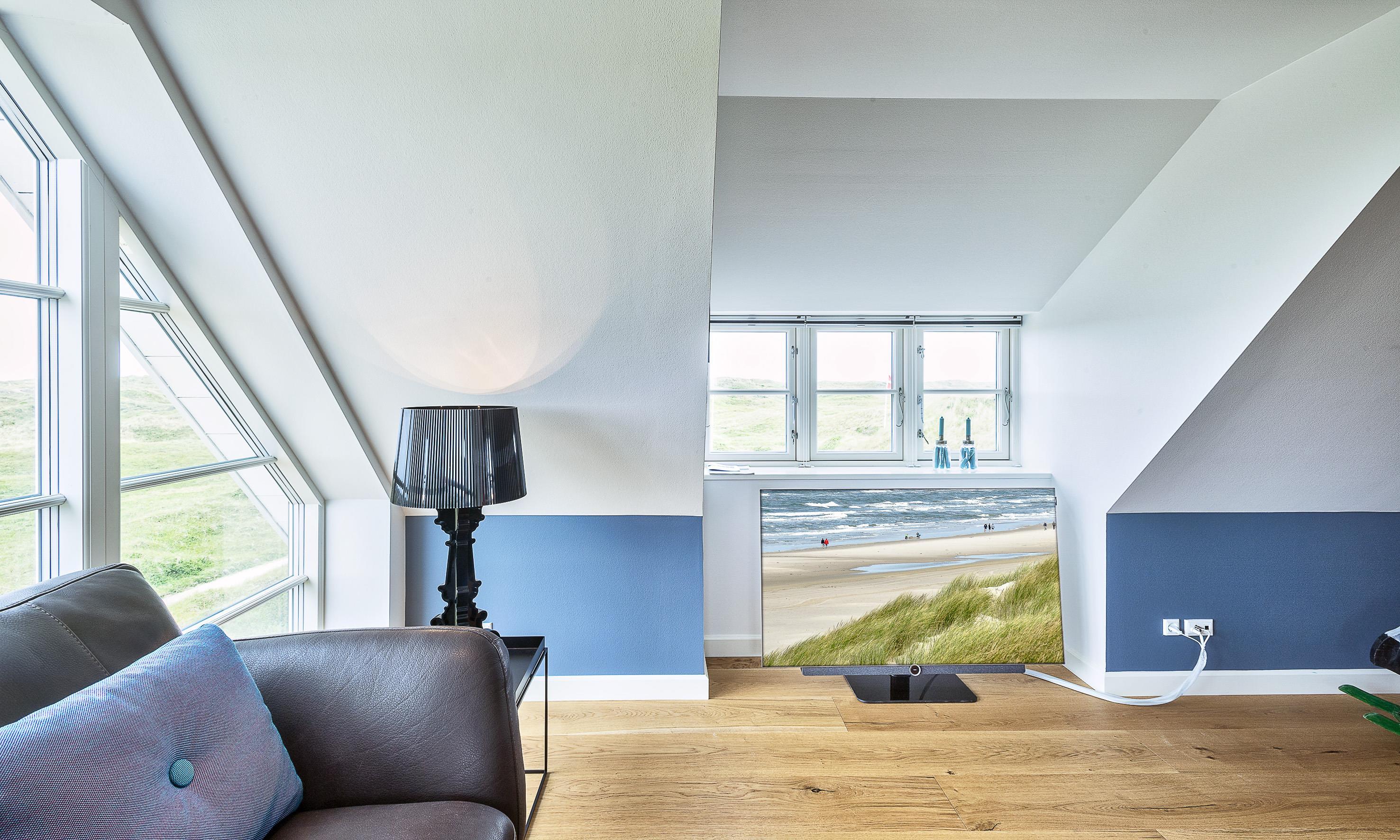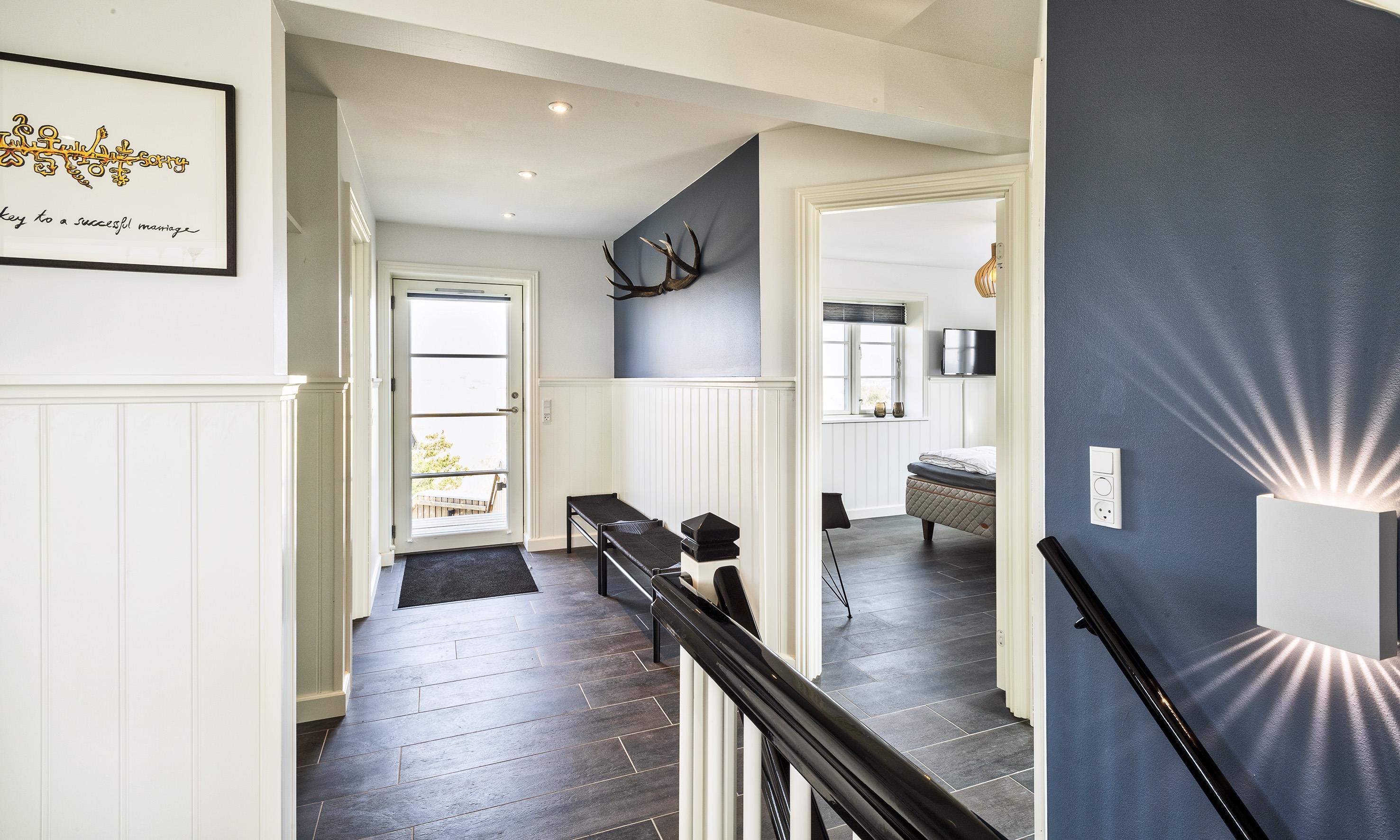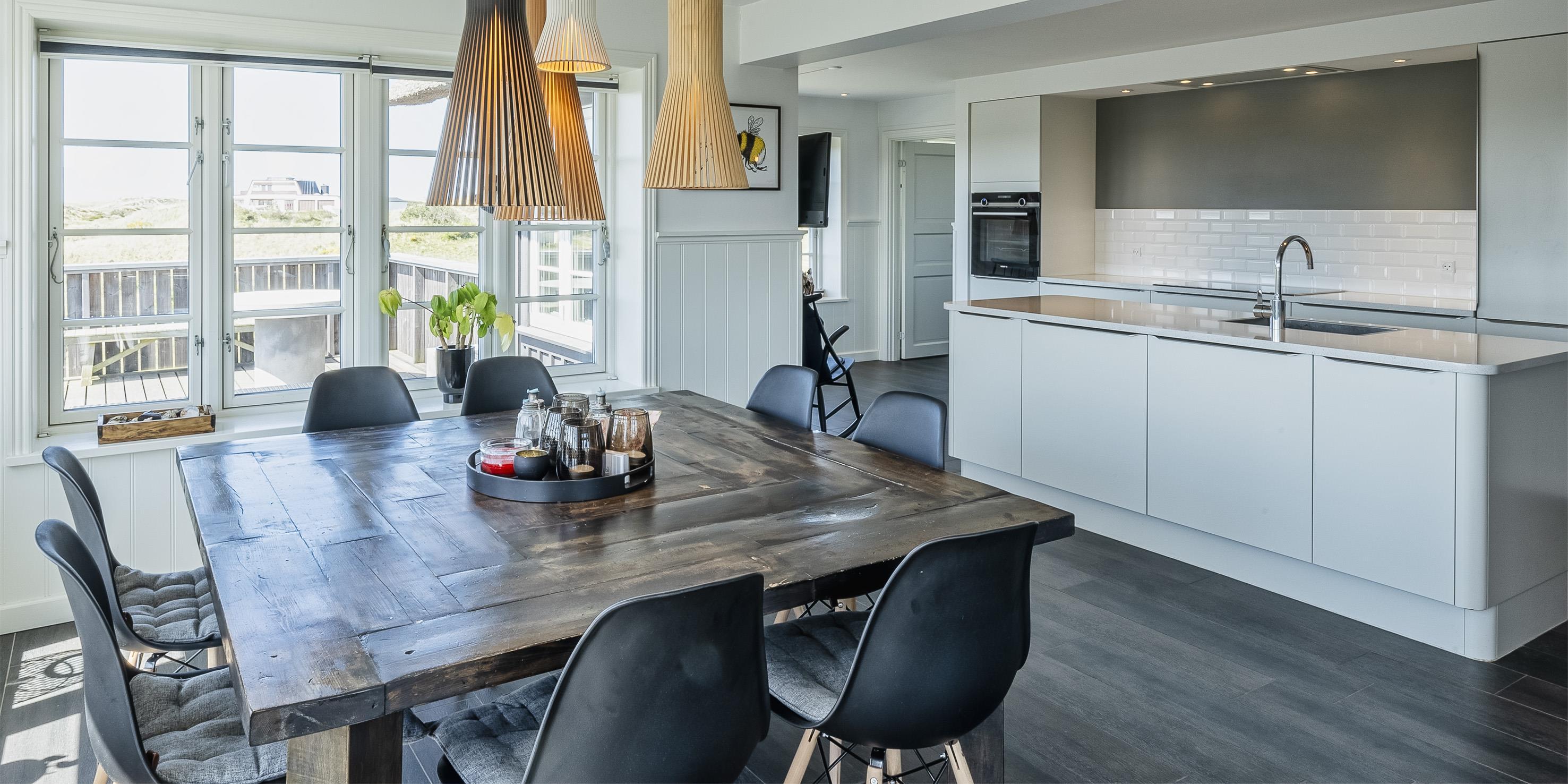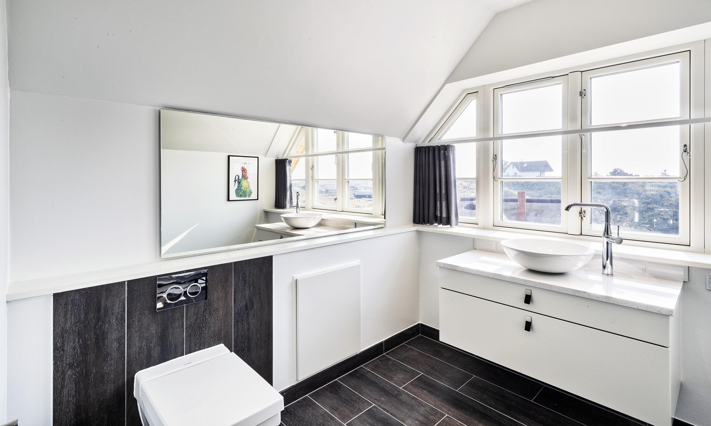 Geschmackvolles, reetgedecktes Ferienhaus über drei Etagen. Es ist für 8 Personen ausgestattet. Das Ferienhaus befindet sich auf einem ca. 3200 qm grossem Dünengrundstück. Über eine lange Treppe gelangen Sie zu diesen Ferienhaus. Der Strand ist ca. 200 vom Haus entfernt. Im Erdgeschoss befinden sich der Eingangsbereich und ein grosszügiger Küchenbereich mit Zugang zum Wintergarten. Hier in dem Wintergarten befindet sich ein Kaminofen, der eine gemütliche Wärme ausstrahlt. Im ganzen Ferienhaus ist eine Fussbodenheizung verlegt. Diese wird mit einer Luft/Warme Anlage betrieben, dadurch ist es im Verbrauch sehr energiesparend. Der Küchenbereich ist mit einem Herd mit Cerankochfeld, einem Backofen in arbeitshöhe, einer Geschirrspülmaschine und einer Kühl- und Gefrierkombination ausgestattet. 4 Schlafzimmer: DB + DB + DB + DB.Desweiteren gibt es auf dieser Ebene ein Badezimmer und drei Schlafzimmer mit je einem Doppelbett (2 mal 90 x 200 Betten). Das Badezimmer verfügt über ein Handwaschbecken, einem WC und einer Dusche. Über eine schöne Holztreppe gelangen Sie dann ins Obergeschoss und befinden sich dann gleich in den schönen Wohnbereich, der Ihnen einen tollen Panoramablick durch die grosse Fensterfront bietet. Sie können hier diesen tollen Ausblick richtig geniessen. Dazu den zweiten Kamin angeheizt, können Sie richtig entspannen. Das ist Erholung pur. Das Fernsehprogramm empfangen Sie über eine Parabolantenne (es gibt allerdings keine dänischen Programme). Desweiteren finden Sie hier im Obergeschoss ein grosses Schlafzimmer mit einem Doppelbett (2 mal 105x200 cm Betten). Ein zweites Badezimmer mit einem Handwaschbecken, einem WC und einer Dusche steht den Gästen auf dieser Etage ebenfalls zur Verfügung. Über diese schöne Holztreppe gelangen Sie dann auch in das Kellergeschoss. Ein grosser Vorraum bietet viel Platz für alles mögliche. Hier befindet sich das grosse Masterbadezimmer. Es ist mit einem Whirlpool, einem Handwaschbecken und einer Dusche ausgestattet. Von diesem Badezimmer geht dann separat die Sauna ab und auch ein weiteres WC mit einem Handwaschbecken. Der Hauswirtschaftsraum befindet sich auch hier im Kellergeschoss. Hier ist die kombinierte Waschmaschine mit Trockner untergebracht. Das Ferienhaus verfügt über einen Internetanschluss (W-Lan). Es sind max. drei Haustiere erlaubt. Der grosszügige Terrassenbereich führt fast rund ums Haus. Zusätzlich befindet sich ein Anschluss am Ferienhaus für El-Fahrzeuge. Das Ferienhaus verfügt über ein Gas Weber Grill. Die Benutzung pro Mal beträgt 30,- Dkr. Bitte beachten Sie: der Grill muss nach jedem Gebrauch wieder gereinigt zurück gestellt werden. Rauchen ist nicht erlaubt. Das Ferienhaus ist 2019 erbaut.