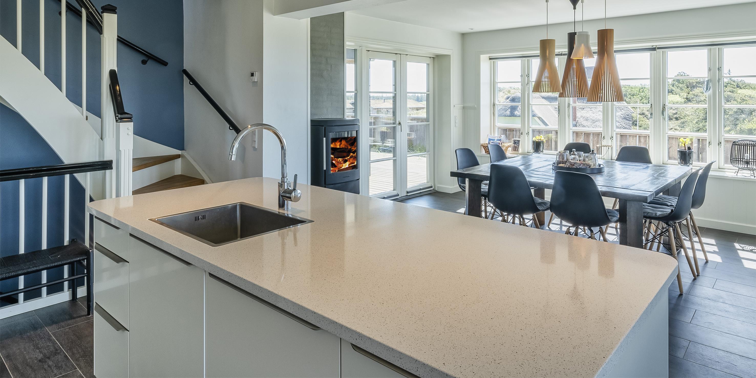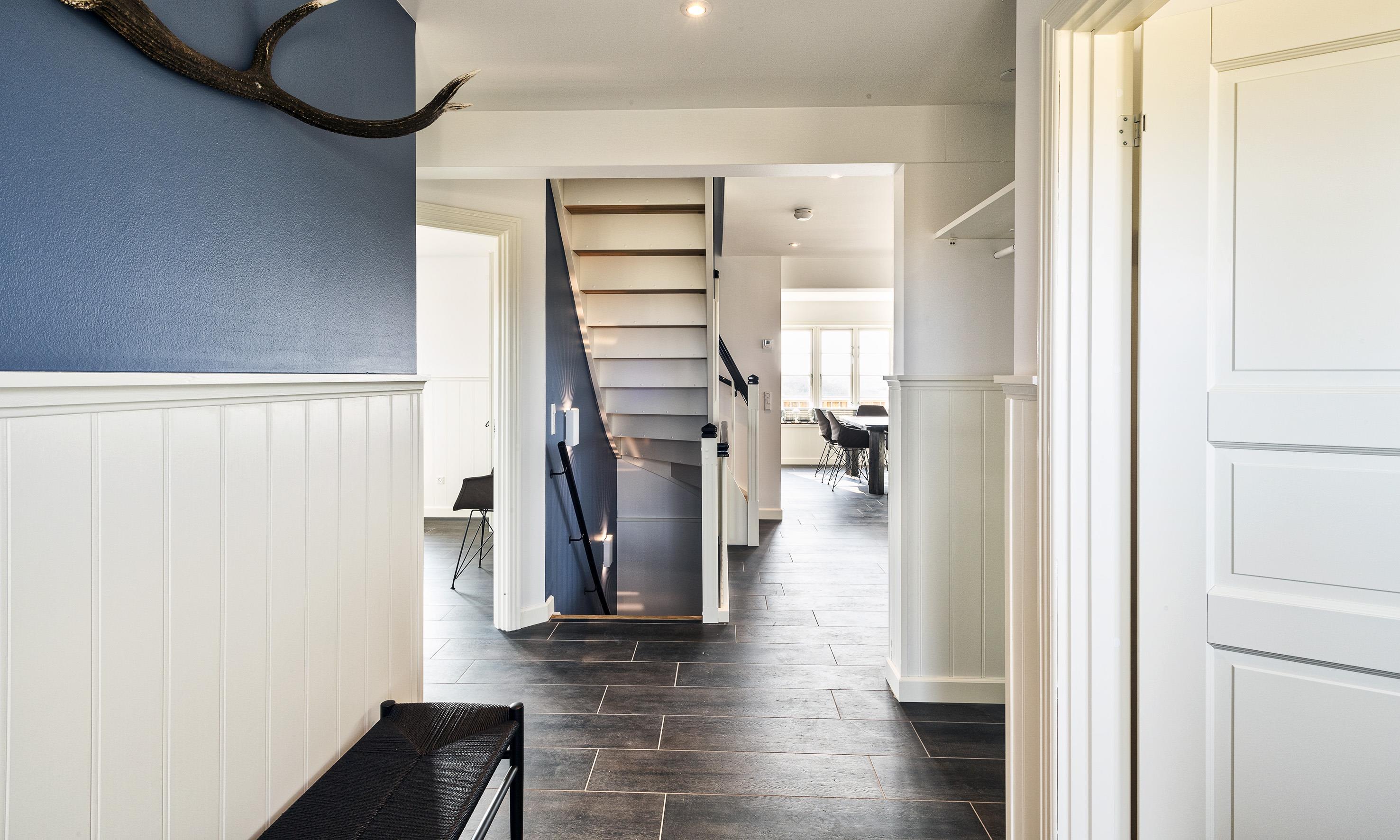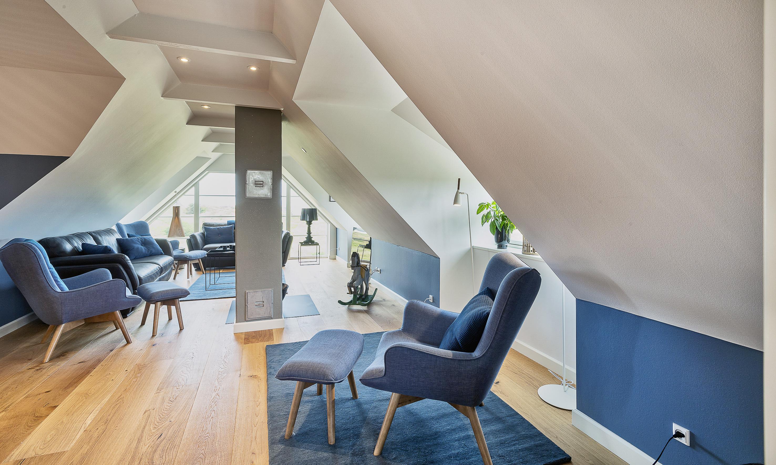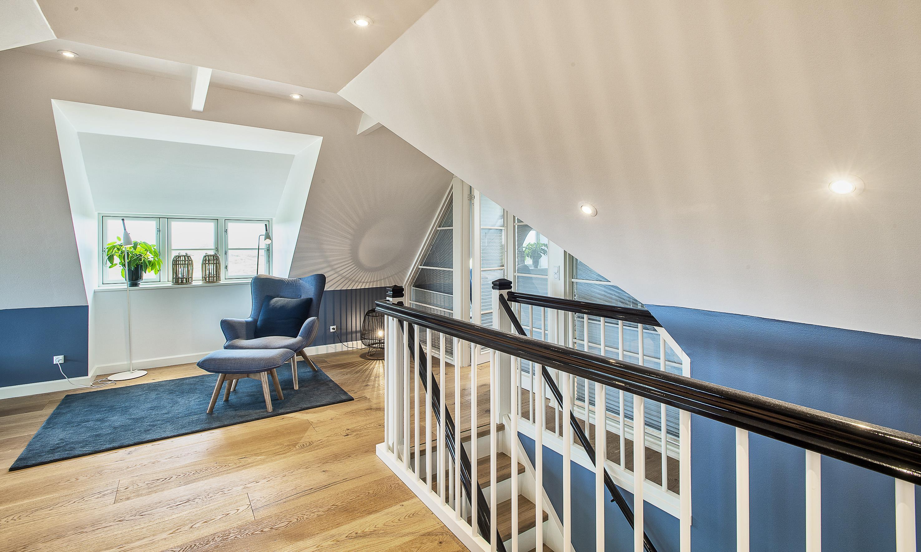Geschmackvolles, reetgedecktes Ferienhaus über drei Etagen. Es ist für 8 Personen ausgestattet. Das Ferienhaus befindet sich auf einem ca. 3200 qm grossem Dünengrundstück. Über eine lange Treppe gelangen Sie zu diesen Ferienhaus. Der Strand ist ca. 200 vom Haus entfernt. Im Erdgeschoss befinden sich der Eingangsbereich und ein grosszügiger Küchenbereich mit Zugang zum Wintergarten. Hier in dem Wintergarten befindet sich ein Kaminofen, der eine gemütliche Wärme ausstrahlt. Im ganzen Ferienhaus ist eine Fussbodenheizung verlegt. Diese wird mit einer Luft/Warme Anlage betrieben, dadurch ist es im Verbrauch sehr energiesparend. Der Küchenbereich ist mit einem Herd mit Cerankochfeld, einem Backofen in arbeitshöhe, einer Geschirrspülmaschine und einer Kühl- und Gefrierkombination ausgestattet. 4 Schlafzimmer: DB + DB + DB + DB.Desweiteren gibt es auf dieser Ebene ein Badezimmer und drei Schlafzimmer mit je einem Doppelbett (2 mal 90 x 200 Betten). Das Badezimmer verfügt über ein Handwaschbecken, einem WC und einer Dusche. Über eine schöne Holztreppe gelangen Sie dann ins Obergeschoss und befinden sich dann gleich in den schönen Wohnbereich, der Ihnen einen tollen Panoramablick durch die grosse Fensterfront bietet. Sie können hier diesen tollen Ausblick richtig geniessen. Dazu den zweiten Kamin angeheizt, können Sie richtig entspannen. Das ist Erholung pur. Das Fernsehprogramm empfangen Sie über eine Parabolantenne (es gibt allerdings keine dänischen Programme). Desweiteren finden Sie hier im Obergeschoss ein grosses Schlafzimmer mit einem Doppelbett (2 mal 105x200 cm Betten). Ein zweites Badezimmer mit einem Handwaschbecken, einem WC und einer Dusche steht den Gästen auf dieser Etage ebenfalls zur Verfügung. Über diese schöne Holztreppe gelangen Sie dann auch in das Kellergeschoss. Ein grosser Vorraum bietet viel Platz für alles mögliche. Hier befindet sich das grosse Masterbadezimmer. Es ist mit einem Whirlpool, einem Handwaschbecken und einer Dusche ausgestattet. Von diesem Badezimmer geht dann separat die Sauna ab und auch ein weiteres WC mit einem Handwaschbecken. Der Hauswirtschaftsraum befindet sich auch hier im Kellergeschoss. Hier ist die kombinierte Waschmaschine mit Trockner untergebracht. Das Ferienhaus verfügt über einen Internetanschluss (W-Lan). Es sind max. drei Haustiere erlaubt. Der grosszügige Terrassenbereich führt fast rund ums Haus. Zusätzlich befindet sich ein Anschluss am Ferienhaus für El-Fahrzeuge. Das Ferienhaus verfügt über ein Gas Weber Grill. Die Benutzung pro Mal beträgt 30,- Dkr. Bitte beachten Sie: der Grill muss nach jedem Gebrauch wieder gereinigt zurück gestellt werden. Rauchen ist nicht erlaubt. Das Ferienhaus ist 2019 erbaut.