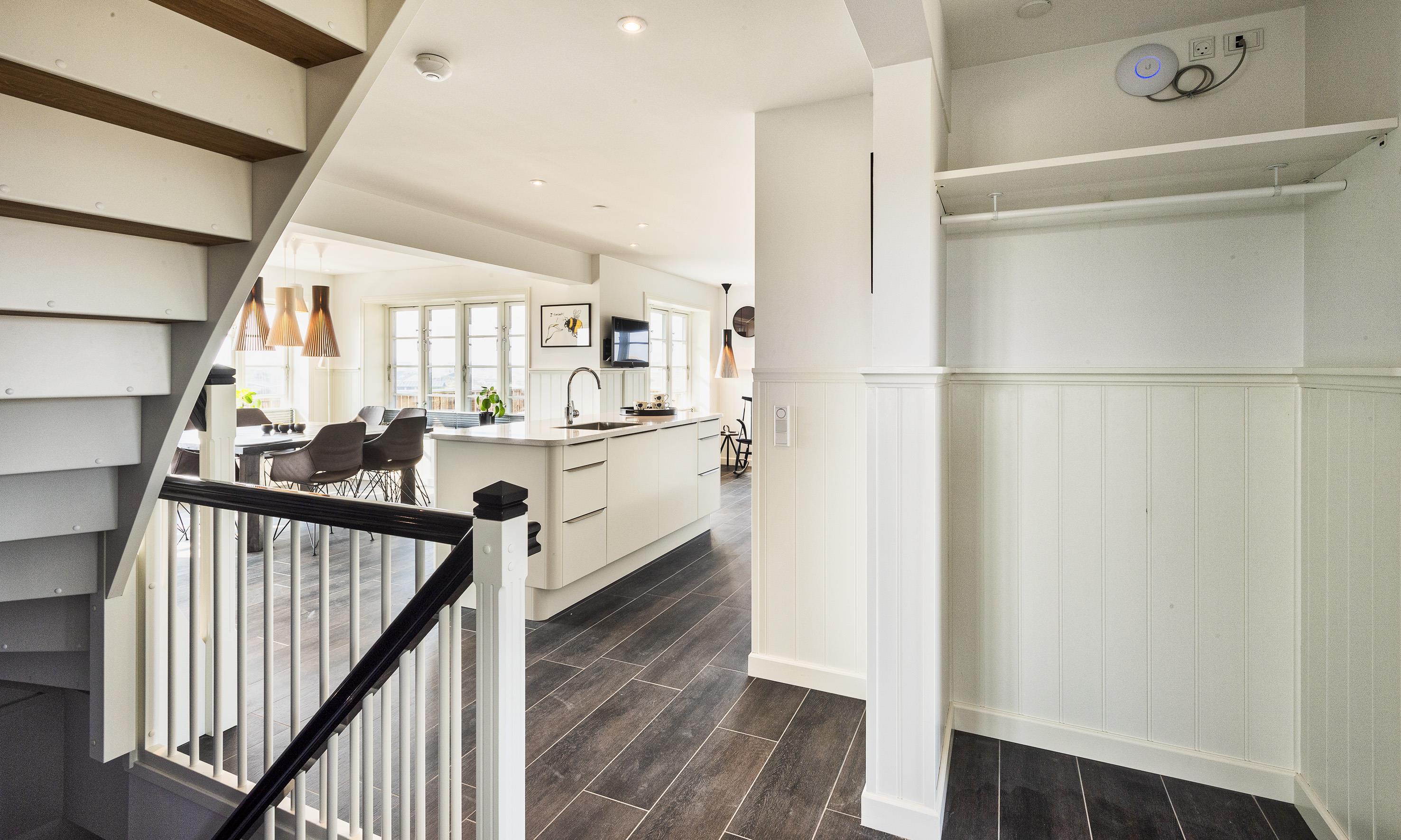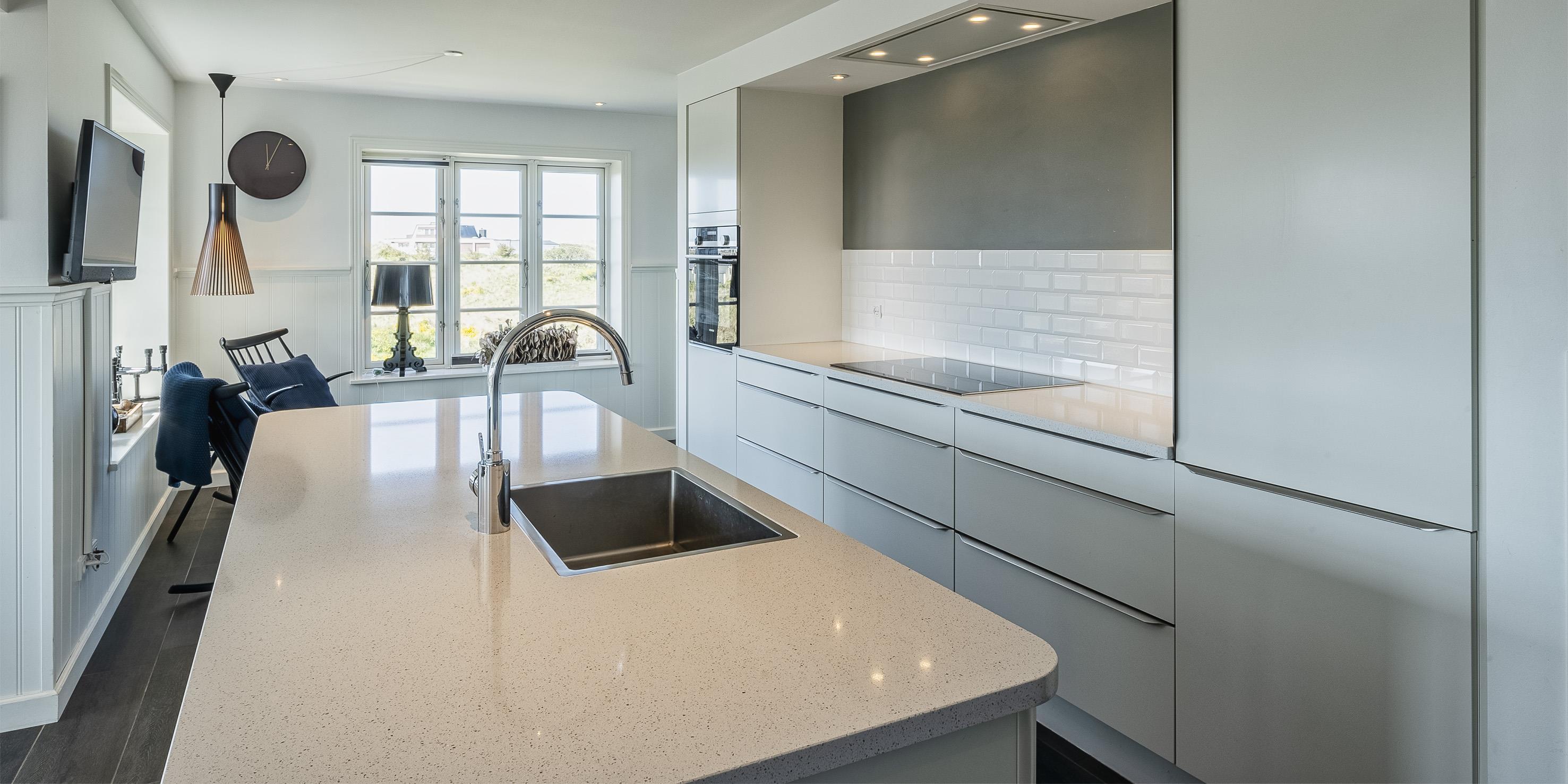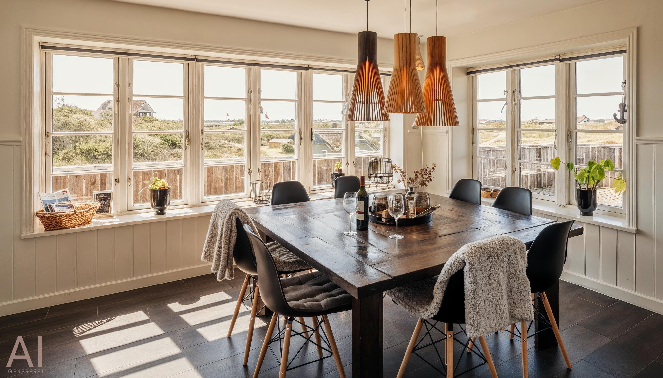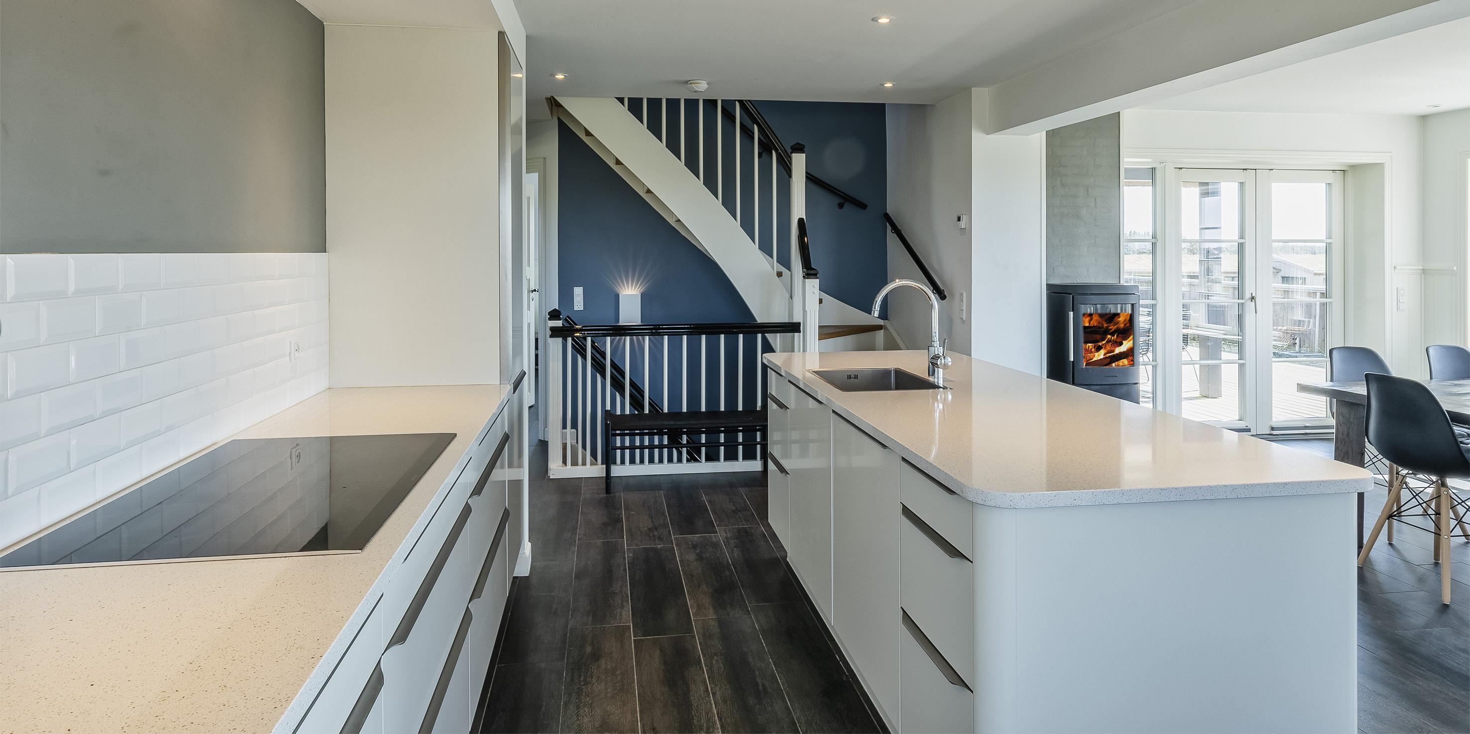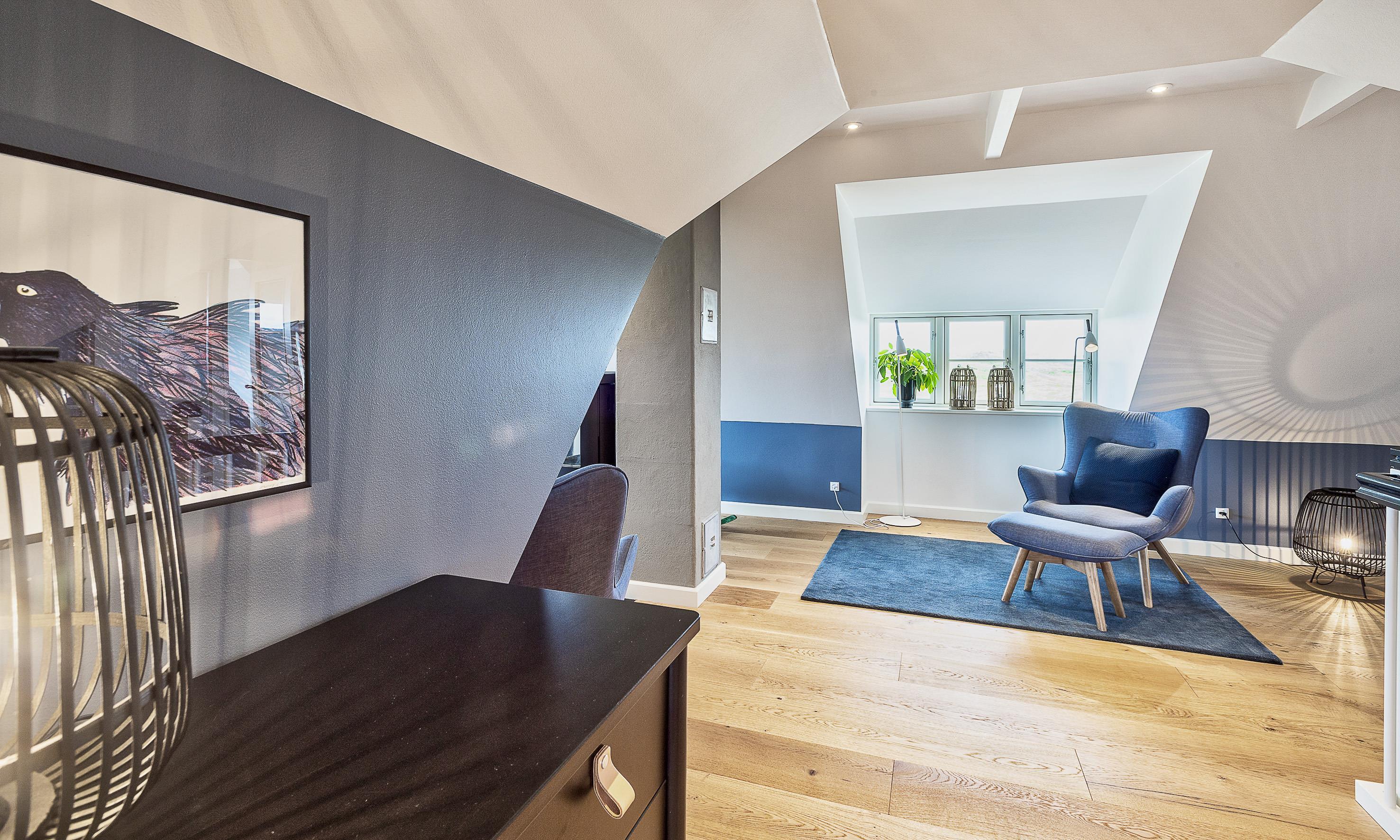 Geschmackvolles, reetgedecktes Ferienhaus über drei Etagen. Es ist für 8 Personen ausgestattet. Das Ferienhaus befindet sich auf einem ca. 3200 qm grossem Dünengrundstück. Über eine lange Treppe gelangen Sie zu diesen Ferienhaus. Der Strand ist ca. 200 vom Haus entfernt. Im Erdgeschoss befinden sich der Eingangsbereich und ein grosszügiger Küchenbereich mit Zugang zum Wintergarten. Hier in dem Wintergarten befindet sich ein Kaminofen, der eine gemütliche Wärme ausstrahlt. Im ganzen Ferienhaus ist eine Fussbodenheizung verlegt. Diese wird mit einer Luft/Warme Anlage betrieben, dadurch ist es im Verbrauch sehr energiesparend. Der Küchenbereich ist mit einem Herd mit Cerankochfeld, einem Backofen in arbeitshöhe, einer Geschirrspülmaschine und einer Kühl- und Gefrierkombination ausgestattet. 4 Schlafzimmer: DB + DB + DB + DB.Desweiteren gibt es auf dieser Ebene ein Badezimmer und drei Schlafzimmer mit je einem Doppelbett (2 mal 90 x 200 Betten). Das Badezimmer verfügt über ein Handwaschbecken, einem WC und einer Dusche. Über eine schöne Holztreppe gelangen Sie dann ins Obergeschoss und befinden sich dann gleich in den schönen Wohnbereich, der Ihnen einen tollen Panoramablick durch die grosse Fensterfront bietet. Sie können hier diesen tollen Ausblick richtig geniessen. Dazu den zweiten Kamin angeheizt, können Sie richtig entspannen. Das ist Erholung pur. Das Fernsehprogramm empfangen Sie über eine Parabolantenne (es gibt allerdings keine dänischen Programme). Desweiteren finden Sie hier im Obergeschoss ein grosses Schlafzimmer mit einem Doppelbett (2 mal 105x200 cm Betten). Ein zweites Badezimmer mit einem Handwaschbecken, einem WC und einer Dusche steht den Gästen auf dieser Etage ebenfalls zur Verfügung. Über diese schöne Holztreppe gelangen Sie dann auch in das Kellergeschoss. Ein grosser Vorraum bietet viel Platz für alles mögliche. Hier befindet sich das grosse Masterbadezimmer. Es ist mit einem Whirlpool, einem Handwaschbecken und einer Dusche ausgestattet. Von diesem Badezimmer geht dann separat die Sauna ab und auch ein weiteres WC mit einem Handwaschbecken. Der Hauswirtschaftsraum befindet sich auch hier im Kellergeschoss. Hier ist die kombinierte Waschmaschine mit Trockner untergebracht. Das Ferienhaus verfügt über einen Internetanschluss (W-Lan). Es sind max. drei Haustiere erlaubt. Der grosszügige Terrassenbereich führt fast rund ums Haus. Zusätzlich befindet sich ein Anschluss am Ferienhaus für El-Fahrzeuge. Das Ferienhaus verfügt über ein Gas Weber Grill. Die Benutzung pro Mal beträgt 30,- Dkr. Bitte beachten Sie: der Grill muss nach jedem Gebrauch wieder gereinigt zurück gestellt werden. Rauchen ist nicht erlaubt. Das Ferienhaus ist 2019 erbaut.