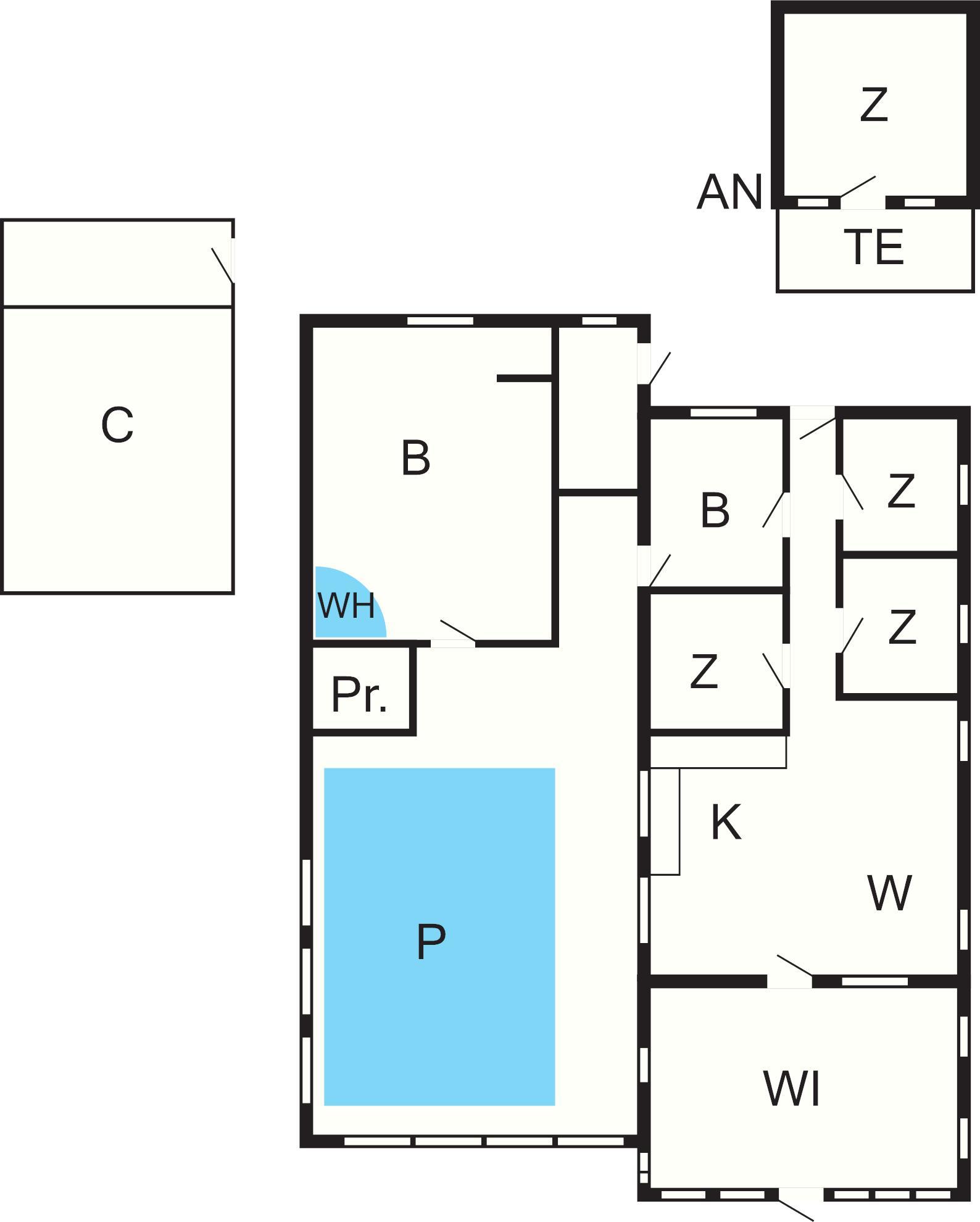 Hauptanziehungspunkt dieses Ferienhauses ist sicherlich der geräumige Poolraum, in dem Sie von einem 23 m²