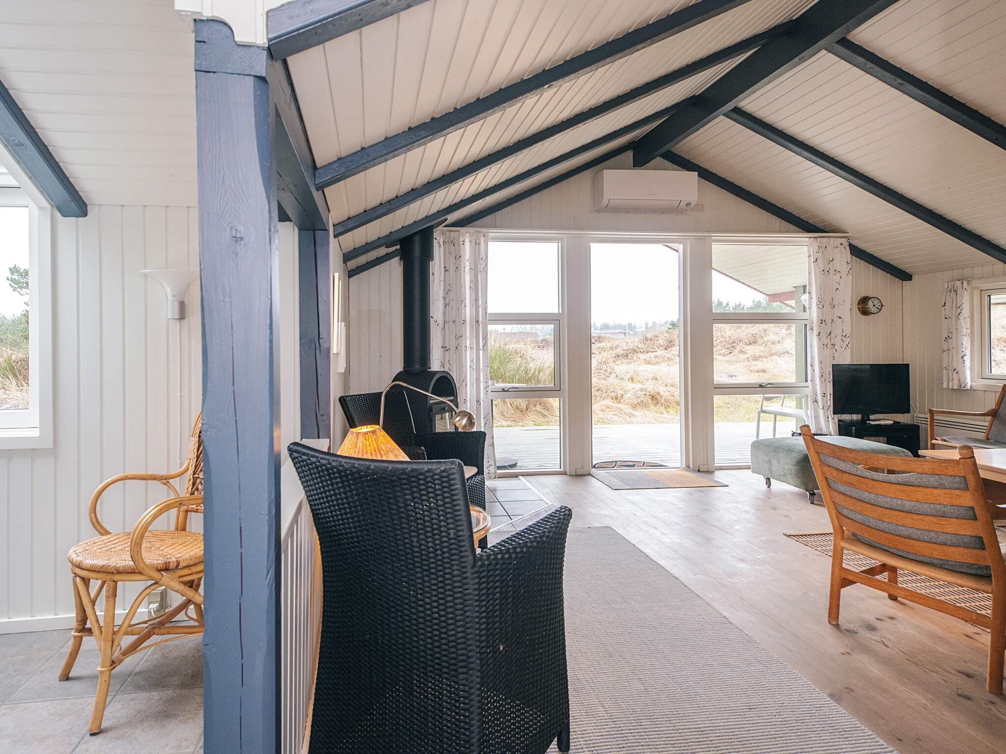 Gemütliches Ferienhaus mit Holzofen und Sauna nahe Vejers Strands breitem Sandstrand.