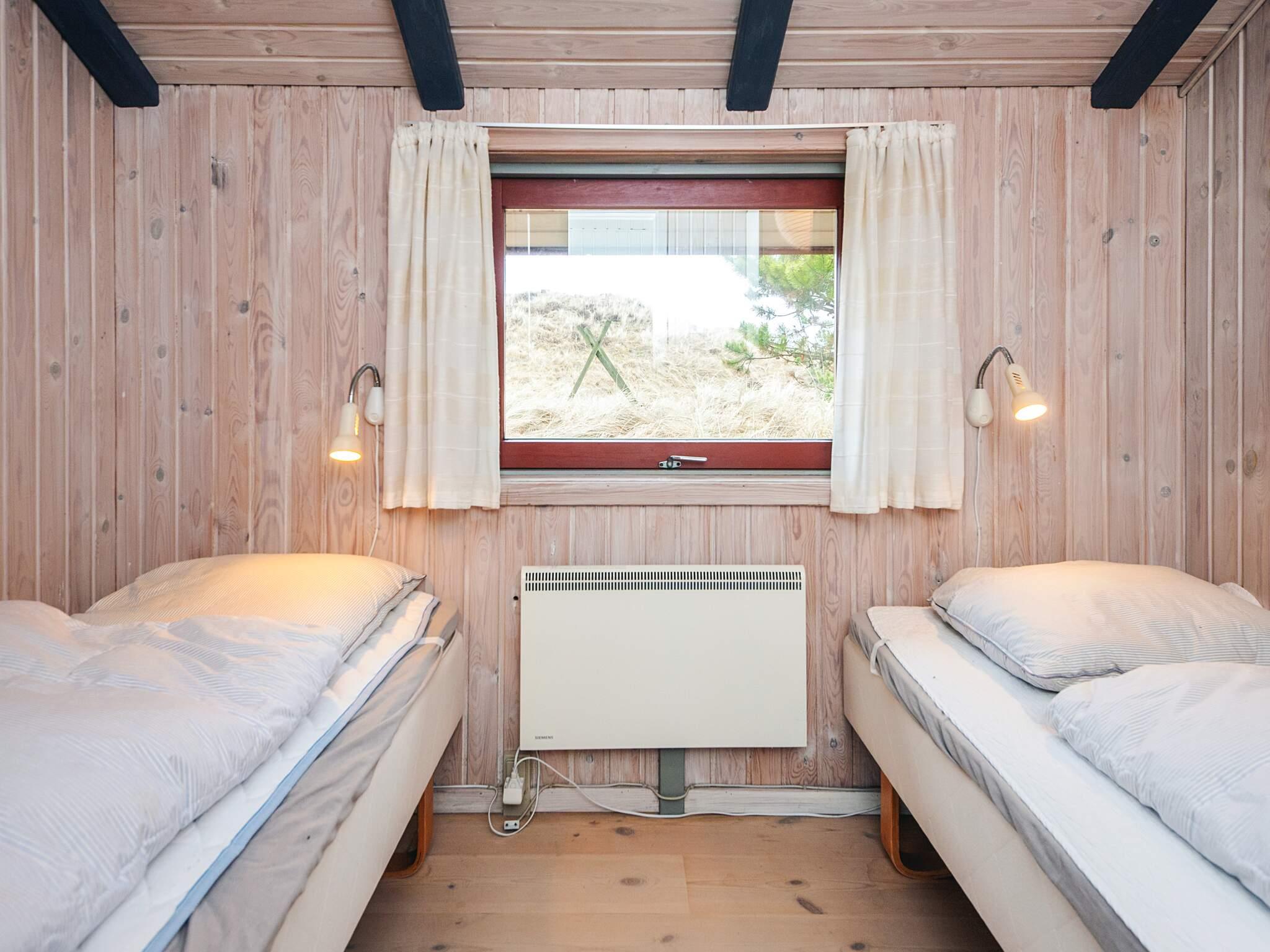 In den mit Heidekraut bewachsenen Dünen liegt dieses mit guten Möbeln und Holzofen ausgestattete Ferienhaus. Geschützte Terrassenfläche zum Sonnenbaden. Das Gebiet zeichnet sich durch breite Sandstrände aus. Keine Vermietung an Jugendgruppen.