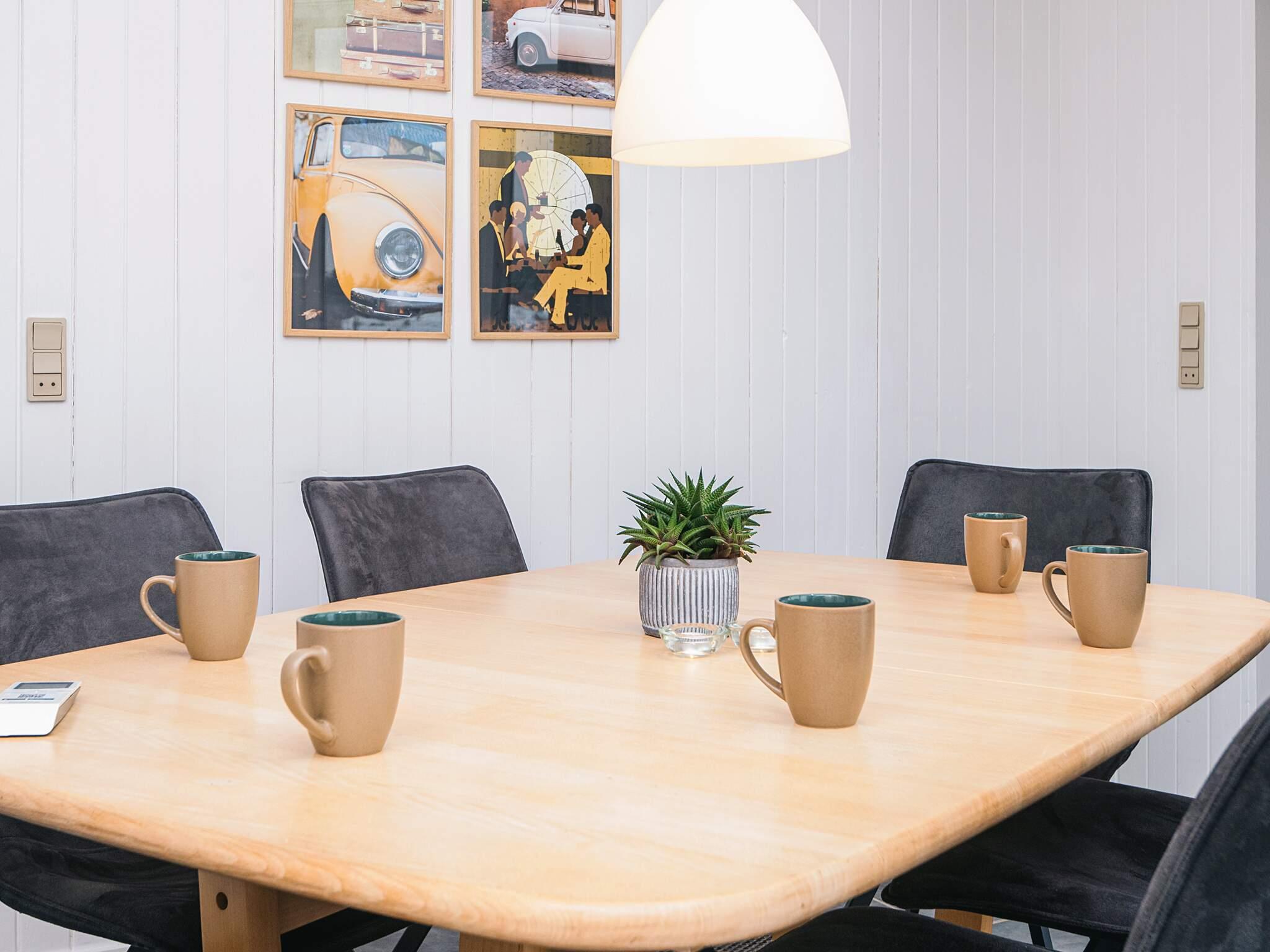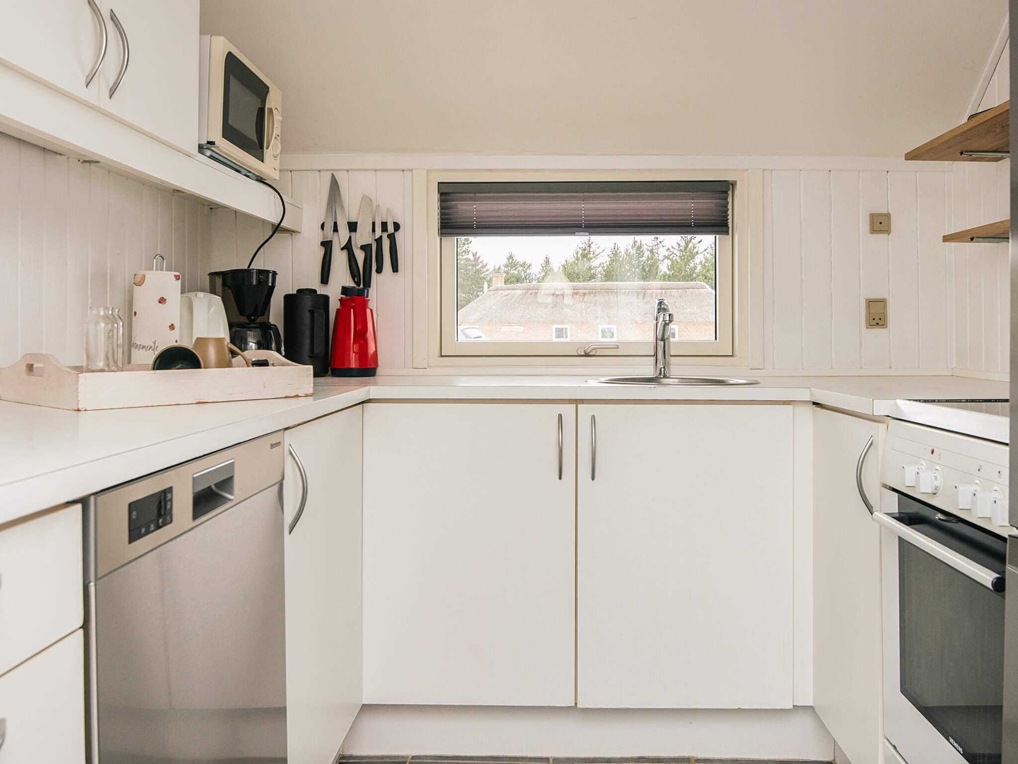 Schönes, helles Ferienhaus bei Vejers Strand und nahe einer der schönsten Strände Dänemarks. Im Haus gibt es ein gemütliches Wohnzimmer mit Holzofen und offener Verbindung zum Essbereich. Von dort erreicht man sowohl die Küche als auch den praktischen Flur, der Zugang zu allen vier Schlafzimmern des Ferienhauses bietet. Mehrere große Fenster sorgen für viel Licht im größten Teil des Hauses und bieten auch reichlich Gelegenheit, das Leben auf der Terrasse oder die auf dem Grundstück spielenden Kinder im Auge zu behalten.