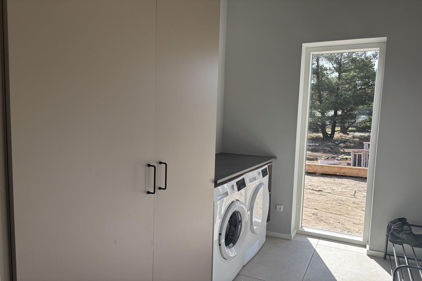 Das Ferienhaus empfängt dich mit einem praktischen und großzügigen Eingangsbereich mit Waschmaschine und Wäschetrockner sowie viel Platz für Jacken und Schuhe – ideal nach einem Tag am Strand oder in den Dünen.