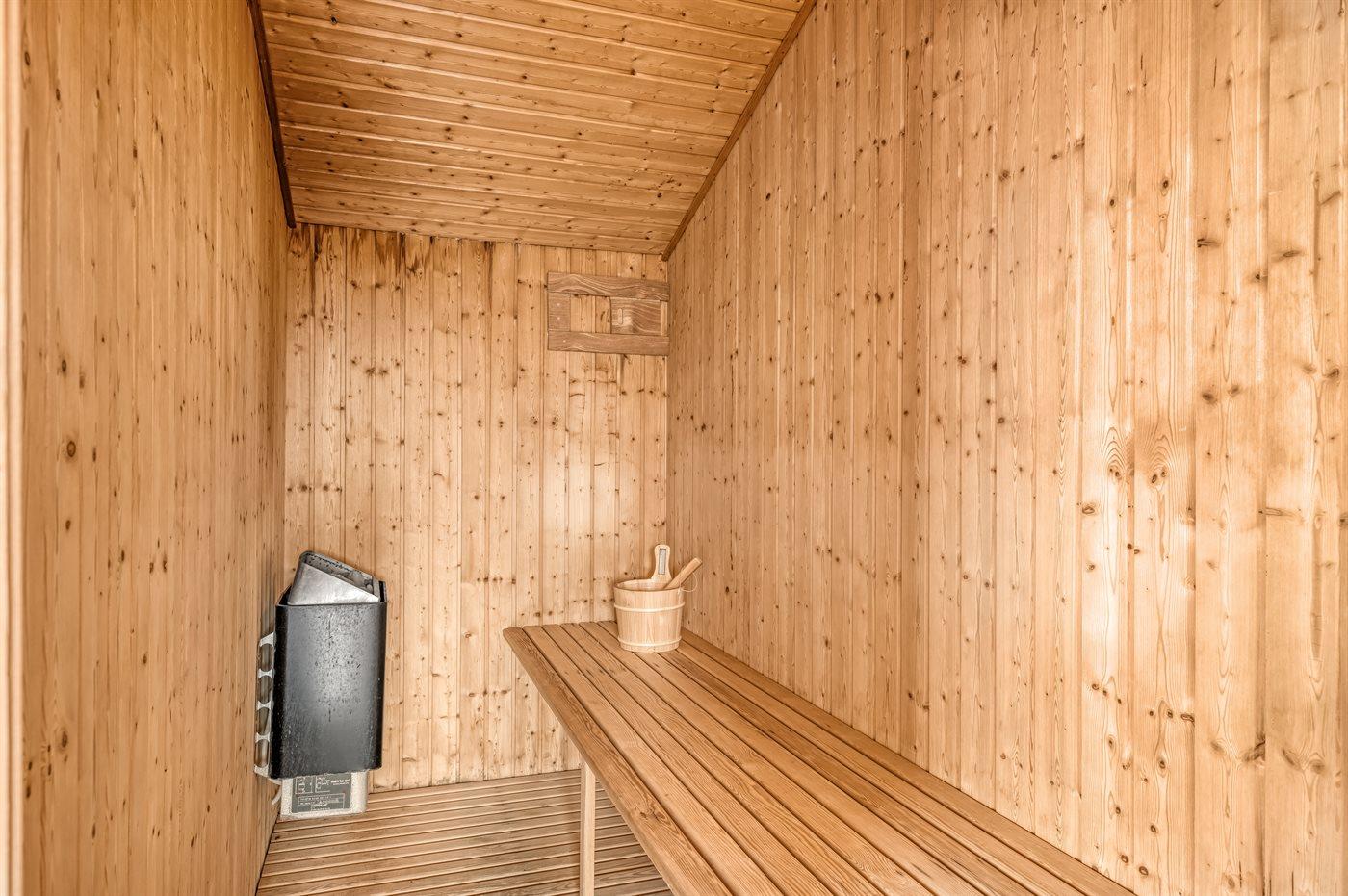 Es gibt 2 Badezimmer mit Duschnische und 2 Toiletten. Fußbodenheizung in 2 Badezimmern. Es steht eine Sauna zur Verfügung in der Sie sich so richtig entspannen können.