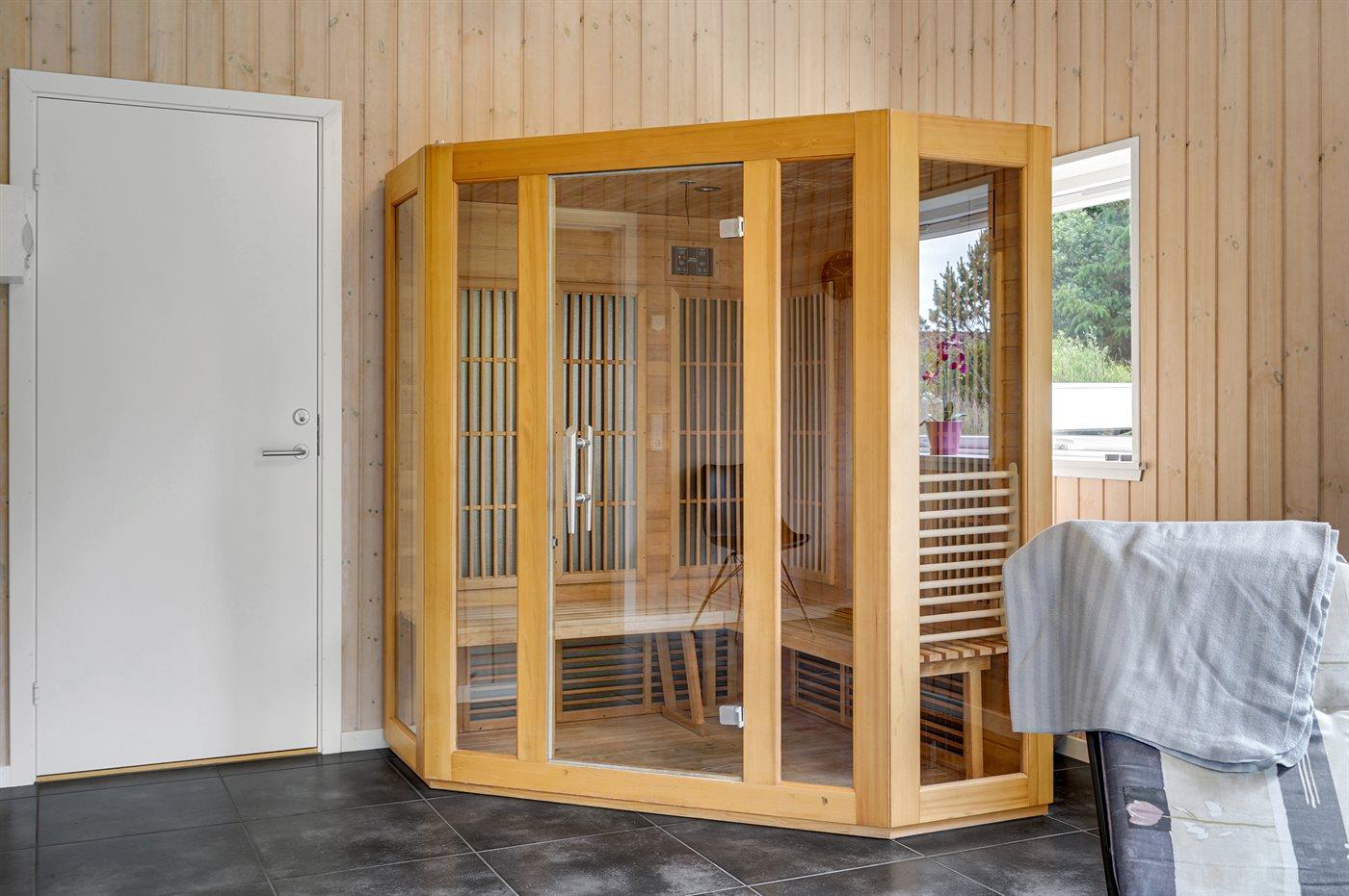 Es gibt 5 Badezimmer mit Duschnische und 5 Toiletten. Fußbodenheizung in 5 Badezimmern. Es steht eine Sauna zur Verfügung in der Sie sich so richtig entspannen können. Darüber hinaus ist eine Infrarotsauna vorhanden.