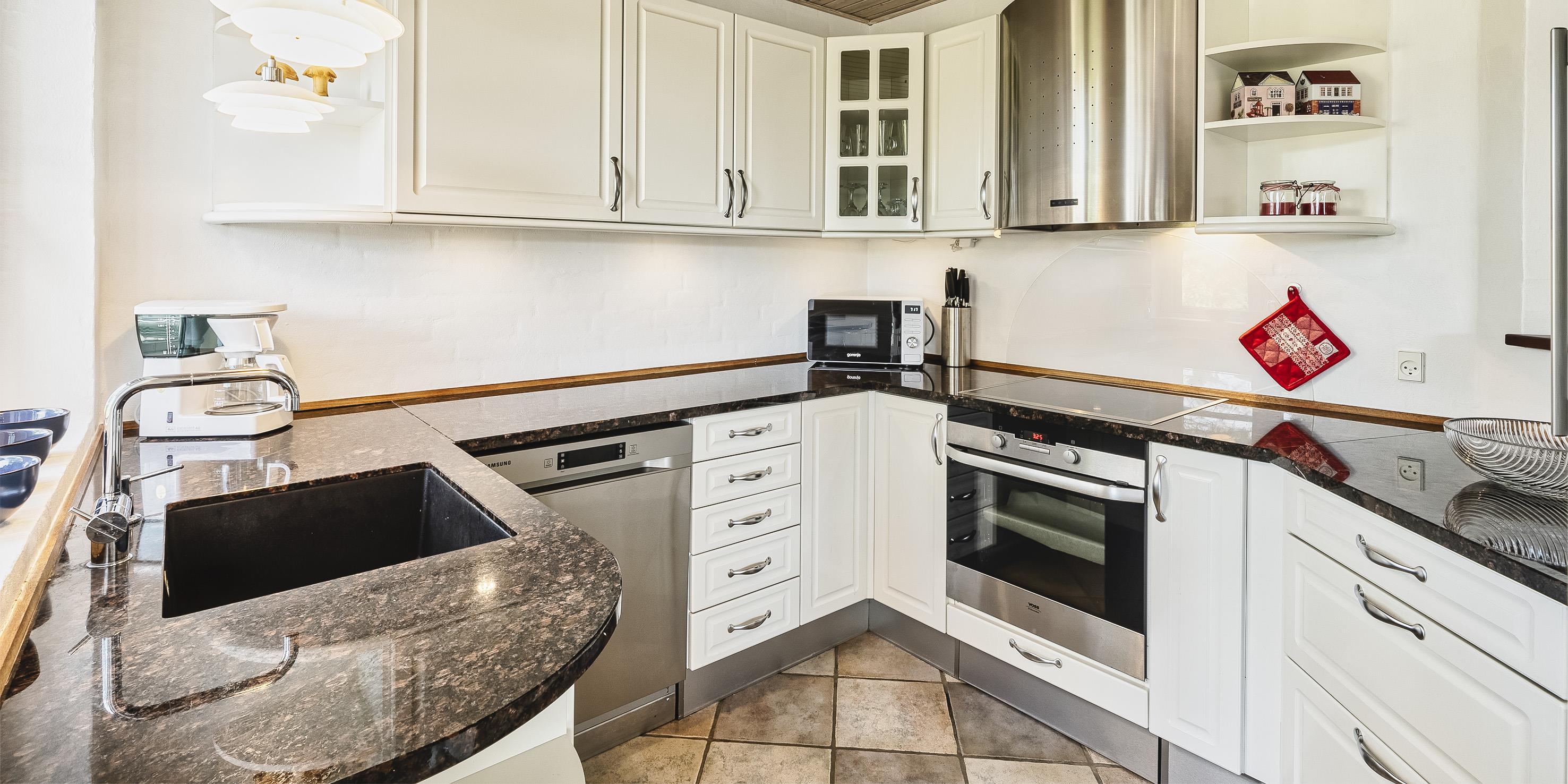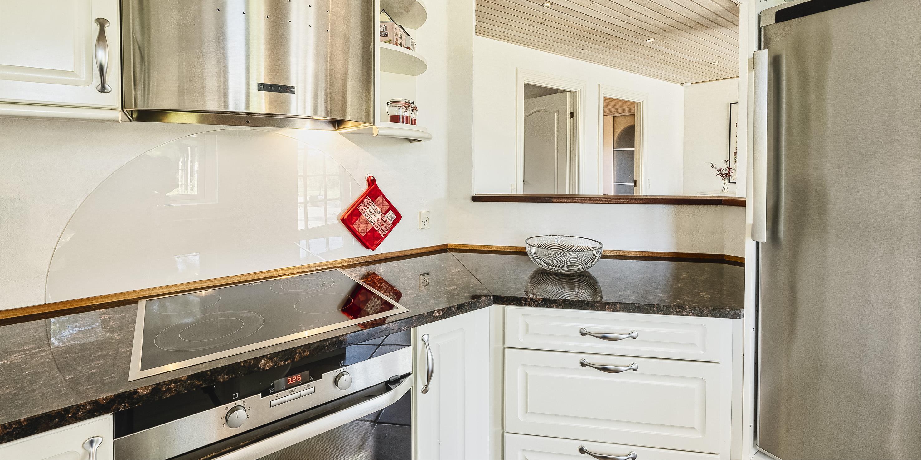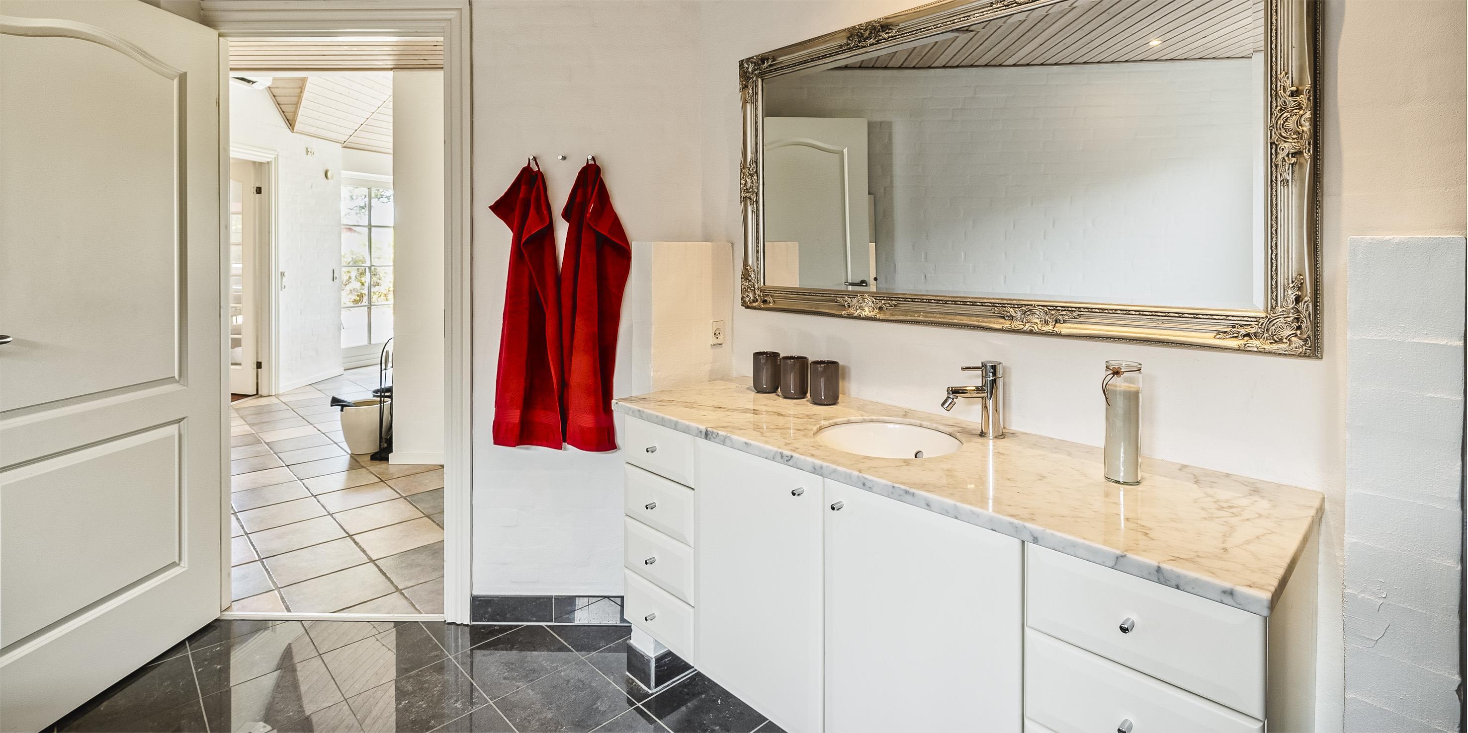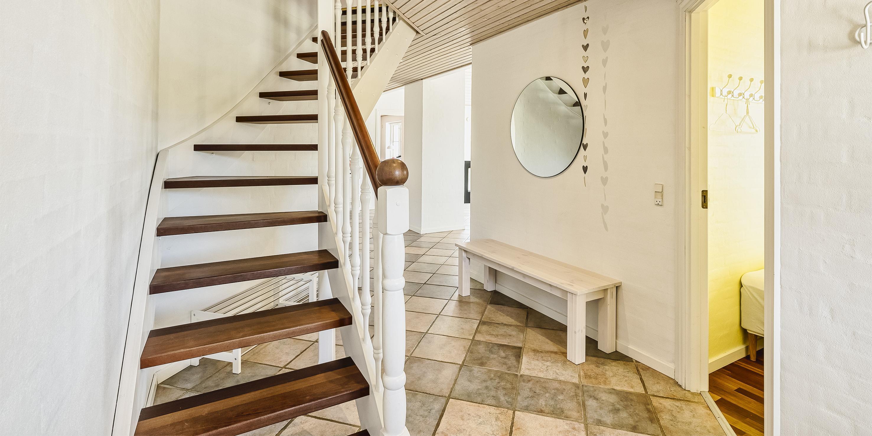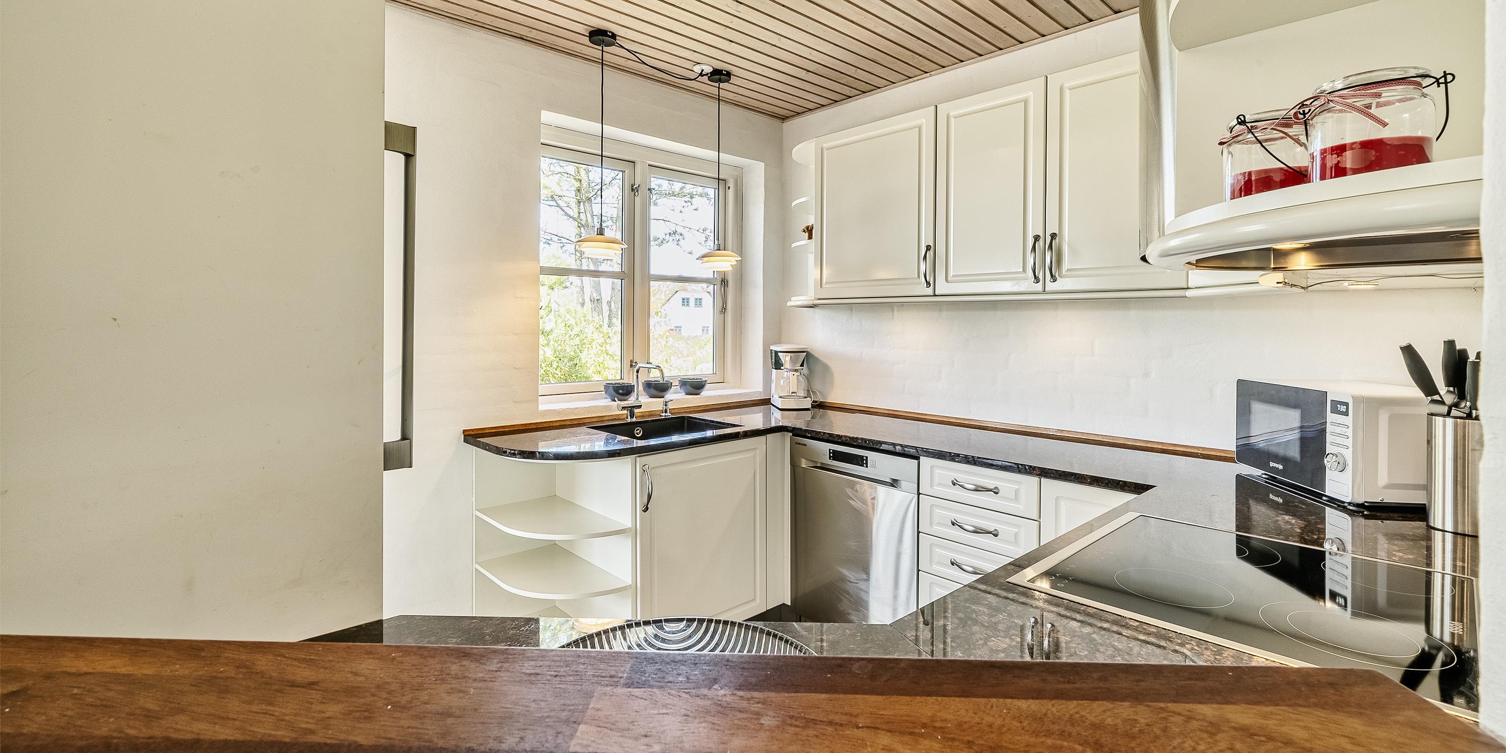 Neu renoviertes großes und aufregendes Aktivitätshaus in Vejers Strand. Das Haus ist ein idyllisches Reetdachsteinhaus mit einer beeindruckenden Wohnfläche von 195 Quadratmetern und einem separaten Aktivitätshaus von ca. 49 m2. Das Haus liegt in der Nähe von Geschäften und Restaurants auf einem großen, geschlossenen Grundstück von ca. 1663 m2. Ein paar Meter von Vejers Nordplantage und etwa 1850 Meter vom Strand entfernt. Das Grundstück ist komplett eingezäunt und durch eine kleine Mauer an der Vorderseite des Hauses vom Straßenbereich getrennt. Das Haus bietet eine schöne Atmosphäre, überall offen und mit einem großen Panoramafenster zum Garten. Das Haus ist ca. 7 Autominuten vom Stadtzentrum von Vejer entfernt, wo es mehrere Restaurants, eine Pizzeria, 2 Lebensmittelgeschäfte und einen Drops gibt, der Eis und Softeis verkauft. Das Sommerhaus bietet Platz für insgesamt 10 Bewohner. Der großzügige Eingangsbereich ist gefliest und bietet viel Platz für eine Garderobe und zusätzliche Ausstellungsfläche. Waschmaschine und Trockner befinden sich im separaten Hauswirtschaftsraum. Auch hier gibt es im Eingangsbereich eine Holztreppe, die in das Obergeschoss führt. Der Flur im Obergeschoss verfügt über ein Geländer, sodass Sie in den Essbereich hinunterblicken können. Es gibt 5 Schlafzimmer: DB + DB + DB + 2B + 2B. Auf dieser Etage befindet sich auch ein Badezimmer. Das Badezimmer ist mit einem Waschbecken, einer Toilette und einer Dusche ausgestattet. Das Regal besteht aus Holz, da das Waschbecken in die Holzplatte eingefasst ist und im Badezimmer auch eine Fußbodenheizung vorhanden ist. Im Erdgeschoss befinden sich direkt hinter dem Eingangsbereich die Küchenabteilung und der Essbereich. Beide sind im Bodenbereich gefliest und mit Fußbodenheizung ausgestattet. Der Essbereich ist großzügig ausgestattet mit einem schönen runden Esstisch, an dem alle Bewohner ihren Platz finden. Großes Panoramafenster mit Blick auf den Garten und Kamin vom Esstisch aus. Der an der Wand hängende Kamin sorgt für wohlige Wärme und strahlt pure Wärme aus. Dank der hohen Decke herrscht im Ferienhaus eine gute Atmosphäre. Die Küche ist modern und mit allem ausgestattet, was das Herz begehrt. Es verfügt über einen Herd mit Cerankochfeld, einen Backofen, einen Geschirrspüler, eine Mikrowelle und einen Kühlschrank. Der Bodenbereich im Flur und im Badezimmer ist mit Fußbodenheizung ausgestattet. Vom Esszimmer aus gelangt man durch eine Doppelglastür in das Wohnzimmer. Über dieser Tür befindet sich auch die Wärmepumpe. Mit dieser Wärmepumpe können Sie die Stromkosten senken, da sie energiesparend ist. Das Wohnzimmer ist mit einem Parkettboden ausgestattet und verfügt über eine gemütliche Sitzecke und einen Fernseher. Das TV-Programm empfangen Sie über Stofa, es stehen also nur 5-8 deutsche Sender zur Verfügung, Smart TV ist ebenfalls vorhanden. Vom Wohn- und Essbereich gibt es Zugang zur großen überdachten Holzterrasse. Im Erdgeschoss gibt es ein weiteres schönes Badezimmer mit Waschbecken, Toilette und Dusche. Hier finden Sie auch eine Sauna und einen Eckwhirlpool.