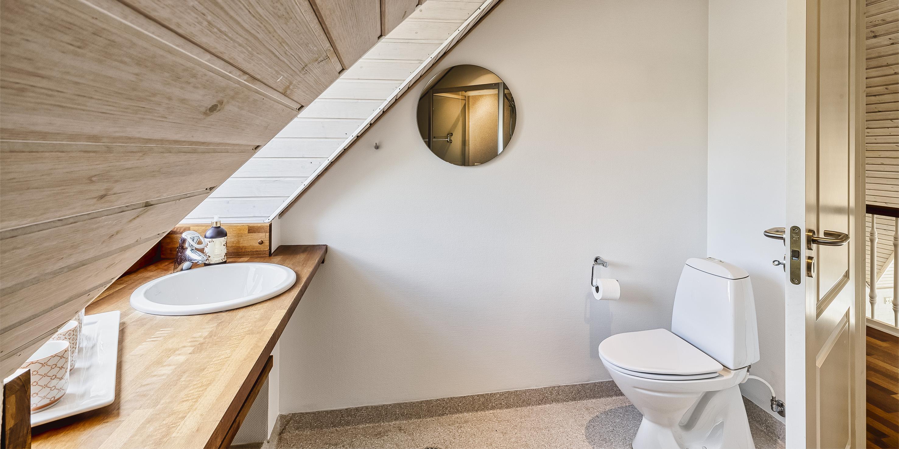 Badezimmer mit Toilette, Dusche und Waschbecken