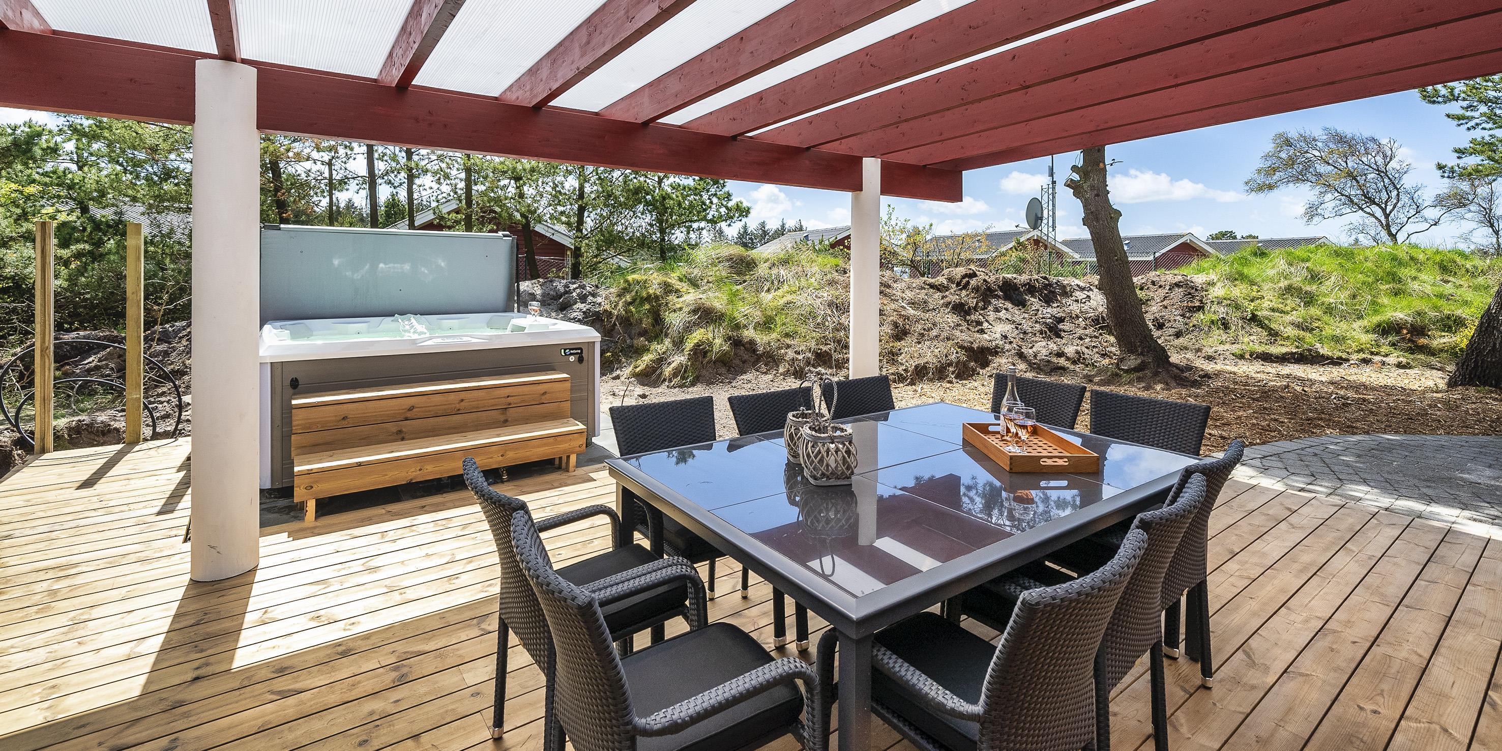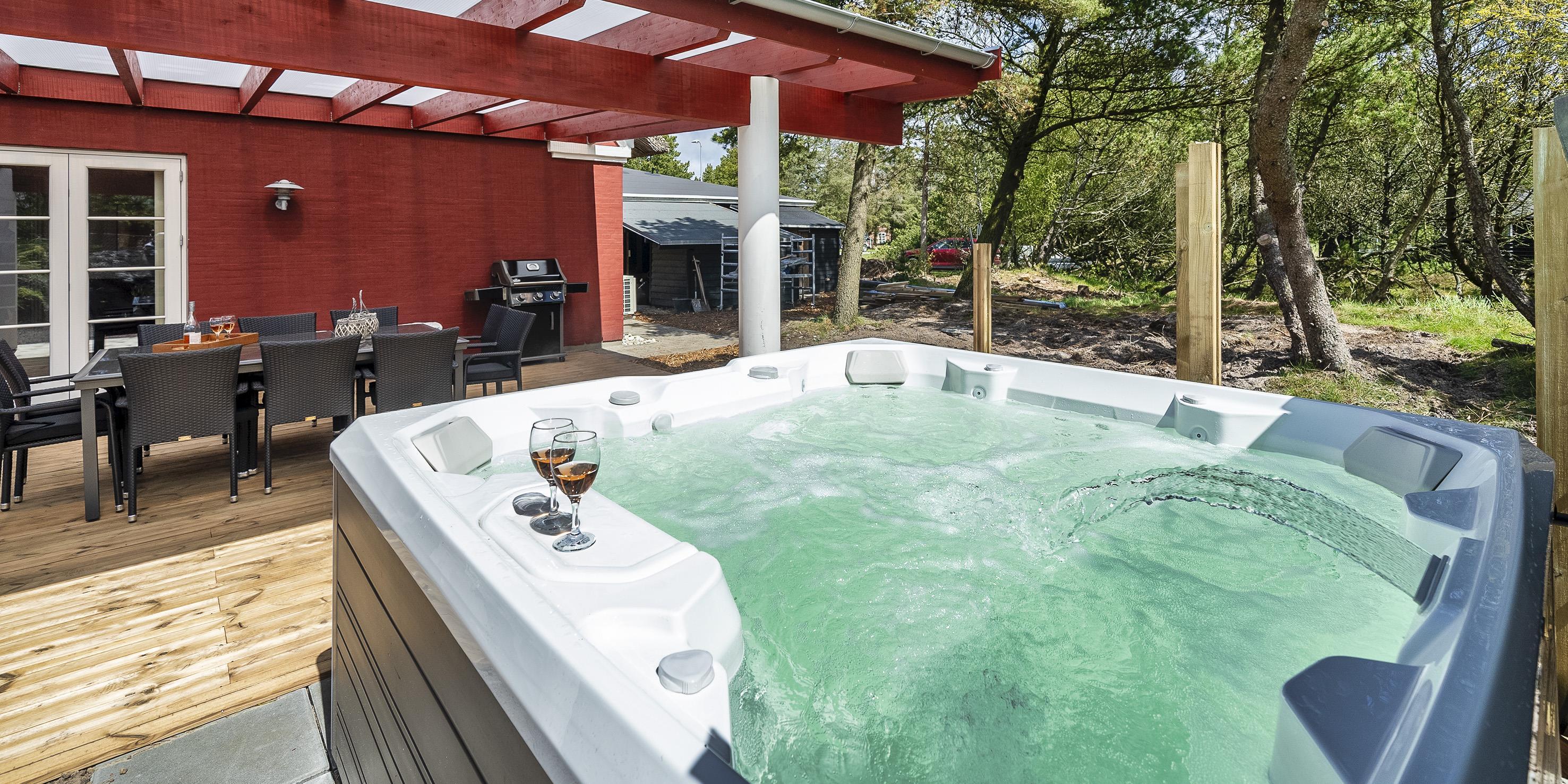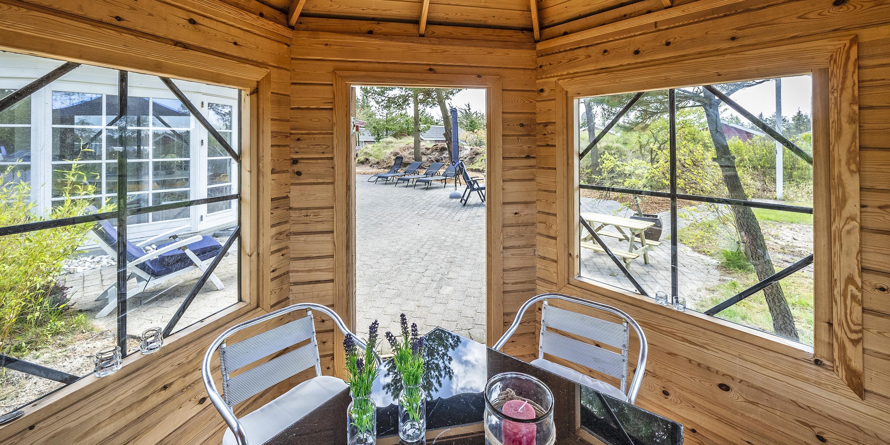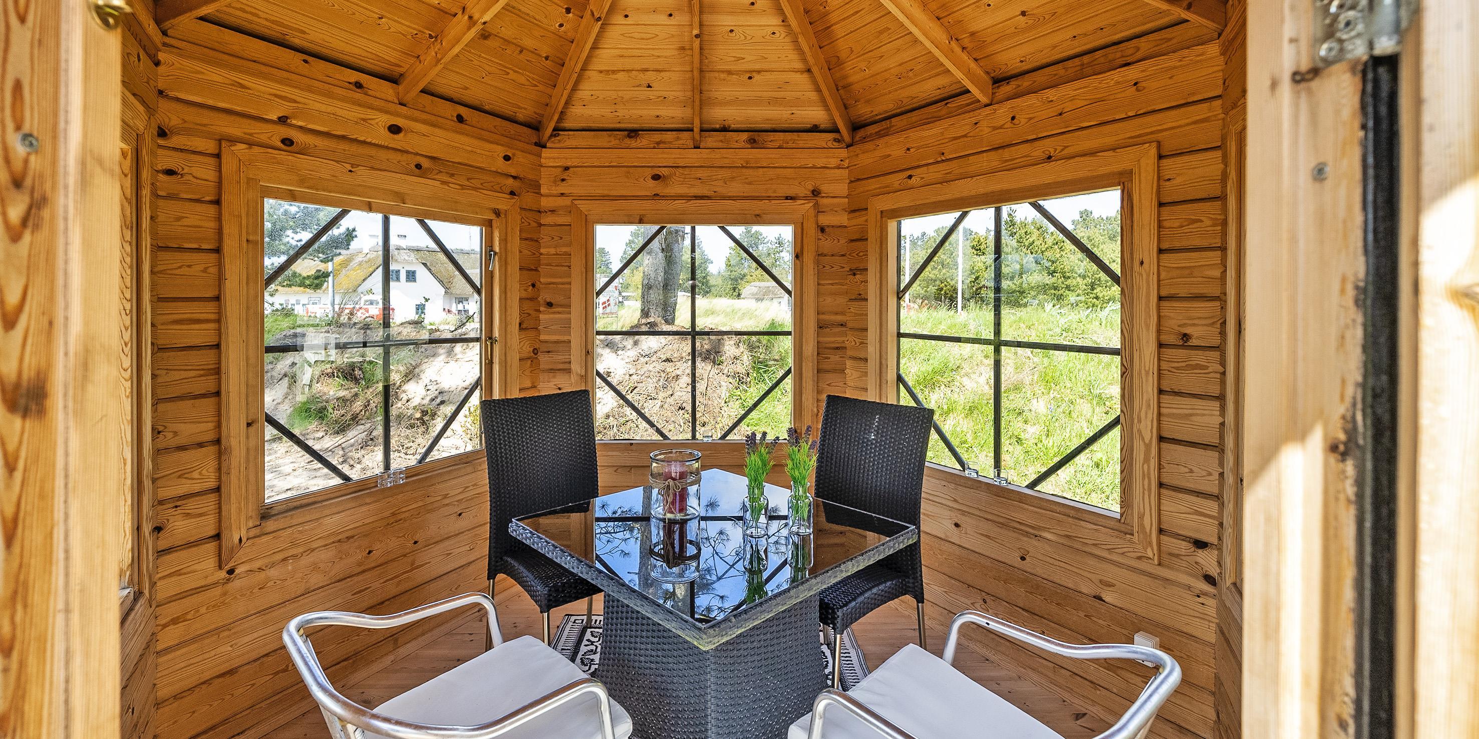 Das Aktivitätshaus befindet sich neben dem Haus und ist ebenfalls mit einer Wärmepumpe ausgestattet. Es gibt eine gemütliche Bar, einen Billardtisch, Tischtennis, ein Dartspiel, einen Kickertisch sowie eine Kühl- und Gefrierkombination und einen Fernseher mit Smart-TV mit gemütlicher Sitzecke. Hier können Sie Ihre Abende verspielt gestalten. Das Ferienhaus ist mit Internetanschluss (W-Lan) ausgestattet. Die überdachte Terrasse am Gartenhaus kann ganztägig und ganzjährig genutzt werden. Angrenzend an die Terrasse befindet sich ein Außenwhirlpool. Eine Außendusche ist ebenfalls vorhanden. In diesem Whirlpool können Sie entspannen und Ihren Urlaub so richtig genießen. Es gibt auch eine separate Außendusche. Auf dem Grundstück gibt es eine Schaukel für die kleinen Gäste. Für Unterhaltung sorgte ein kleiner sechseckiger Pavillon. Ein Glas Rotwein bei Kerzenschein ist ein richtig gemütlicher Abend, oder eine gemütliche Kaffeerunde bei Kerzenschein.