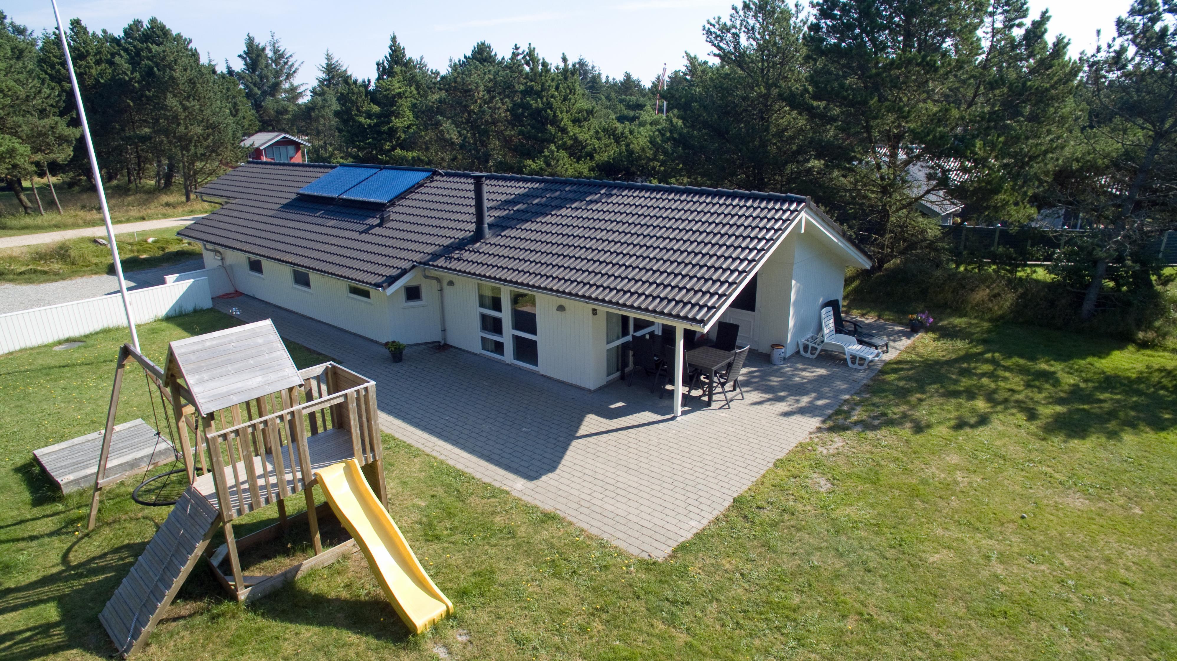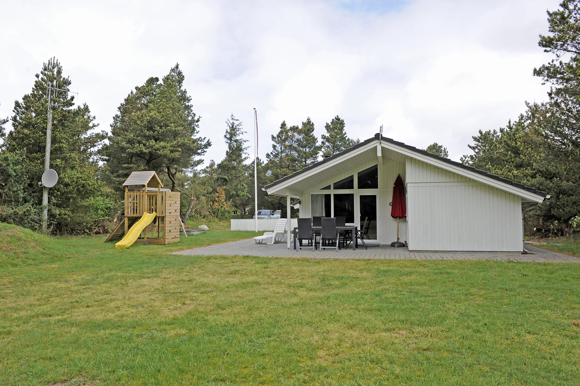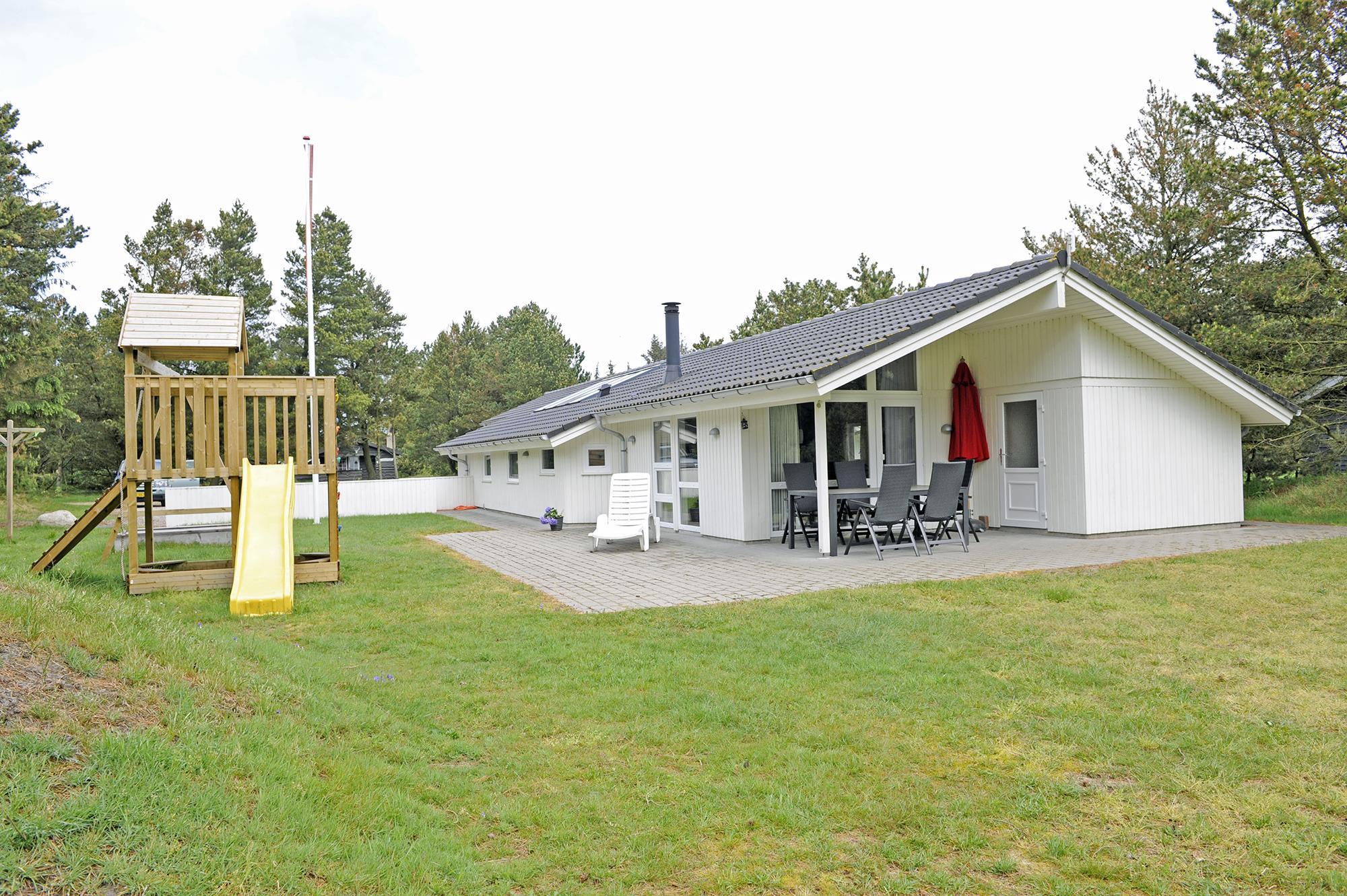 Dieses gemütliche und Familien freundliche Ferienhaus bietet für seine 8 Bewohner alles, was benötigt wird an. Es liegt auf einem großen Rasengrundstück und bietet für die “Kleinen Gäste” viel Platz zum Spielen und toben. Dafür ist gesorgt mit einem Spiel- und Klettergerüst mit Kletterwand und Rutsche, einer Sandkiste und einem Schaukelstativ. Da sollte eigentlich keine lange Weile aufkommen. Das Ferienhaus liegt rund 1,5 Km vom Strand entfernt. Ein Teil des Hauses mit einer mediterranen Bodenfliese verlegt und der Rest mit Teppichboden ausgestattet. Der Wohnbereich ist mit einer hübschen Sitzgarnitur ausgestattet und der Kamin befindet sich im Essbereich, heizt aber auch den restlichen Bereich mit auf. Das deutsche Fernsehprogramm empfangen Sie über eine Parabolantenne. Die zum Wohn- und Essbereich offene Küche ist mit einem Herd mit Cerankochfeld, einem Backofen, einer Geschirrspülmaschine, einer Mikrowelle und eine Kühl- und Gefrierkombination ausgestattet. Desweiteren finden Sie zwei Bäder im Haus. Das große Bad hat ein WC, ein Handwaschbecken, eine Dusche, eine Sauna und einen Standwasser-Whirlpool. Das bedeutet, das bereits Wasser im Whirlpool enthalten ist und Sie ihn nicht selber befüllen müssen. Er ist bei Ihrer Ankunft sofort betriebsbereit. In dem zweiten Badezimmer finden Sie ein WC, ein Handwaschbecken und eine Dusche. Es gibt vier Schlafzimmer im Hause: DB + DB + DB + DB. Die Waschmaschine und der Trockner befinden sich im Hauswirtschaftsraum, auch hier ist der Eingangsbereich. Das Ferienhaus verfügt über einen Internetanschluss (W-Lan). Ein Teil des Terrassenbereiches ist überdacht. Ihr Fahrzeug findet an dem Haus befindlichen Carport seinen Platz. Von hier kommen Sie dann trockenen Fußes in das Ferienhaus. Es sind keine Haustiere erlaubt, mit Ausnahme ein kleiner Hund mit max. Rückenhöhe von 30 cm . Das Rauchen im Ferienhaus ist nicht erlaubt. Das Ferienhaus wurde 2006 erbaut.