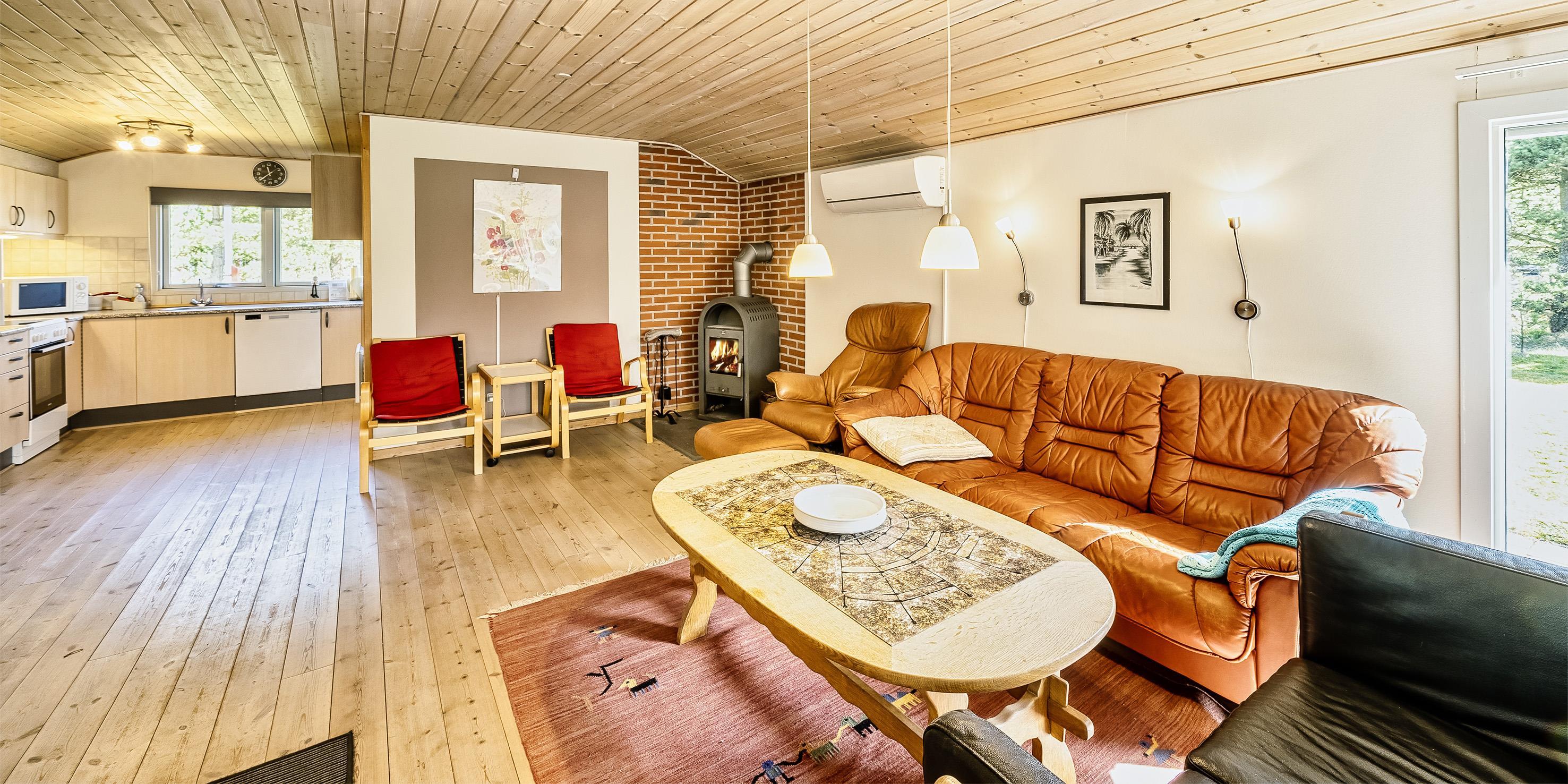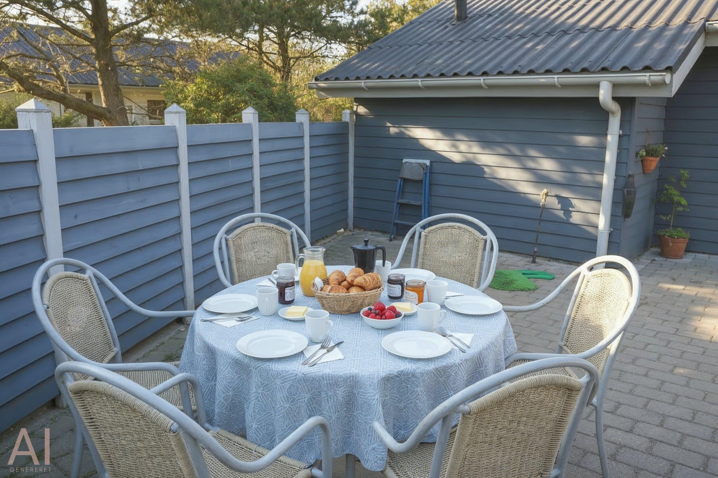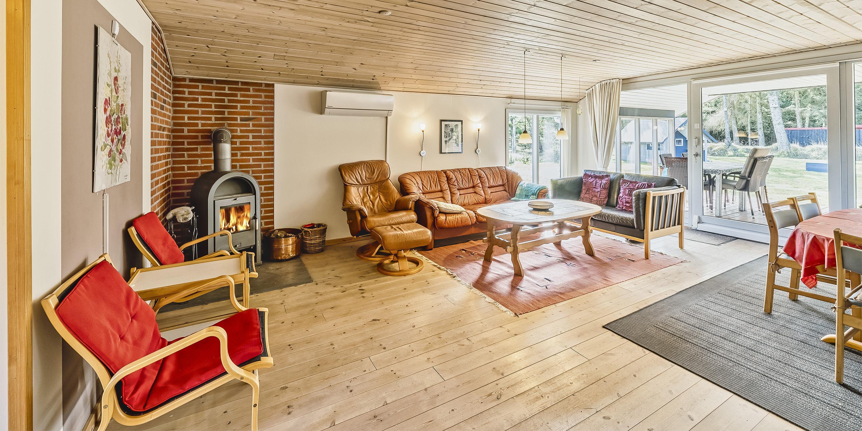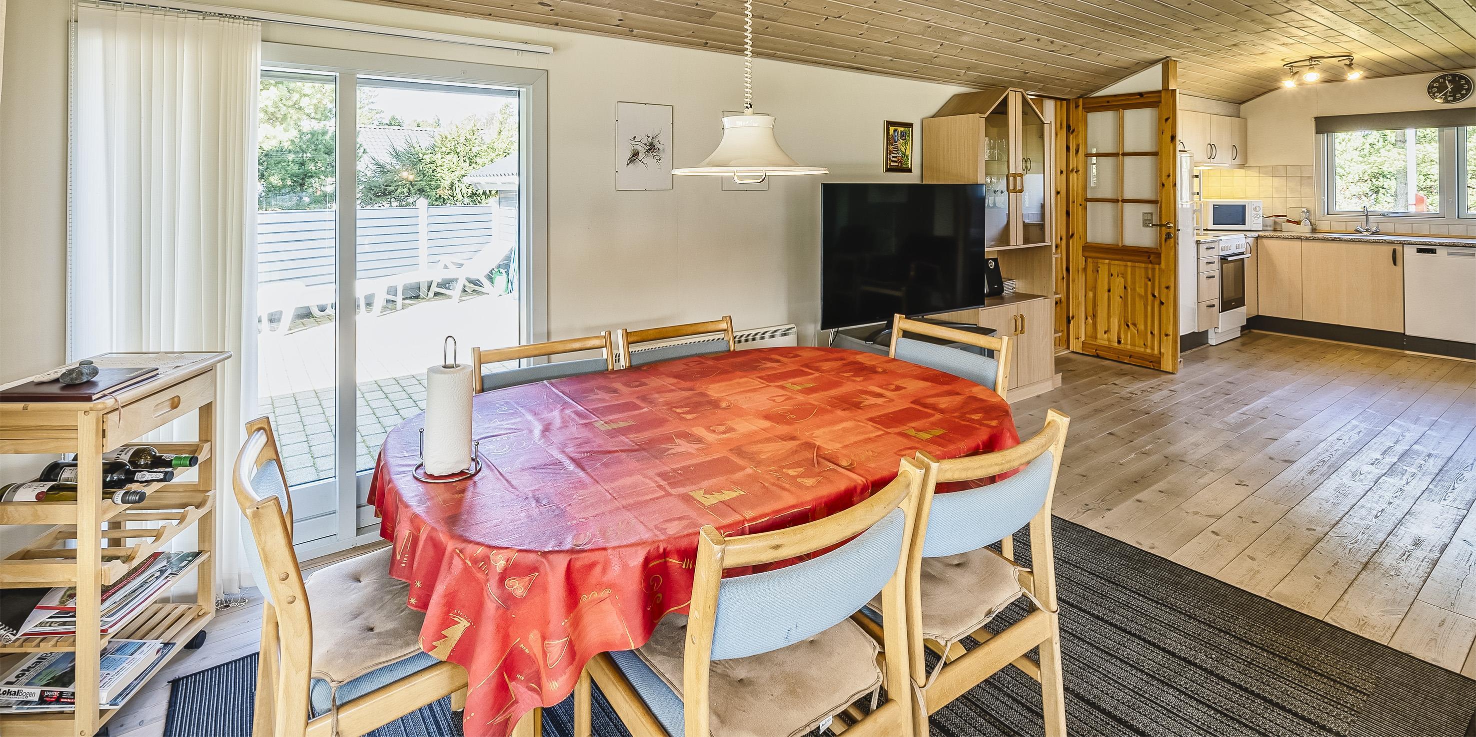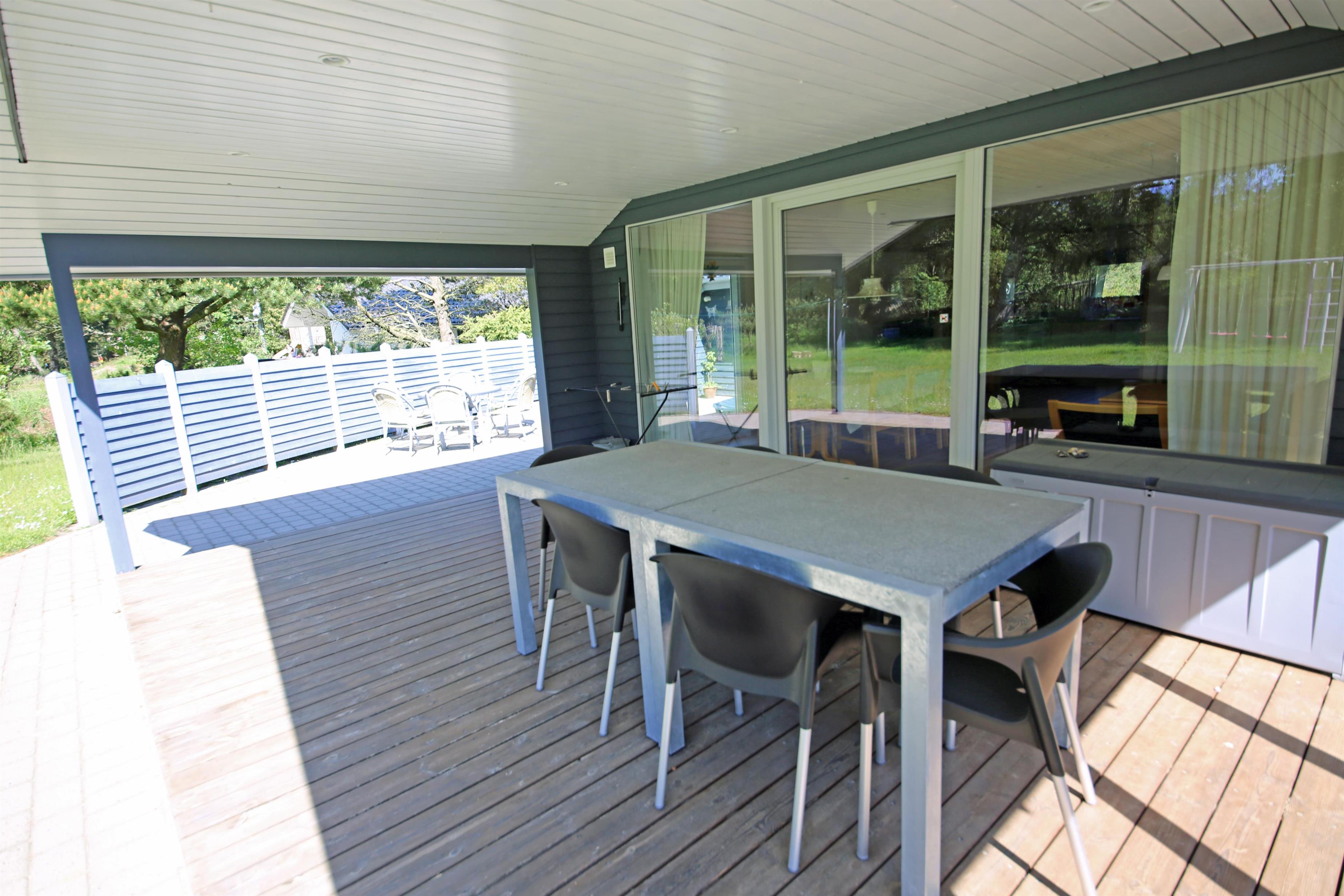 Sehr gepflegtes Ferienhaus auf einem hübsch angelegten und geschlossenen Rasengrundstück gelegen. Das Ferienhaus ist für 6 Personen zugelassen und ausgestattet und der Strand ist ca. 1,5 Km vom Ferienhaus entfernt. Das komplette Ferienhaus ist mit einem tollen Holzfußboden ausgelegt, bis auf das Badezimmer, das ist gefliest. Der Wohnbereich ist mit gemütlichen Sitzgarnitur ausgestattet und verfügt über einen Kamin. Das deutsche Fernsehprogramm empfangen Sie über eine Parabolantenne. Google Chrome Cast. Es befindet sich eine Warmepumpe im Ferienhaus. Mit dieser Warmepumpe haben sie die Möglichkeit die Stromkosten zu senken, denn die Warmepumpe ist energiesparend. Der Küchenbereich ist zum Wohn- und Essbereich offen gehalten und verfüg über einen Herd mit Kochplatten, einem Backofen, einer Geschirrspülmaschine, einer Mikrowelle und einer Kühl- und Gefrierkombination. Ein Badezimmer mit einem WC, einem Handwaschbecken und einer Dusche steht den Gästen ebenfalls zur Verfügung. Eine Waschmaschine steht auch für Sie bereit. Insgesamt stehen den Gästen drei gemütliche Schlafzimmer zur Verfügung: DB + DB + 2B. Der Terrassenbereich ist sehr großzügig gehalten. Ein großer Teil direkt am Haus ist sogar überdacht. Hier haben Sie für alle Bewohner Platz, sollte es mal an Ihrem Grillabend doch mal tröpfeln. Eine Seite ist sogar mit einer Glaswand verschlossen. Für die Kleinen Gäste stehen eine Sandkiste, ein Schaukelstativ und ein größeres Spielhaus zur Verfügung. Am Ferienhaus befinden sich drei Fahrräder, aber wir übernehmen keine Haftung für den Zustand der Räder. Es sind max. drei Haustiere erlaubt. Rauchen ist nicht erlaubt. Das Ferienhaus ist 1969 erbaut worden und in 2002 renoviert.