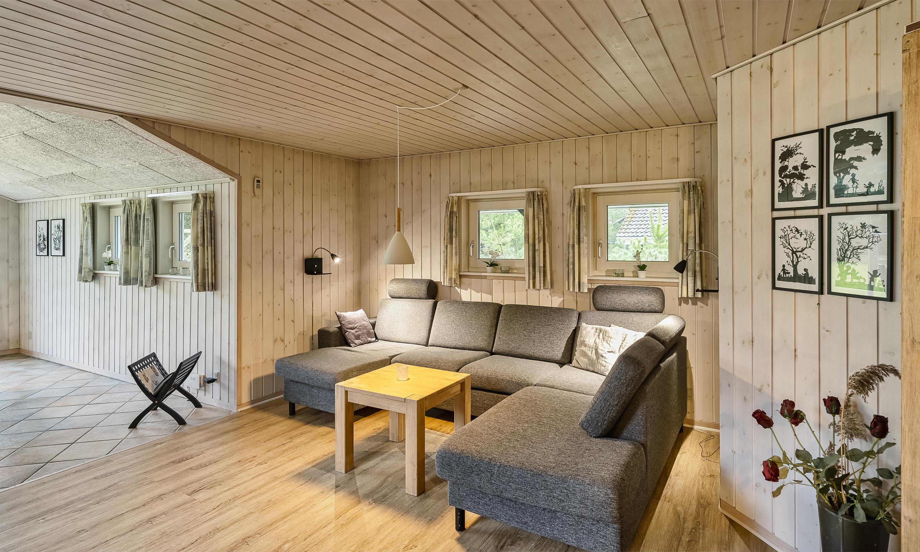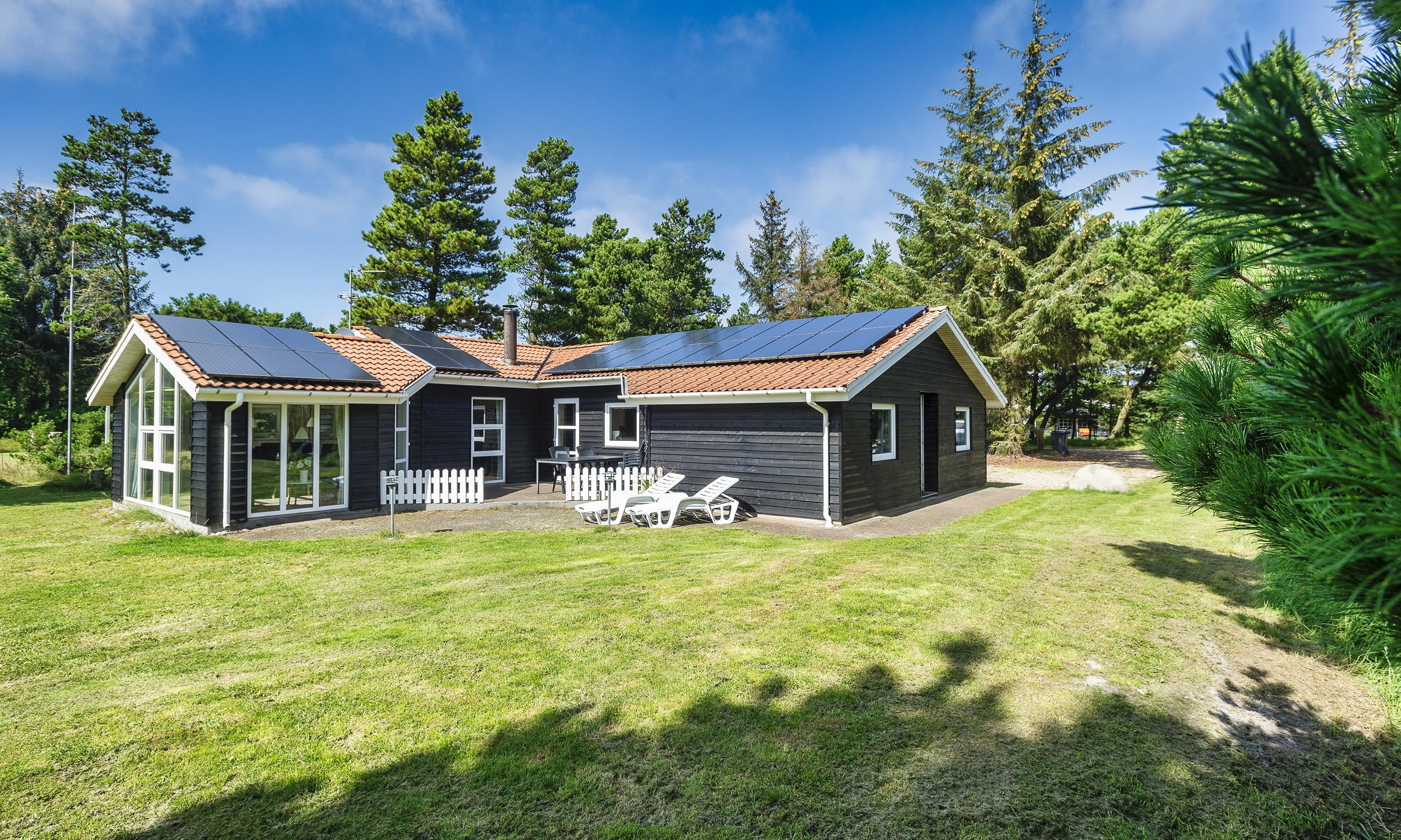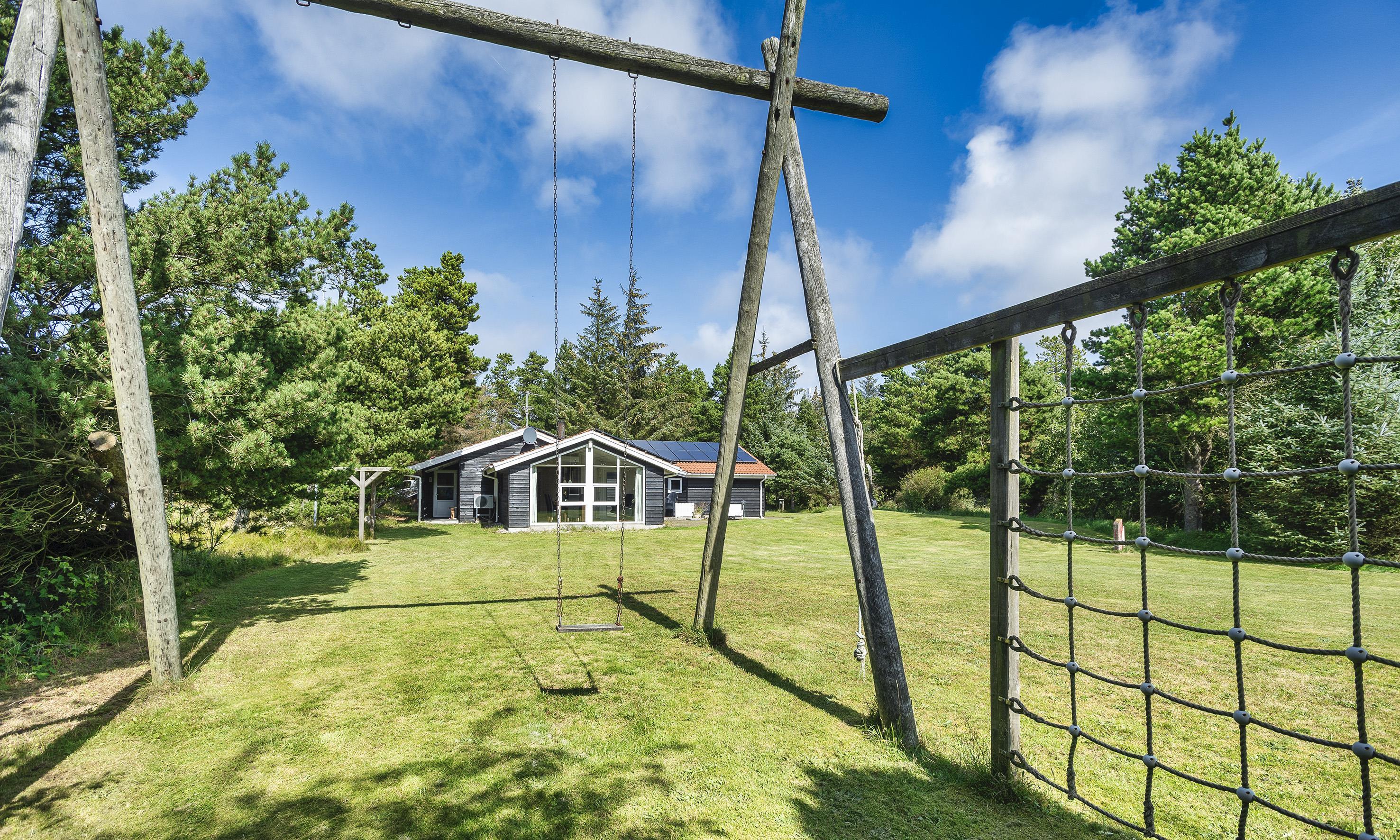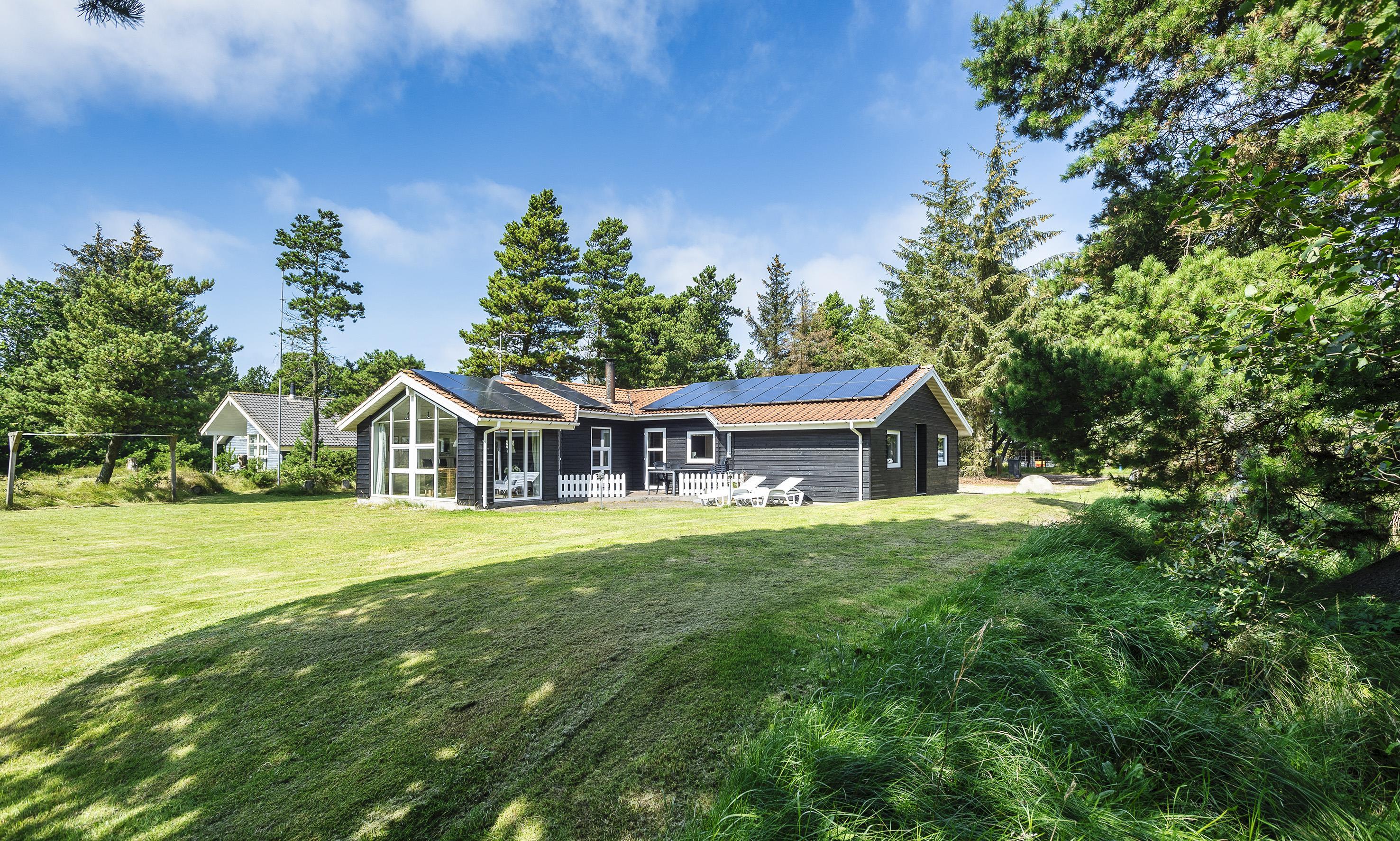 Flott eingerichtetes Ferienhaus auf einem großen Rasengrundstück und ca. 2 Km vom Strand entfernt. Das Ferienhaus ist für 8 Personen ausgestattet. Das Wohnzimmer ist mit einer gemütlicher Ledergarnitur ausgestattet und gefliest. Das deutsche Fernsehprogramm empfangen Sie über eine Parabolantenne. Angrenzend befindet sich der Essplatz mit dem Kamin. Es befindet sich eine Warmepumpe im Ferienhaus. Mit dieser Warmepumpe haben sie die Möglichkeit die Stromkosten zu senken, denn die Warmepumpe ist energiesparend. Hier ist der Bodenbereich mit einem Laminat versehen. Der Küchenbereich ist zum Essbereich offen gehalten. Die Küche ist mit einem Herd mit Cerankochfeld, einem Backofen, einer Geschirrspülmaschine und einer Kühl- und Gefrierkombination ausgestattet. Es befinden sich zwei Badezimmer im Hause. Das größere Bad verfügt über ein WC, ein Handwaschbecken, eine Dusche, eine Sauna und ein Whirlpool. Die Waschmaschine und der Trockner sind hier ebenfalls unter gebracht. Fussbodenheizung im Bad. In dem Gästebad befindet sich ein WC, ein Handwaschbecken und eine Dusche. Es gibt insgesamt 4 Schlafzimmer im Ferienhaus: DB + DB + DB + EB. Die Terrasse bietet genügend Sitzmöglichkeiten an und ist wie ein kleiner Innenbereich angelegt. Das Ferienhaus verfügt über einen Internetanschluss (W-Lan). Rauchen ist nicht erlaubt! Es sind max. drei Haustiere erlaubt. Auf dem großen Grundstück steht ein tolles Kletter- und Spielgerüst für die Kleinen Gäste zur Verfügung. Auch zum bolzen ist ausreichend Platz vorhanden. Das Ferienhaus ist in 2005 erbaut worden.