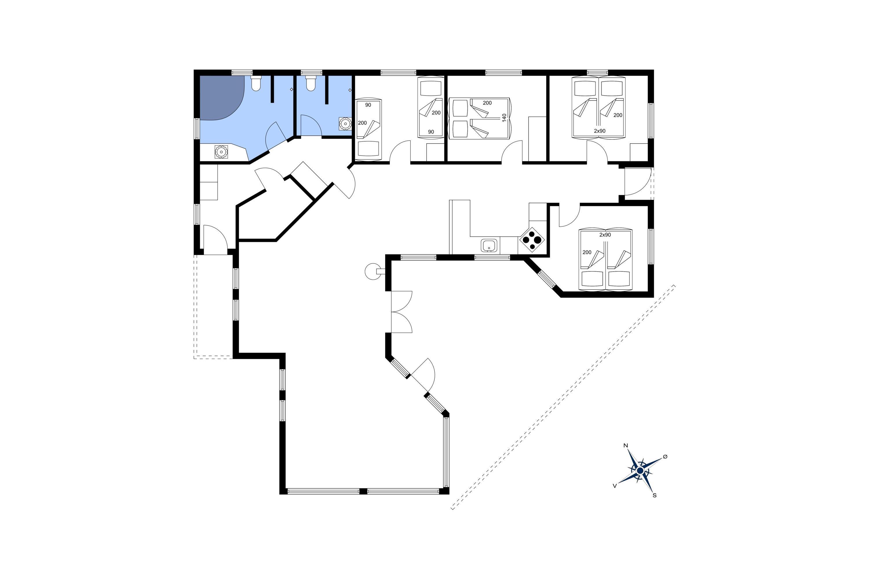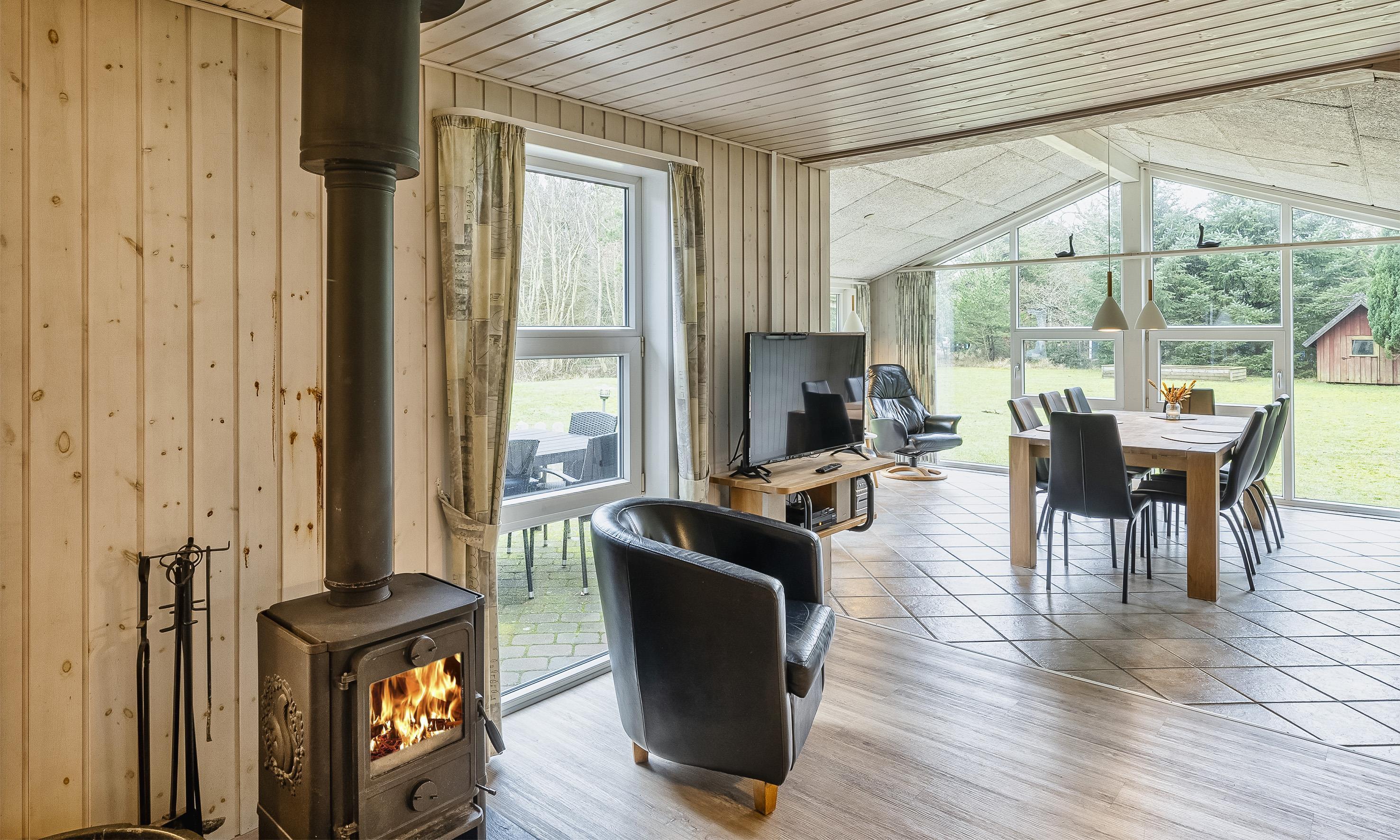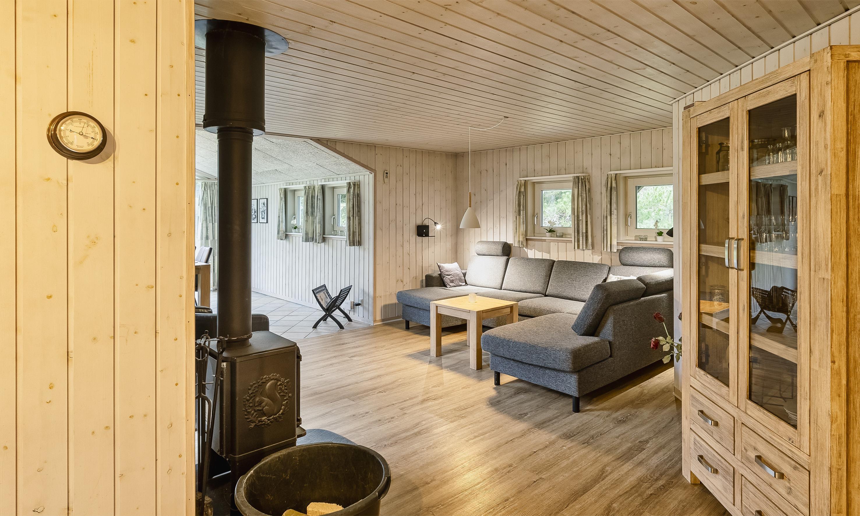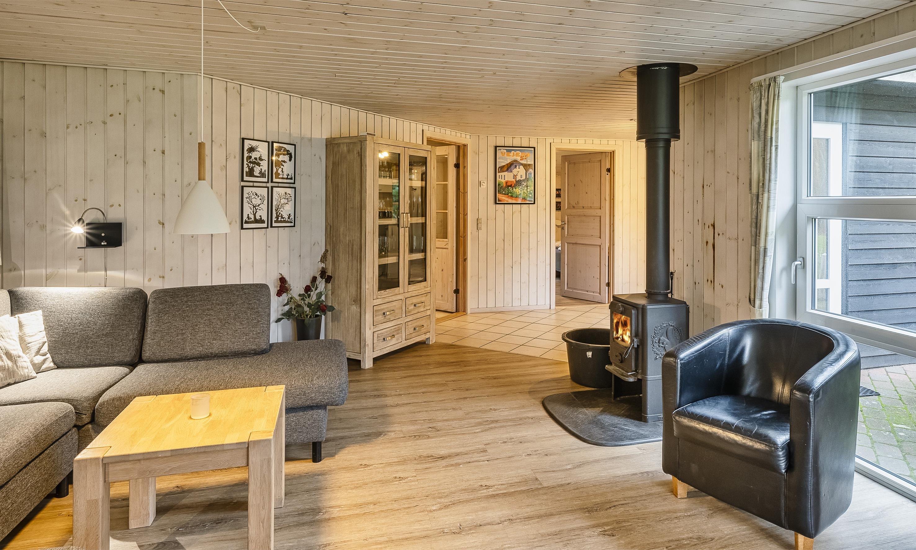 Flott eingerichtetes Ferienhaus auf einem großen Rasengrundstück und ca. 2 Km vom Strand entfernt. Das Ferienhaus ist für 8 Personen ausgestattet. Das Wohnzimmer ist mit einer gemütlicher Ledergarnitur ausgestattet und gefliest. Das deutsche Fernsehprogramm empfangen Sie über eine Parabolantenne. Angrenzend befindet sich der Essplatz mit dem Kamin. Es befindet sich eine Warmepumpe im Ferienhaus. Mit dieser Warmepumpe haben sie die Möglichkeit die Stromkosten zu senken, denn die Warmepumpe ist energiesparend. Hier ist der Bodenbereich mit einem Laminat versehen. Der Küchenbereich ist zum Essbereich offen gehalten. Die Küche ist mit einem Herd mit Cerankochfeld, einem Backofen, einer Geschirrspülmaschine und einer Kühl- und Gefrierkombination ausgestattet. Es befinden sich zwei Badezimmer im Hause. Das größere Bad verfügt über ein WC, ein Handwaschbecken, eine Dusche, eine Sauna und ein Whirlpool. Die Waschmaschine und der Trockner sind hier ebenfalls unter gebracht. Fussbodenheizung im Bad. In dem Gästebad befindet sich ein WC, ein Handwaschbecken und eine Dusche. Es gibt insgesamt 4 Schlafzimmer im Ferienhaus: DB + DB + DB + EB. Die Terrasse bietet genügend Sitzmöglichkeiten an und ist wie ein kleiner Innenbereich angelegt. Das Ferienhaus verfügt über einen Internetanschluss (W-Lan). Rauchen ist nicht erlaubt! Es sind max. drei Haustiere erlaubt. Auf dem großen Grundstück steht ein tolles Kletter- und Spielgerüst für die Kleinen Gäste zur Verfügung. Auch zum bolzen ist ausreichend Platz vorhanden. Das Ferienhaus ist in 2005 erbaut worden.