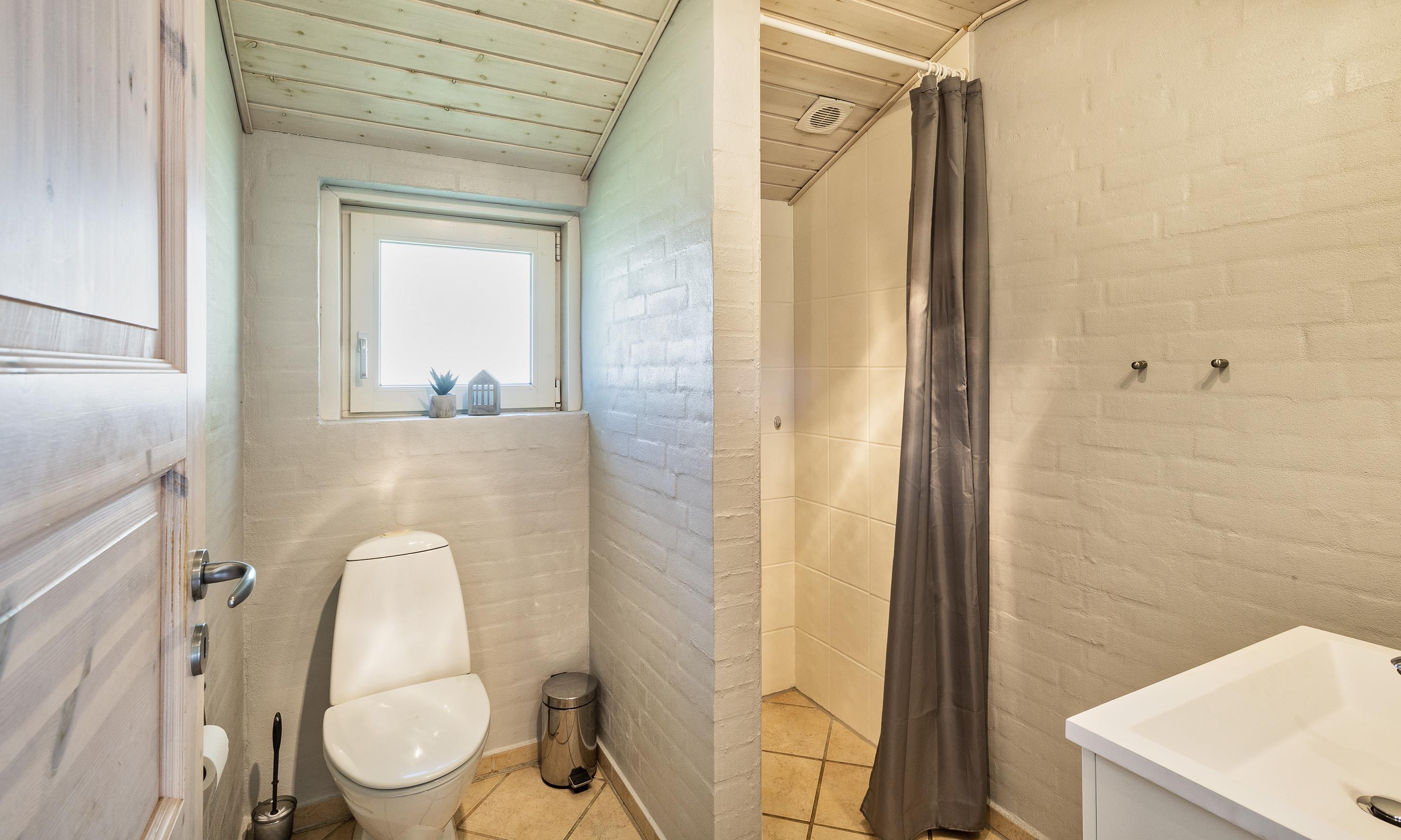 Badezimmer mit Toilette, Dusche und Waschbecken