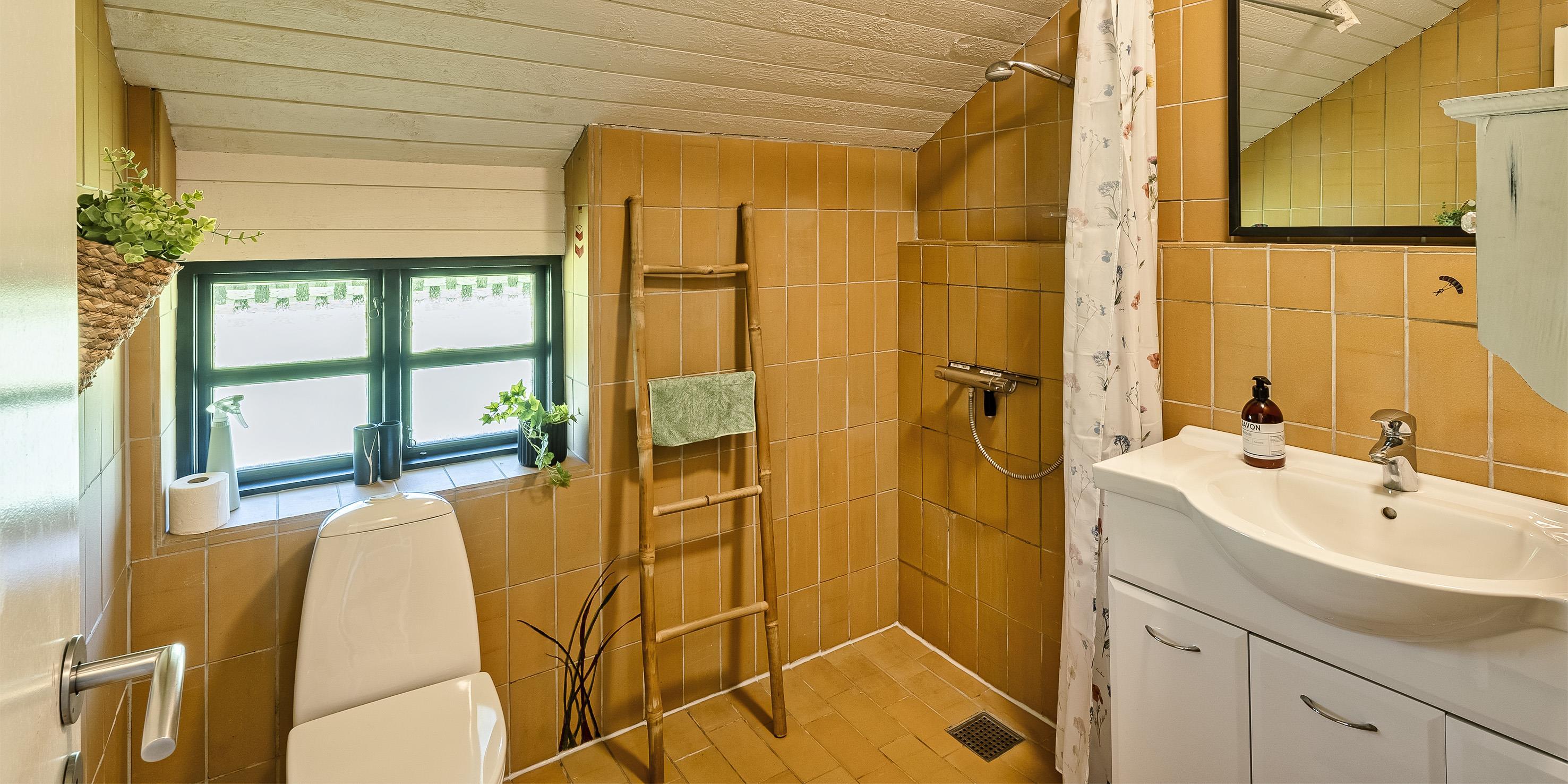 Badezimmer mit Toilette, Dusche und Waschbecken
