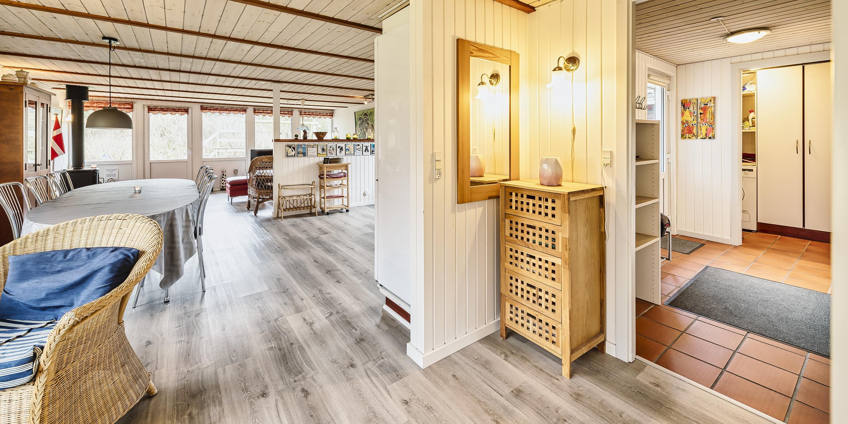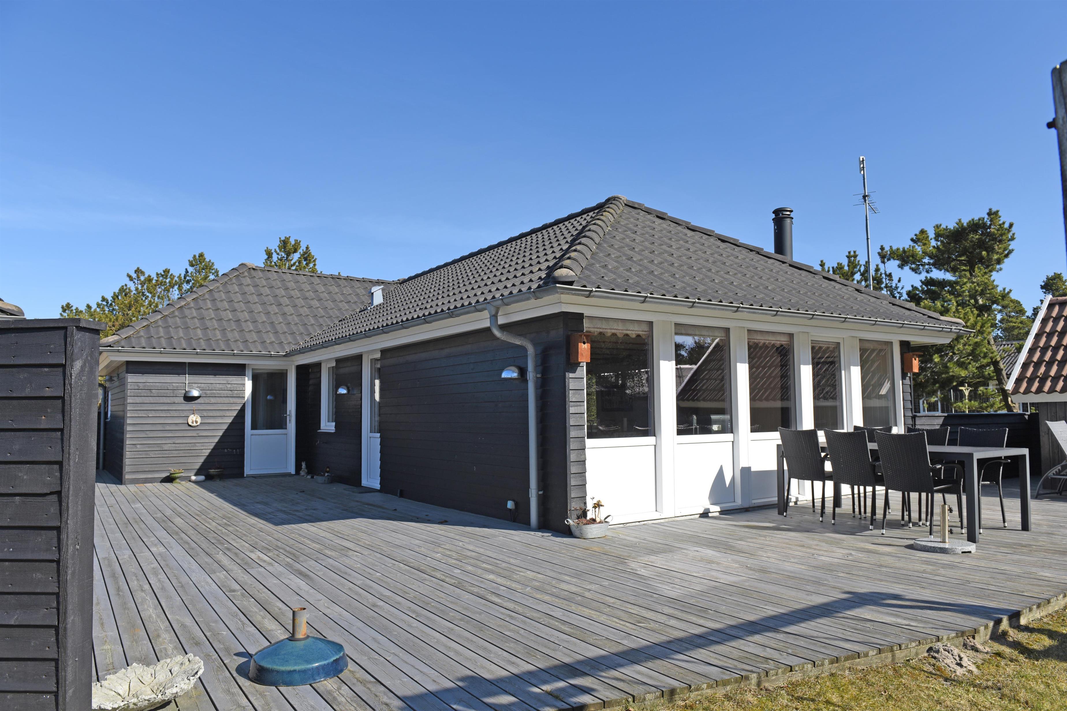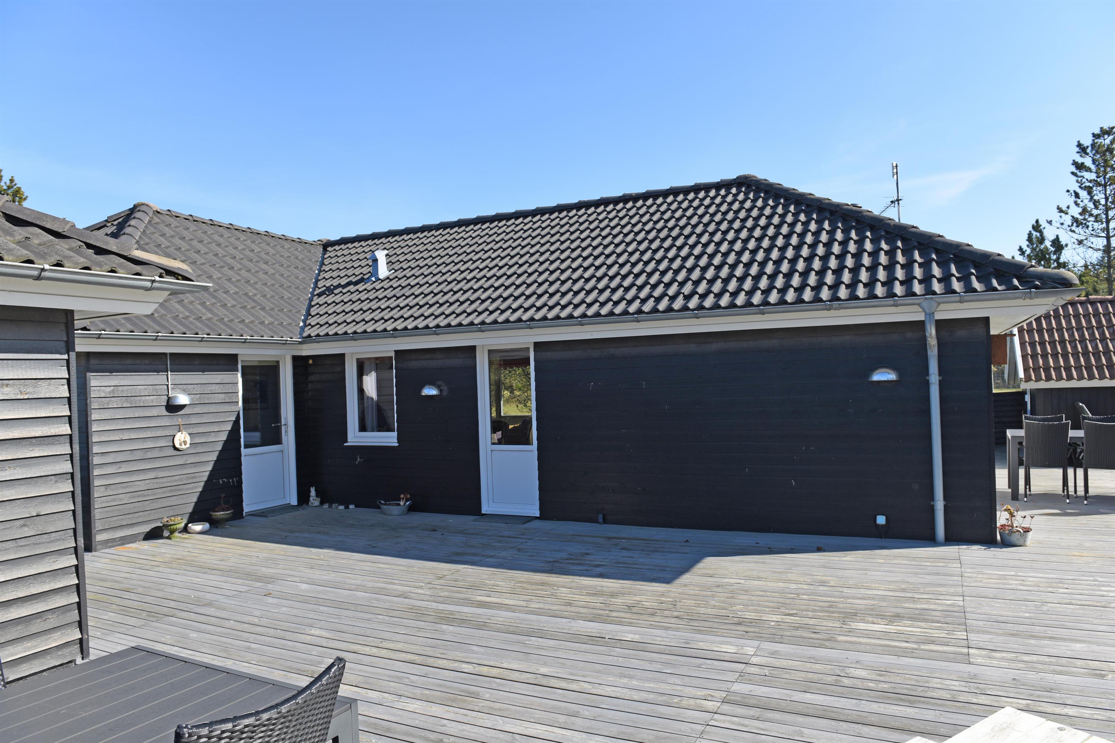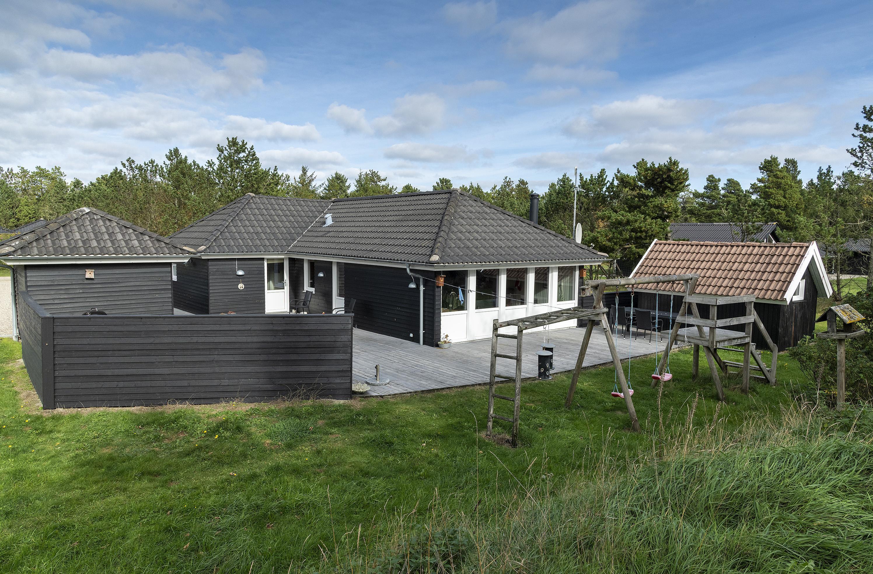 Flottes und gemütliches Ferienhaus mit Namen "Fyrrely" auf einem schönen großem geschlossenem Grundstück in Waldlage gelegen. Das Ferienhaus ist für 4-6 Personen ausgestattet. Der Strand ist ca. 1,8 Km vom Haus entfernt. Der Wohnbereich ist zur Küche und dem Speiseplatz hin offen gehalten. Im Wohnbereich befindet sich ein Kamin, der sich gegenüber der Rundsitzecke befindet. Er strahlt eine gemütliche Wärme aus. Eine kleine gemütliche Sitzecke mit Korbsesseln lädt zum verweilen ein. Es befindet sich eine Warmepumpe im Ferienhaus. Mit dieser Warmepumpe haben sie die Möglichkeit die Stromkosten zu senken, denn die Warmepumpe ist energiesparend. Das Fernsehprogramm empfangen Sie über eine Parabolantenne. Die großzügige Küche verfügt über einen Herd mit Cerankochfeld, einem Backofen, eine Geschirrspülmaschine, eine Mikrowelle und einer Kühl- und Gefrierkombination. Das Badezimmer verfügt über ein Handwaschbecken, ein WC, eine Dusche und einen Whirlpool. Es stehen den Gästen drei Schlafzimmer zur Verfügung: DB + DB + DB. In dem Technikraum im Ferienhaus steht Ihnen eine Waschmaschine zur Verfügung, unter anderem ist dort auch der Warmwasserbehälter untergebracht. Am Haus befindet sich eine große Holzterrasse und bietet allen Gästen genügend Platz um auch mal Ihr Sonnenbad geniessen zu können. Für die Kleinen Gäste steht auf dem Grundstück ein Schaukel/Klettergerüst und eine Sandkiste zum Spielen bereit. Das Ferienhaus verfügt über einen Internetanschluss (W-Lan). Nicht-raucher Haus. Es sind max. 2 Haustiere erlaubt. Das Ferienhaus ist 1968 erbaut worden und ca. 2005 umgebaut worden.
