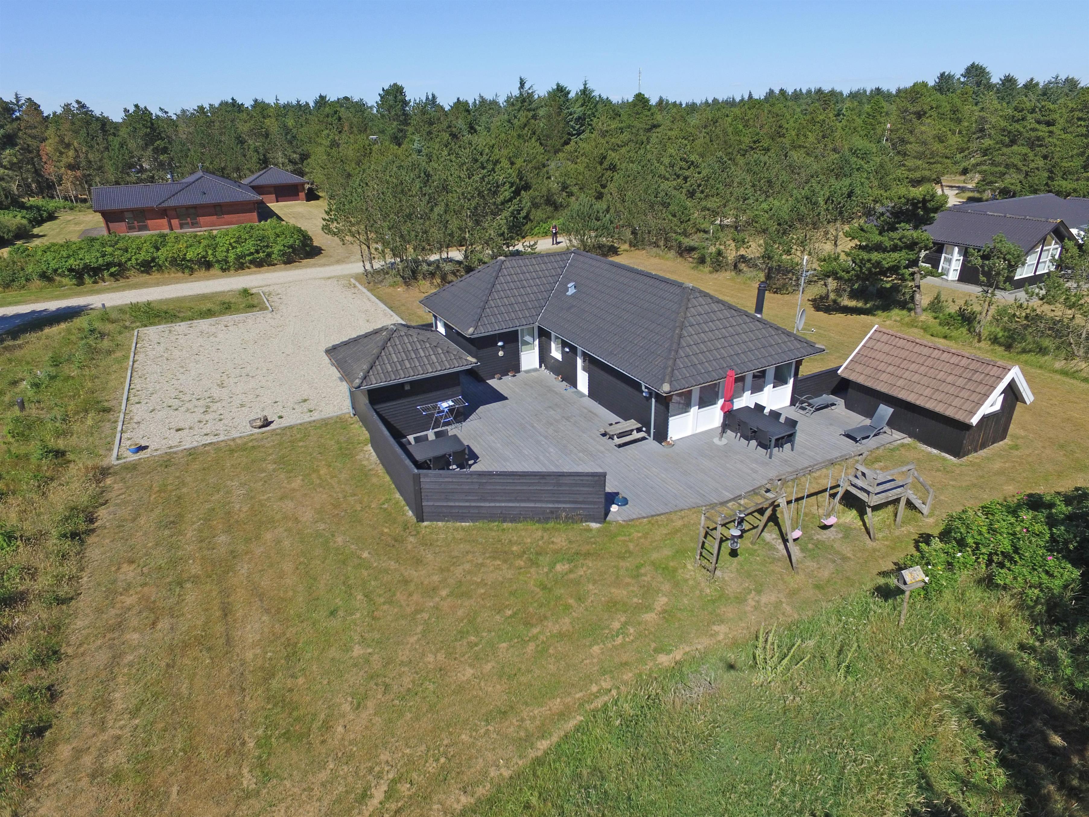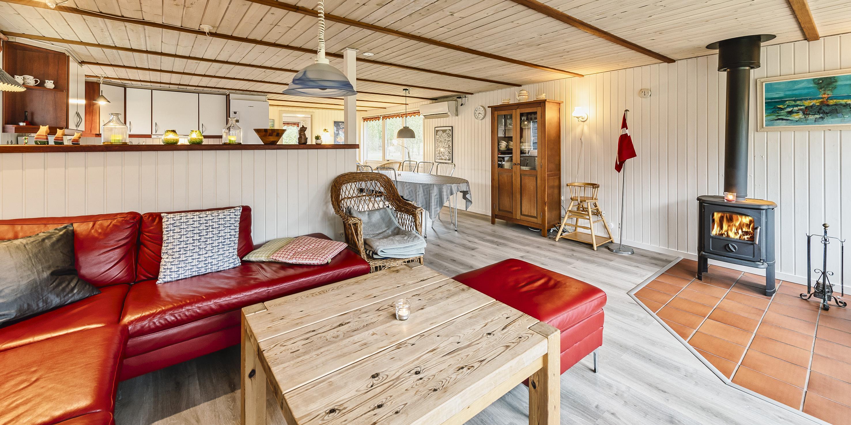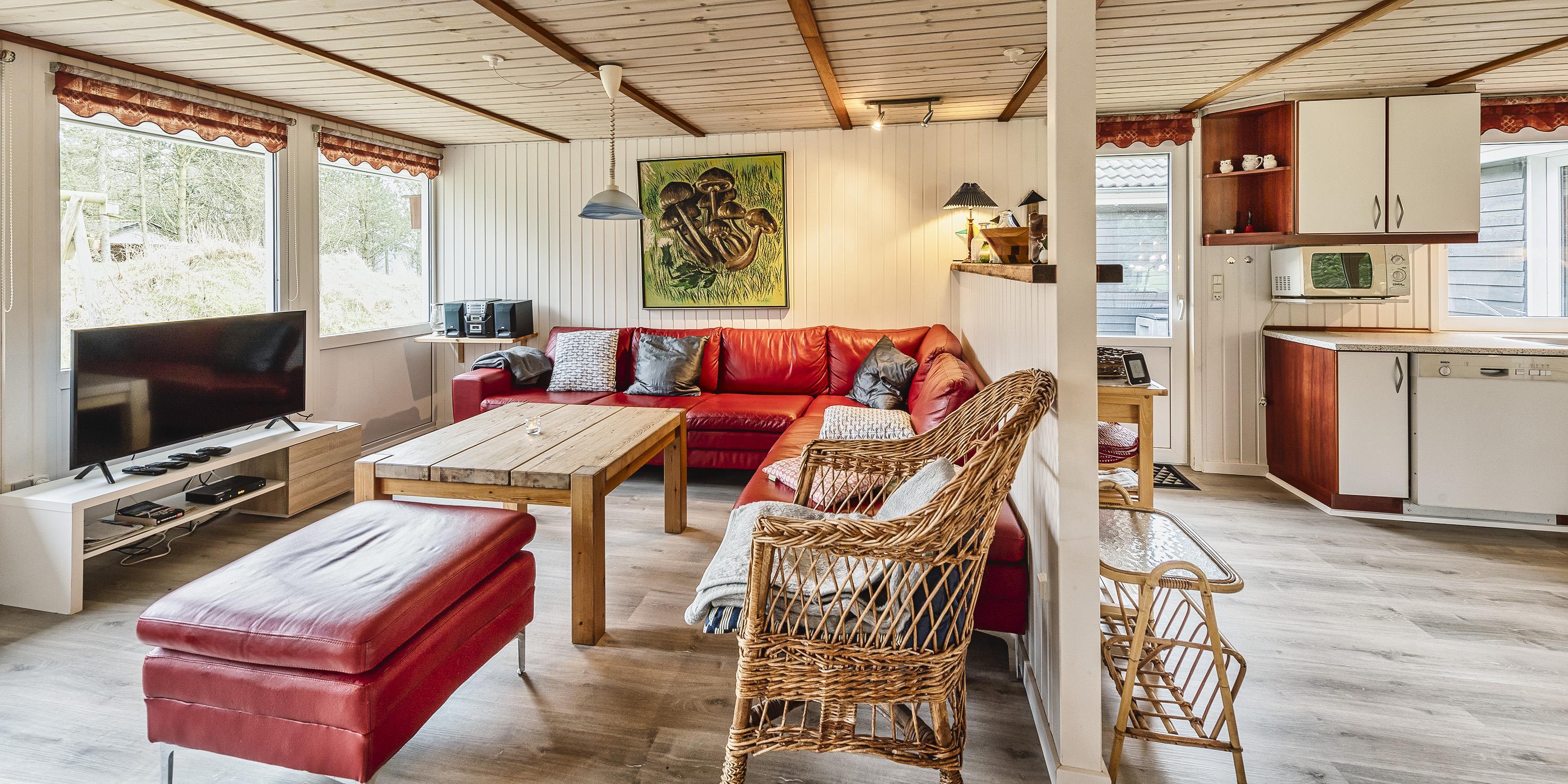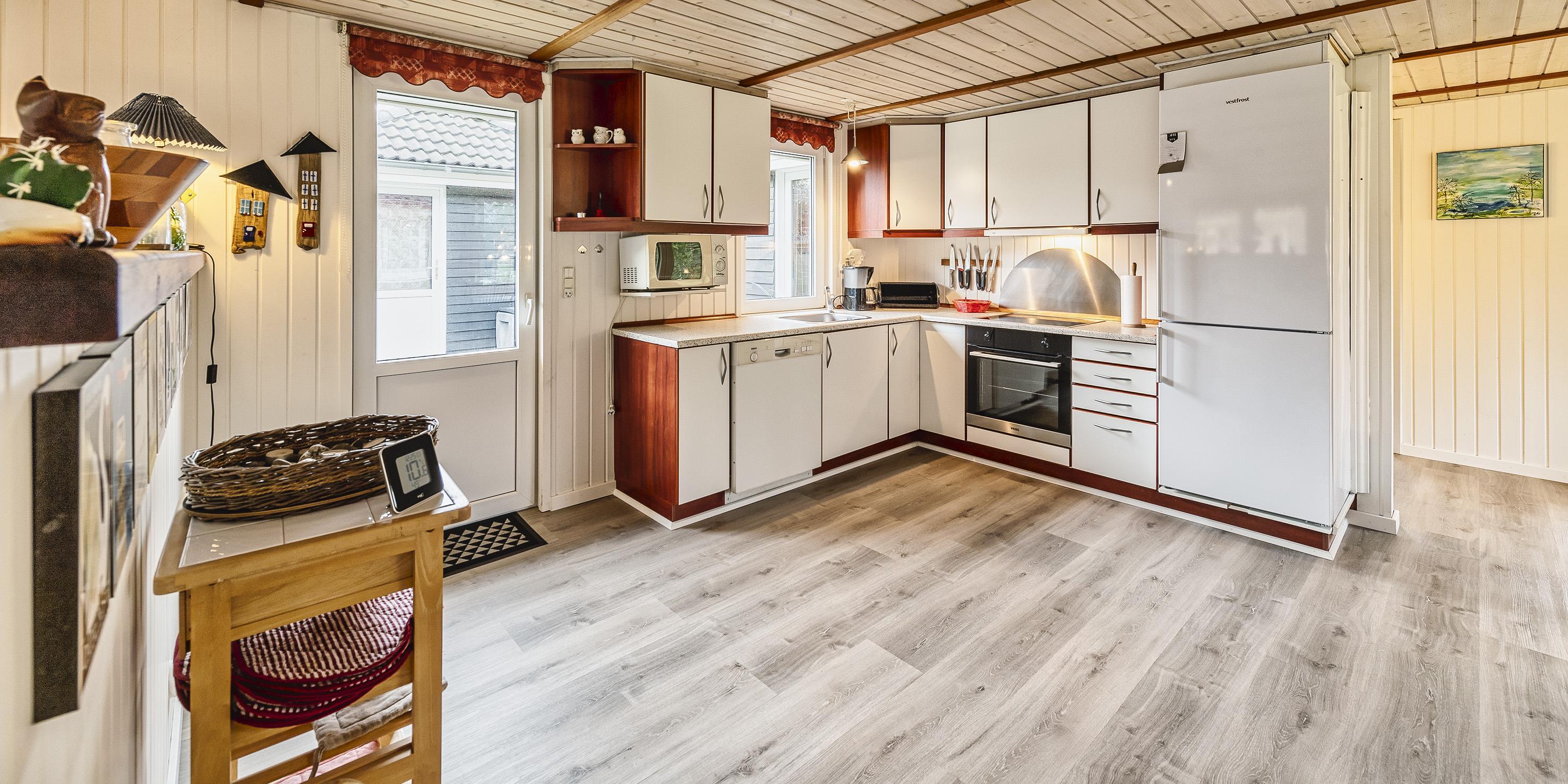 Flottes und gemütliches Ferienhaus mit Namen "Fyrrely" auf einem schönen großem geschlossenem Grundstück in Waldlage gelegen. Das Ferienhaus ist für 4-6 Personen ausgestattet. Der Strand ist ca. 1,8 Km vom Haus entfernt. Der Wohnbereich ist zur Küche und dem Speiseplatz hin offen gehalten. Im Wohnbereich befindet sich ein Kamin, der sich gegenüber der Rundsitzecke befindet. Er strahlt eine gemütliche Wärme aus. Eine kleine gemütliche Sitzecke mit Korbsesseln lädt zum verweilen ein. Es befindet sich eine Warmepumpe im Ferienhaus. Mit dieser Warmepumpe haben sie die Möglichkeit die Stromkosten zu senken, denn die Warmepumpe ist energiesparend. Das Fernsehprogramm empfangen Sie über eine Parabolantenne. Die großzügige Küche verfügt über einen Herd mit Cerankochfeld, einem Backofen, eine Geschirrspülmaschine, eine Mikrowelle und einer Kühl- und Gefrierkombination. Das Badezimmer verfügt über ein Handwaschbecken, ein WC, eine Dusche und einen Whirlpool. Es stehen den Gästen drei Schlafzimmer zur Verfügung: DB + DB + DB. In dem Technikraum im Ferienhaus steht Ihnen eine Waschmaschine zur Verfügung, unter anderem ist dort auch der Warmwasserbehälter untergebracht. Am Haus befindet sich eine große Holzterrasse und bietet allen Gästen genügend Platz um auch mal Ihr Sonnenbad geniessen zu können. Für die Kleinen Gäste steht auf dem Grundstück ein Schaukel/Klettergerüst und eine Sandkiste zum Spielen bereit. Das Ferienhaus verfügt über einen Internetanschluss (W-Lan). Nicht-raucher Haus. Es sind max. 2 Haustiere erlaubt. Das Ferienhaus ist 1968 erbaut worden und ca. 2005 umgebaut worden.