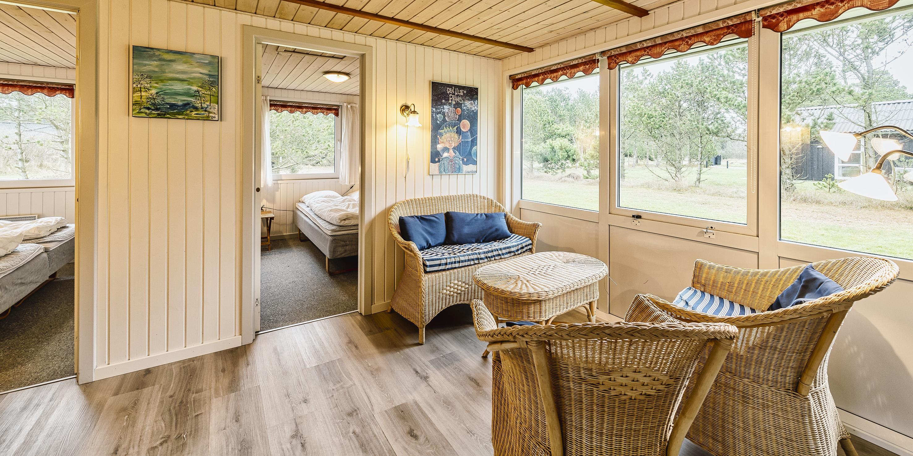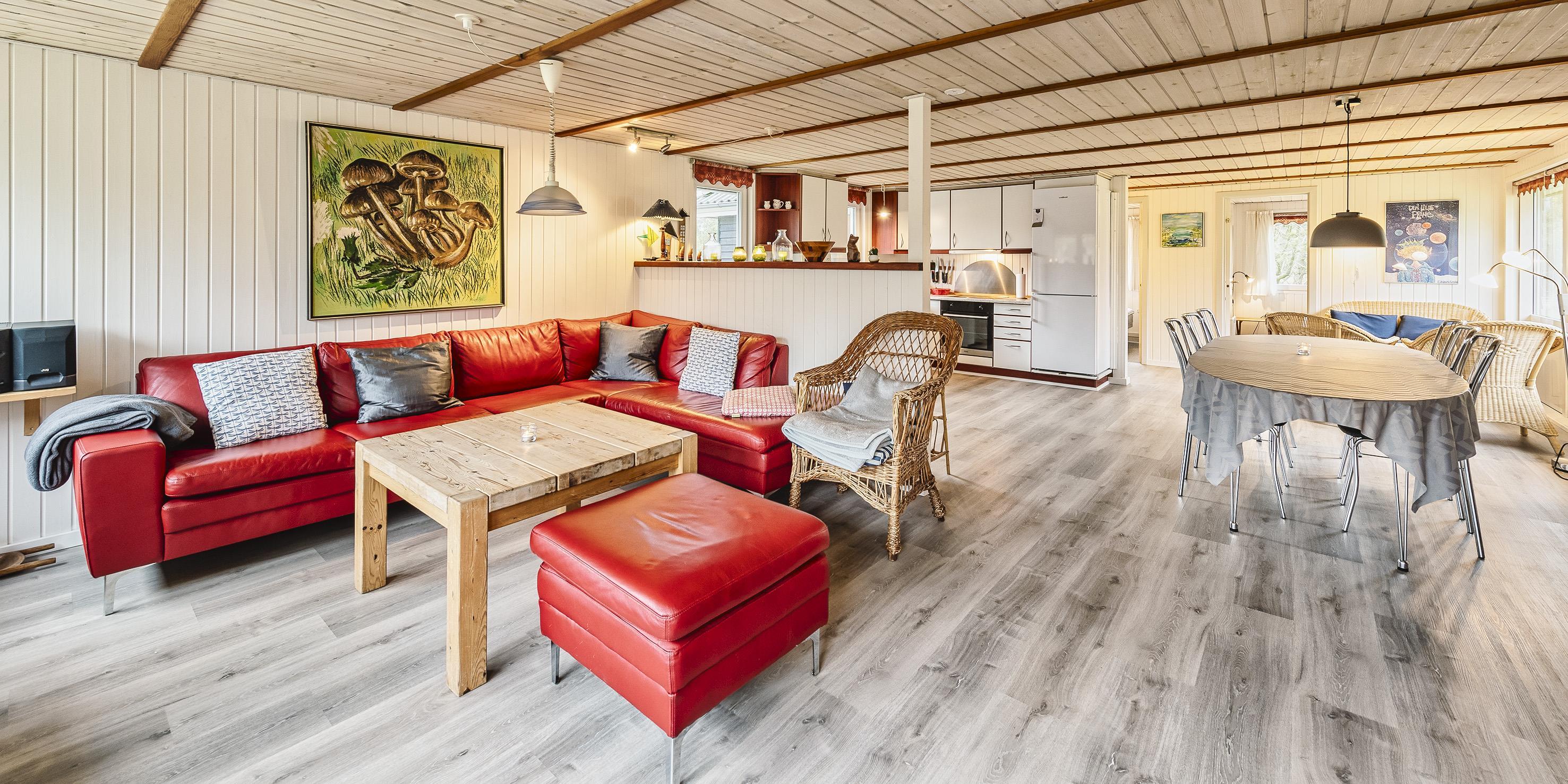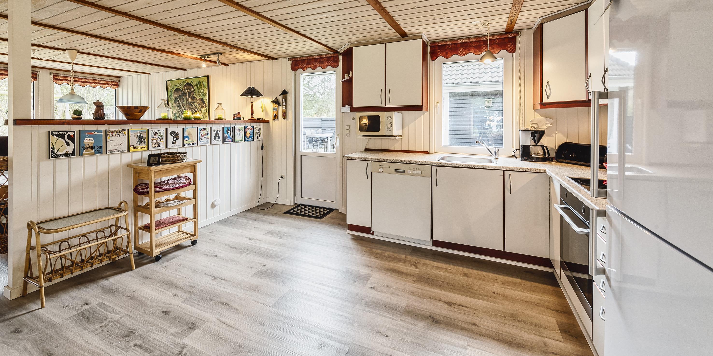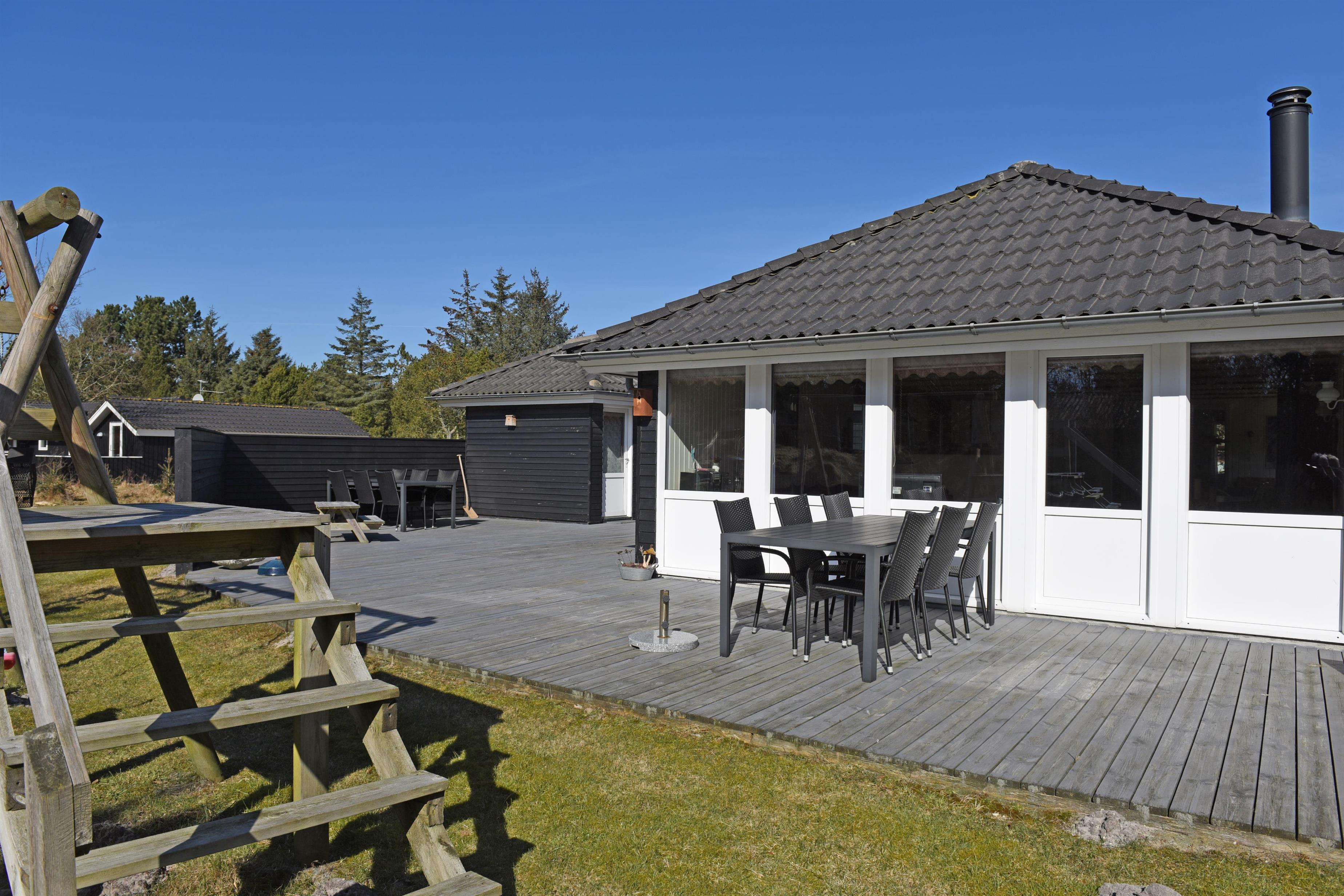 Flottes und gemütliches Ferienhaus mit Namen "Fyrrely" auf einem schönen großem geschlossenem Grundstück in Waldlage gelegen. Das Ferienhaus ist für 4-6 Personen ausgestattet. Der Strand ist ca. 1,8 Km vom Haus entfernt. Der Wohnbereich ist zur Küche und dem Speiseplatz hin offen gehalten. Im Wohnbereich befindet sich ein Kamin, der sich gegenüber der Rundsitzecke befindet. Er strahlt eine gemütliche Wärme aus. Eine kleine gemütliche Sitzecke mit Korbsesseln lädt zum verweilen ein. Es befindet sich eine Warmepumpe im Ferienhaus. Mit dieser Warmepumpe haben sie die Möglichkeit die Stromkosten zu senken, denn die Warmepumpe ist energiesparend. Das Fernsehprogramm empfangen Sie über eine Parabolantenne. Die großzügige Küche verfügt über einen Herd mit Cerankochfeld, einem Backofen, eine Geschirrspülmaschine, eine Mikrowelle und einer Kühl- und Gefrierkombination. Das Badezimmer verfügt über ein Handwaschbecken, ein WC, eine Dusche und einen Whirlpool. Es stehen den Gästen drei Schlafzimmer zur Verfügung: DB + DB + DB. In dem Technikraum im Ferienhaus steht Ihnen eine Waschmaschine zur Verfügung, unter anderem ist dort auch der Warmwasserbehälter untergebracht. Am Haus befindet sich eine große Holzterrasse und bietet allen Gästen genügend Platz um auch mal Ihr Sonnenbad geniessen zu können. Für die Kleinen Gäste steht auf dem Grundstück ein Schaukel/Klettergerüst und eine Sandkiste zum Spielen bereit. Das Ferienhaus verfügt über einen Internetanschluss (W-Lan). Nicht-raucher Haus. Es sind max. 2 Haustiere erlaubt. Das Ferienhaus ist 1968 erbaut worden und ca. 2005 umgebaut worden.