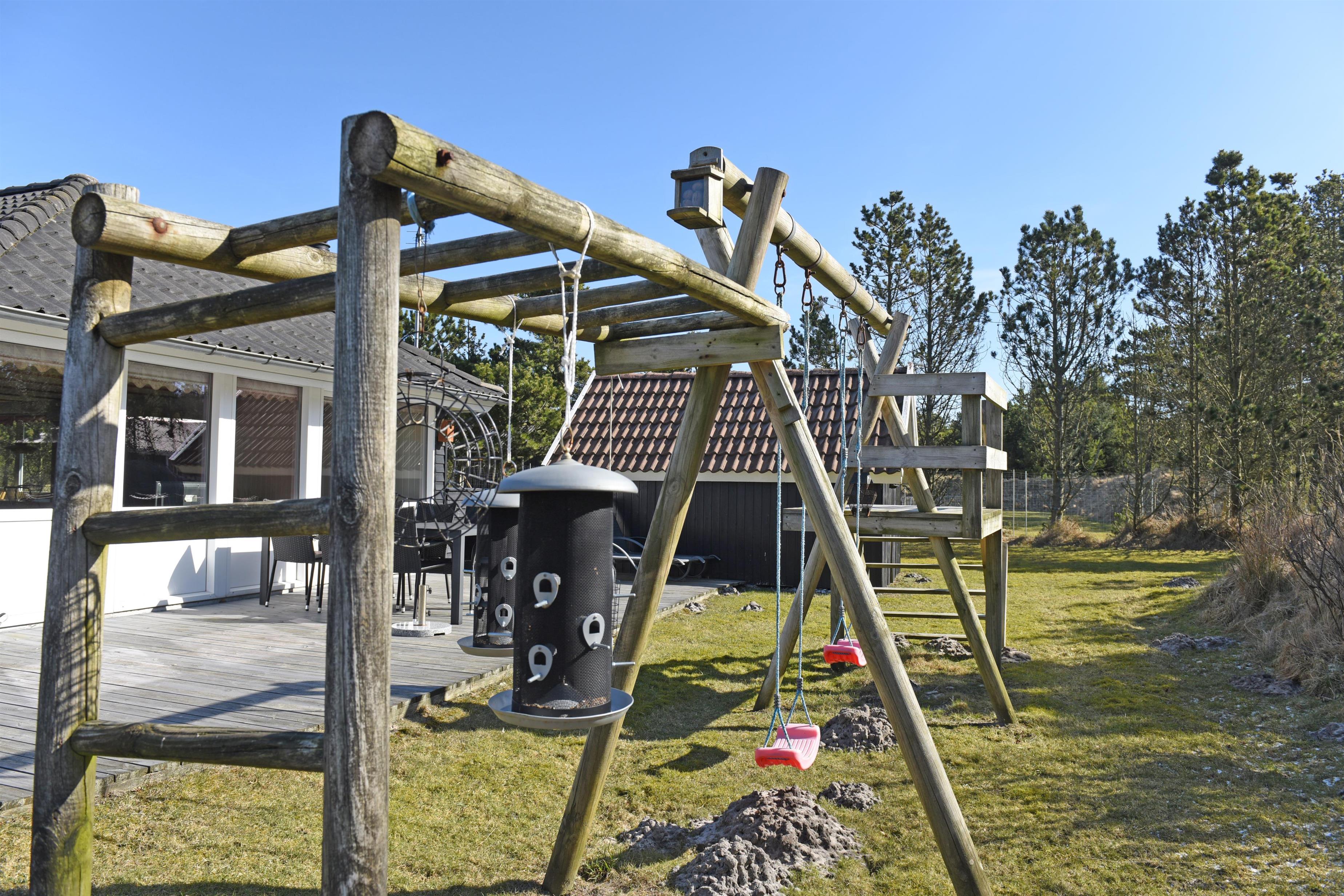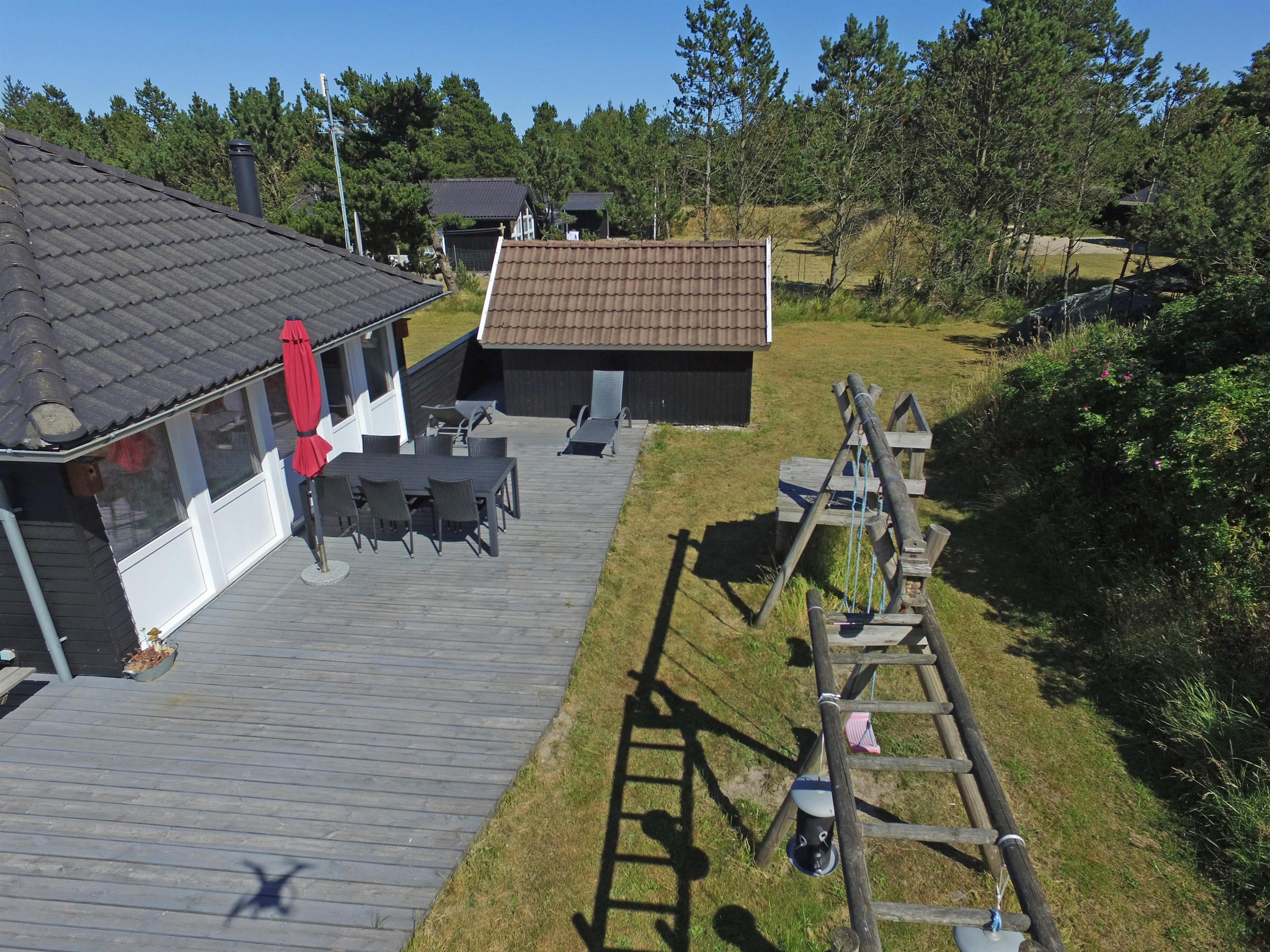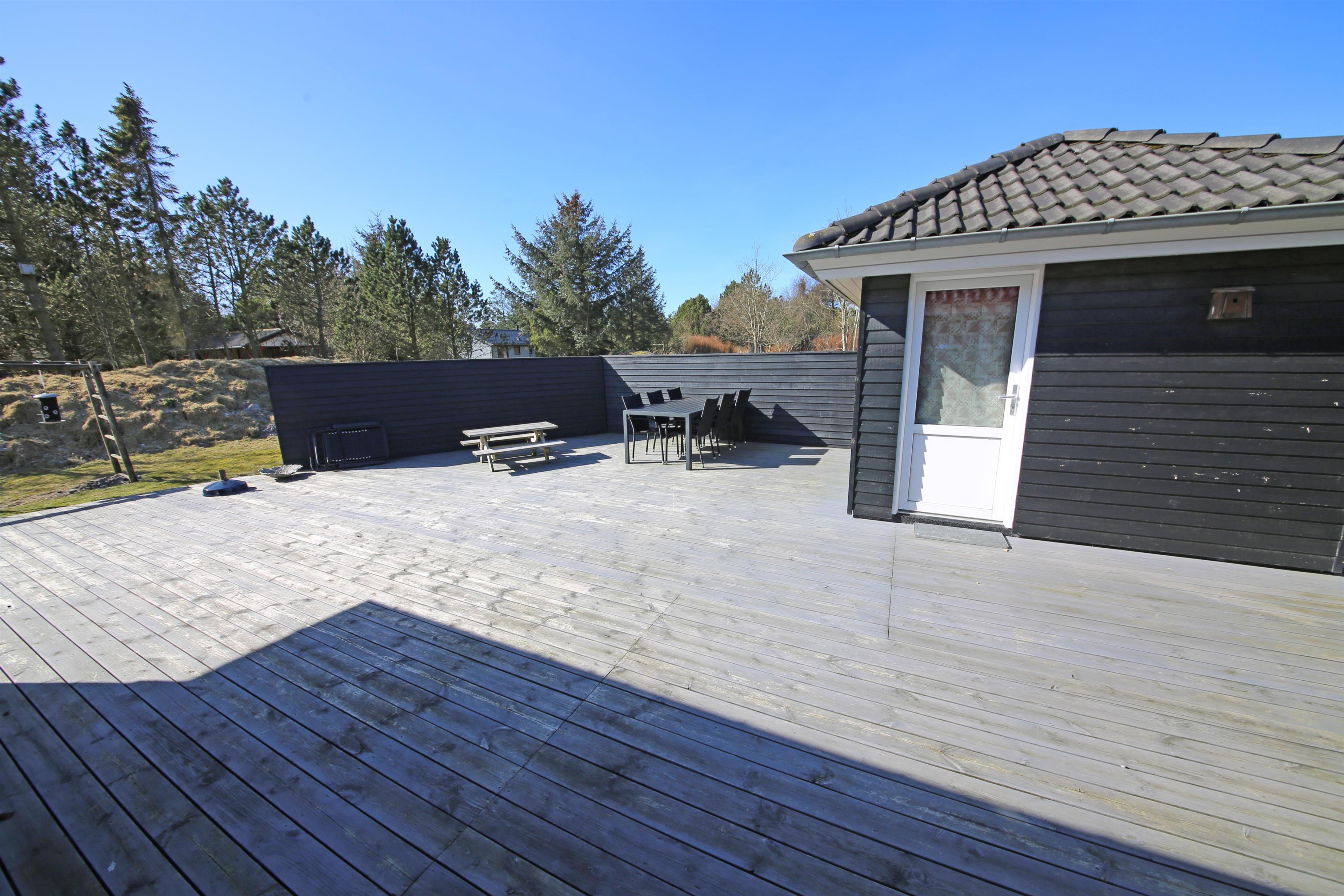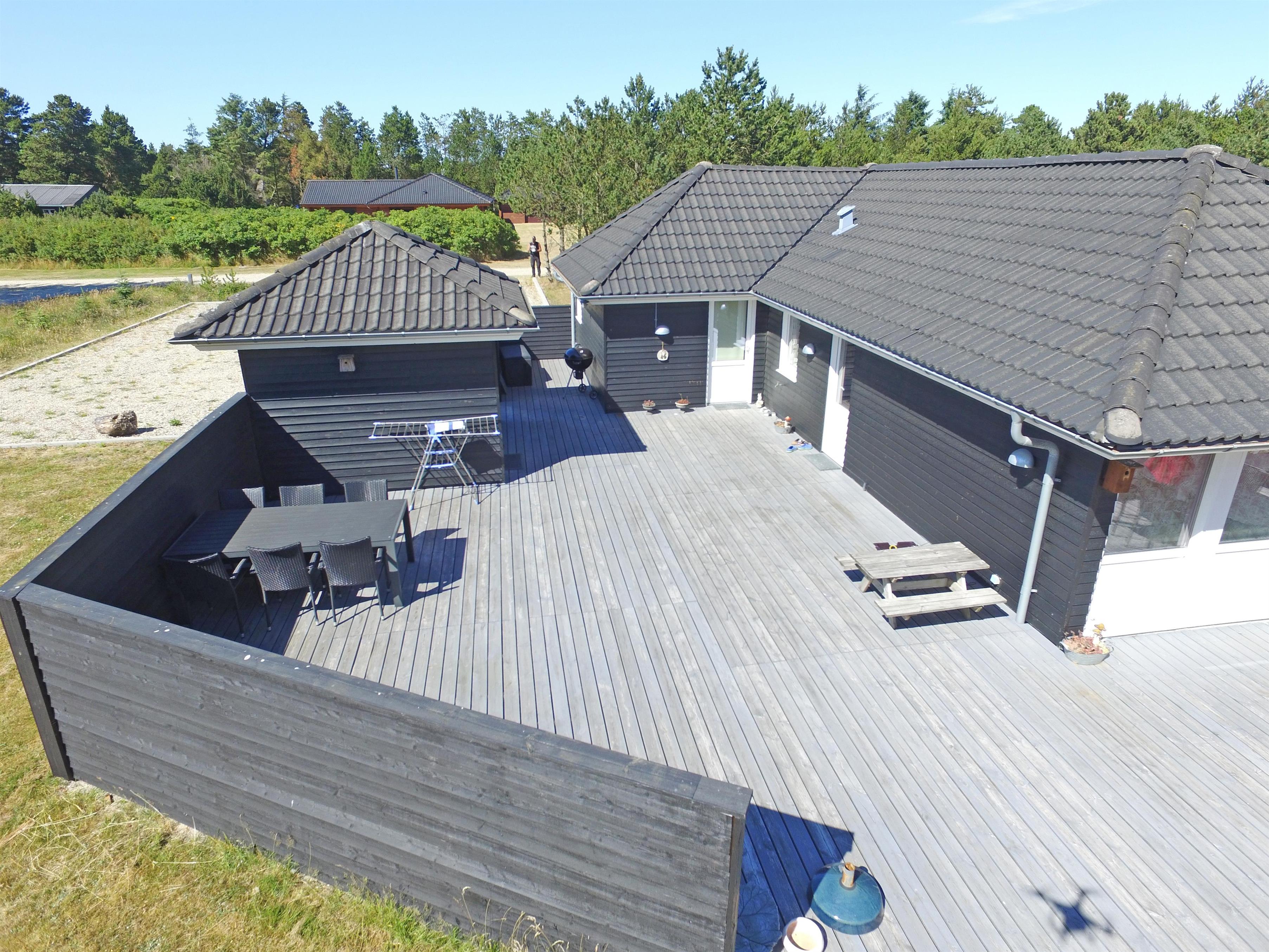 Flottes und gemütliches Ferienhaus mit Namen "Fyrrely" auf einem schönen großem geschlossenem Grundstück in Waldlage gelegen. Das Ferienhaus ist für 4-6 Personen ausgestattet. Der Strand ist ca. 1,8 Km vom Haus entfernt. Der Wohnbereich ist zur Küche und dem Speiseplatz hin offen gehalten. Im Wohnbereich befindet sich ein Kamin, der sich gegenüber der Rundsitzecke befindet. Er strahlt eine gemütliche Wärme aus. Eine kleine gemütliche Sitzecke mit Korbsesseln lädt zum verweilen ein. Es befindet sich eine Warmepumpe im Ferienhaus. Mit dieser Warmepumpe haben sie die Möglichkeit die Stromkosten zu senken, denn die Warmepumpe ist energiesparend. Das Fernsehprogramm empfangen Sie über eine Parabolantenne. Die großzügige Küche verfügt über einen Herd mit Cerankochfeld, einem Backofen, eine Geschirrspülmaschine, eine Mikrowelle und einer Kühl- und Gefrierkombination. Das Badezimmer verfügt über ein Handwaschbecken, ein WC, eine Dusche und einen Whirlpool. Es stehen den Gästen drei Schlafzimmer zur Verfügung: DB + DB + DB. In dem Technikraum im Ferienhaus steht Ihnen eine Waschmaschine zur Verfügung, unter anderem ist dort auch der Warmwasserbehälter untergebracht. Am Haus befindet sich eine große Holzterrasse und bietet allen Gästen genügend Platz um auch mal Ihr Sonnenbad geniessen zu können. Für die Kleinen Gäste steht auf dem Grundstück ein Schaukel/Klettergerüst und eine Sandkiste zum Spielen bereit. Das Ferienhaus verfügt über einen Internetanschluss (W-Lan). Nicht-raucher Haus. Es sind max. 2 Haustiere erlaubt. Das Ferienhaus ist 1968 erbaut worden und ca. 2005 umgebaut worden.