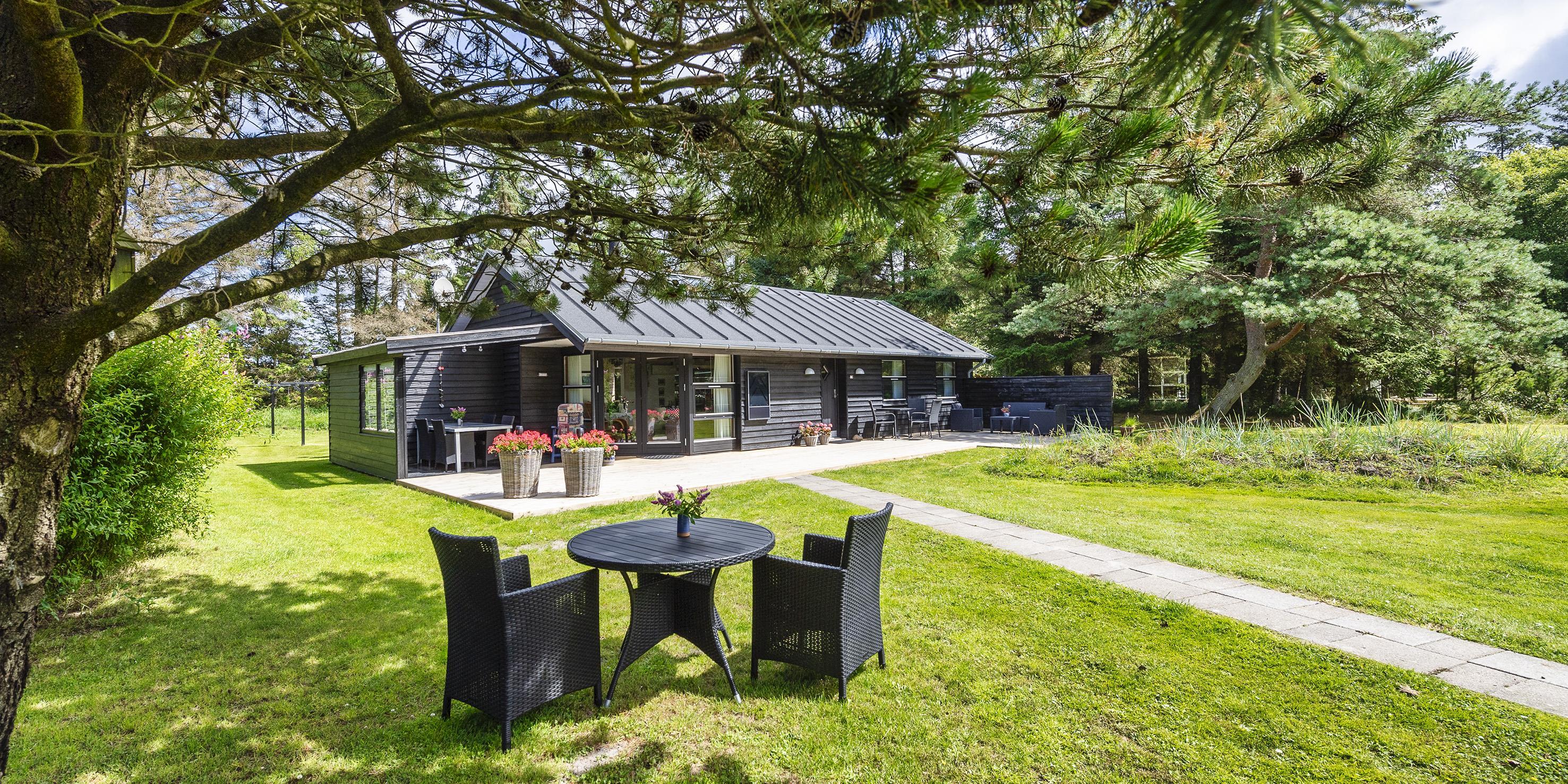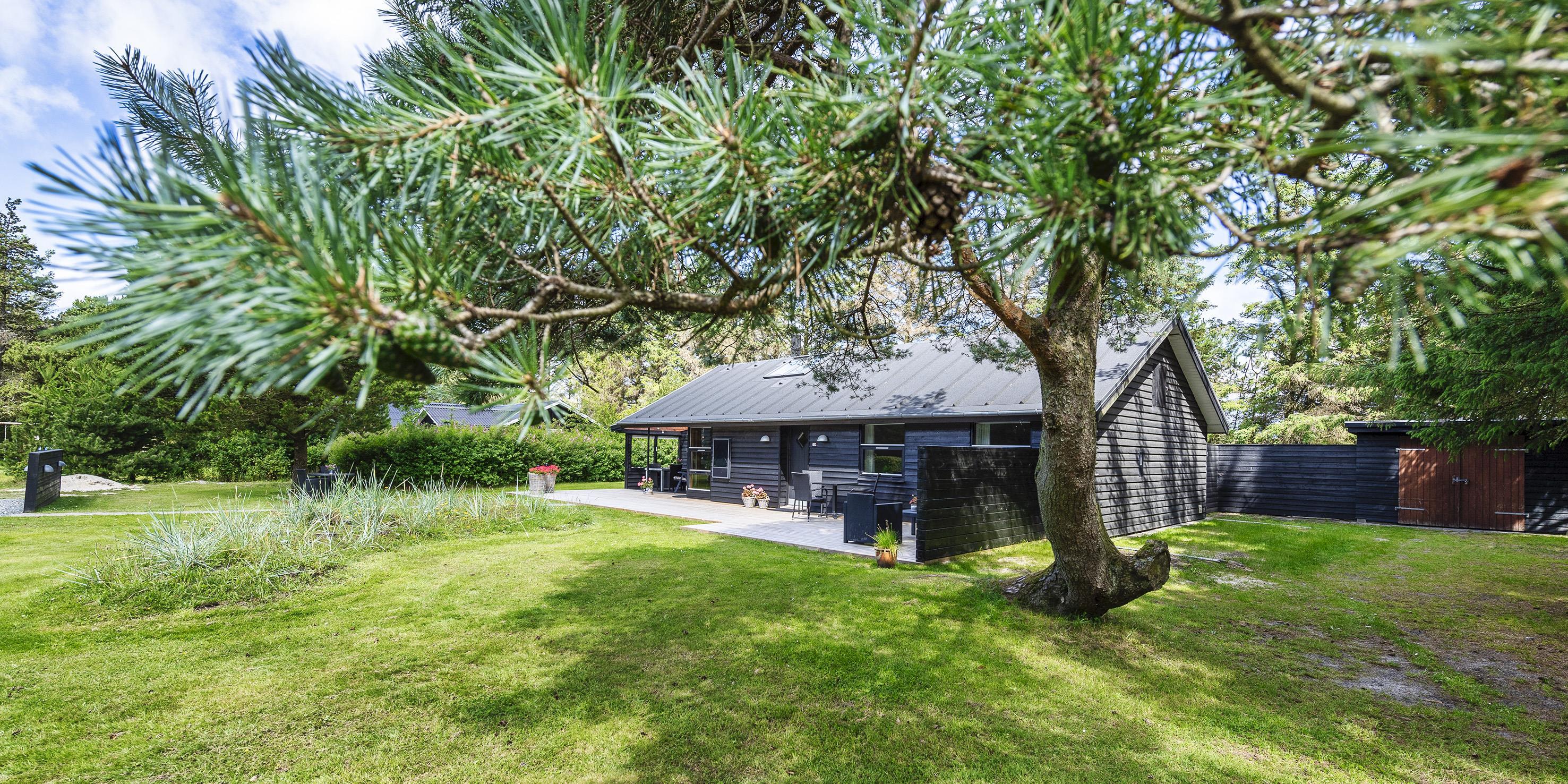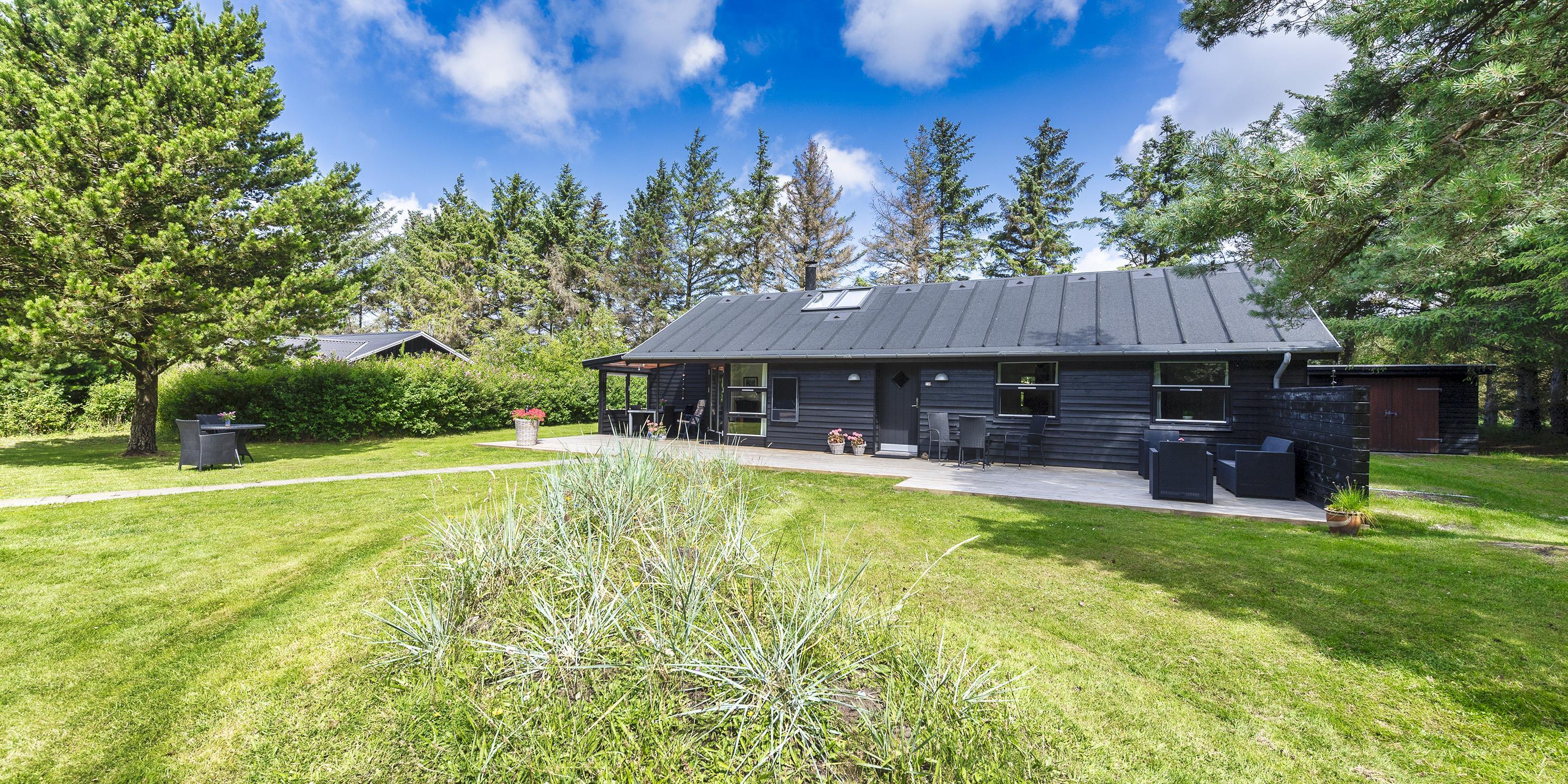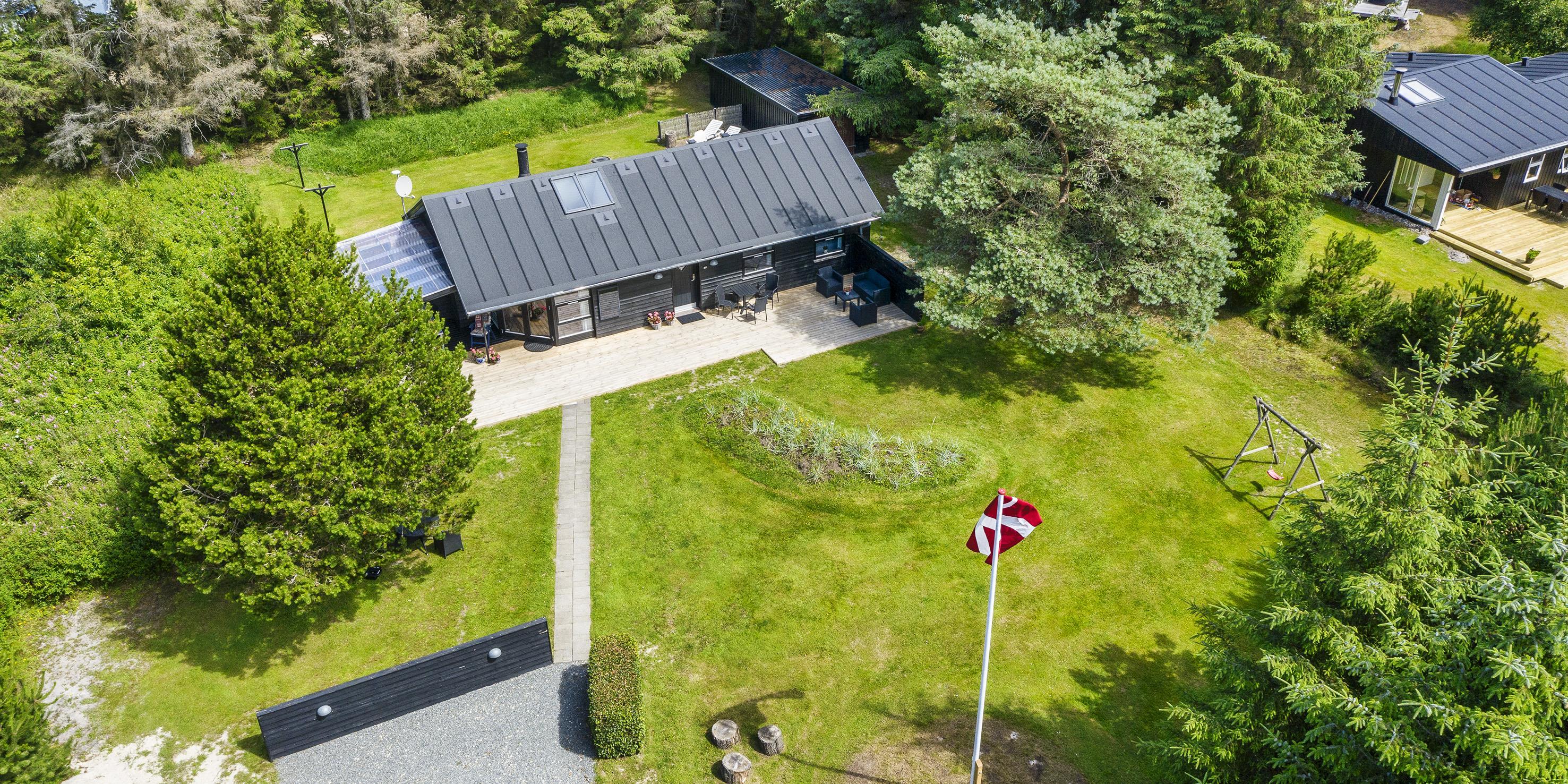 Auf einem etwa 2000 m2 großen gepflegten und ebenen Grundstück befindet sich dieses gemütliche und geschmackvoll eingerichtete Ferienhaus. Das Grundstück ist teilweise von großen Bäumen umgeben und nur ca. 1500 Meter vom Strand entfernt. Ca. 300 Meter zum Restaurant, Minigolf und Einkaufsmöglichkeiten. Kurze Entfernung zum Wald.