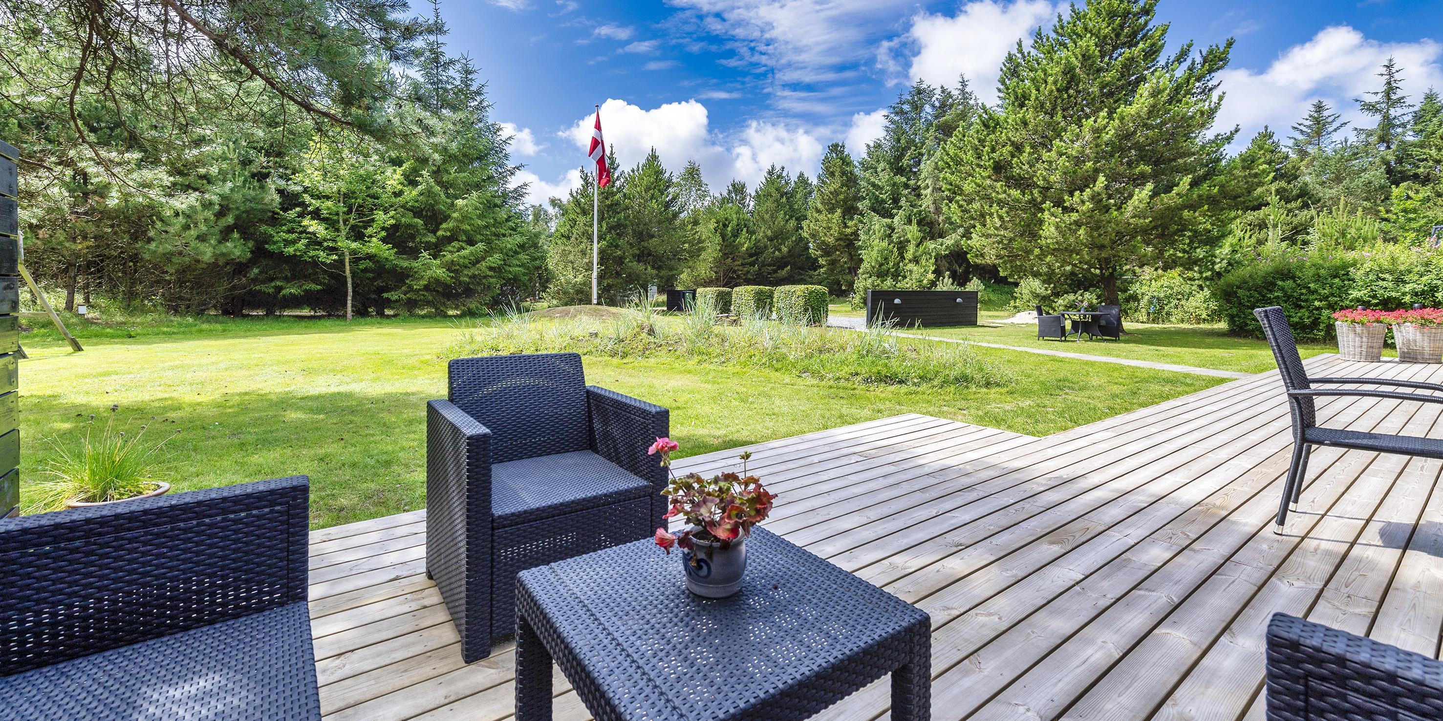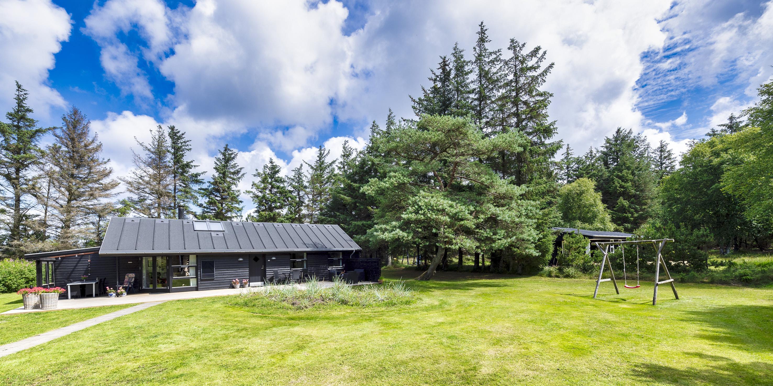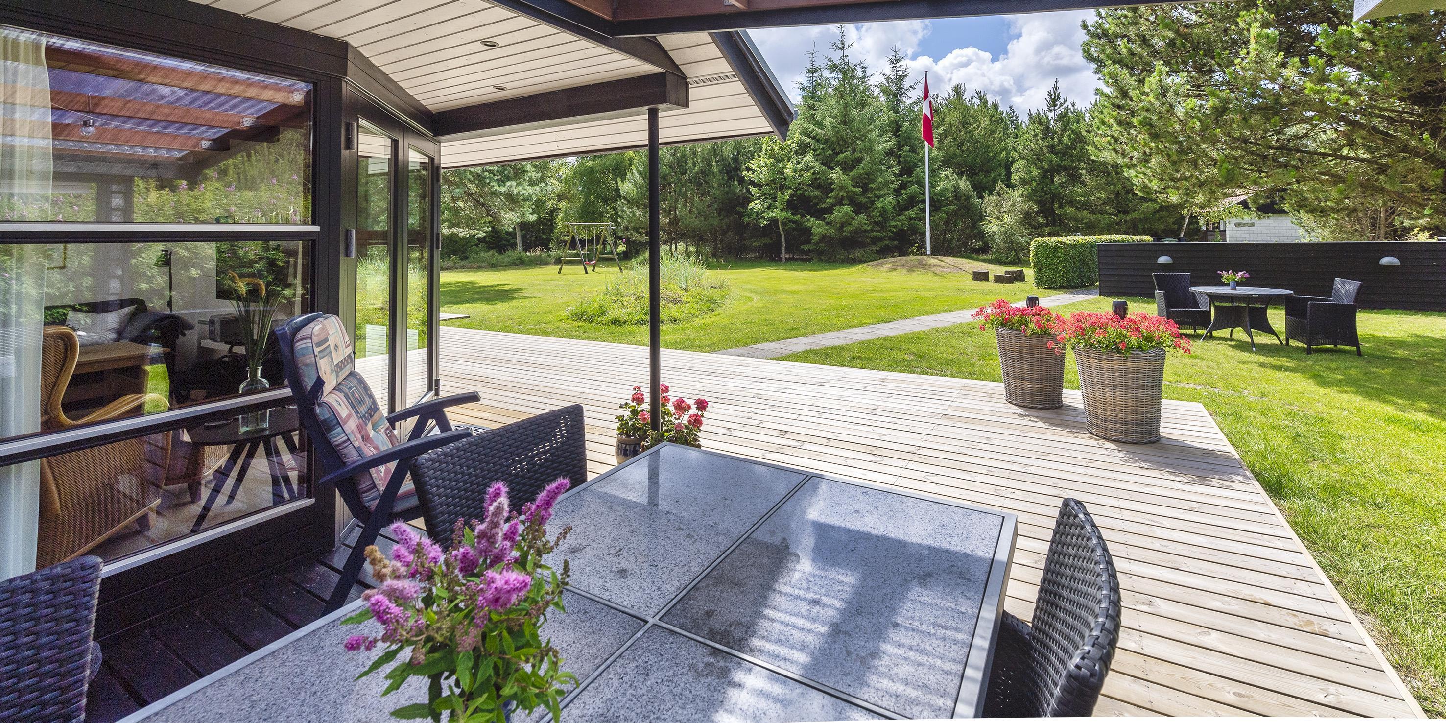 Auf einem etwa 2000 m2 großen gepflegten und ebenen Grundstück befindet sich dieses gemütliche und geschmackvoll eingerichtete Ferienhaus. Das Grundstück ist teilweise von großen Bäumen umgeben und nur ca. 1500 Meter vom Strand entfernt. Ca. 300 Meter zum Restaurant, Minigolf und Einkaufsmöglichkeiten. Kurze Entfernung zum Wald.