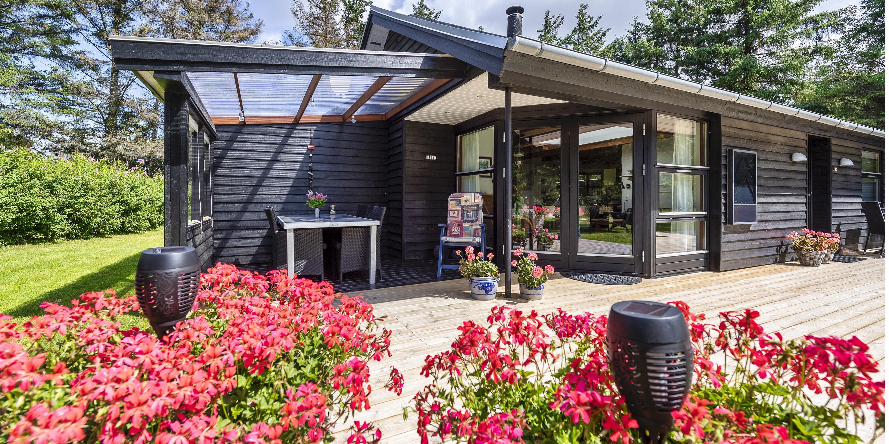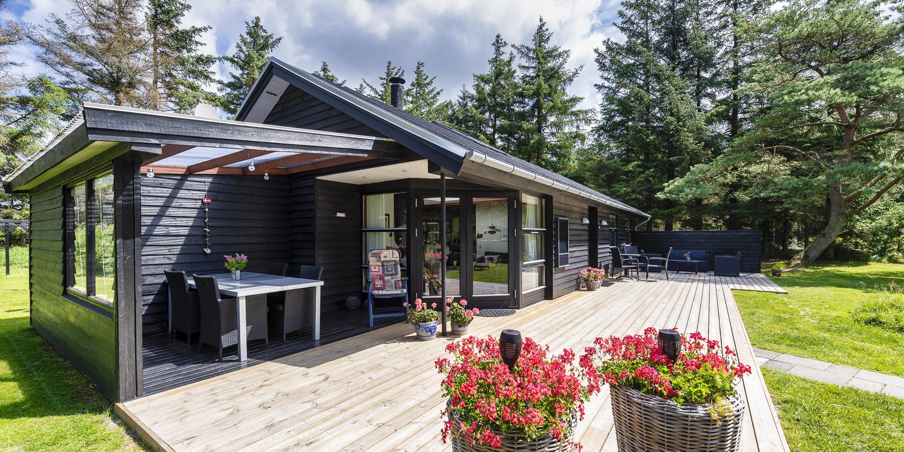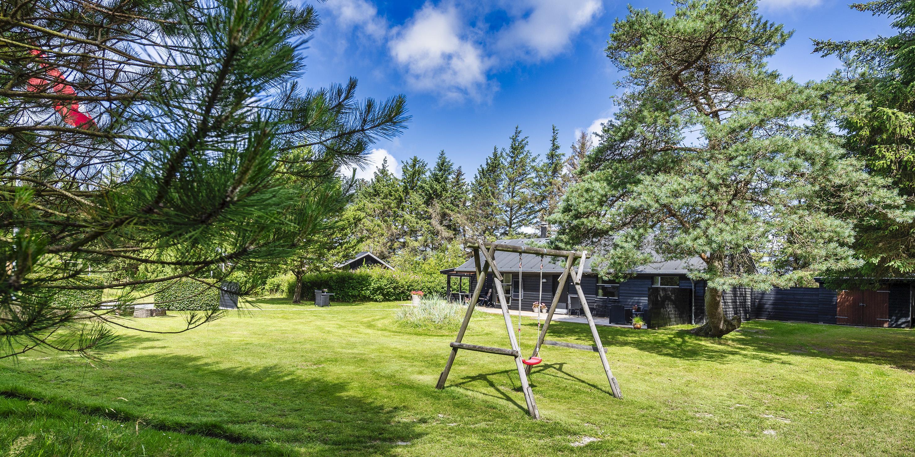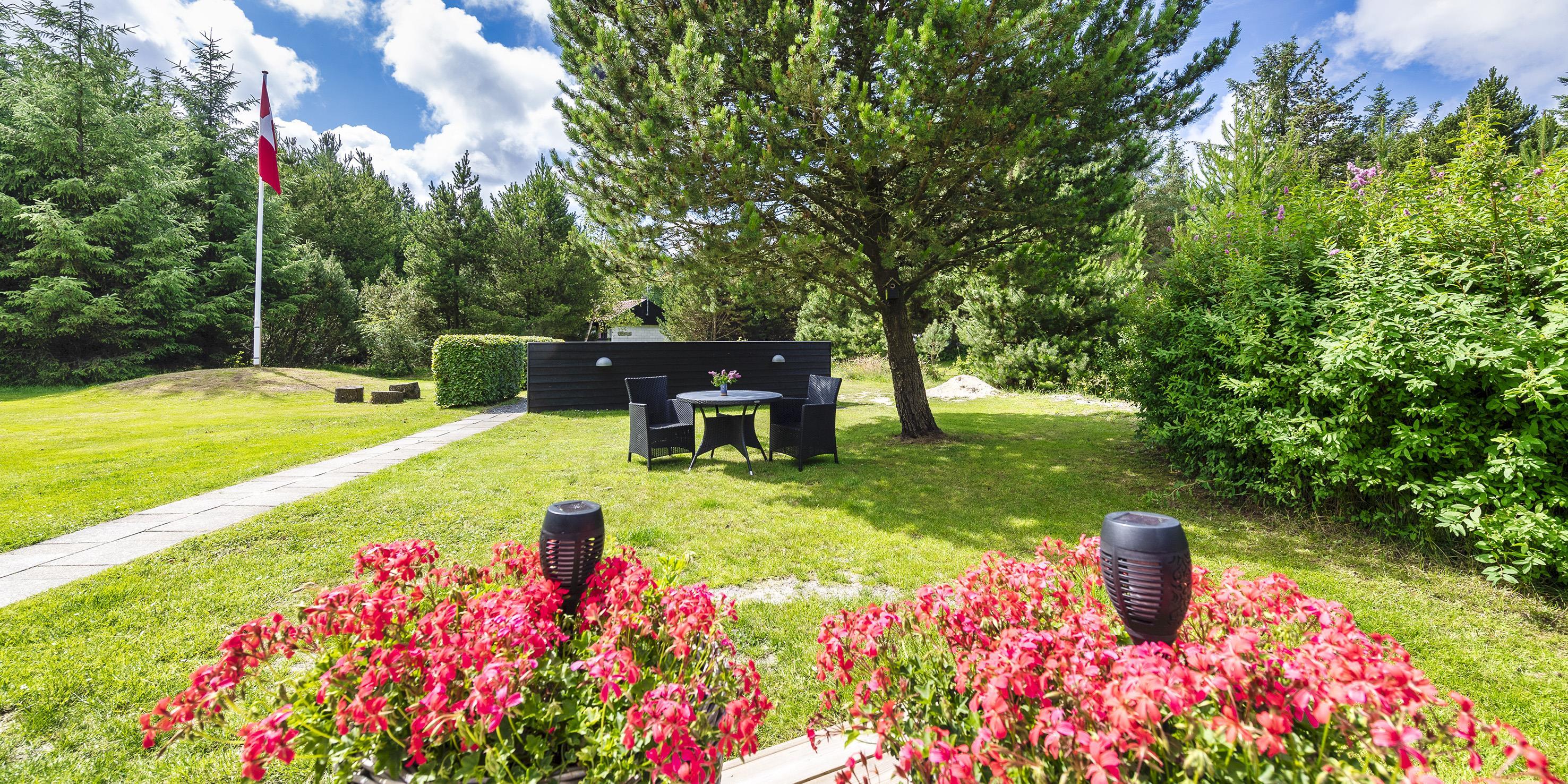 Auf einem etwa 2000 m2 großen gepflegten und ebenen Grundstück befindet sich dieses gemütliche und geschmackvoll eingerichtete Ferienhaus. Das Grundstück ist teilweise von großen Bäumen umgeben und nur ca. 1500 Meter vom Strand entfernt. Ca. 300 Meter zum Restaurant, Minigolf und Einkaufsmöglichkeiten. Kurze Entfernung zum Wald.