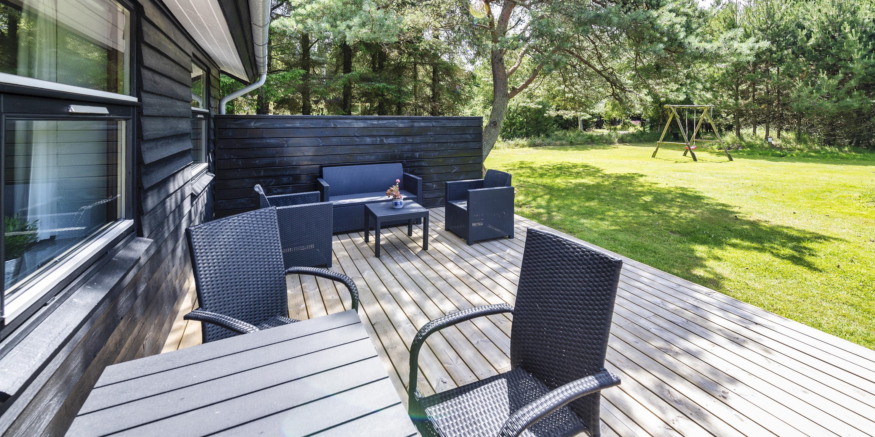 Auf dem Grundstück gibt es immer eine geschützte Ecke, denn sowohl auf der Nord- als auch auf der Südseite des Hauses befindet sich eine große neu angelegte Terrasse. Der Außenbereich ist gut mit Gartenmöbeln ausgestattet.