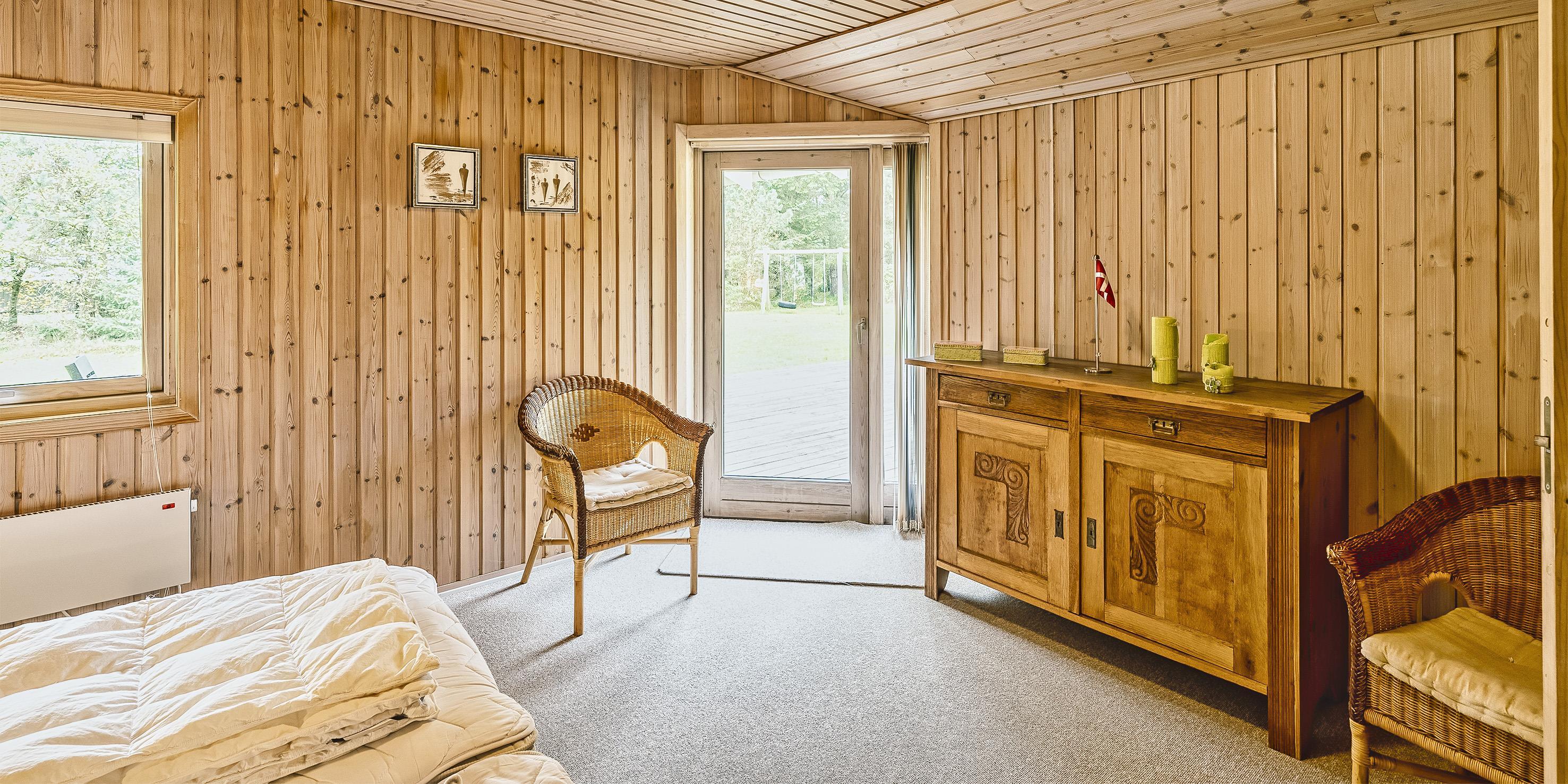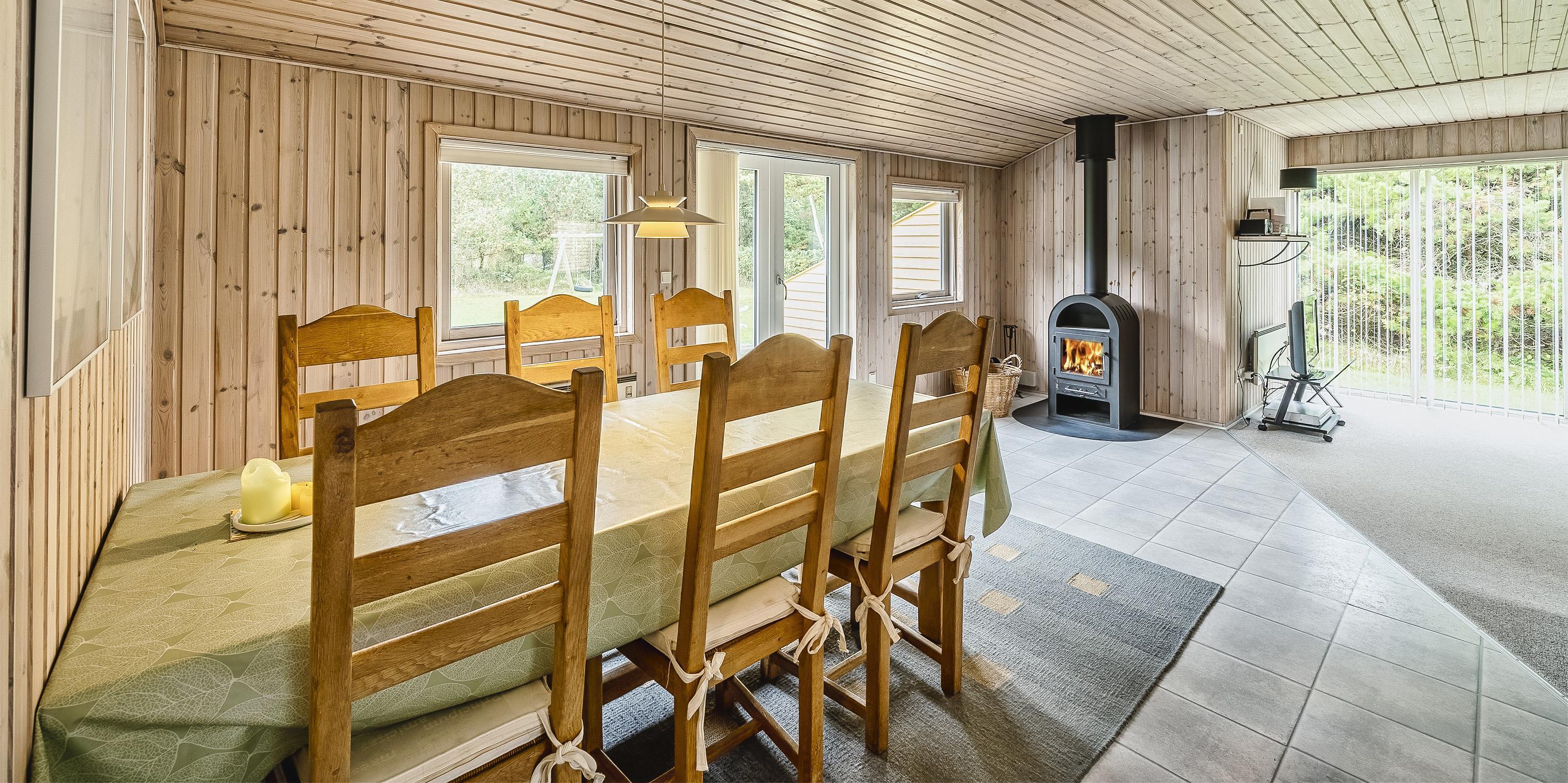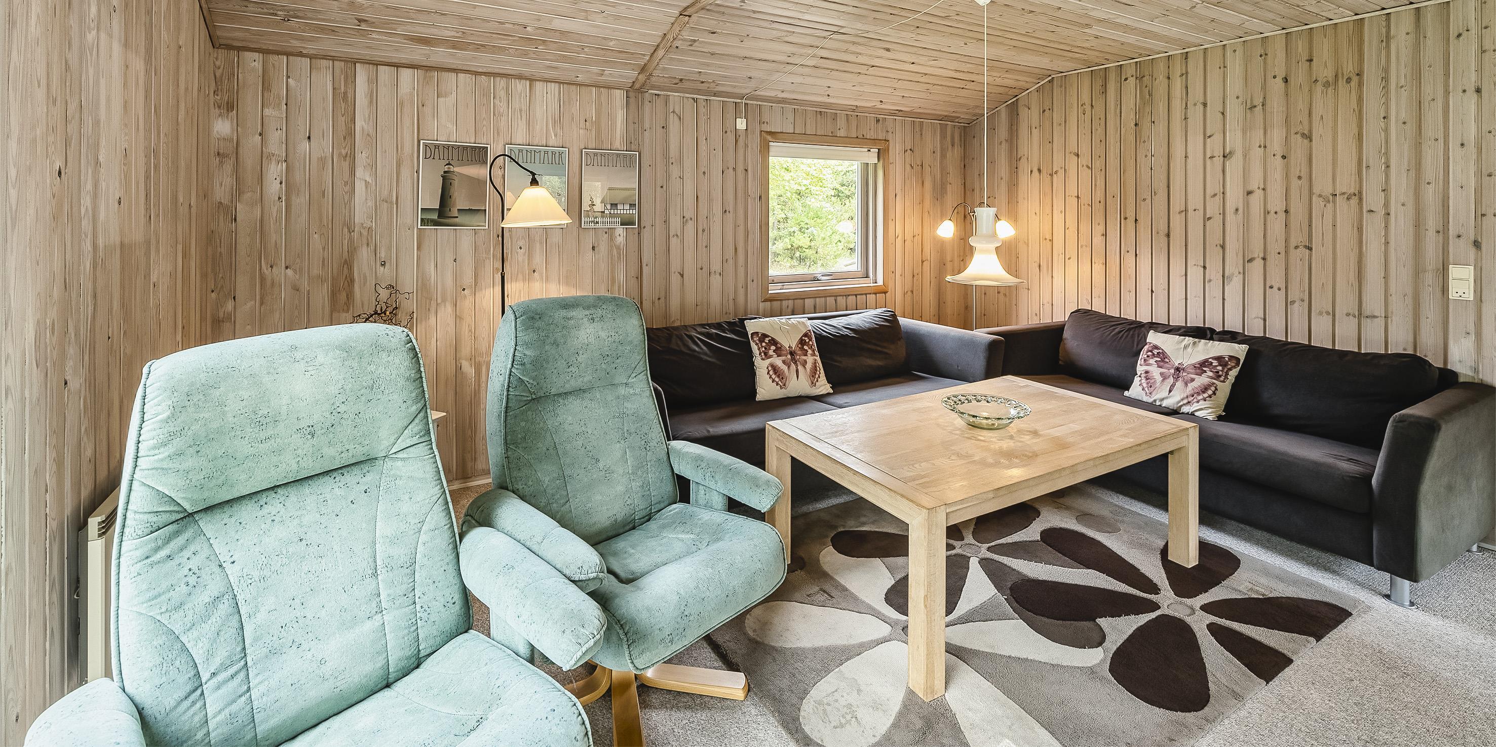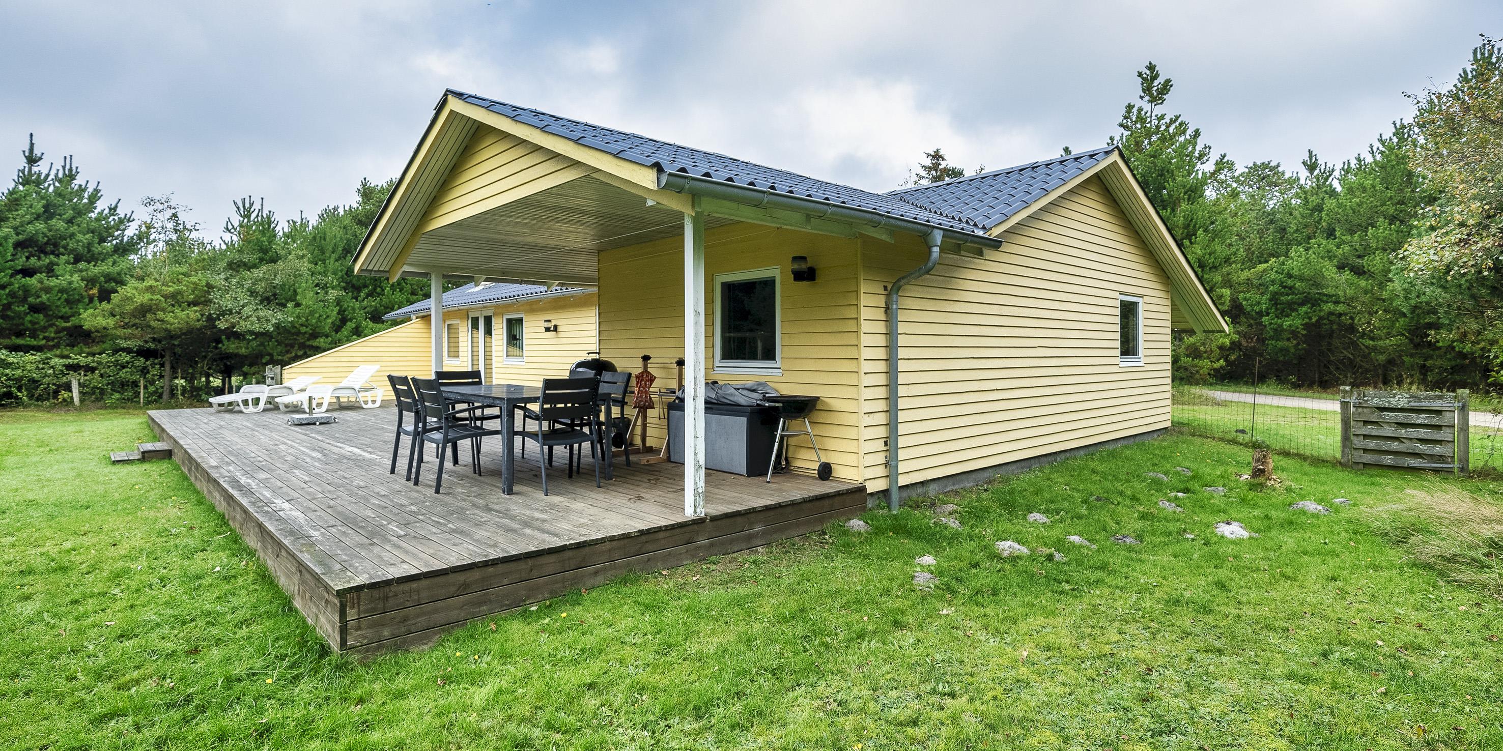 Schönes Ferienhaus auf einem großen Rasengrundstück gelegen, rundum bewachsen mit Bäumen und Büschen. Das Ferienhaus ist für 6 Personen ausgestattet. Der Strand ist ca. 2 km vom Haus entfernt. Gemütlicher Wohnbereich mit einem Fernsehgerät. Das deutsche Fernsehprogramm empfangen Sie über Stofa, daher sind es nur 5-8 Kanäle die Sie empfangen können. Der Kamin ist im Bereich des Speiseplatzes aufgestellt, beheizt aber den ganzen Raum bis hin zum Wohnbereich und auch den Küchenbereich. Der Speiseplatz ist gegenüber der Küche platziert. Die Küche ist einfach und verfügt über einen Herd mit Kochplatten, einem Backofen, einer Geschirrspülmaschine, einer Mikrowelle und einer Kühl- und Gefrierkombination. Die Waschmaschine ist auch in der Küche untergebracht. Das geflieste Badezimmer hat ein WC, ein Handwaschbecken, eine Dusche und eine Sauna. Es stehen Ihnen insgesamt drei Schlafzimmer zur Verfügung: DB + 2B + 2B. Ein Schlafzimmer hat ein Doppelbett und die beiden anderen Schlafzimmer sind mit je zwei Einzelbetten ausgestattet. Für die kleinen Gäste steht ein Schaukelstativ auf dem Grundstück zum Spielen bereit. Sollten mal ein paar Regentropfen fallen, so haben Sie die Möglichkeit Möglichkeit Ihren Grillabend im Trockenen zu verbringen, da ein Teil der Terrasse überdacht ist. Das Ferienhaus verfügt über einen Internetanschluss (W-Lan). Es befindet sich eine Warmepumpe im Ferienhaus. Mit dieser Warmepumpe haben sie die Möglichkeit die Stromkosten zu senken, denn die Warmepumpe ist energiesparend. Das Rauchen im Ferienhaus ist nicht erlaubt. Es ist max. ein Haustier erlaubt. Dieser darf aber absolut nicht alleine im Ferienhaus bleiben, dies ist der Wunsch des Eigentümers. Das Ferienhaus ist 1966 erbaut worden und in 1998 renoviert.