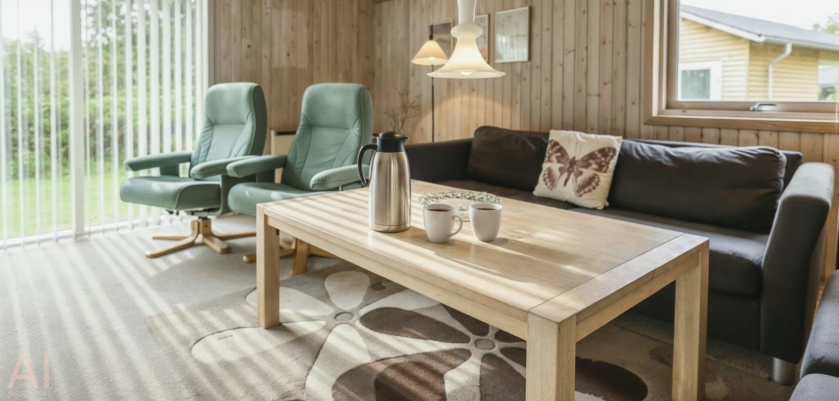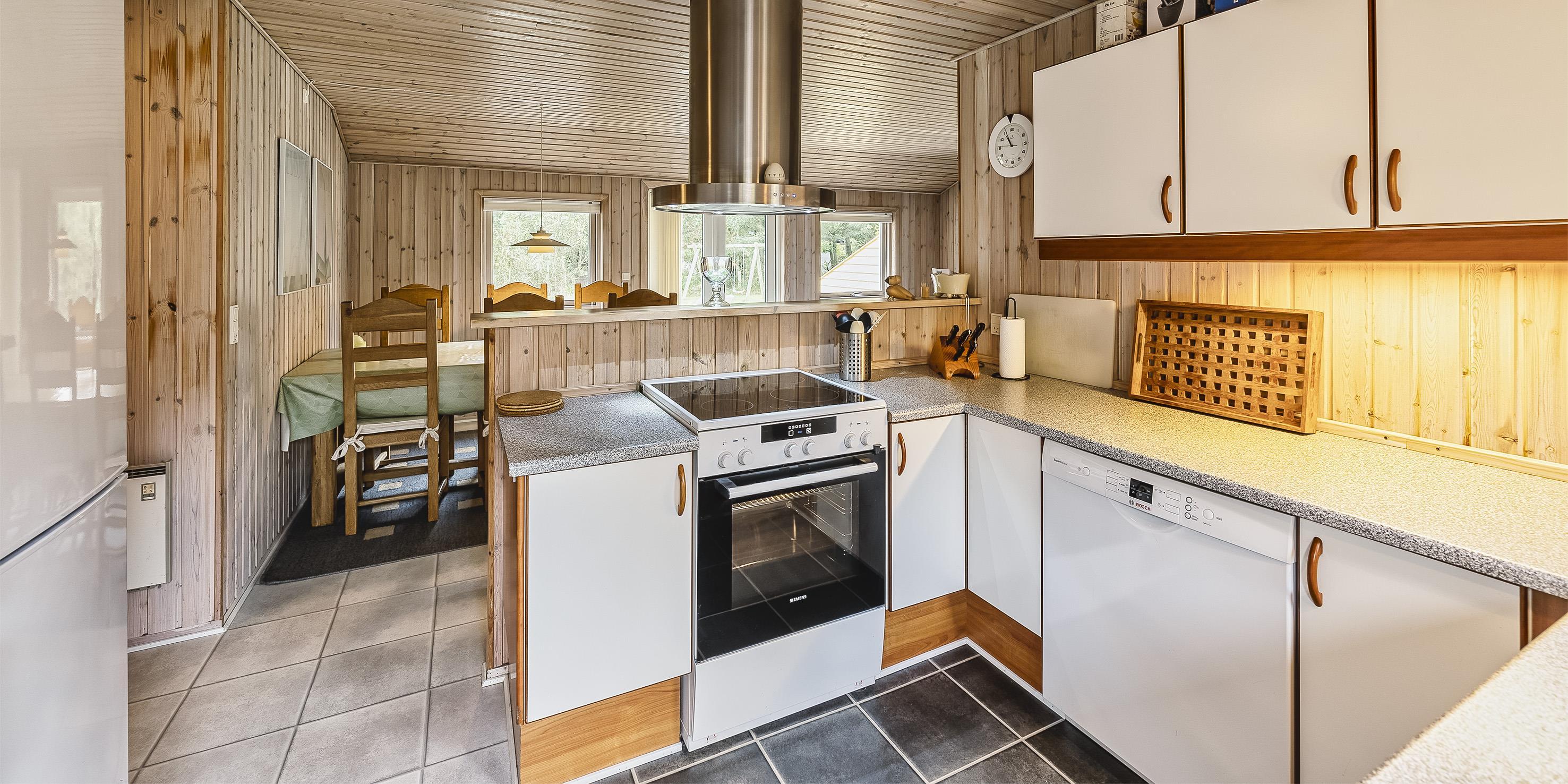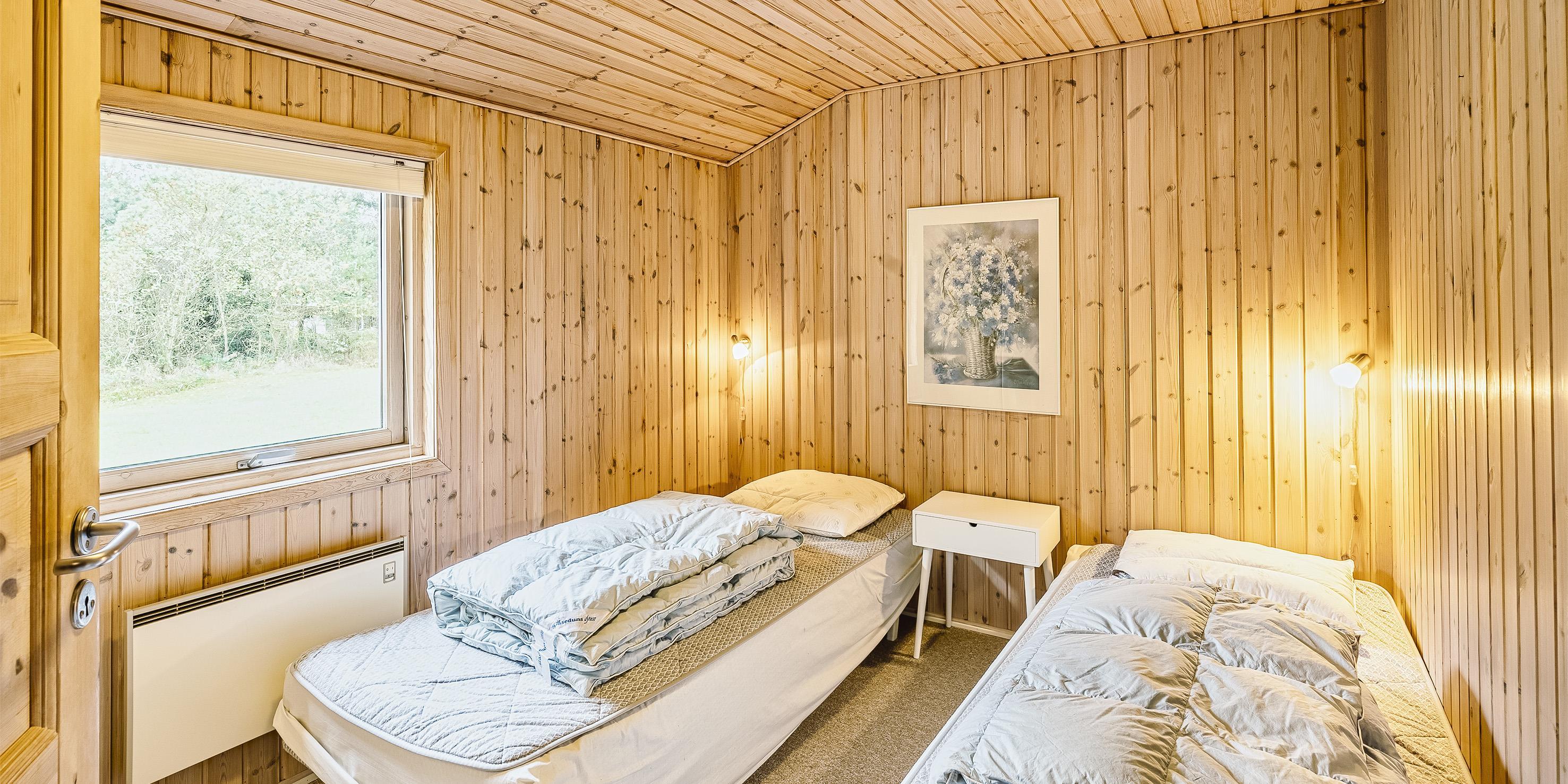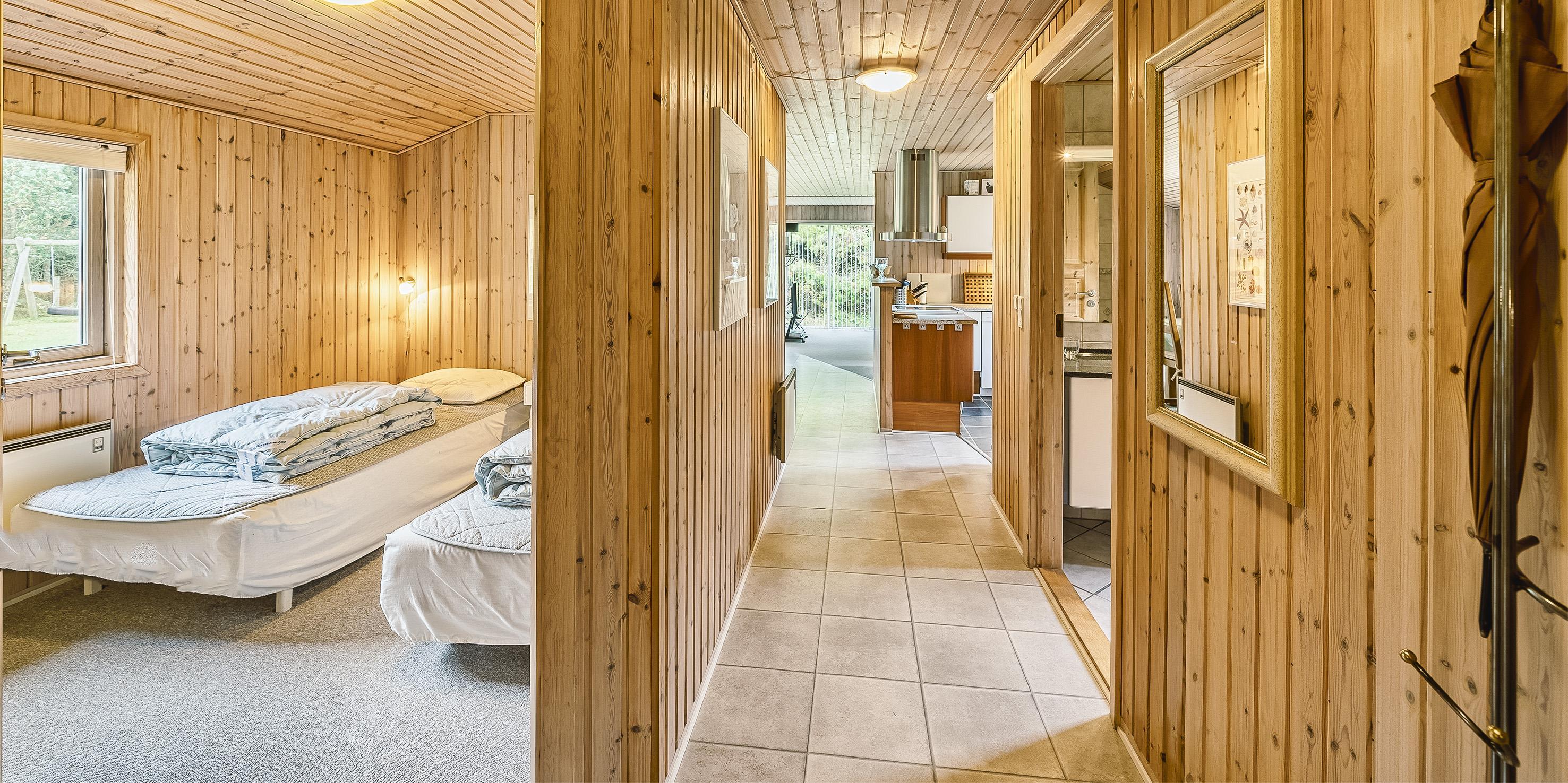 Schönes Ferienhaus auf einem großen Rasengrundstück gelegen, rundum bewachsen mit Bäumen und Büschen. Das Ferienhaus ist für 6 Personen ausgestattet. Der Strand ist ca. 2 km vom Haus entfernt. Gemütlicher Wohnbereich mit einem Fernsehgerät. Das deutsche Fernsehprogramm empfangen Sie über Stofa, daher sind es nur 5-8 Kanäle die Sie empfangen können. Der Kamin ist im Bereich des Speiseplatzes aufgestellt, beheizt aber den ganzen Raum bis hin zum Wohnbereich und auch den Küchenbereich. Der Speiseplatz ist gegenüber der Küche platziert. Die Küche ist einfach und verfügt über einen Herd mit Kochplatten, einem Backofen, einer Geschirrspülmaschine, einer Mikrowelle und einer Kühl- und Gefrierkombination. Die Waschmaschine ist auch in der Küche untergebracht. Das geflieste Badezimmer hat ein WC, ein Handwaschbecken, eine Dusche und eine Sauna. Es stehen Ihnen insgesamt drei Schlafzimmer zur Verfügung: DB + 2B + 2B. Ein Schlafzimmer hat ein Doppelbett und die beiden anderen Schlafzimmer sind mit je zwei Einzelbetten ausgestattet. Für die kleinen Gäste steht ein Schaukelstativ auf dem Grundstück zum Spielen bereit. Sollten mal ein paar Regentropfen fallen, so haben Sie die Möglichkeit Möglichkeit Ihren Grillabend im Trockenen zu verbringen, da ein Teil der Terrasse überdacht ist. Das Ferienhaus verfügt über einen Internetanschluss (W-Lan). Es befindet sich eine Warmepumpe im Ferienhaus. Mit dieser Warmepumpe haben sie die Möglichkeit die Stromkosten zu senken, denn die Warmepumpe ist energiesparend. Das Rauchen im Ferienhaus ist nicht erlaubt. Es ist max. ein Haustier erlaubt. Dieser darf aber absolut nicht alleine im Ferienhaus bleiben, dies ist der Wunsch des Eigentümers. Das Ferienhaus ist 1966 erbaut worden und in 1998 renoviert.