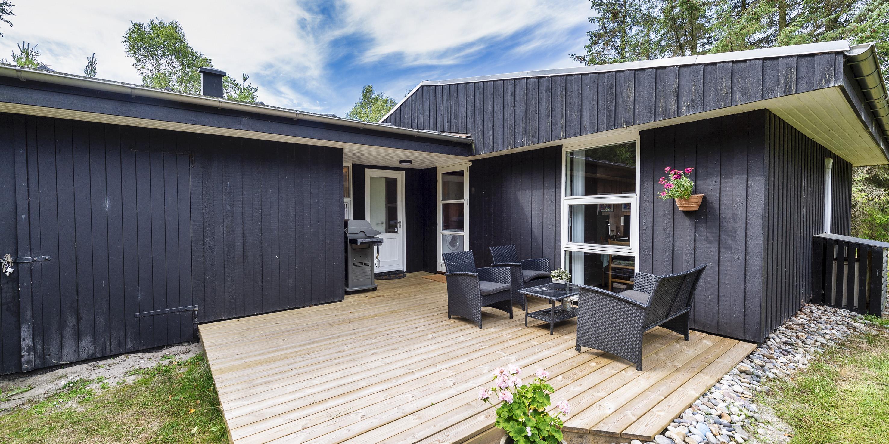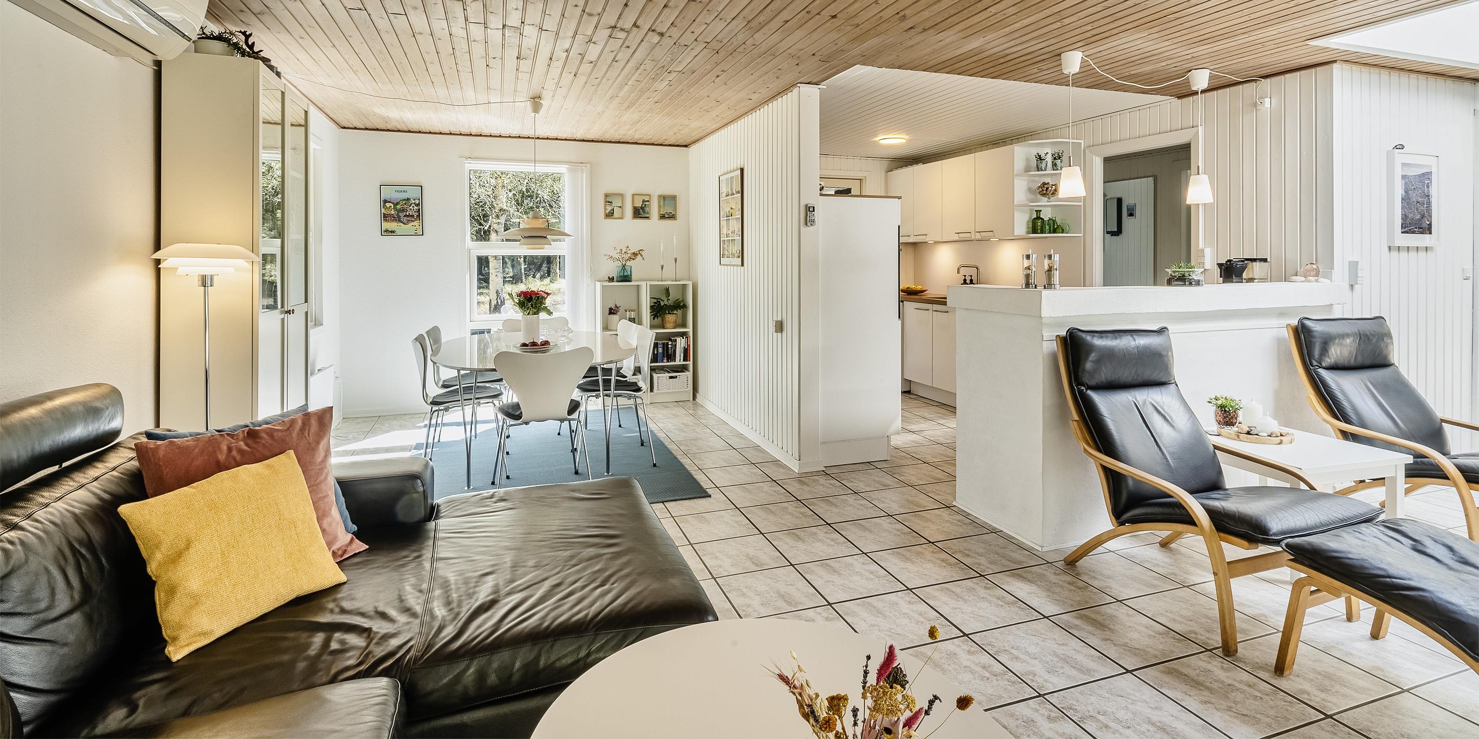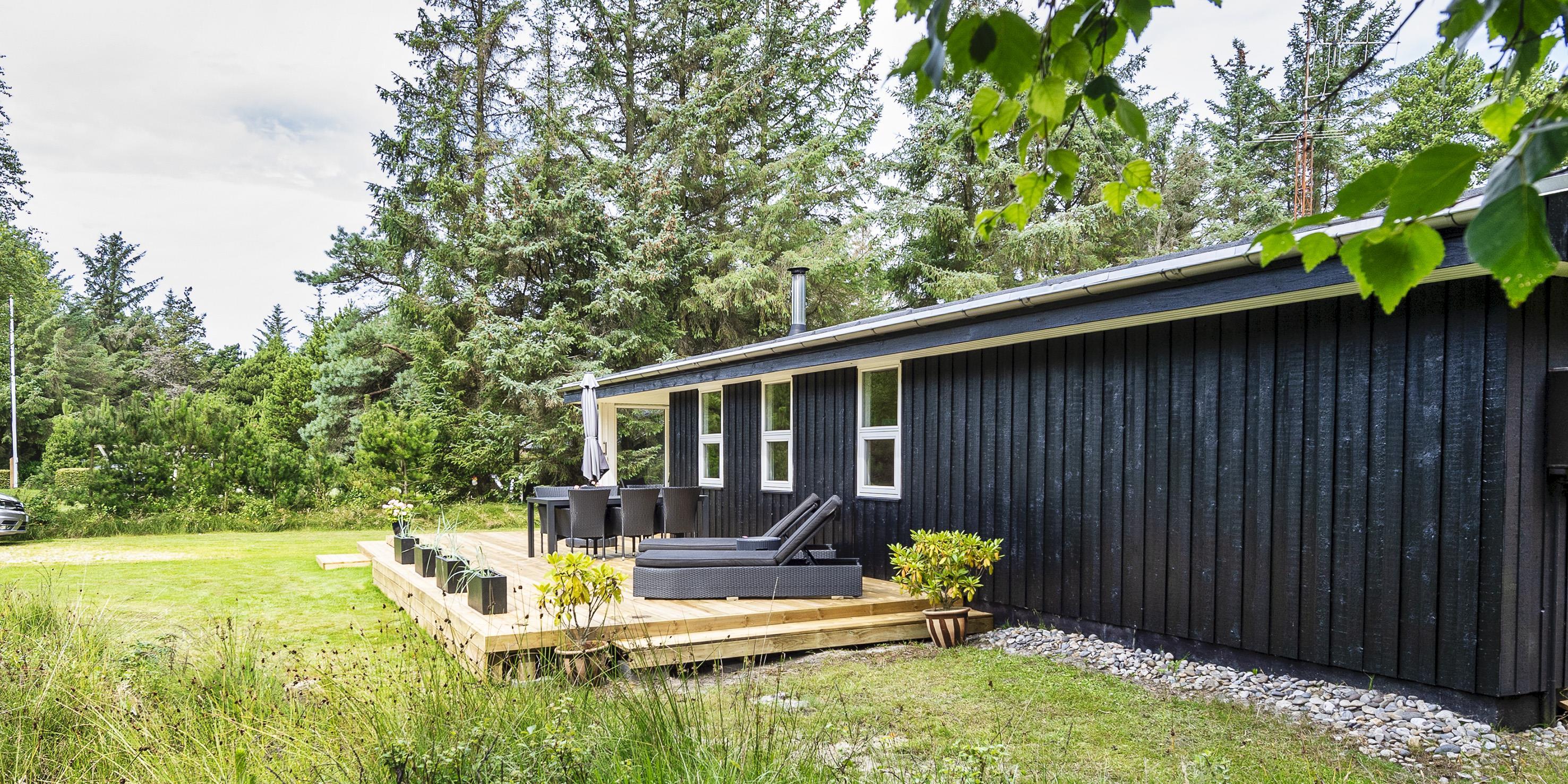 Schönes und gemütliches Ferienhaus mit Namen "Kibbik" auf einem nicht einsehbaren Grundstück gelegen. Das Ferienhaus ist für 6 Personen ausgestattet. Der Strand ist ca. 2 Km vom Haus entfernt. Der Wohnbereich ist mit dem Essbereich und der Küche offen gehalten. Dieser komplette Bereich ist gefliest. Der Eingangsbereich hat ein Oberlicht und ist daher sehr hell und freundlich. Desweiteren ist der Eingangsbereich von außen überdacht. Der im Wohnbereich aufgestellte Kamin spendet eine wohlige Wärme. Es befindet sich eine Warmepumpe im Ferienhaus. Mit dieser Warmepumpe haben sie die Möglichkeit die Stromkosten zu senken, denn die Warmepumpe ist energiesparend. Das deutsche Fernsehprogramm empfangen Sie über eine Parabolantenne sowie Stofa. Der offene moderne und neue Küchenbereich verfügt über einen Herd mit Cerankochfeld, einem Backofen in Arbeitshöhe, einer Geschirrspülmaschine, einer Mikrowelle und einer Kühl- und Gefrierkombination. Ausgang zum terrasse von den Küchenbereich. Das schöne neue Badezimmer ist mit einem WC, einem Handwaschbecken, einer Dusche und einer Sauna ausgestattet. Im Ferienhaus befindet sich eine kombinierte Waschmaschine/Trockner, die von den Gästen genutzt werden darf. Den Gästen stehen drei Schlafzimmer zur Verfügung: DB + DB + 2B. Ein Schlafzimmer hat ein Doppelbett, ein Schlafzimmer zwei Einzelbetten und das Dritte hat ein Ausziehbett. Das Ferienhaus verfügt über einen Internetanschluss (W-Lan 1000/1000 Mbit). Eine flotte Holzterrasse steht Ihnen am Ferienhaus auch zur Verfügung. Das Ferienhaus verfügt über ein Gas Grill, das Sie benutzen dürfen. Der Grill muss nach Gebrauch wieder gereinigt zurück gestellt werden. Auf dem Grundstück steht ein Schelter bereit. Das Rauchen im Ferienhaus ist nicht erlaubt sowie Katzen auch nicht. Es sind max. 1 Haustier erlaubt. Gratis Eintritt Golf in Ho in 2026. Das Ferienhaus ist 1972 erbaut worden. 2022 teilweise renoviert.