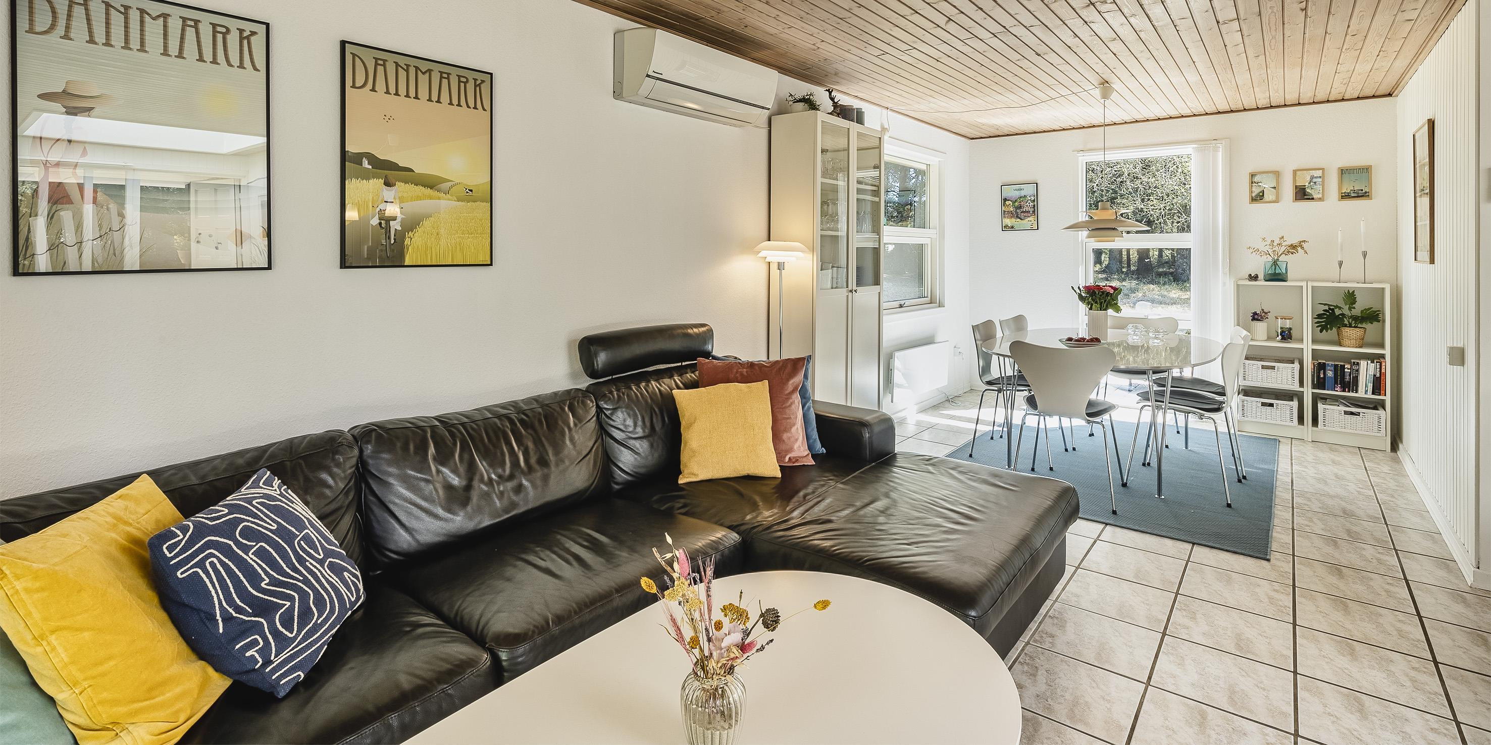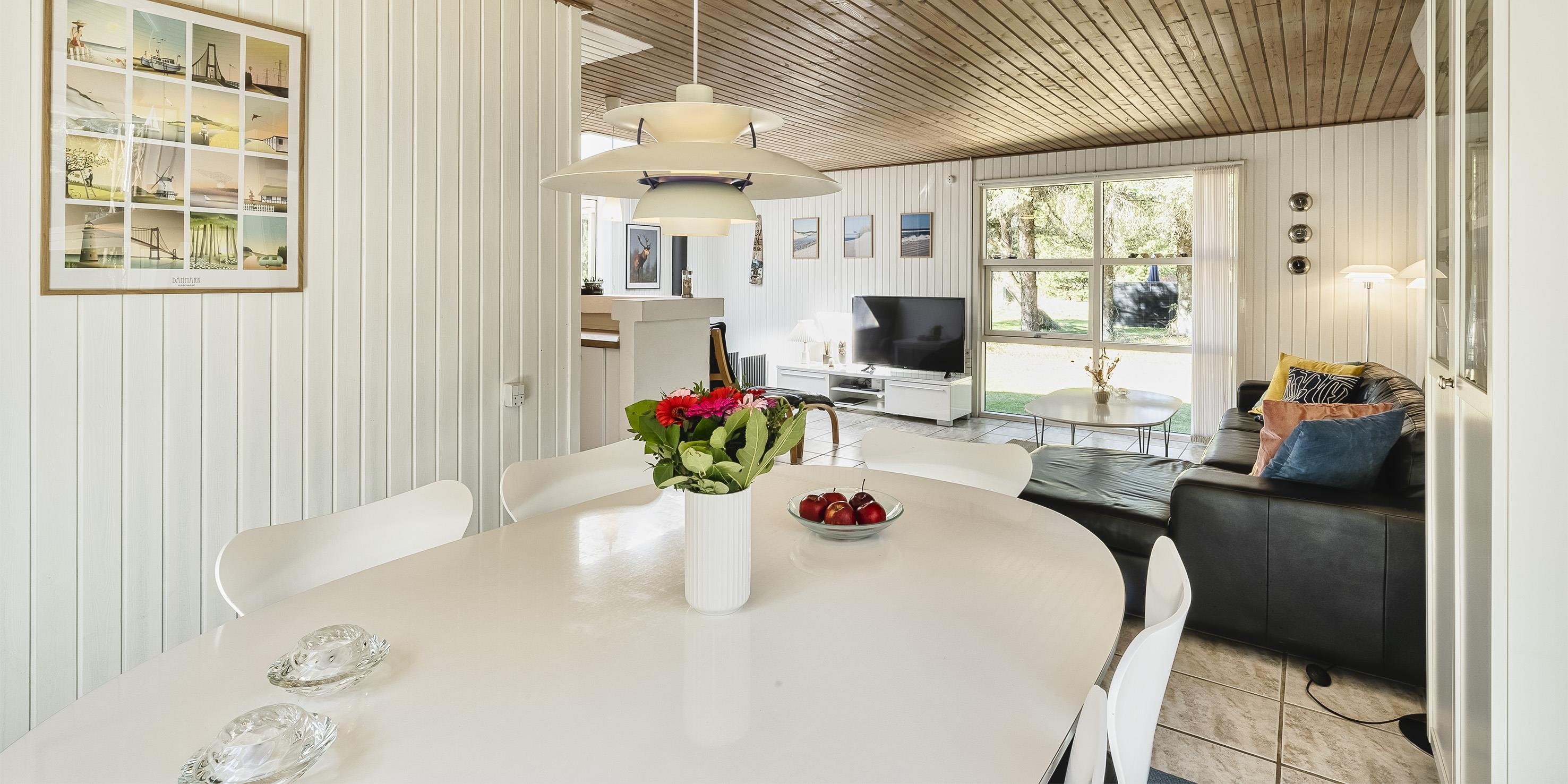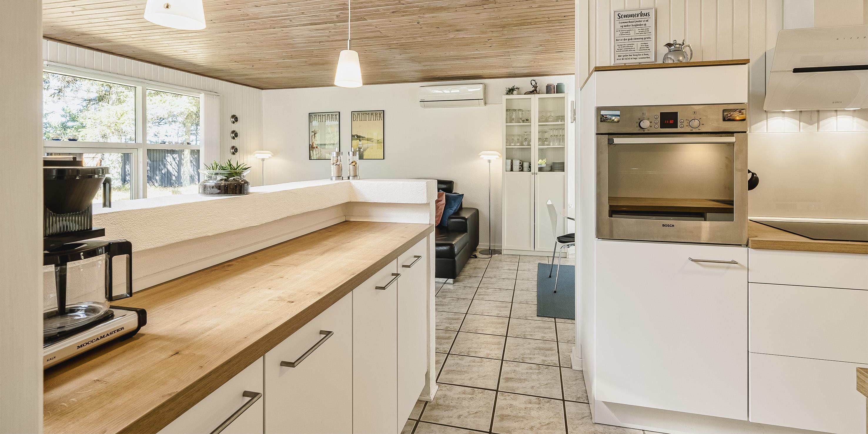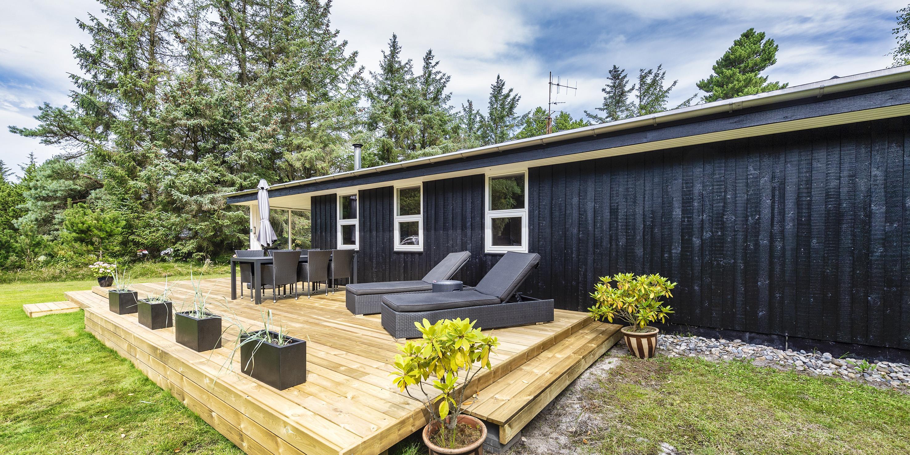 Schönes und gemütliches Ferienhaus mit Namen "Kibbik" auf einem nicht einsehbaren Grundstück gelegen. Das Ferienhaus ist für 6 Personen ausgestattet. Der Strand ist ca. 2 Km vom Haus entfernt. Der Wohnbereich ist mit dem Essbereich und der Küche offen gehalten. Dieser komplette Bereich ist gefliest. Der Eingangsbereich hat ein Oberlicht und ist daher sehr hell und freundlich. Desweiteren ist der Eingangsbereich von außen überdacht. Der im Wohnbereich aufgestellte Kamin spendet eine wohlige Wärme. Es befindet sich eine Warmepumpe im Ferienhaus. Mit dieser Warmepumpe haben sie die Möglichkeit die Stromkosten zu senken, denn die Warmepumpe ist energiesparend. Das deutsche Fernsehprogramm empfangen Sie über eine Parabolantenne sowie Stofa. Der offene moderne und neue Küchenbereich verfügt über einen Herd mit Cerankochfeld, einem Backofen in Arbeitshöhe, einer Geschirrspülmaschine, einer Mikrowelle und einer Kühl- und Gefrierkombination. Ausgang zum terrasse von den Küchenbereich. Das schöne neue Badezimmer ist mit einem WC, einem Handwaschbecken, einer Dusche und einer Sauna ausgestattet. Im Ferienhaus befindet sich eine kombinierte Waschmaschine/Trockner, die von den Gästen genutzt werden darf. Den Gästen stehen drei Schlafzimmer zur Verfügung: DB + DB + 2B. Ein Schlafzimmer hat ein Doppelbett, ein Schlafzimmer zwei Einzelbetten und das Dritte hat ein Ausziehbett. Das Ferienhaus verfügt über einen Internetanschluss (W-Lan 1000/1000 Mbit). Eine flotte Holzterrasse steht Ihnen am Ferienhaus auch zur Verfügung. Das Ferienhaus verfügt über ein Gas Grill, das Sie benutzen dürfen. Der Grill muss nach Gebrauch wieder gereinigt zurück gestellt werden. Auf dem Grundstück steht ein Schelter bereit. Das Rauchen im Ferienhaus ist nicht erlaubt sowie Katzen auch nicht. Es sind max. 1 Haustier erlaubt. Gratis Eintritt Golf in Ho in 2026. Das Ferienhaus ist 1972 erbaut worden. 2022 teilweise renoviert.
