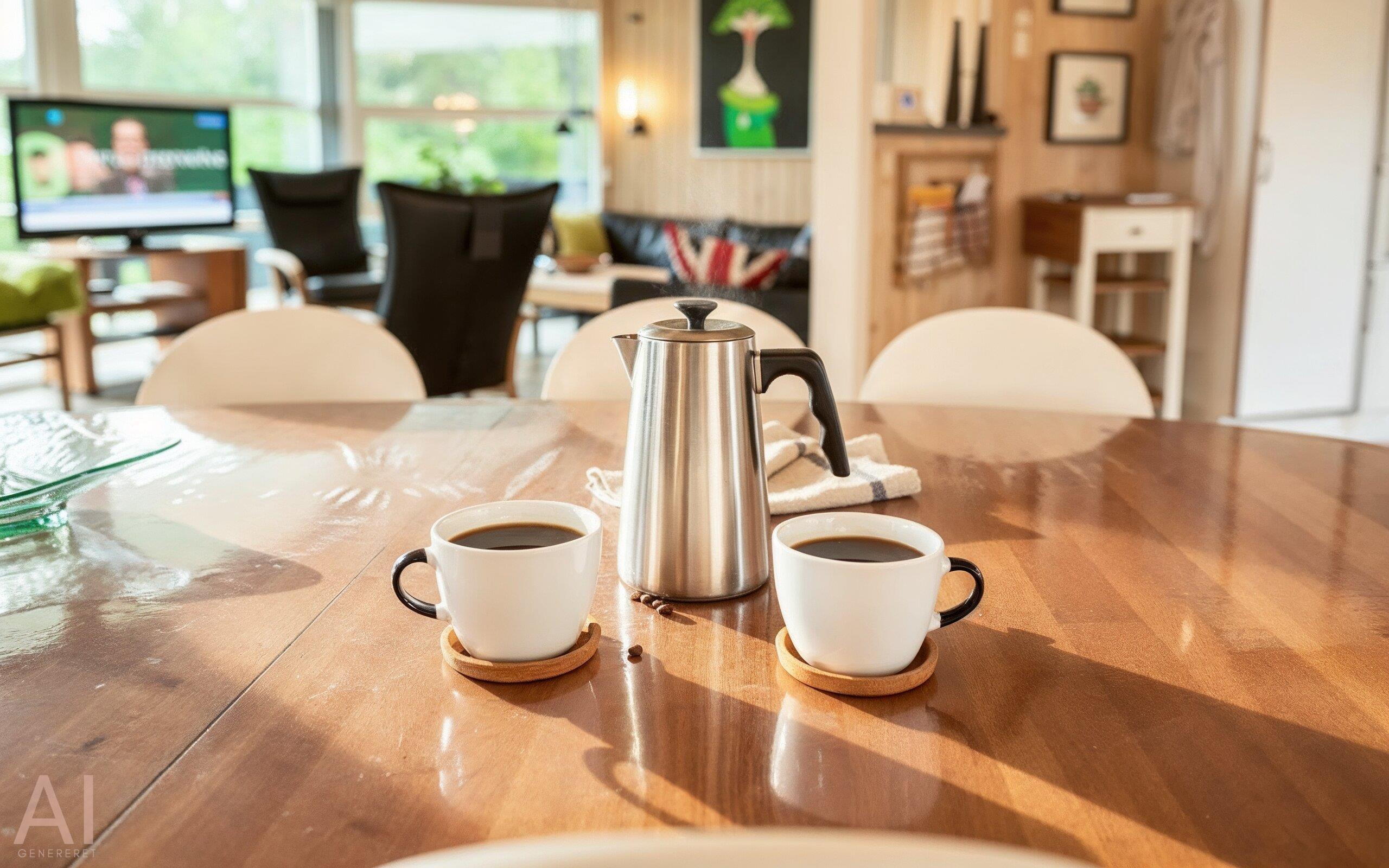 Dieses schönes Ferienhaus bietet für 8 Personen genügend Platz. Es liegt auf einem großzügigem Naturgrundstück und der Terrassenbereich ist kaum einsehbar. Der Strand ist nur 1 Km vom Haus entfernt. Die Schlafzimmer sind mit Teppichboden ausgelegt und der Rest ist mit Fliesen ausgelegt. Die mediterrane Bodenfliese im Wohn- und Essbereich strahlt eine angenehme Wärme aus. Im Wohnbereich ist der Kamin aufgestellt. Von der Sofagarnitur haben Sie direkten Blick auf den Kamin. Das deutsche Fernsehprogramm empfangen Sie über eine Parabolantenne. Smart-Tv. Stofa-TV. Es befindet sich eine Warmepumpe im Ferienhaus. Mit dieser Warmepumpe haben sie die Möglichkeit die Stromkosten zu senken, denn die Warmepumpe ist energiesparend. Die Küche ist zum Essbereich offen und verfügt über ein Herd mit Cerankochfeld, einem Backofen, einer Geschirrspülmaschine, eine Mikrowelle und einer Kühl- und Gefrierkombination. Fussbodenheizung im Küchenbereich. Die Ausstattung im Ferienhaus ist reichlich, es ist genügend Besteck und Geschirr vorhanden. Es gibt zwei Bäder im Ferienhaus. Das große Bad befindet sich im Eingangsbereich und hat ein WC, ein Handwaschbecken, eine Dusche, eine Sauna und und ein Whirlpool. In dem kleinen Bad, das sich auch im Eingangsbereich befindet, ist ein WC, einem Handwaschbecken und einer Dusche. Die Waschmaschine und er Trockner sind im kleinen Badezimmer untergebracht. Es gibt vier Schlafzimmer im Ferienhaus: DB + DB + DB + 2B. Das Ferienhaus verfügt über einen Internetanschluss (W-Lan). Ein Schaukelstativ befinden sich auf dem Grundstück für die kleinen Gäste. Ihr Fahrzeug findet in dem am Haus angrenzendem Carport seinen Platz und von hier kommen Sie dann trockenen Fußes in das Ferienhaus. Rauchen im Ferienhaus ist nicht erlaubt. Es ist max. ein Haustier erlaubt. Das Ferienhaus ist 2003 erbaut worden und in 2019 renoviert.