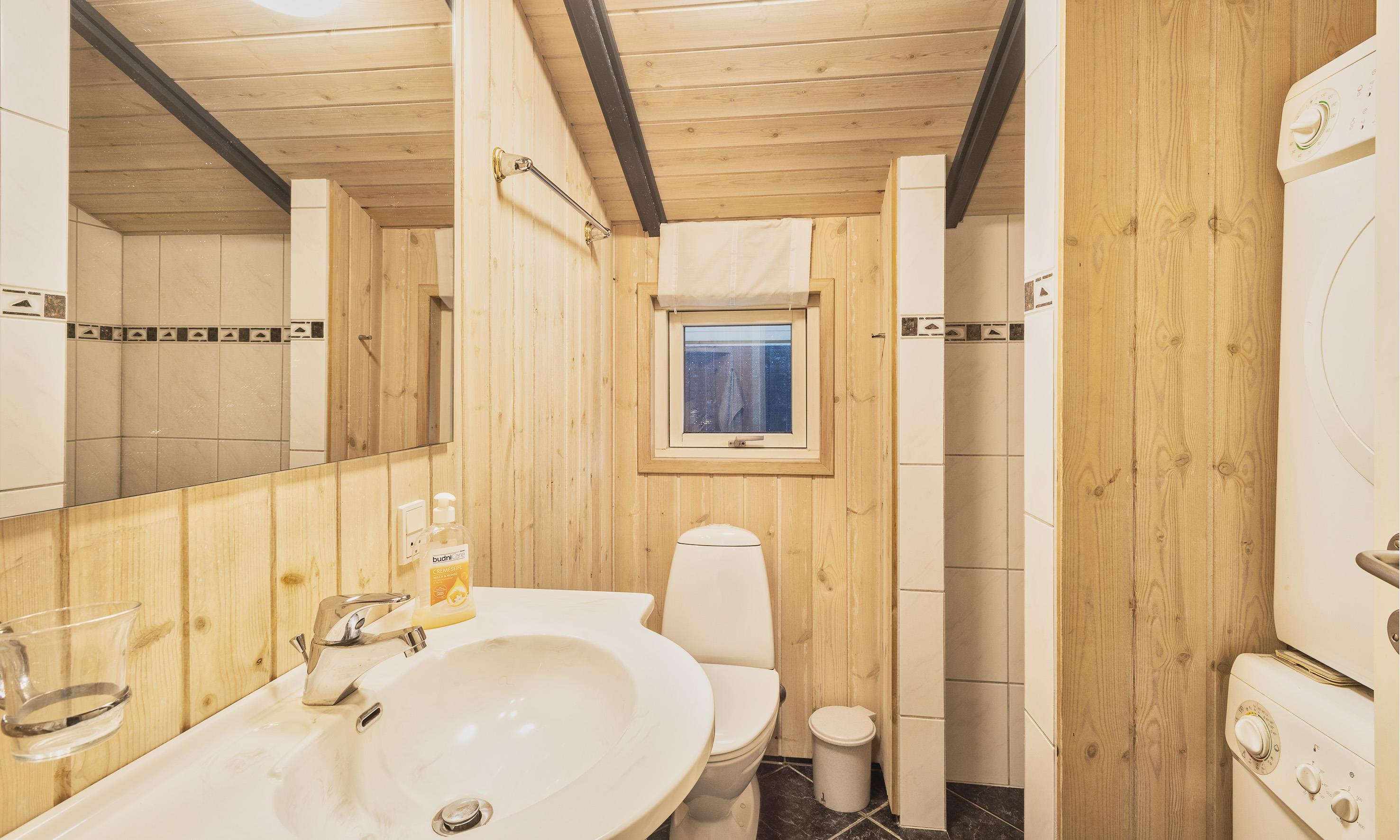 Badezimmer mit Toilette, Dusche und Waschbecken