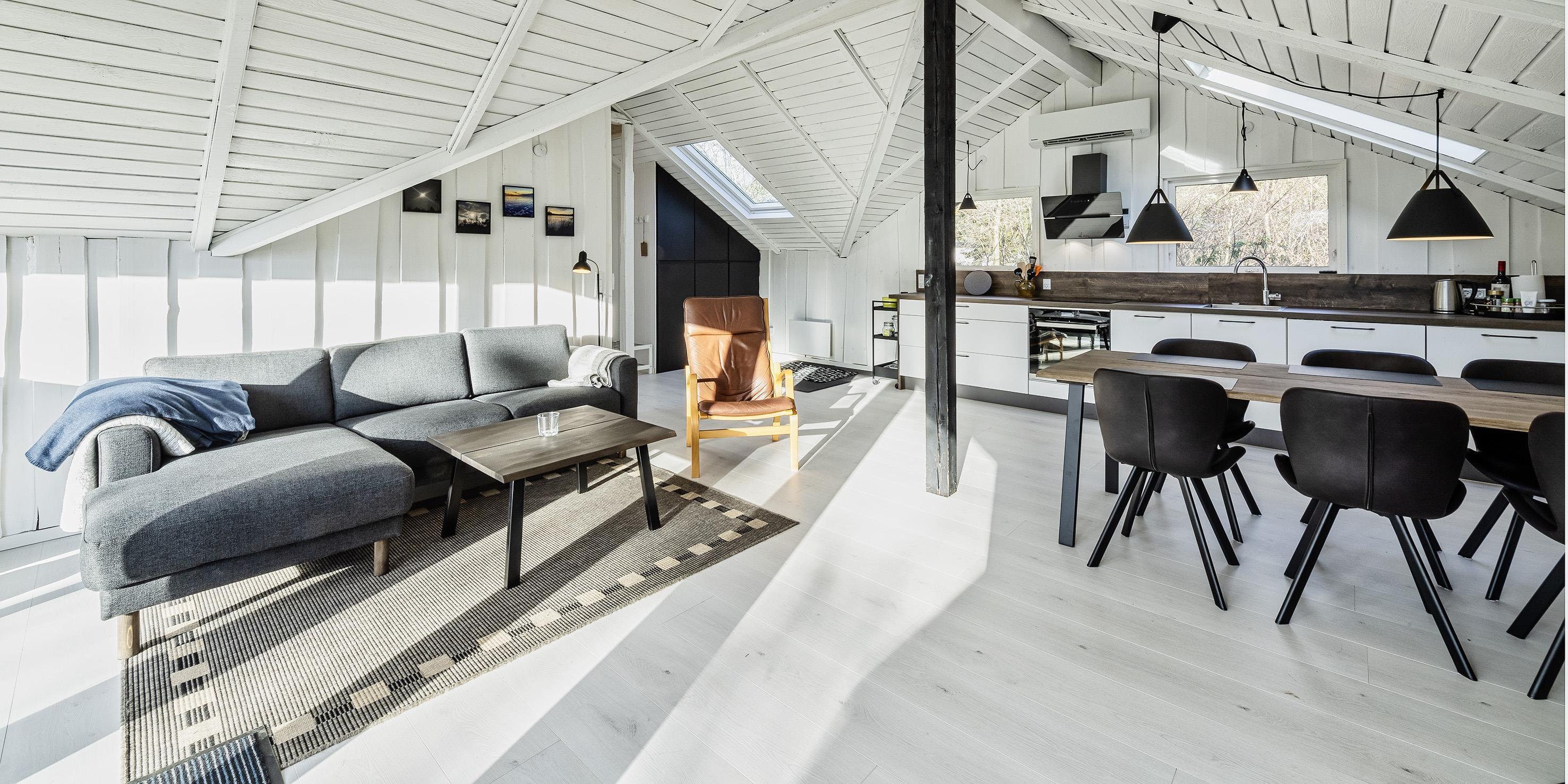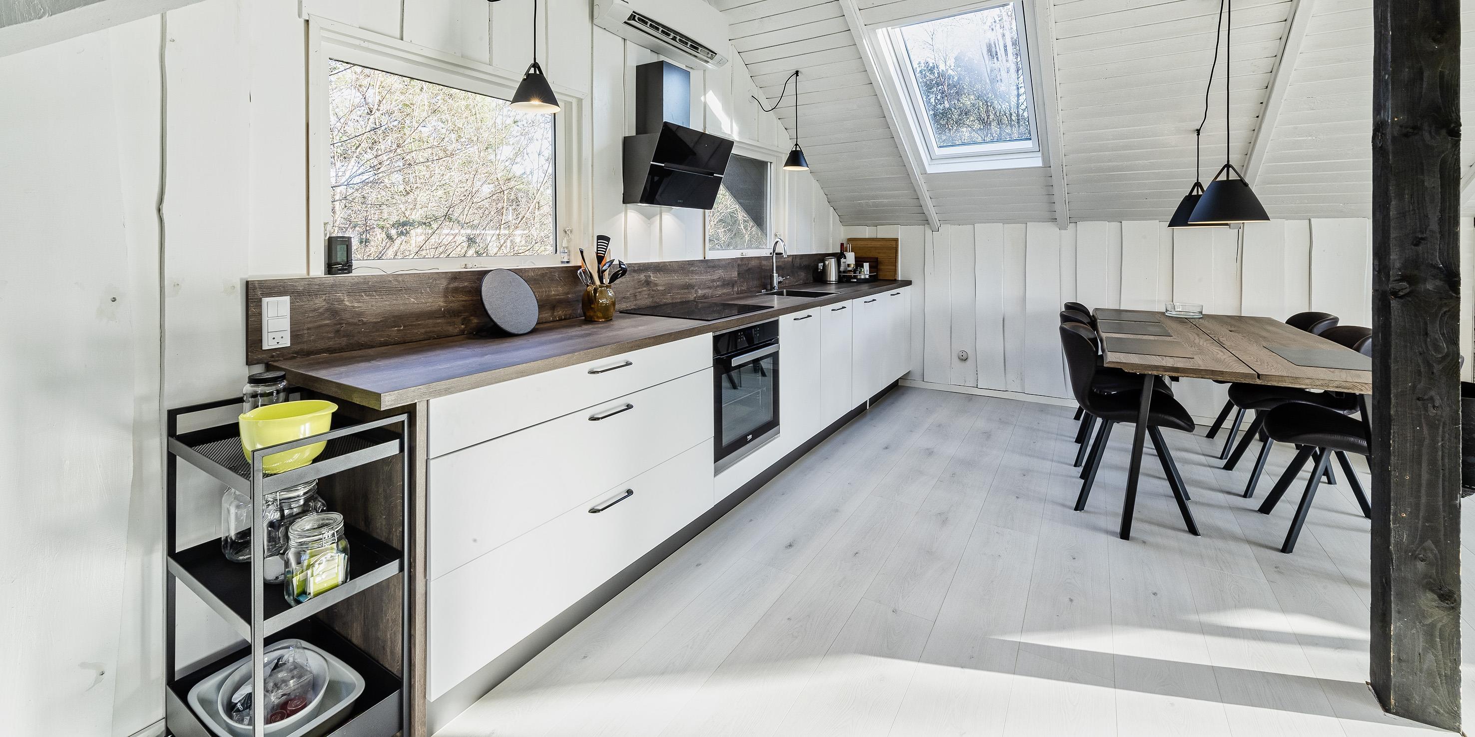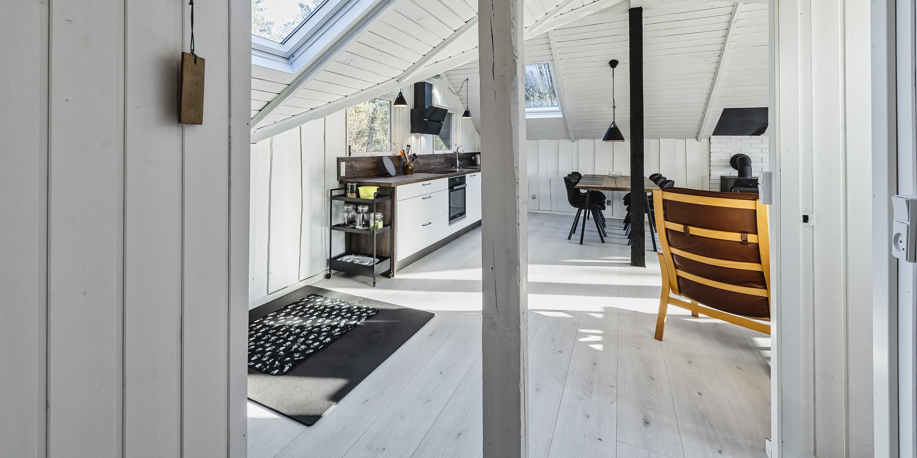 Schönes neu renoviertes Ferienhaus, das für vier Personen ausgestattet ist. Das Grundstück ist von Bäumen und Büschen umgeben und daher ist es fast nicht einsehbar. In der Nähe befindet sich ein Waldgebiet, wo man schöne und lange Spaziergänge machen kann. Der Strand ist ca 1,5 Km entfernt. Der Wohnbereich ist mit dem Küchenbereich offengehalten. Ein schöner und heller Essbereich mit Oberlichtern und einer gemütlichen Sofaecke in der Wohnecke befindet sich am Ende des Einganges. Ein TV-Gerät wo Sie mit Yousee-Streaming-TV-Kanälen die Fernsehprogramme (ca. 5 – 8 deutsche Kanäle) empfangen können. Ein im Wohn- und Essbereich aufgestellter Kamin bietet Ihnen eine angenehme Wärme und Gemütlichkeit. Er strahlt die Wärme in den Wohn- und Essbereich. Das gesamte Ferienhaus ist im Bodenbereich mit einem neuen Parkettboden ausgestattet, außer im Badezimmer befinden sich Bodenfliesen. Helle Decken und Wände geben dem kleinen und gemütlichen Ferienhaus eine besondere Atmosphäre. Eine zusätzliche Wärmepumpe sorgt für ein schnelles Aufheizen des Hauses. Mit dieser Wärmepumpe haben Sie die Möglichkeit die Stromkosten zu senken, da sie energiesparend ist. Der offene Küchenbereich ist mit einer neuen Einbauküche ausgestattet. Die Einbauküche verfügt über einen Herd mit Induktionskochfeld, einen Backofen, eine Dunstabzugshaube (mit Aktivkohlefilter), einer Mikrowelle, einer Geschirrspülmaschine und einem Kühlschrank mit einem kleinen Gefrierfach. Das kleine Badezimmer verfügt über ein WC, ein Handwaschbecken und einer Dusche. Des Weiteren befindet sich hier im Badezimmer eine Waschmaschine (Toplader). Es stehen den Gästen zwei Schlafzimmer zur Verfügung: DB + 2B. Allerdings befinden sich in den Schlafzimmern keine Kleiderschränke. Das Ferienhaus verfügt über einen Internetschluss (W-Lan 200/200). Am Ende des Wohn- und Essbereiches befindet sich eine große Fensterfront mit einer Terrassentür. Von hier gelangen Sie dann auf die teilweise geschlossene Holzterrasse, wobei ein kleiner Teil dieser Terrasse direkt am Haus überdacht ist. Das Rauchen im Ferienhaus ist nicht gestattet. Es sind max. zwei Haustiere erlaubt. Das Ferienhaus wurde in 1972 erbaut. In 2020 wurde es renoviert. Es gibt einen Anschluss für El-Fahrzeuge am Ferienhaus.