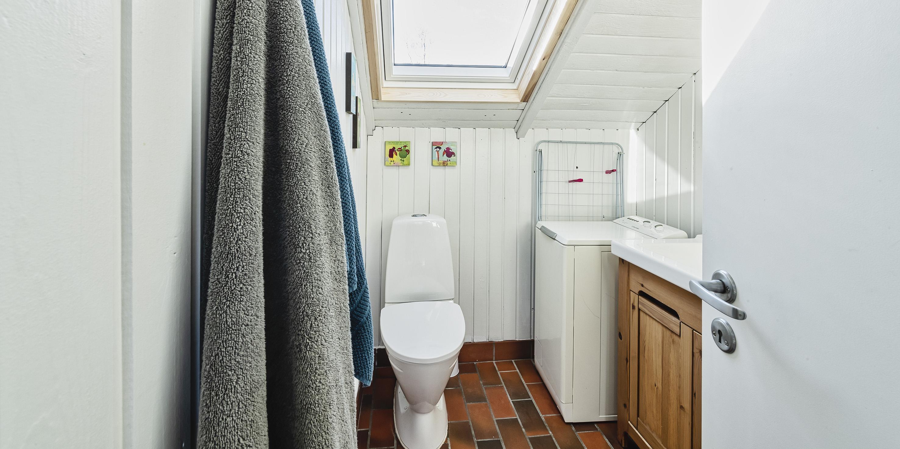 Badezimmer mit Toilette, Dusche und Waschbecken