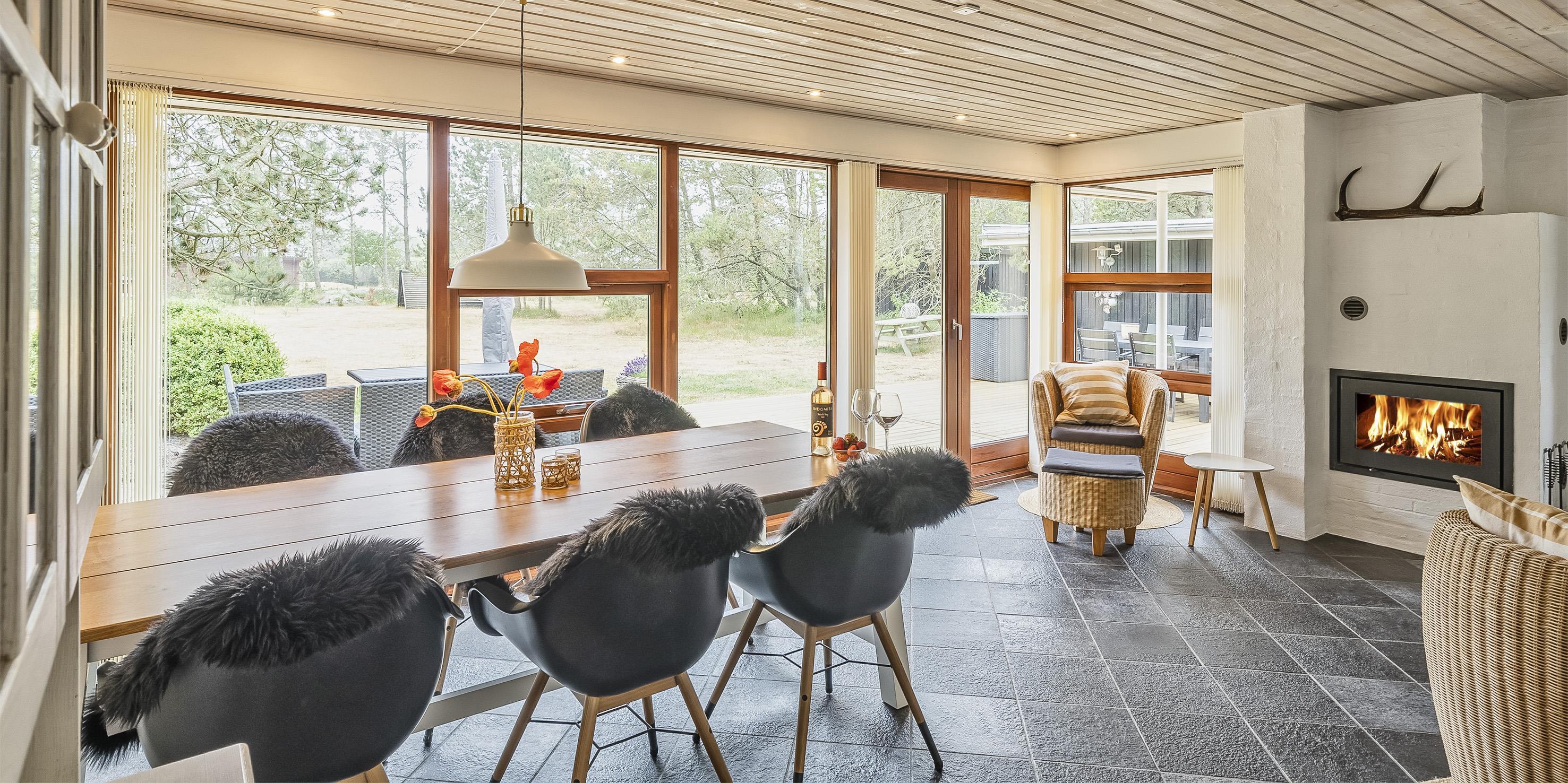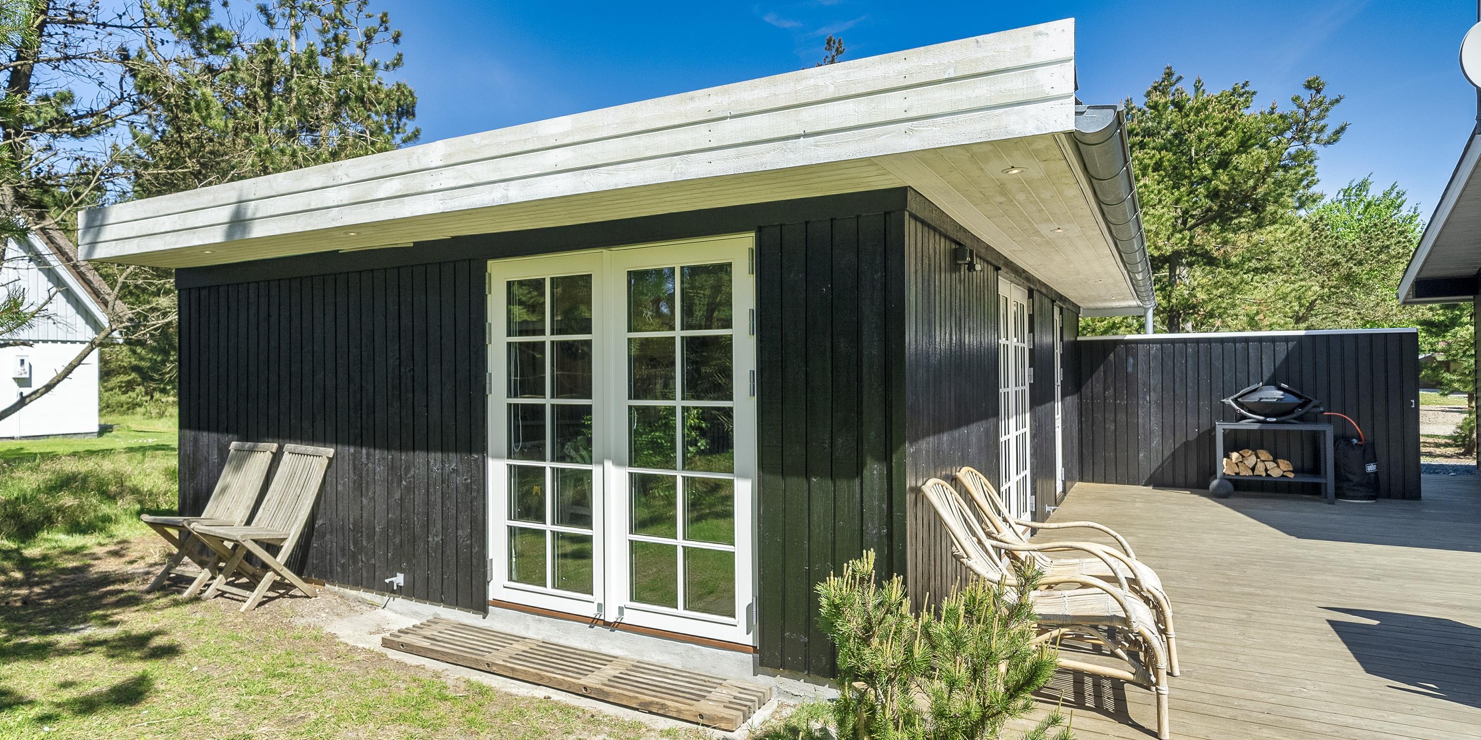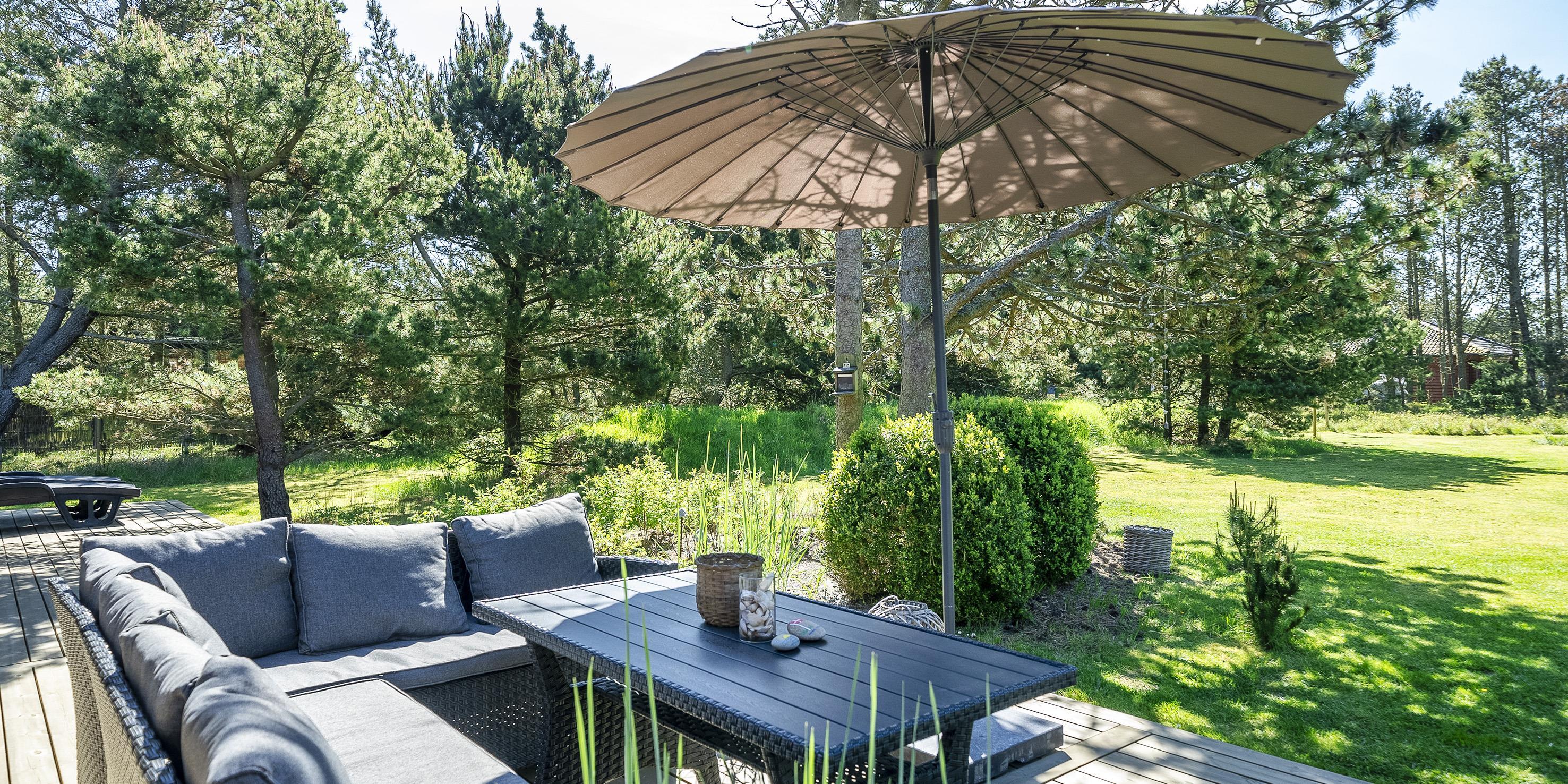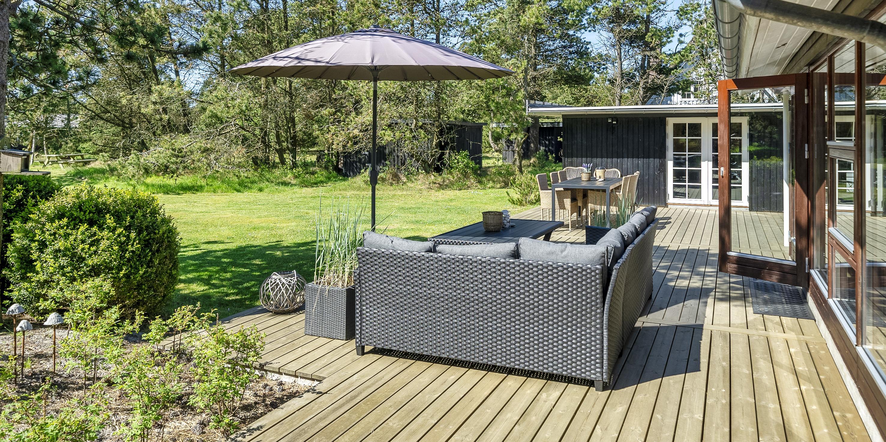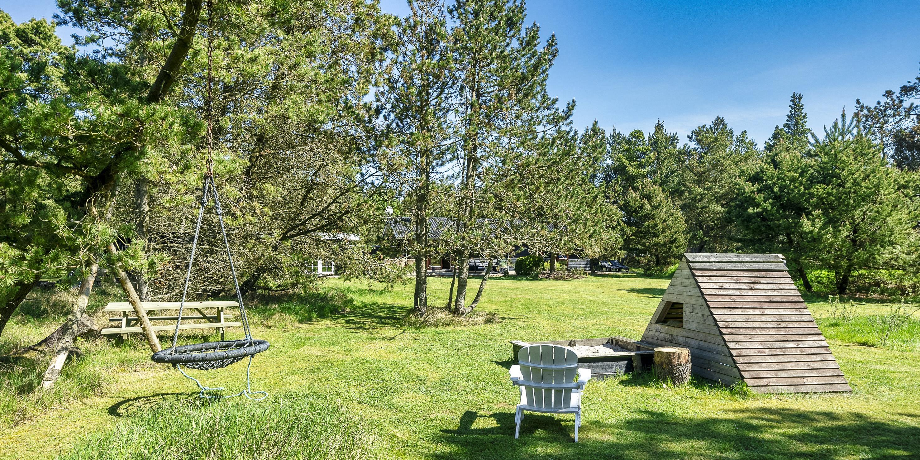 Geschmackvoll eingerichtetes Ferienhaus auf einem großen uneinsehbaren Rasengrundstück gelegen, umgeben von Bäumen und Büschen. Das Ferienhaus ist ausgestattet für 6 Personen. Der Strand ist ca. 1,5 Km vom Ferienhaus entfernt. Der Wohn- und Küchenbereich ist offen gehalten. Dieser gesamte Bereich ist mit einer hübschen Bodenfliese ausgelegt. Im Wohnbereich befindet sich ein eingemauerter Kamin. Es befindet sich eine Warmepumpe im Ferienhaus. Mit dieser Warmepumpe haben sie die Möglichkeit die Stromkosten zu senken, denn die Warmepumpe ist energiesparend. Das deutsche Fernsehprogramm empfangen Sie über eine Parabolantenne. Die Küche ist mit einem Herd mit Cerankochfeld, einem Backofen, einer Geschirrspülmaschine, einer Mikrowelle und einer Kühl- und Gefrierkombination ausgestattet. Das hübsche Badezimmer ist mit der gleichen Bodenfliese ausgestattet. Es verfügt über ein WC, ein Handwaschbecken, eine Dusche und eine Sauna. Die Waschmaschine und der Trockner sind mit im Badezimmer untergebracht. Insgesamt stehen den Gästen drei Schlafzimmer zur Verfügung: DB + DB + DB. Alle Schlafzimmer haben einen Ausgang zu der Terrasse und sind mit Verdunklungsrollos ausgestattet. Das Ferienhaus verfügt über einen Internetanschluss (W-Lan). Auf dem Grundstück befindet sich eine kleine Spieloase für die kleinen Gäste des Hauses. Es ist ausgestattet mit einer Schaukel, einer Sandkiste und einem Spielhaus. Es sind keine Haustiere erlaubt. Das Rauchen im Ferienhaus ist nicht erlaubt. Das Ferienhaus ist 1975 erbaut worden und in 2007 renoviert. Der Eigentümer stellt Gas und Gasgrill zur Verfügung.