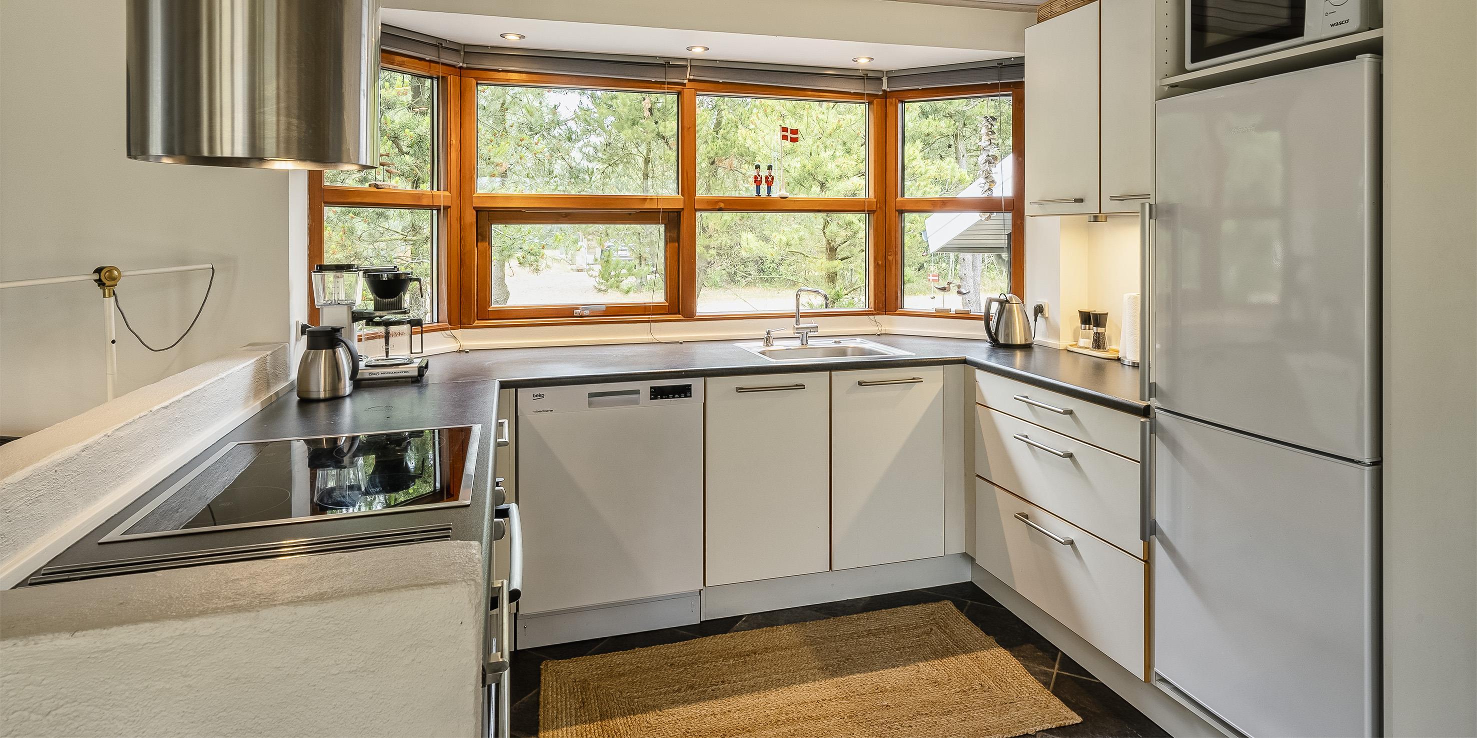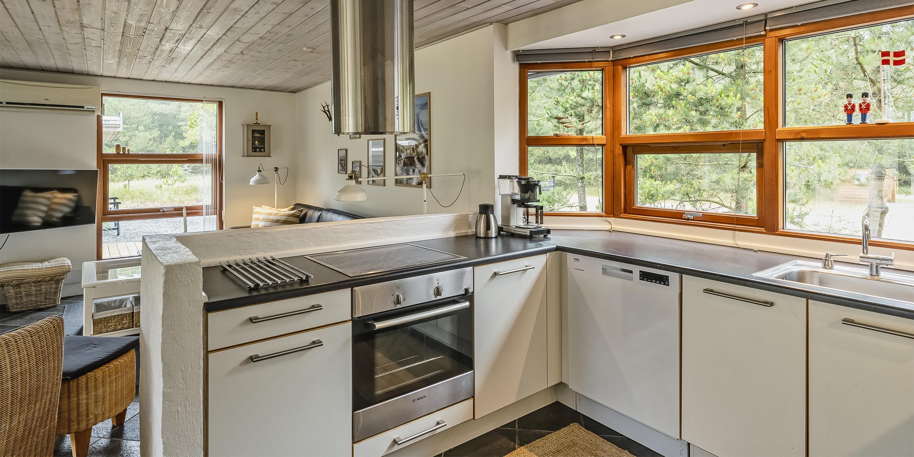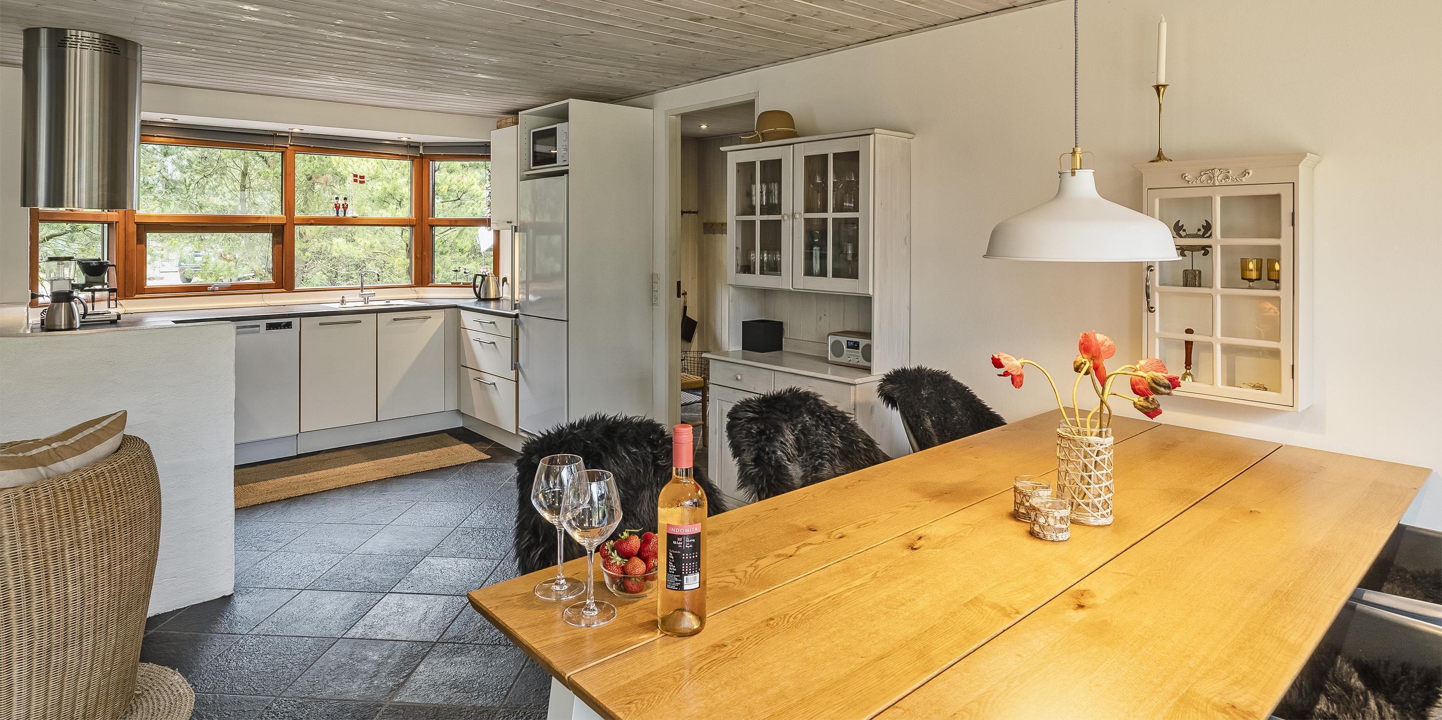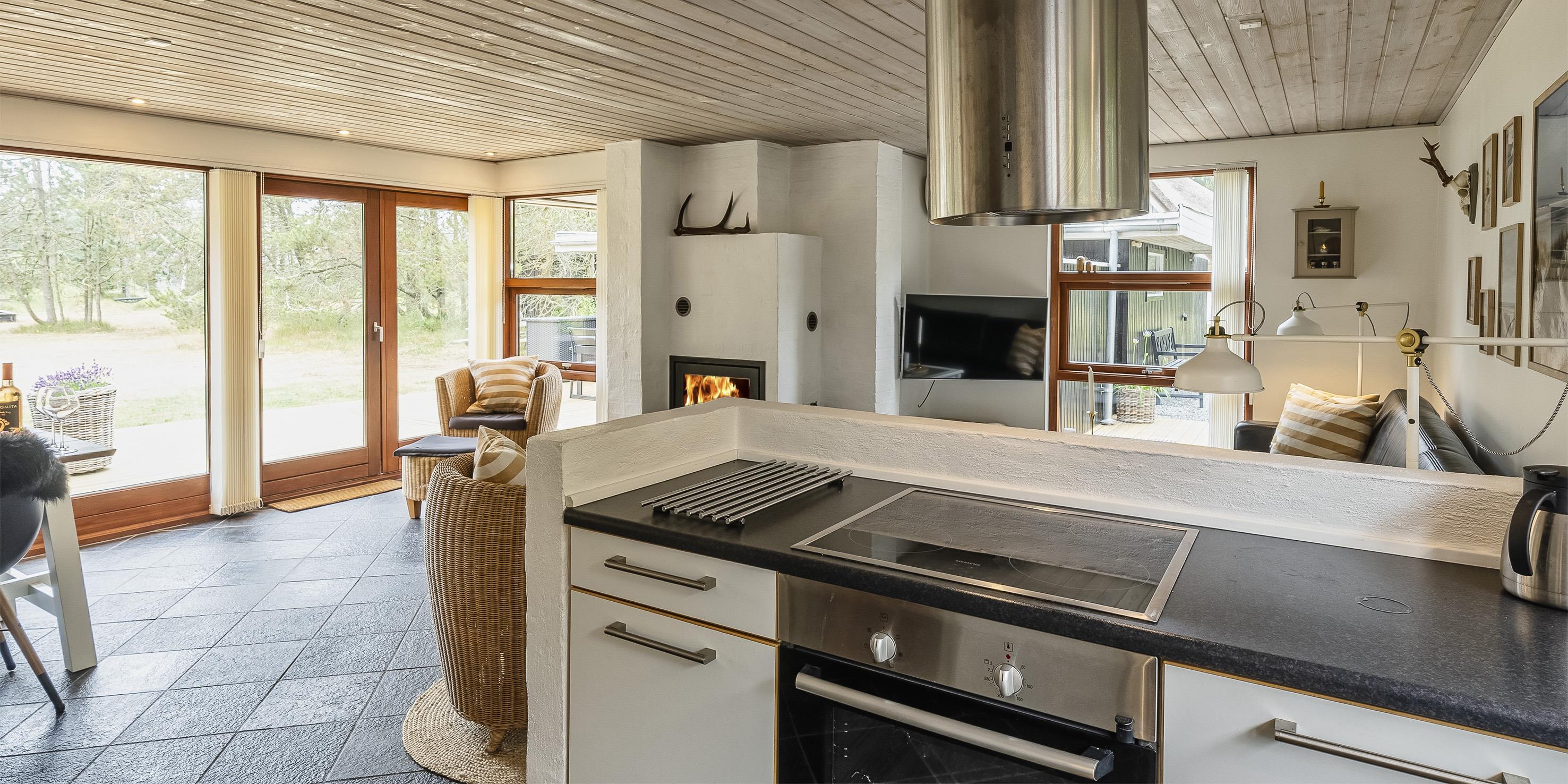 Geschmackvoll eingerichtetes Ferienhaus auf einem großen uneinsehbaren Rasengrundstück gelegen, umgeben von Bäumen und Büschen. Das Ferienhaus ist ausgestattet für 6 Personen. Der Strand ist ca. 1,5 Km vom Ferienhaus entfernt. Der Wohn- und Küchenbereich ist offen gehalten. Dieser gesamte Bereich ist mit einer hübschen Bodenfliese ausgelegt. Im Wohnbereich befindet sich ein eingemauerter Kamin. Es befindet sich eine Warmepumpe im Ferienhaus. Mit dieser Warmepumpe haben sie die Möglichkeit die Stromkosten zu senken, denn die Warmepumpe ist energiesparend. Das deutsche Fernsehprogramm empfangen Sie über eine Parabolantenne. Die Küche ist mit einem Herd mit Cerankochfeld, einem Backofen, einer Geschirrspülmaschine, einer Mikrowelle und einer Kühl- und Gefrierkombination ausgestattet. Das hübsche Badezimmer ist mit der gleichen Bodenfliese ausgestattet. Es verfügt über ein WC, ein Handwaschbecken, eine Dusche und eine Sauna. Die Waschmaschine und der Trockner sind mit im Badezimmer untergebracht. Insgesamt stehen den Gästen drei Schlafzimmer zur Verfügung: DB + DB + DB. Alle Schlafzimmer haben einen Ausgang zu der Terrasse und sind mit Verdunklungsrollos ausgestattet. Das Ferienhaus verfügt über einen Internetanschluss (W-Lan). Auf dem Grundstück befindet sich eine kleine Spieloase für die kleinen Gäste des Hauses. Es ist ausgestattet mit einer Schaukel, einer Sandkiste und einem Spielhaus. Es sind keine Haustiere erlaubt. Das Rauchen im Ferienhaus ist nicht erlaubt. Das Ferienhaus ist 1975 erbaut worden und in 2007 renoviert. Der Eigentümer stellt Gas und Gasgrill zur Verfügung.