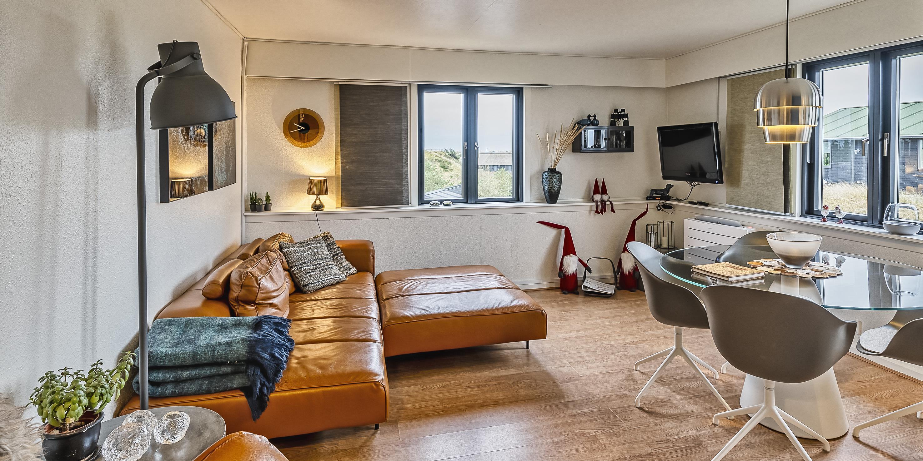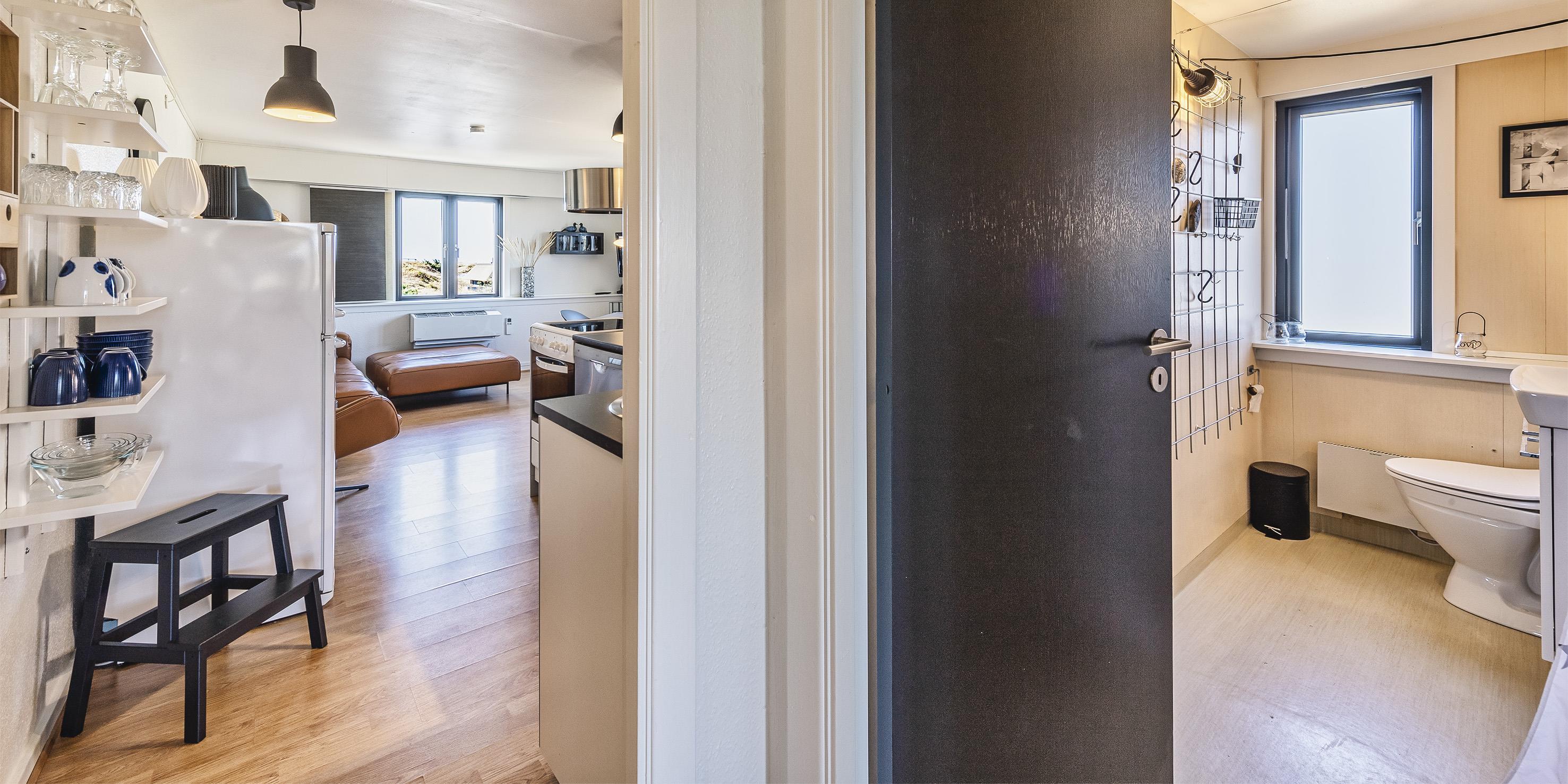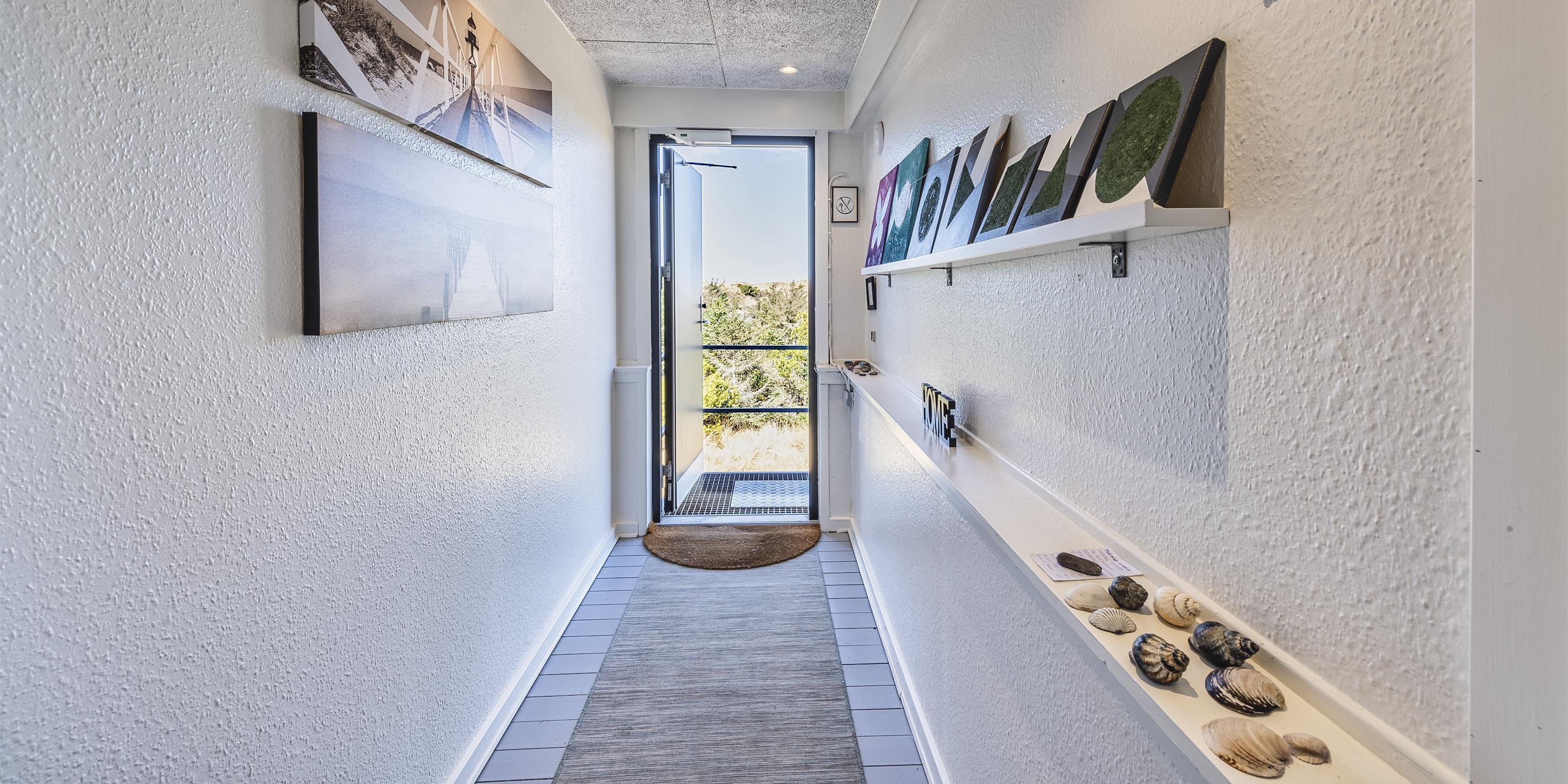 Diese kleine gemütliche Ferienwohnung befindet sich in der 1. Etage eines Mehrfamilienhauses in Südwestlage und ist für 4 Personen ausgestattet. Der Strand ist nur 200 Meter entfernt und in ein paar Minuten fussläufig zu erreichen. Auf der Rückseite des Hauses befindet sich eine Metalltreppe, die dann zur Wohnung führt. Der Wohn- und Essbereich ist offen gehalten und mit dem kleinen Küchenbereich verbunden. Das deutsche Fernsehprogramm empfangen Sie über eine Parabolantenne. Es befindet sich eine Warmepumpe im Ferienhaus. Mit dieser Warmepumpe haben sie die Möglichkeit die Stromkosten zu senken, denn die Warmepumpe ist energiesparend. Ein toller Ausblick über die Dünnlandschaft ist gewährleistet. Die Küche ist einfach gehalten und sie verfügt über einen Herd mit Cerankochfeld, einem Backofen und einer Kühl- und Gefrierkombination. Des weiteren befindet sich eine Geschirrspülmaschine in der Küche. Dieser gesamte Bereich, sprich Wohn- und Essbereich, sowie der Küchenbereich, ist mit einem hellen Laminatboden verlegt worden. Das Duschbad verfügt über ein WC, ein Handwaschbecken und eine Dusche. Es stehen den Gästen zwei Schlafzimmer zur Verfügung: DB + DB. In den Schlafzimmern ist ein neuer Teppichboden verlegt. Im Eingangsbereich haben Sie Platz für Ihre Garderobe und Schuhe. Auch hier ist der Fußboden mit Laminat versehen. Es sind max. zwei Hunde erlaubt. Katzen sind nicht erlaubt. Rauchen ist nicht erlaubt. Die Wohnung verfügt über einen Internet-Anschluss (W-Lan). Das Mehrfamilienhaus ist 1937 erbaut worden. Mehrere Gemeinschaftsterrassen für einen schönen Grillabend oder zur Kaffeezeit stehen Ihnen am Haus zur Verfügung. Ein Grill steht der Gemeinschaft auch zur Verfügung. Diese Wohnung wurde in 2019 renoviert. Gratis Eintritt Oksbøl Badeland in 2026.
