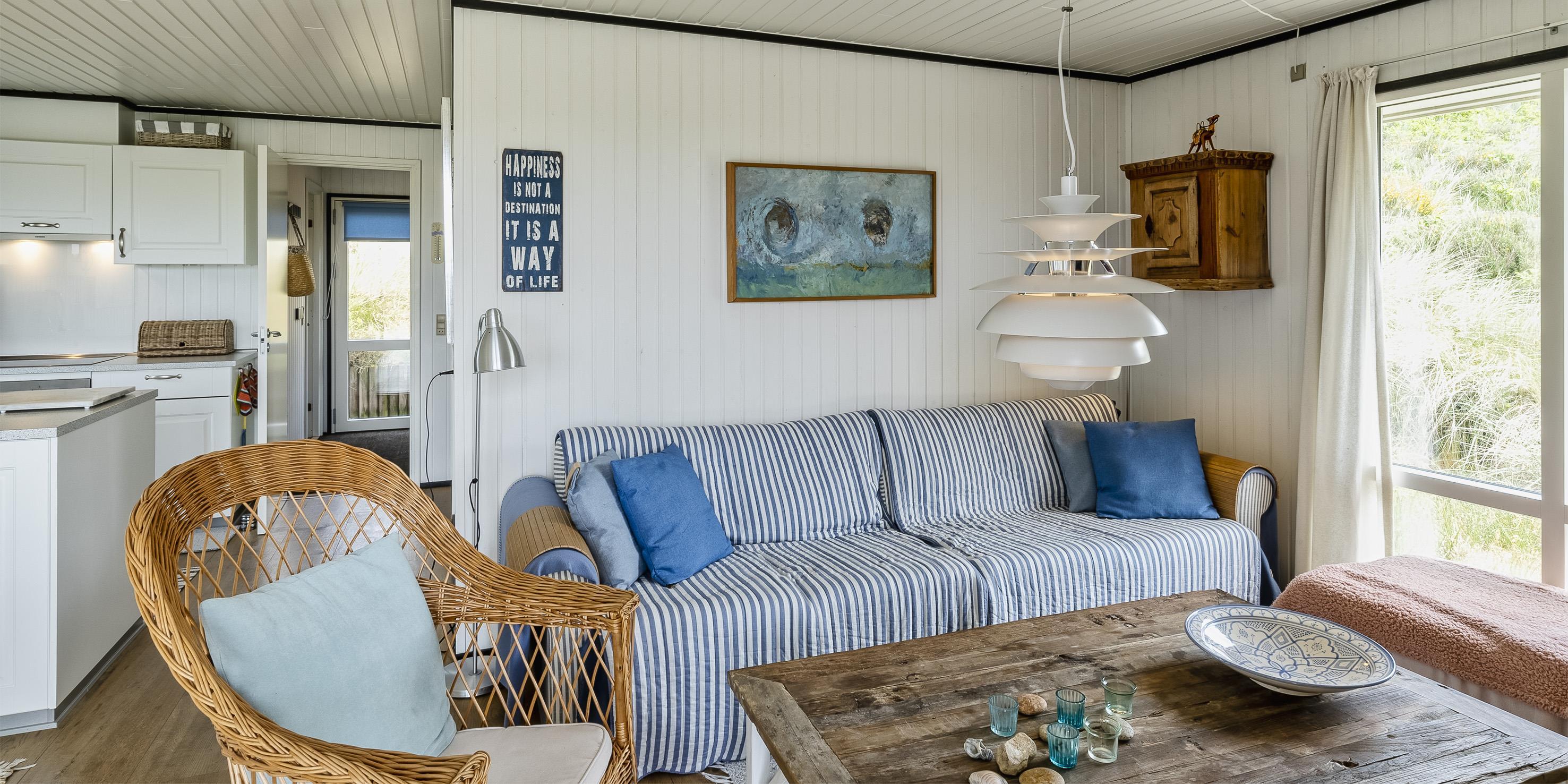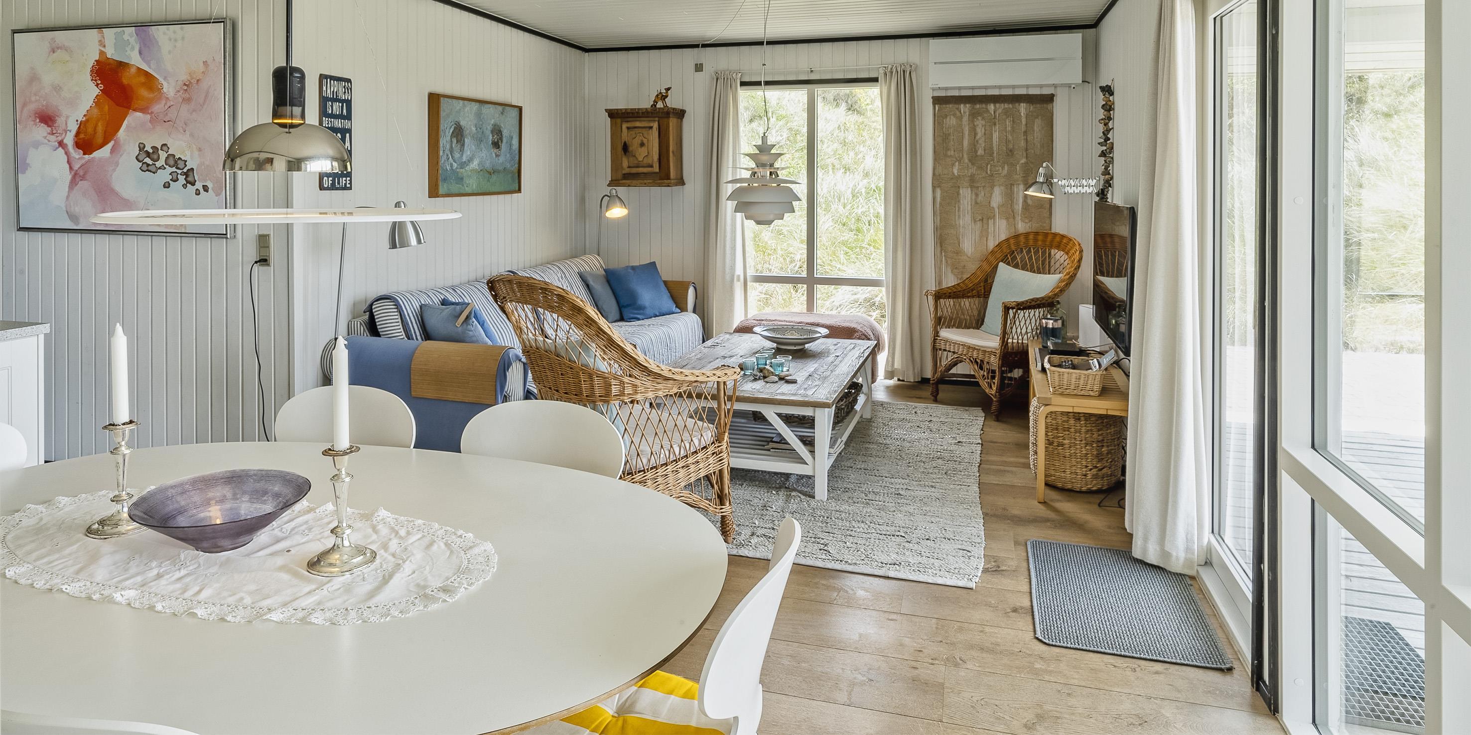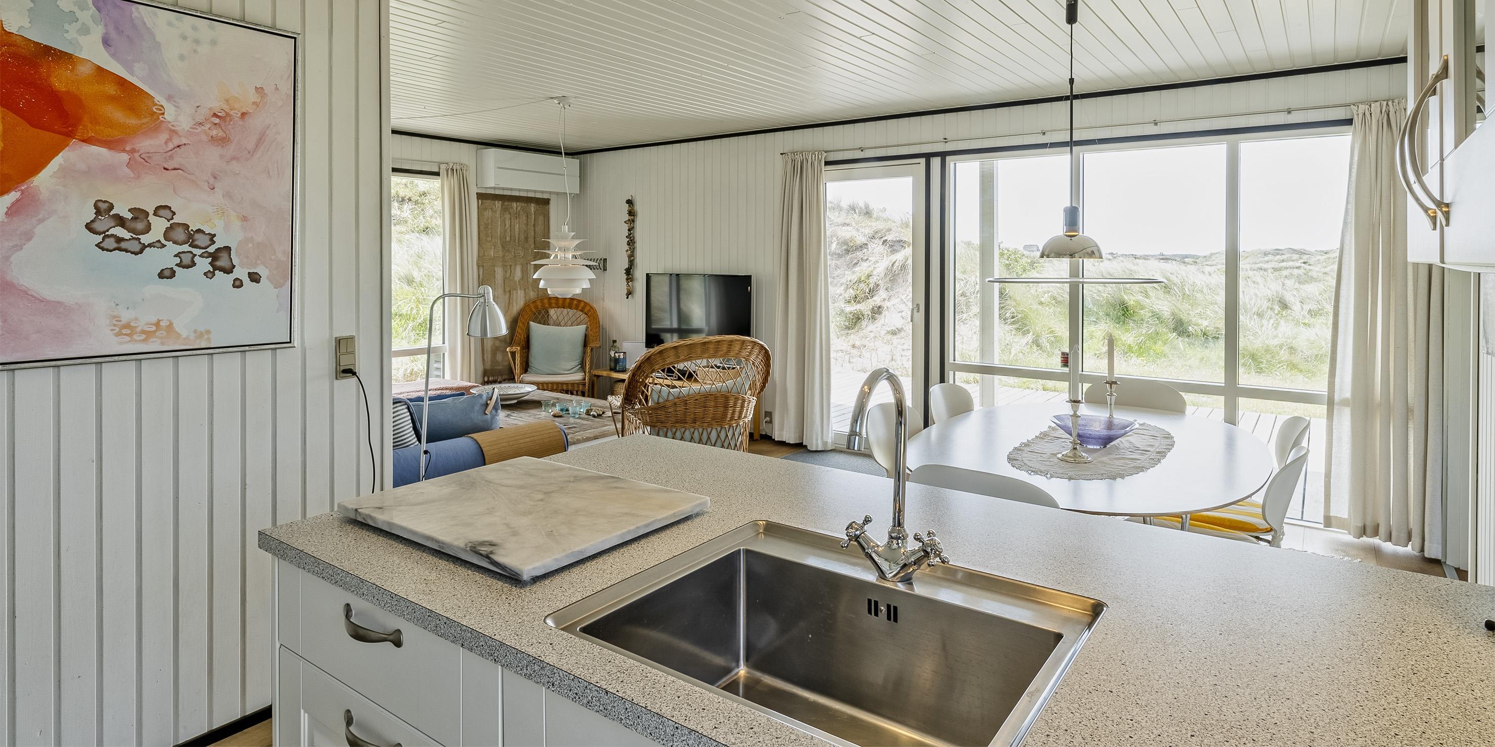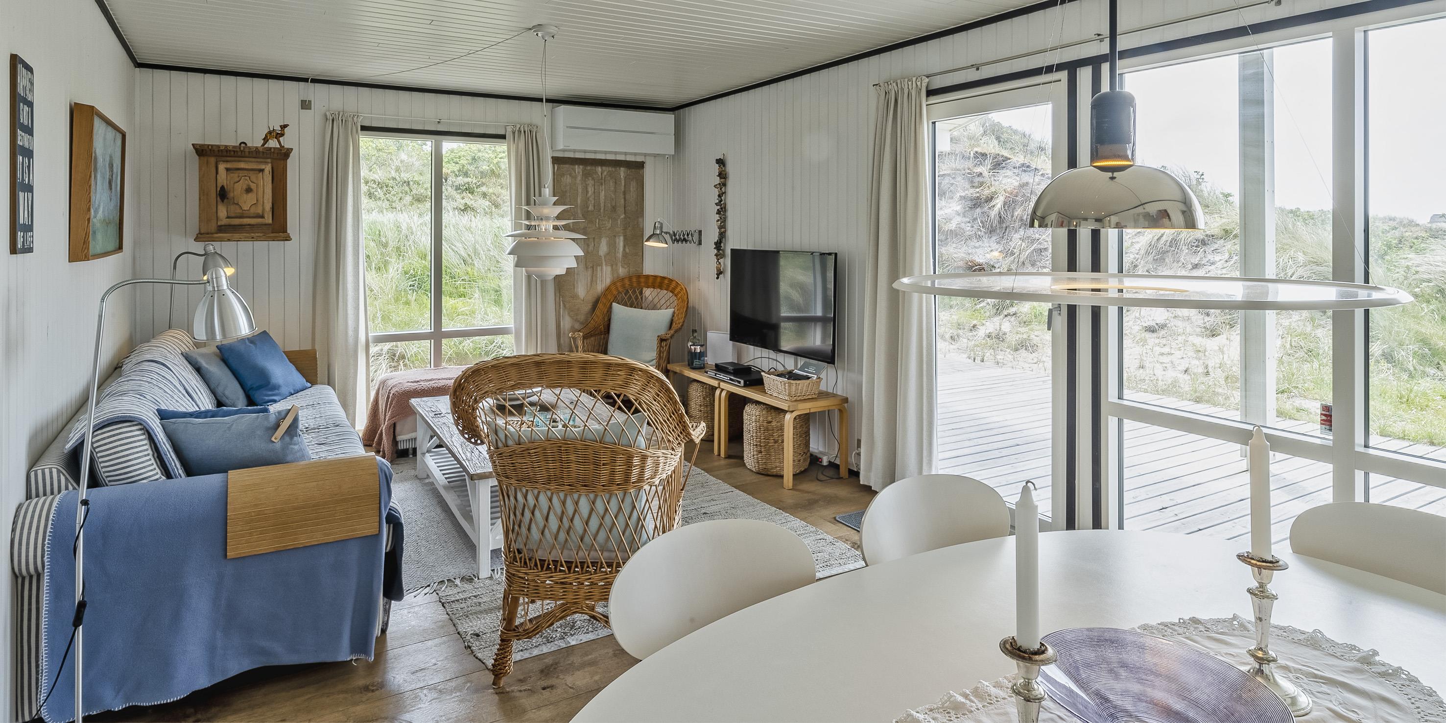Dieses kleine gemütliche Ferienhaus mit Namen "Revling" liegt in mitten der Dünen und nur 100 Meter vom Strand entfernt. Es ist für 5 Personen ausgestattet und niedlich eingerichtet. In der gemütlichen Wohnecke mit der Sofagarnitur befindet sich eine Warmepumpemit der Sie das Haus beheizen. Mit dieser Warmepumpe haben sie die Möglichkeit die Stromkosten zu senken, denn die Warmepumpe ist energiesparend. Das deutsche Fernsehprogramm ist über eine Parabolantenne zum empfangen und auch einen DVD-Player steht zur Verfügung. Desweiterren haben Sie Smart TV im Wohnbereich und in den Schlafzimmer. Die neue Küche verfügt über einen Herd mit Cerankochfeld, einem Backofen, einer Geschirrspülmaschine und einem Kühlschrank mit einem kleinen Gefrierfach. Es gibt drei Schlafzimmer in dem Haus: DB + 2B + B. Das Badezimmer ist mit einem WC, einem Handwaschbecken und einer Dusche ausgestattet. Das Ferienhaus verfügt über einen Internetanschluss (W-Lan). Fast der gesamte Terrassenbereich ist überdacht. Es sind keine Haustiere erlaubt. Auch das Rauchen im Haus ist nicht erlaubt. Das Ferienhaus wurde 1982 erbaut und in 2015 renoviert.