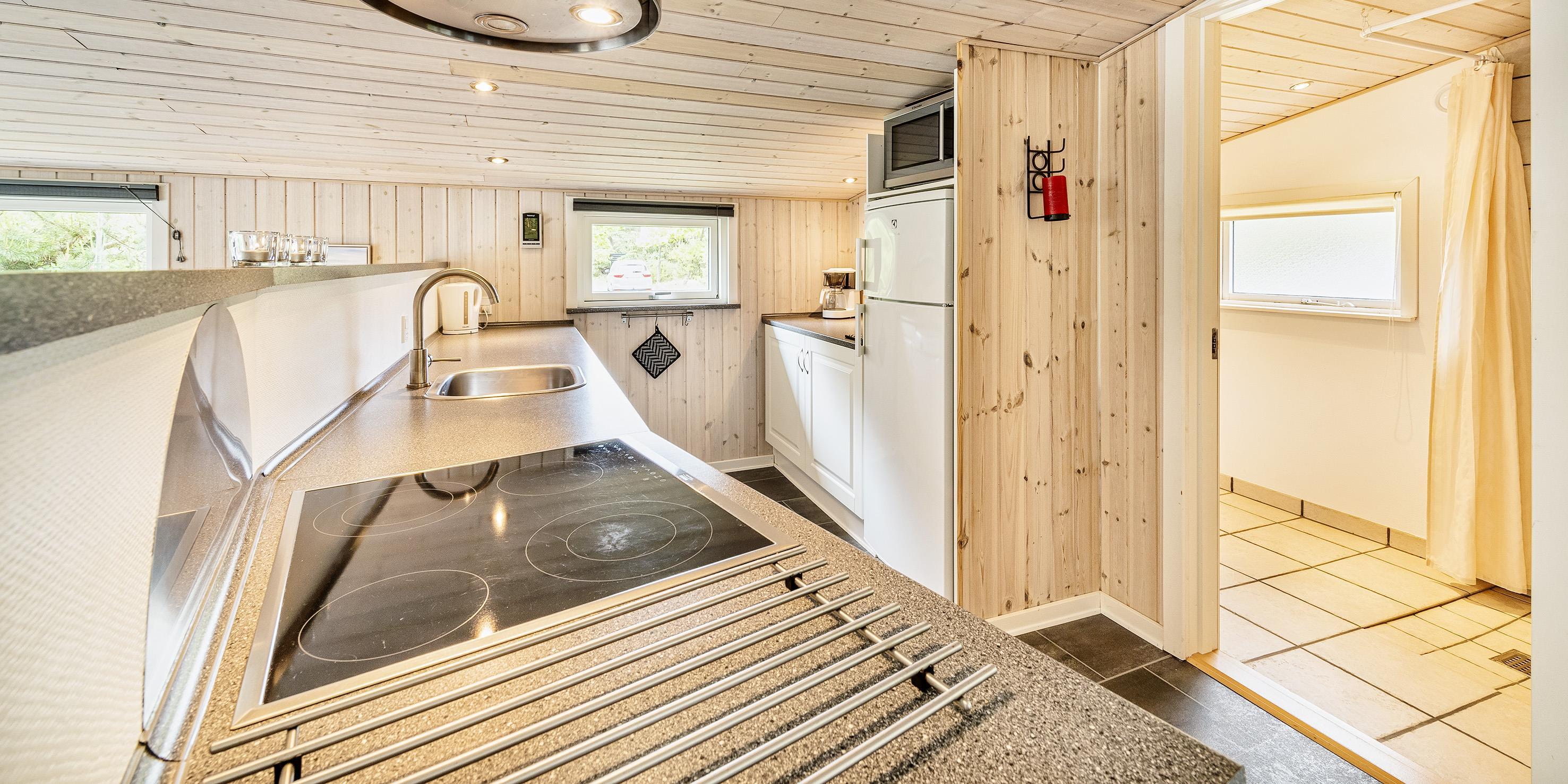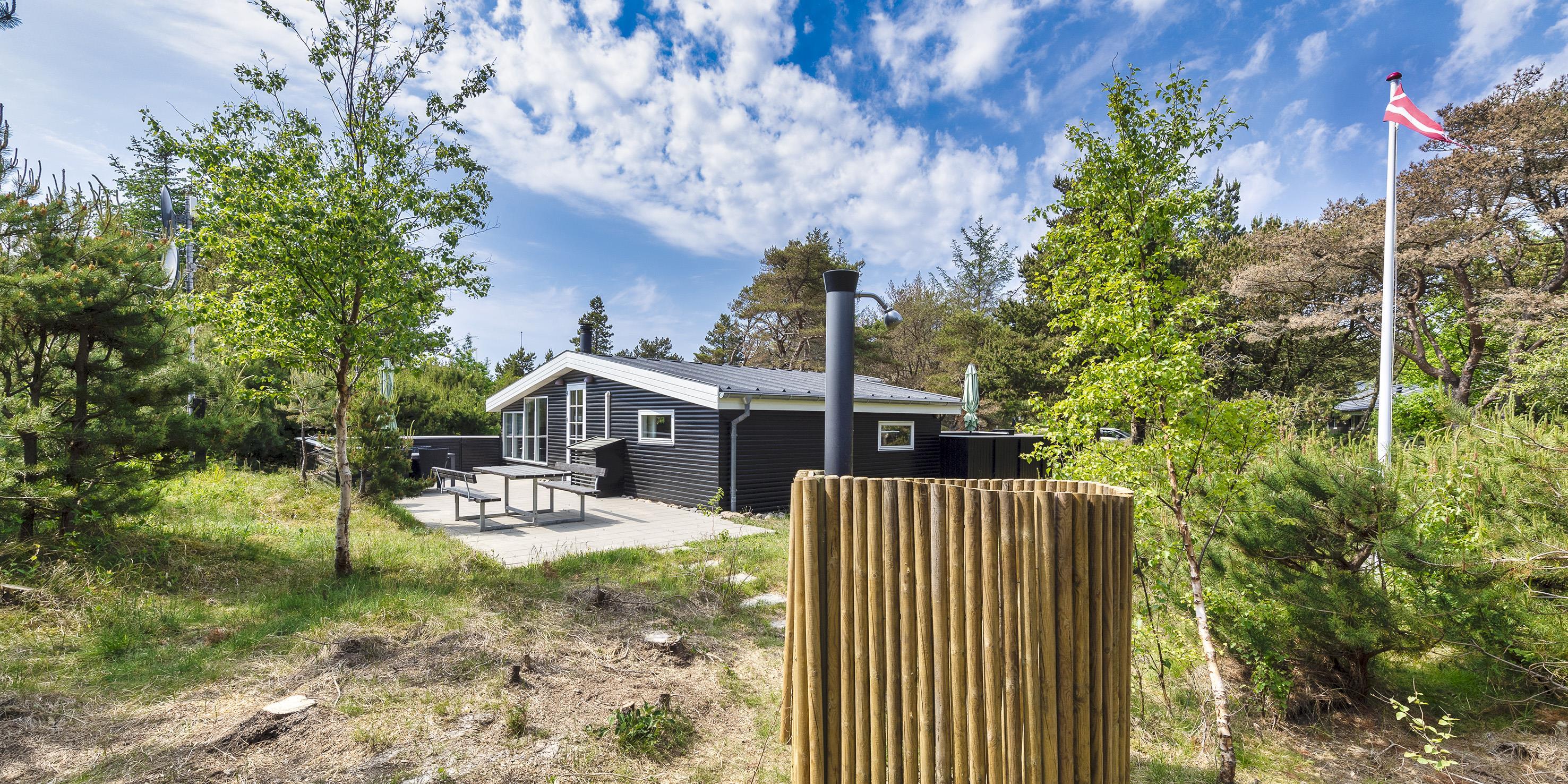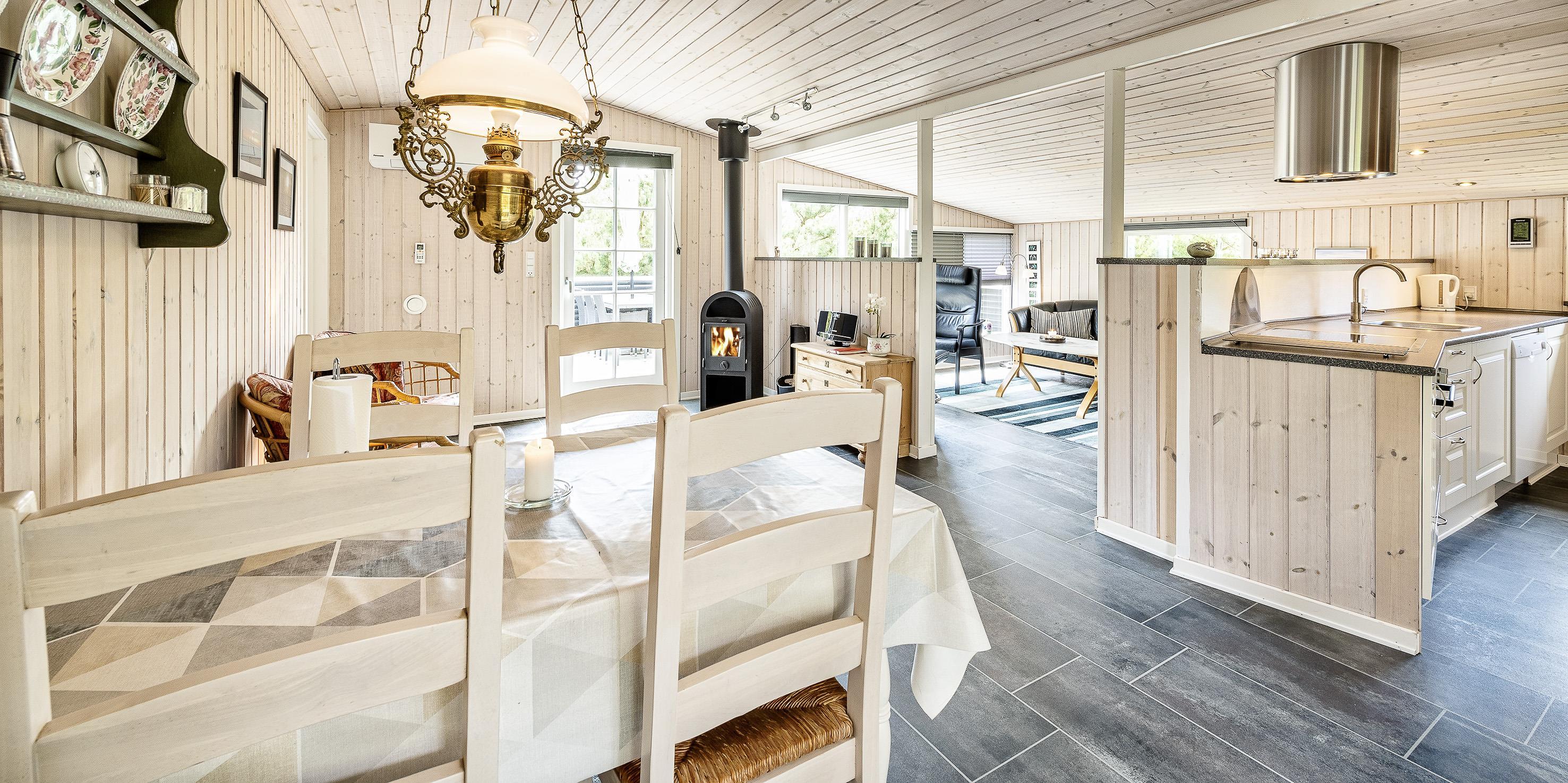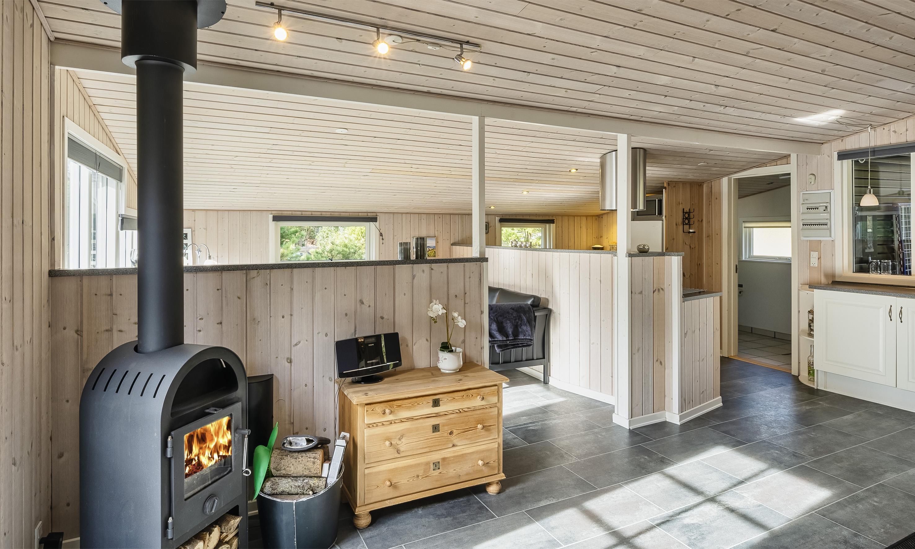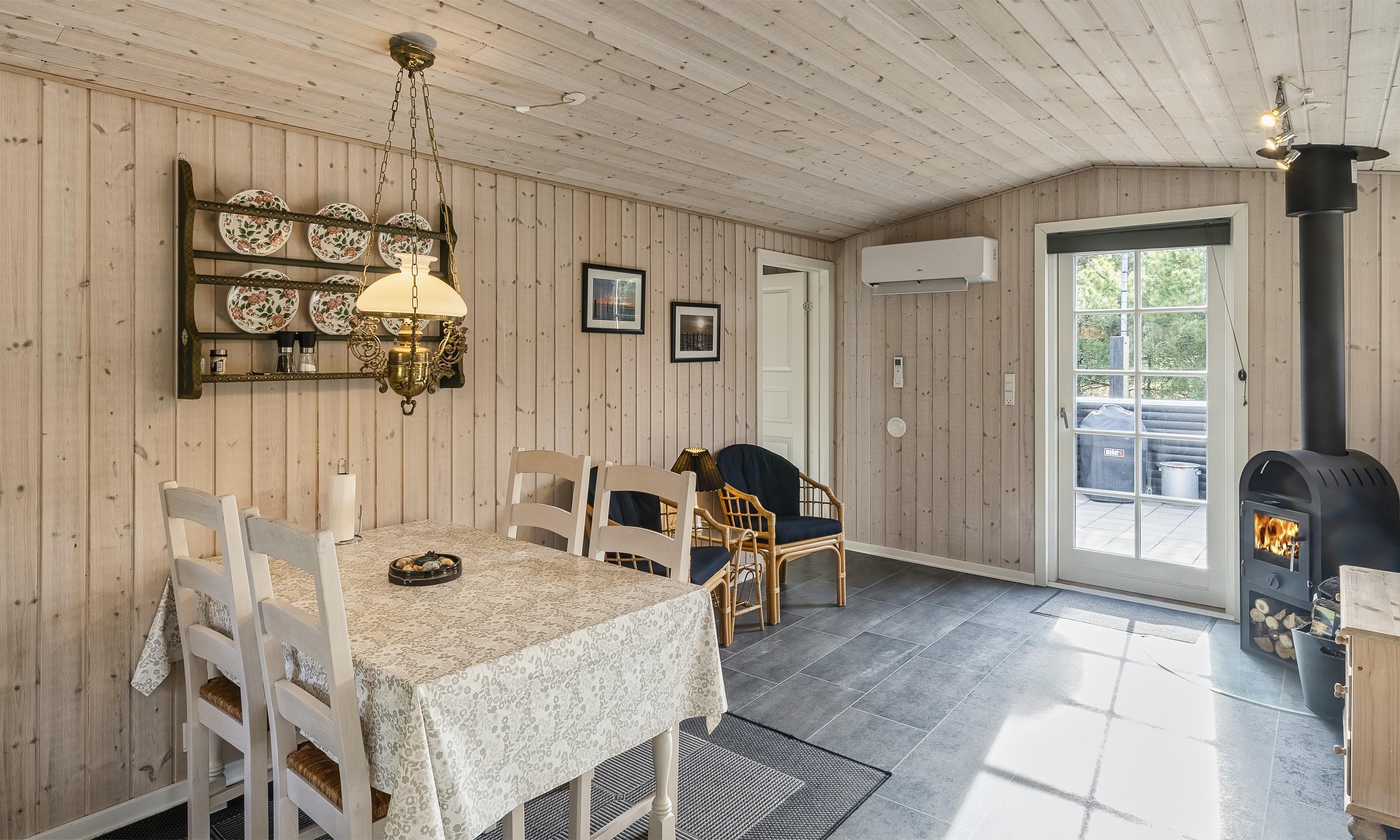 Schnuckeliges, kleines und gemütliches Ferienhaus mit Namen ”Gittebo” für 4 Personen auf einem grossen Waldgrundstück gelegen. Der Strand ist nur 425 Meter vom Haus entfernt und gut zu Fuss zu erreichen. Das Ferienhaus bietet seinen Gästen alles was Sie für einen schönen Urlaub brauchen. Das gesamte Ferienhaus ist mit schönen Fliesen am Boden verlegt. Im Wohnbereich befindet sich eine gemütliche Sitzgarnitur mit Blick auf eine Terrasse. Das deutsche Fernsehprogramm empfangen Sie über eine Parabolantenne. Chrome Cast. Ein im Essbereich aufgestellter Kamin sorgt für weitere Gemütlichkeit und wohlige Wärme. Es befindet sich eine Warmepumpe im Ferienhaus. Mit dieser Warmepumpe haben sie die Möglichkeit die Stromkosten zu senken, denn die Warmepumpe ist energiesparend. Der komplette Wohn- und Essbereich, ebenso die Schlafzimmer sind getäfelt, mit hellem Holz, das sehr einladend aussieht und diese dänische ”hygge”, also Gemütlichkeit, ausstrahlt. Die Küche verfügt über einen Herd mit Backofen, eine Mikrowelle, einer Geschirrspülmaschine und einer Kühl- und Gefrierrkombination. Das Badezimmer ist einfach gehalten mit einem Handwaschbecken, einem WC und einer Dusche und verfügt über Fussbodenheizung. Es gibt zwei Schlafzimmer im Haus: DB + 2B. Eine Waschmaschine steht den Gästen auch zur Verfügung. Zwei schöne Terrassenbereiche stehen den Gästen zur Verfügung. Der eine Bereich ist teilweise geschlossen. Ein Webergrill ist für die Gäste auf auf der Terrasse und darf benutzt werden. Auf dem Grundstück befindet sich eine schicke Aussendusche. Das Ferienhaus verfügt über einen Internetanschluss (W-Lan). Es ist max. ein Hund erlaubt, aber keine Katzen. Das Rauchen im Ferienhaus ist nicht erlaubt.Das Ferienhaus ist 1954 erbaut worden und in 2013 renoviert.