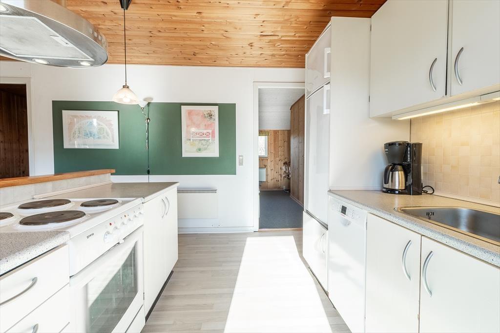 Beim Betreten dieses gemütlichen Ferienhauses wirst du von einer einladenden Atmosphäre empfangen. Das Wohnzimmer ist mit einem Kamin ausgestattet, der an kühlen Abenden für eine warme und angenehme Stimmung sorgt. Die offene Küche ist praktisch in das Wohnzimmer integriert, was das Zubereiten von Mahlzeiten erleichtert, während du trotzdem Teil des gemeinsamen Geschehens bleibst. Das Haus verfügt über vier komfortable Schlafzimmer, die für einen erholsamen Schlaf nach einem erlebnisreichen Tag sorgen. Das Badezimmer ist hell und funktional und mit Fußbodenheizung ausgestattet, die für zusätzlichen Komfort sorgt.
