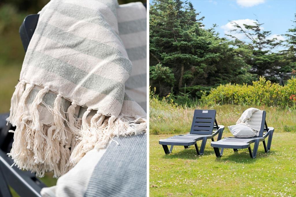 Der Garten des Ferienhauses lädt zu einem besonders entspannten Outdoor-Urlaub ein. Die große Rasenfläche bietet viel Platz zum Spielen und Toben, und das Schaukelgestell ist bereit für viele fröhliche Kinderstunden. Währenddessen können es sich die Erwachsenen auf einer Sonnenliege gemütlich machen oder im Schatten unter der überdachten Terrasse entspannen. Hier ist der perfekte Ort, um mit frisch gebrühtem Kaffee in den Tag zu starten und den Abend mit einem leckeren Essen vom Grill ausklingen zu lassen, während die letzten Sonnenstrahlen über die Dünen gleiten. Der offene Garten und die ruhige Atmosphäre schaffen die perfekte Kulisse für Erholung und Zweisamkeit – ganz gleich, ob du dem Vogelgezwitscher am Morgen lauschst oder am Nachmittag ein gutes Buch liest. Und mit nur 250 Metern bis zum Strand bist du jederzeit schnell am Wasser – sei es für einen Sprung in die Wellen oder einen gemütlichen Spaziergang entlang der Küste.