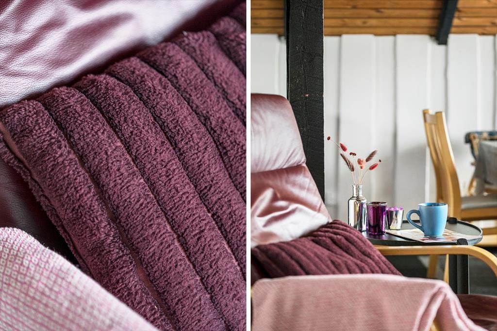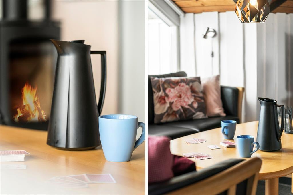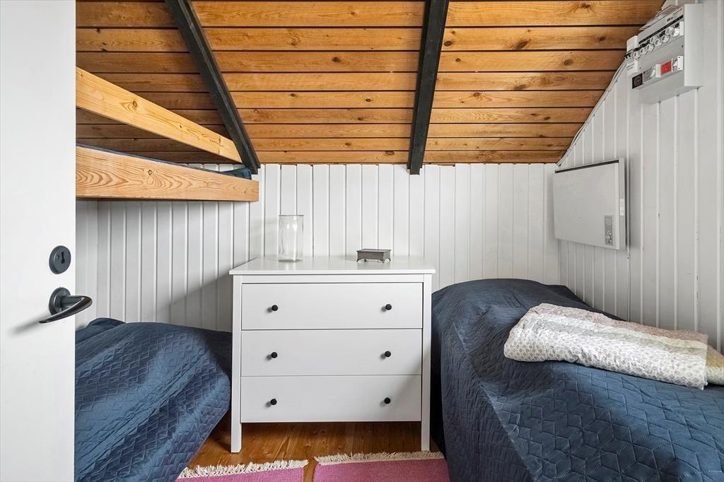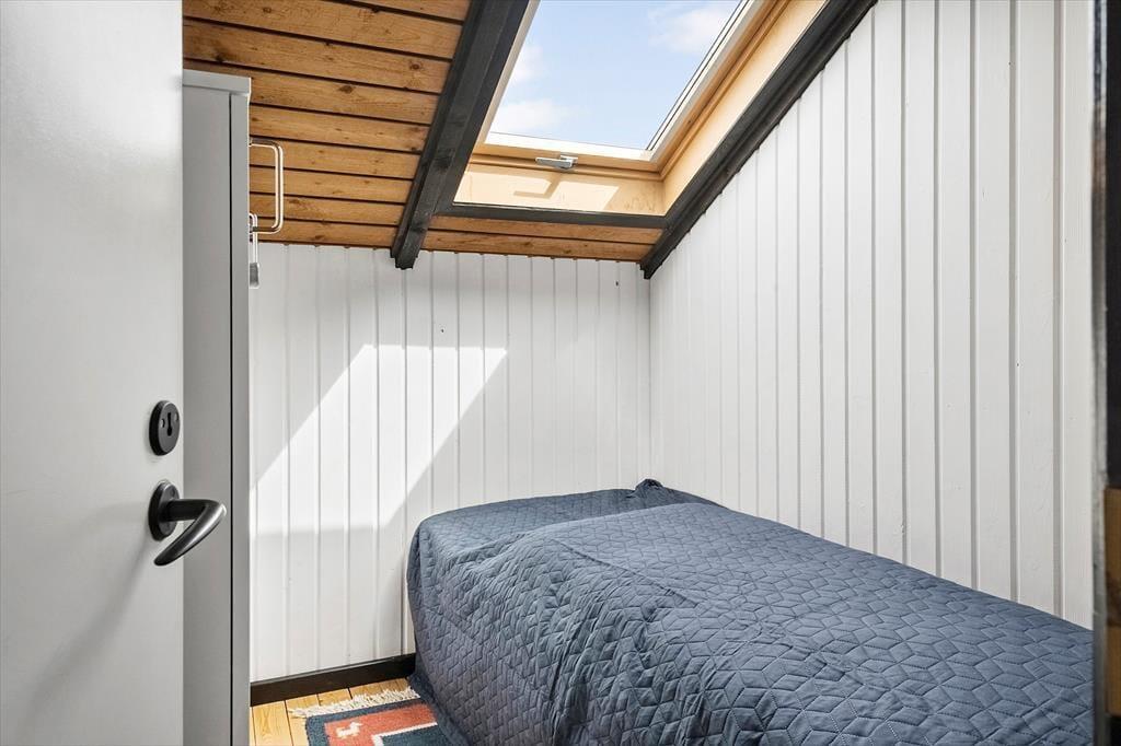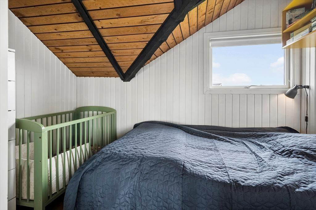 Wenn du dieses gemütliche Ferienhaus betrittst, empfängt dich eine helle und einladende Atmosphäre. Wohnzimmer und Küche sind offen miteinander verbunden, was eine geräumige und angenehme Wohnzone schafft. Im Wohnzimmer kannst du es dir in der komfortablen Sofagruppe gemütlich machen, Mahlzeiten am Esstisch genießen oder dich an kühlen Abenden am Kaminofen wärmen. Vom Wohnzimmer hast du direkten Zugang zur Terrasse, wo du deinen Morgenkaffee an der frischen Luft genießen kannst. Das Ferienhaus verfügt über vier Schlafzimmer: zwei mit Doppelbetten, eines davon mit Kinderbett, und zwei mit Einzelbetten, was flexible Schlafmöglichkeiten für Familie und Freunde bietet. Das Badezimmer ist funktional mit einer Dusche ausgestattet.