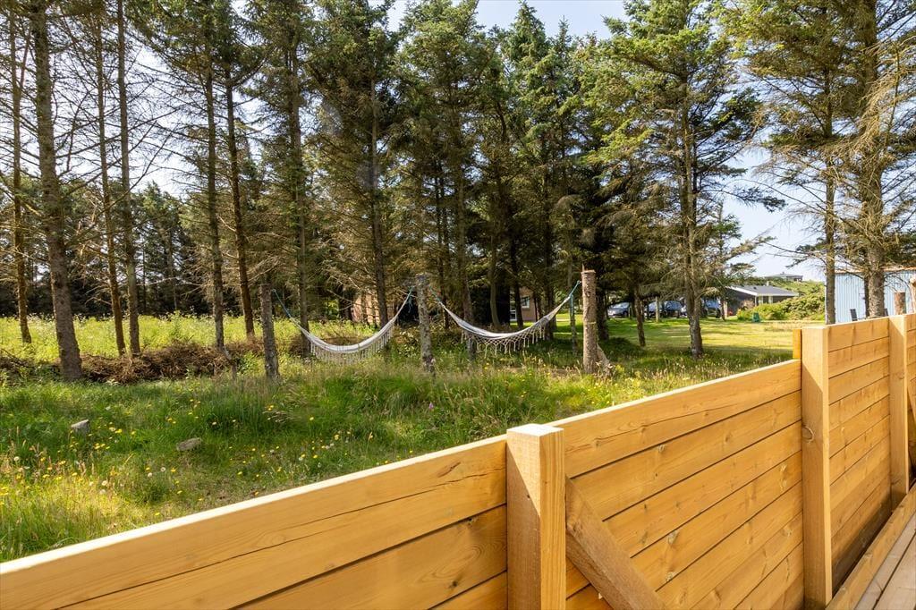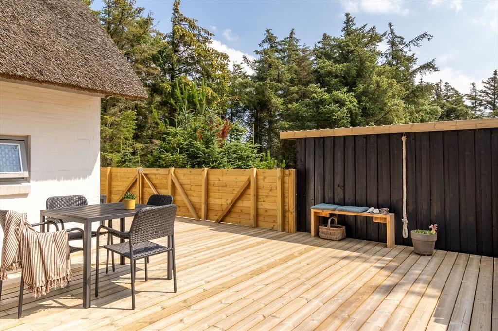 Die fantastische Terrassenlandschaft des Ferienhauses erstreckt sich auf ganzen 112 m² fast einmal rund ums Haus und bietet damit optimale Möglichkeiten, den ganzen Tag Sonne, Windschutz oder Schatten zu finden. Du kannst deinen Morgenkaffee in der Sonne genießen, am Nachmittag ein gutes Buch lesen oder anlangen, hellen Sommerabenden die Familie zum Grillen versammeln. Der Garten bietet viel Platz zum Entspannen und Spielen, sodass sowohl Kinder als auch Erwachsene das Leben unter freiem Himmel in vollen Zügen genießen können. Mit der Natur so nah wirst du das Zwitschern der Vögel hören und die echte Urlaubsstimmung spüren.