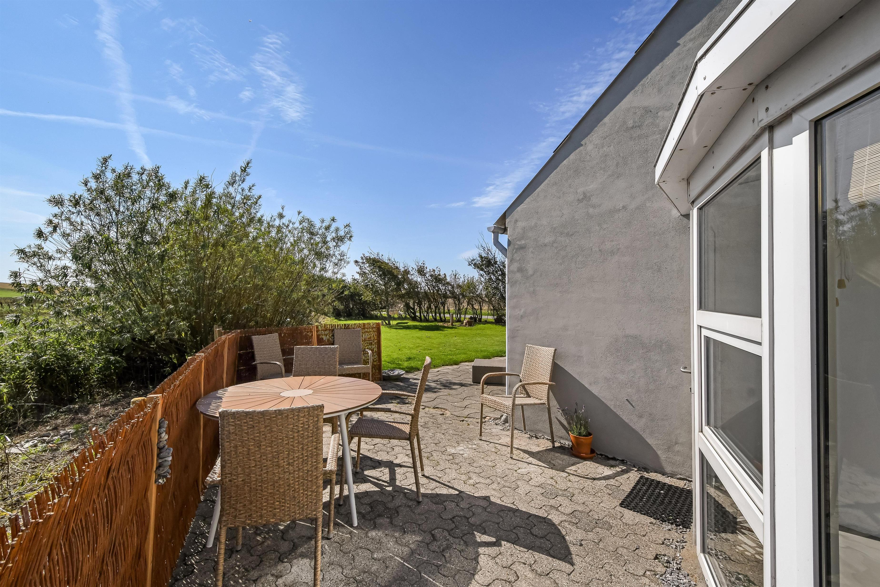 Das Haus ist 189 m² groß und wurde 2024 vollständig modernisiert. Es verfügt über 3 Schlafzimmer, die folgendermaßen aufgeteilt sind: Im Erdgeschoss gibt es 1 Schlafzimmer mit einem Doppelbett (180x200) und 1 Schlafzimmer mit 2 Einzelbetten (90x200). Das Wohnzimmer, das direkt an die Küche angrenzt, ist mit einem großen Esstisch und Stühlen ausgestattet, sodass Platz für alle vorhanden ist. Es gibt ein Smart-TV mit dänischen und deutschen Kanälen. Ein Sofa-Set sowie ein Kaminofen sorgen zu jeder Jahreszeit für eine gemütliche Atmosphäre; das Wohnzimmer verfügt außerdem über Fußbodenheizung. Der Raum ist bis zum Dach offen, mit sichtbaren Balken. Die Küche ist sehr modern und gut ausgestattet, ebenfalls mit Fußbodenheizung, und verfügt über ein Induktionskochfeld, einen Einbaubackofen, eine Dunstabzugshaube, eine Spülmaschine, eine Heißluftfritteuse sowie einen Kühlschrank. Im Hauswirtschaftsraum gibt es einen Gefrierschrank mit 220 Litern. Das Badezimmer ist mit Toilette, Dusche, Waschbecken und Fußbodenheizung ausgestattet. Maximal 1 Haustier erlaubt. Nichtraucherhaus. Hauswirtschaftsraum mit Waschmaschine und Trockner. Wunderschönes Gewächshaus/Wintergarten mit Gartenmöbeln und einem fantastischen Blick auf die Landschaft.